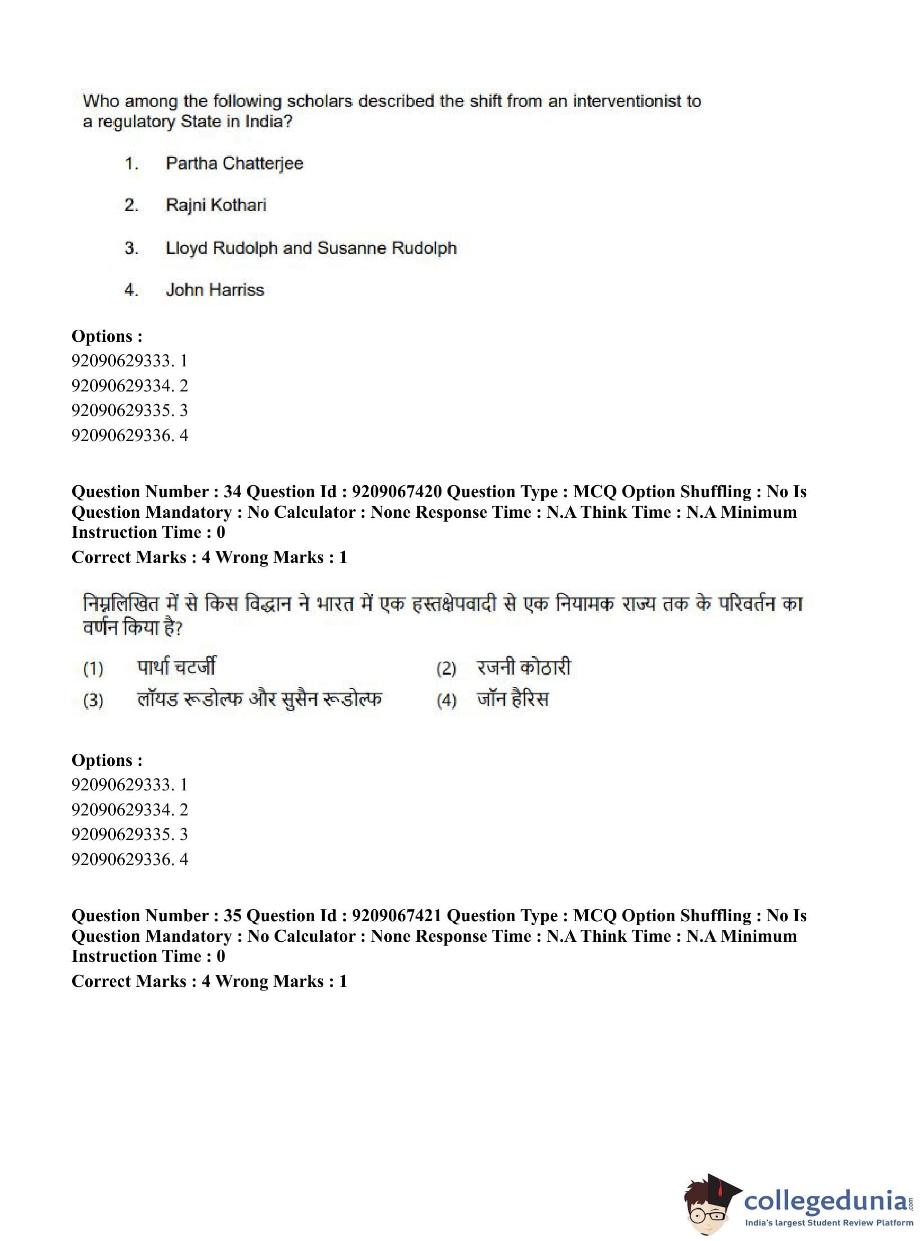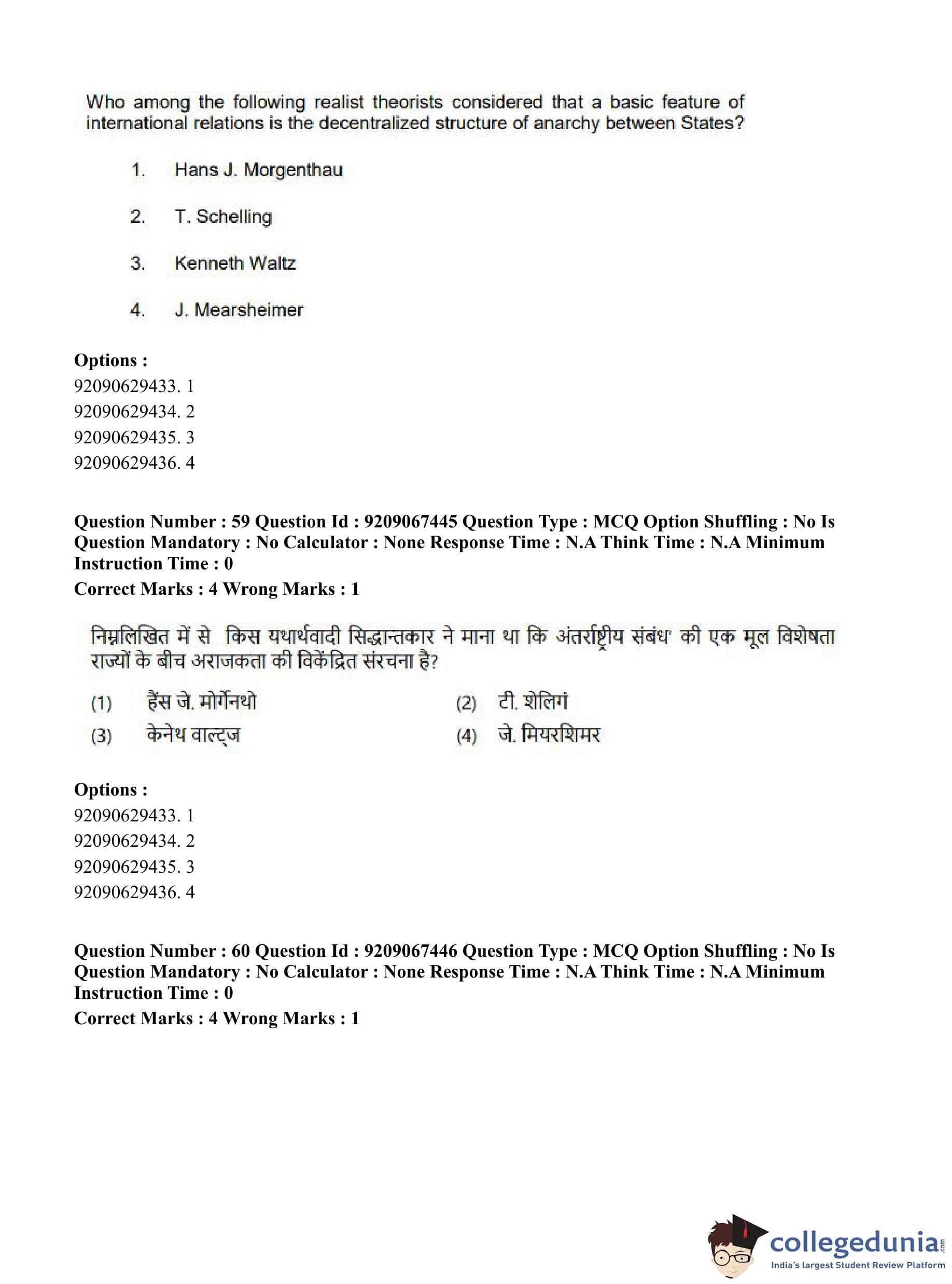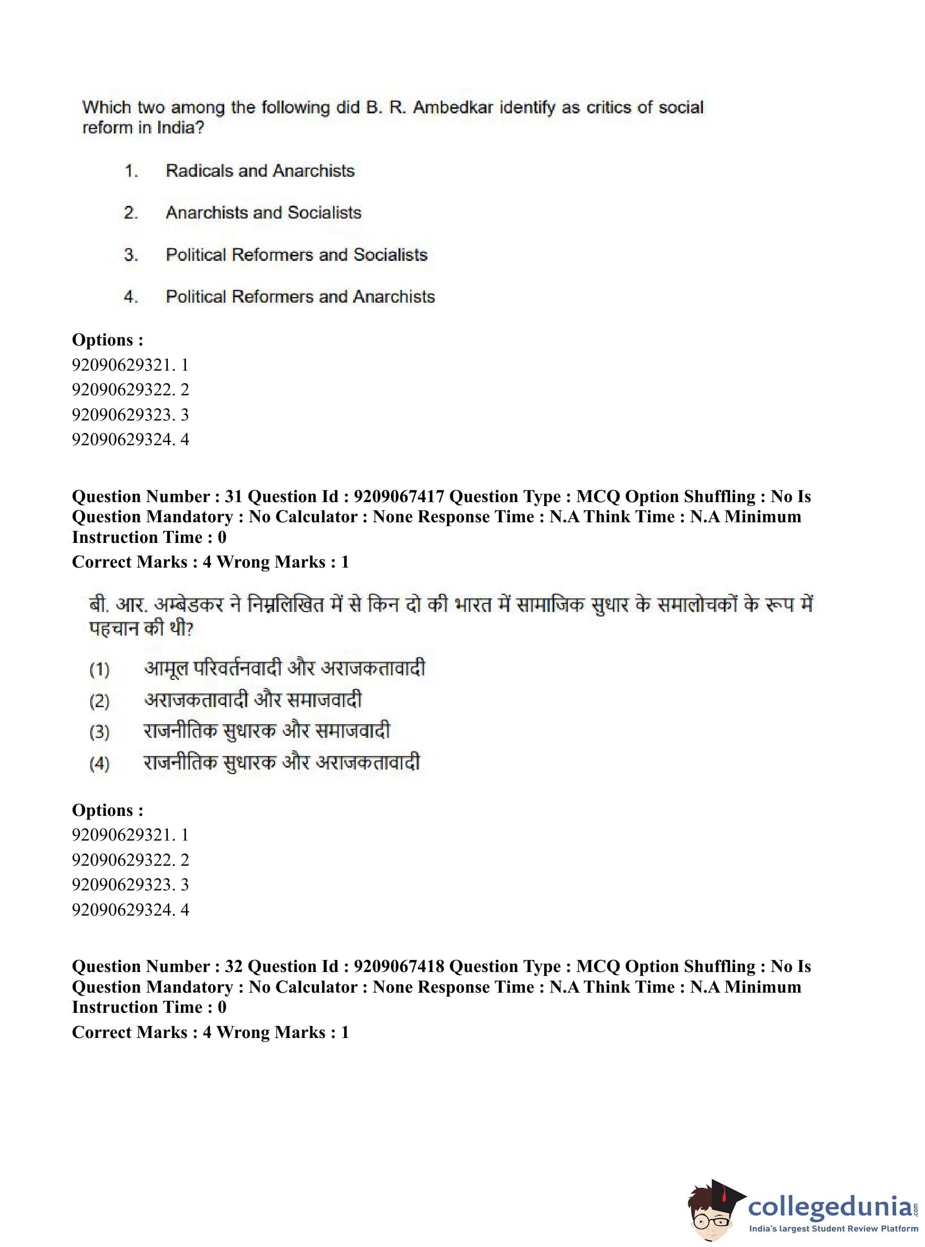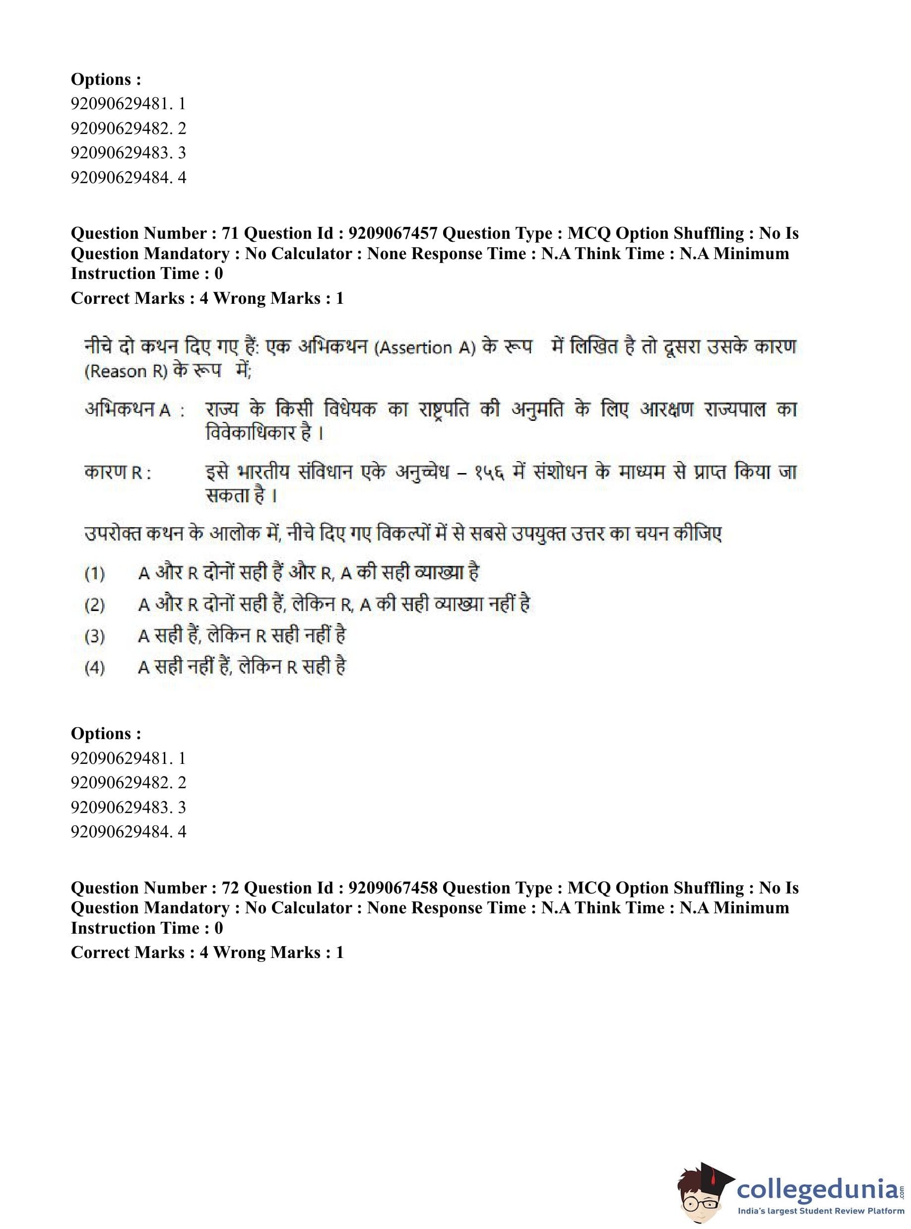 CUET PG 2023 Political Science Question Paper in Hindi (June 8 - Shift 1)