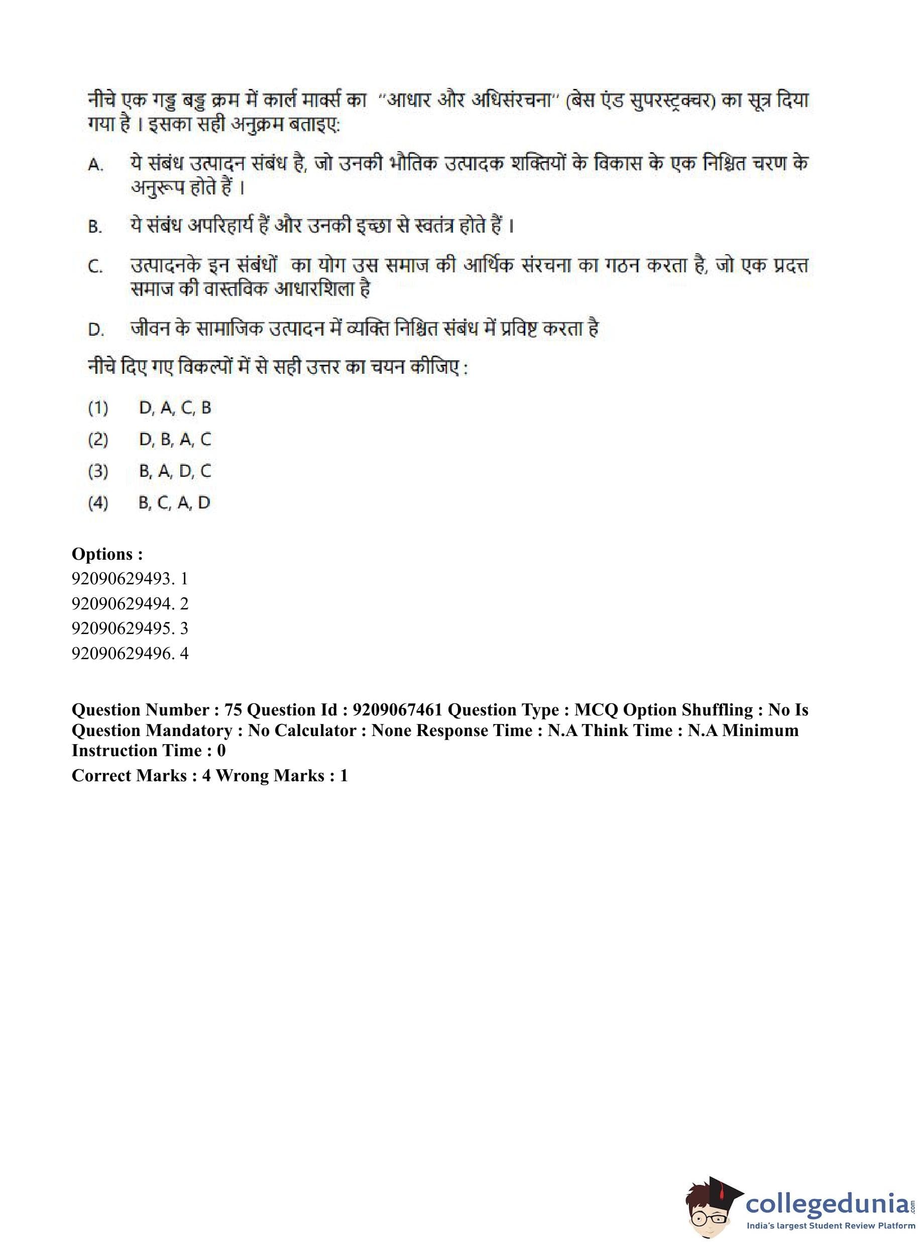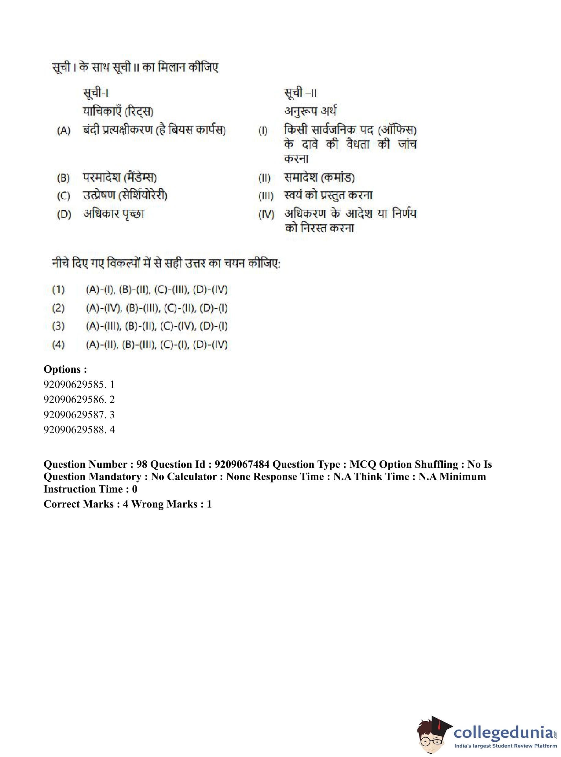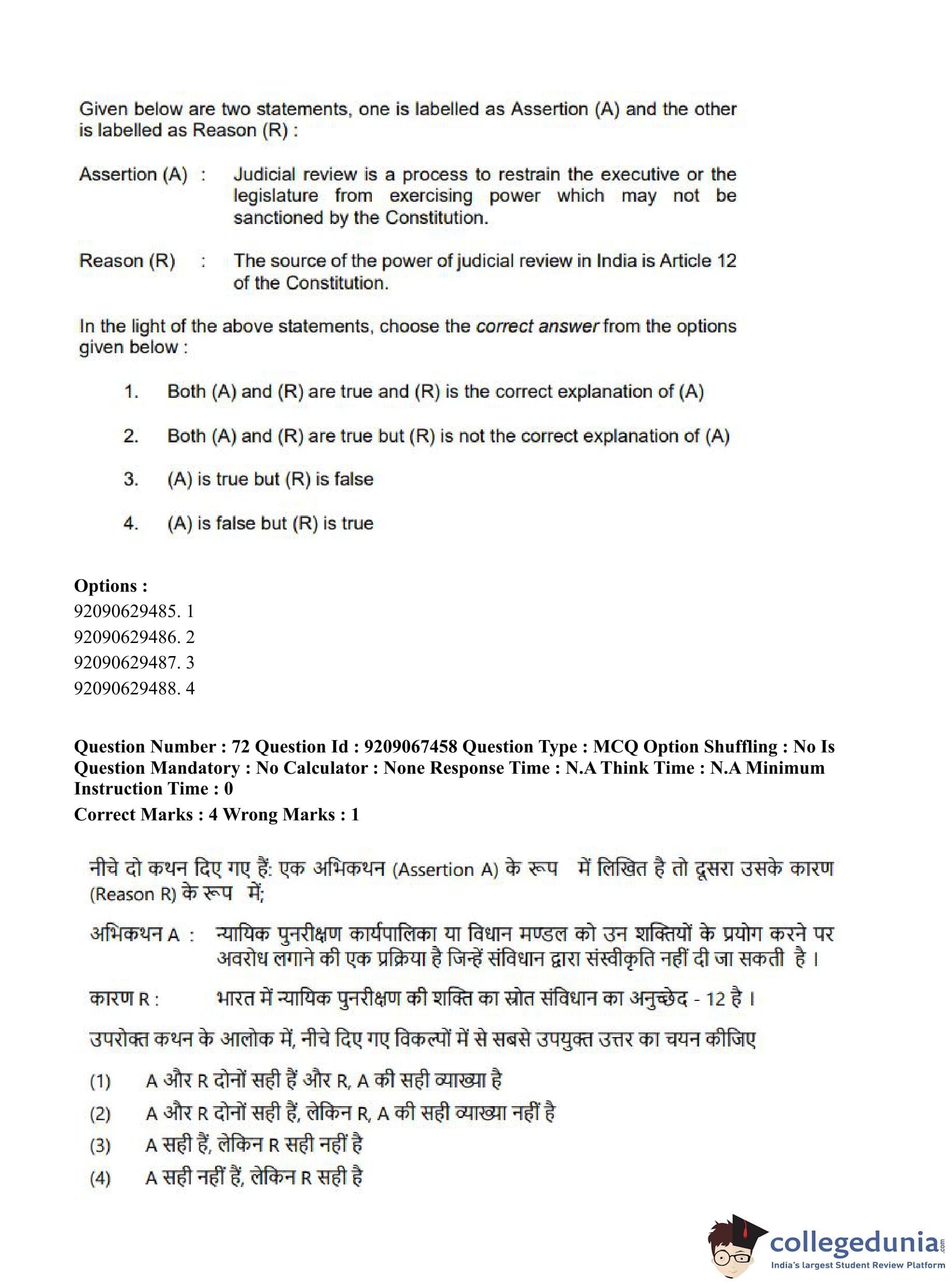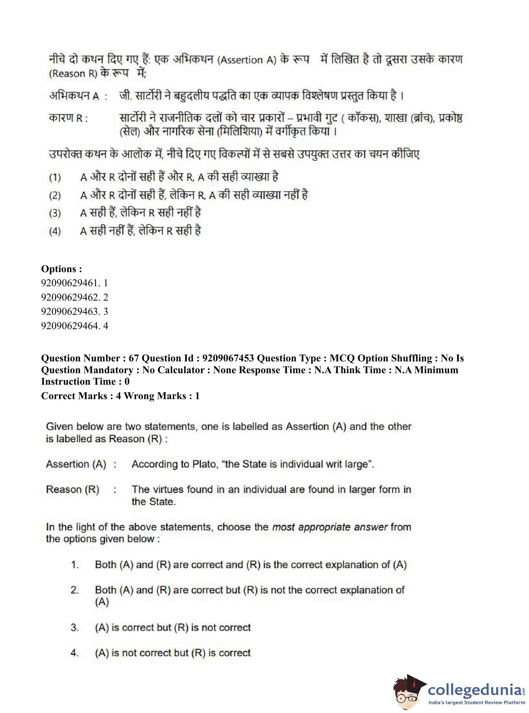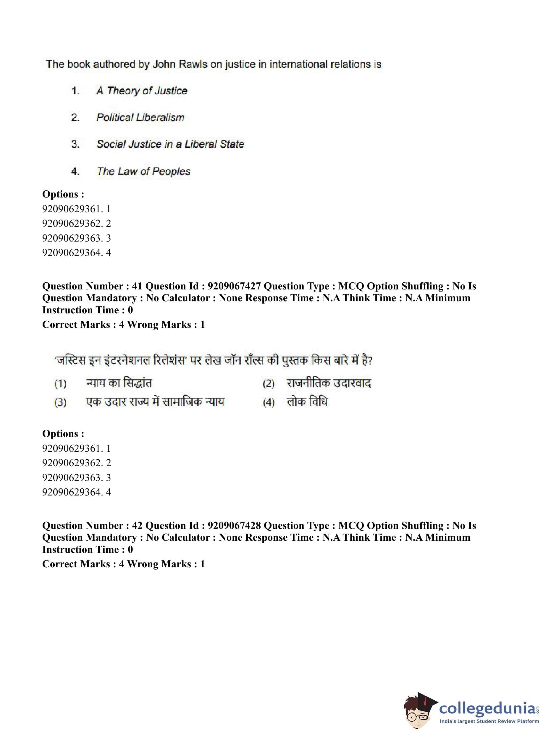 CUET PG 2023 Political Science Question Paper in Hindi (June 8 - Shift 1)