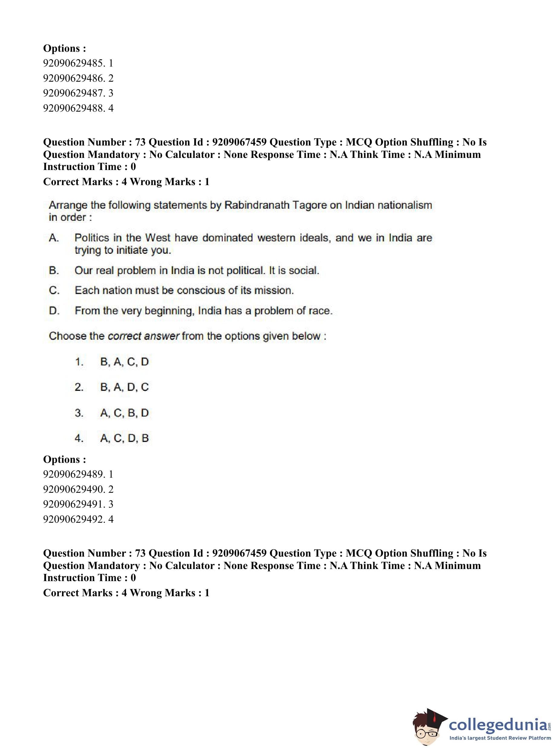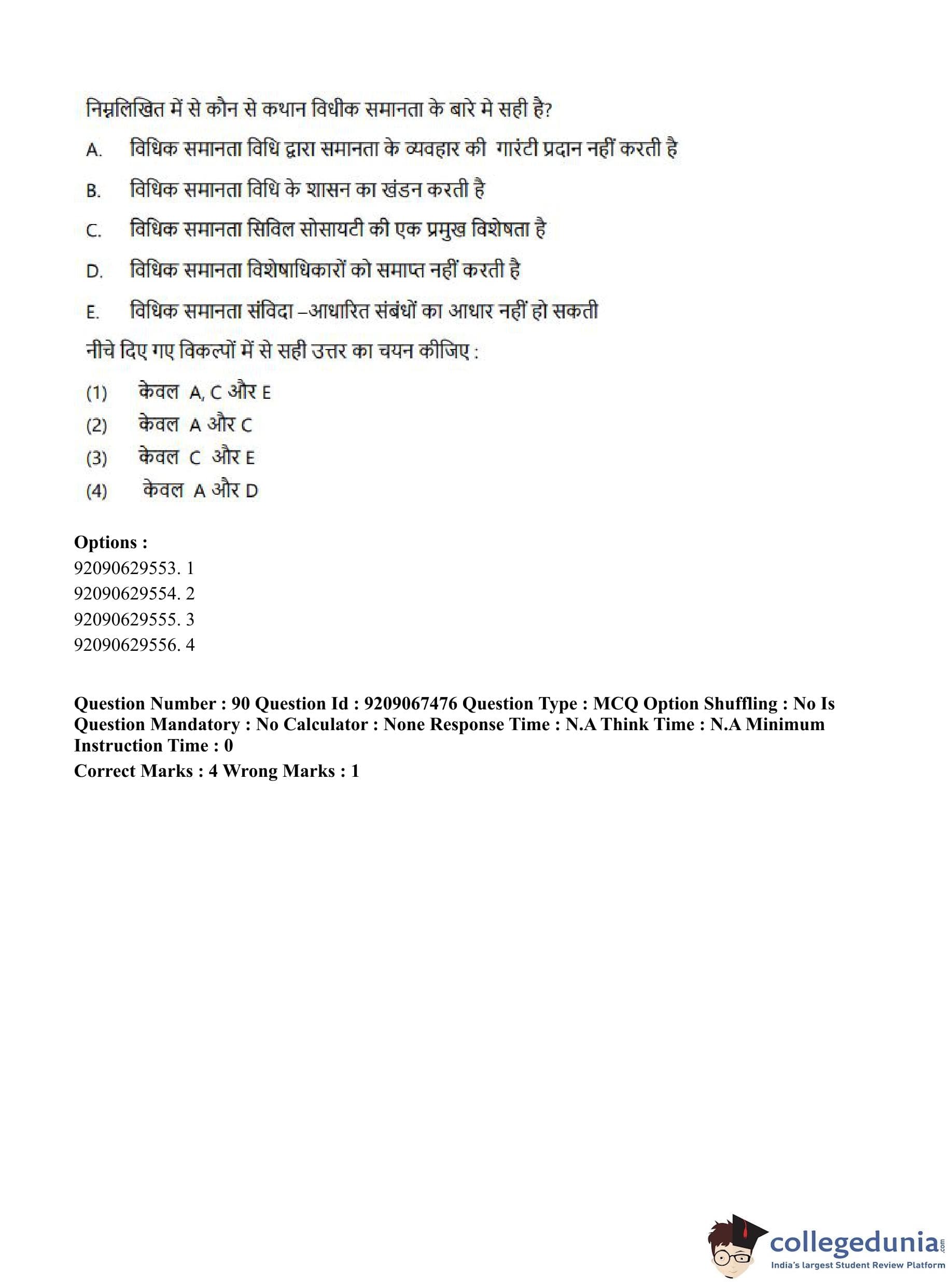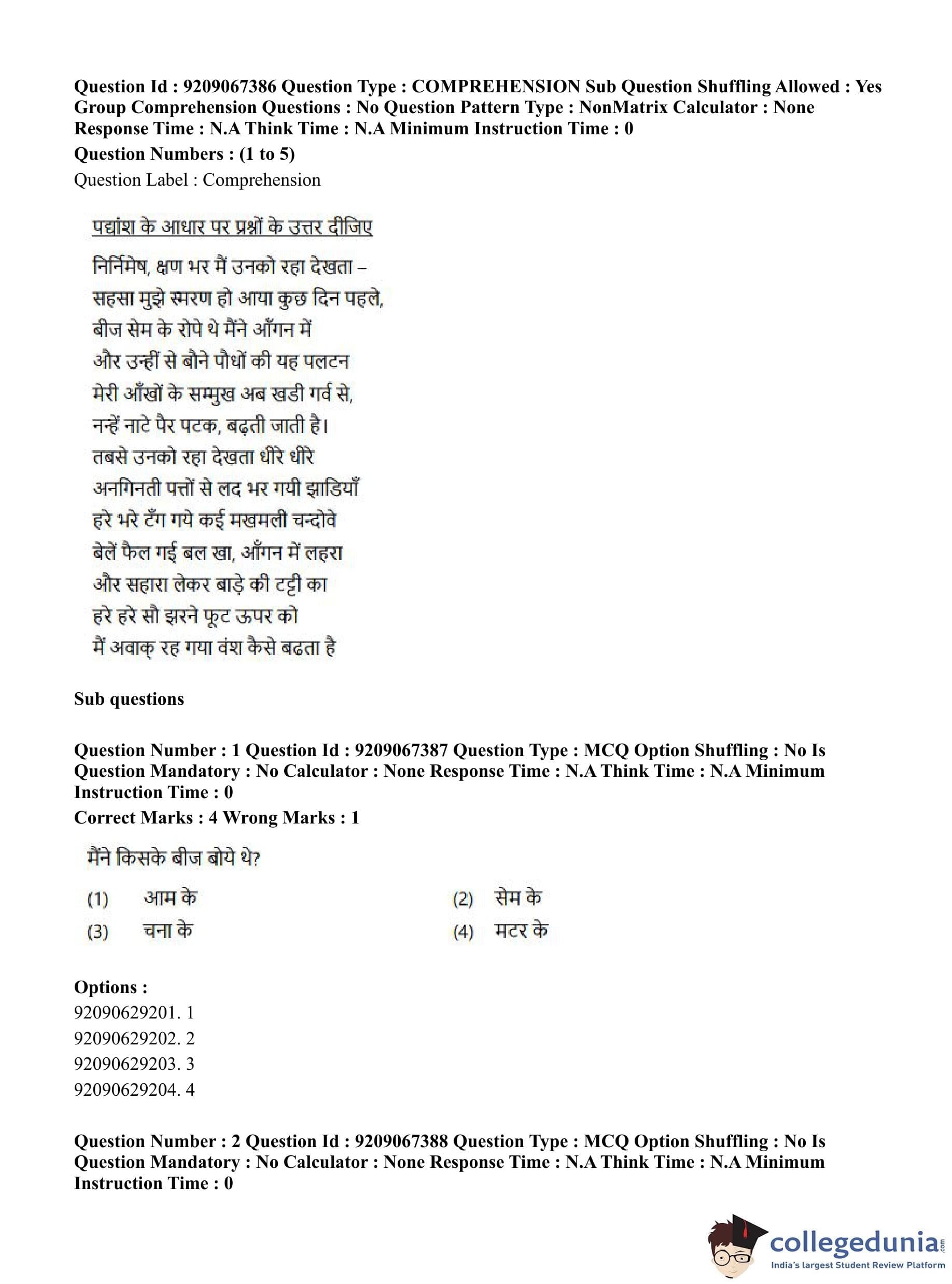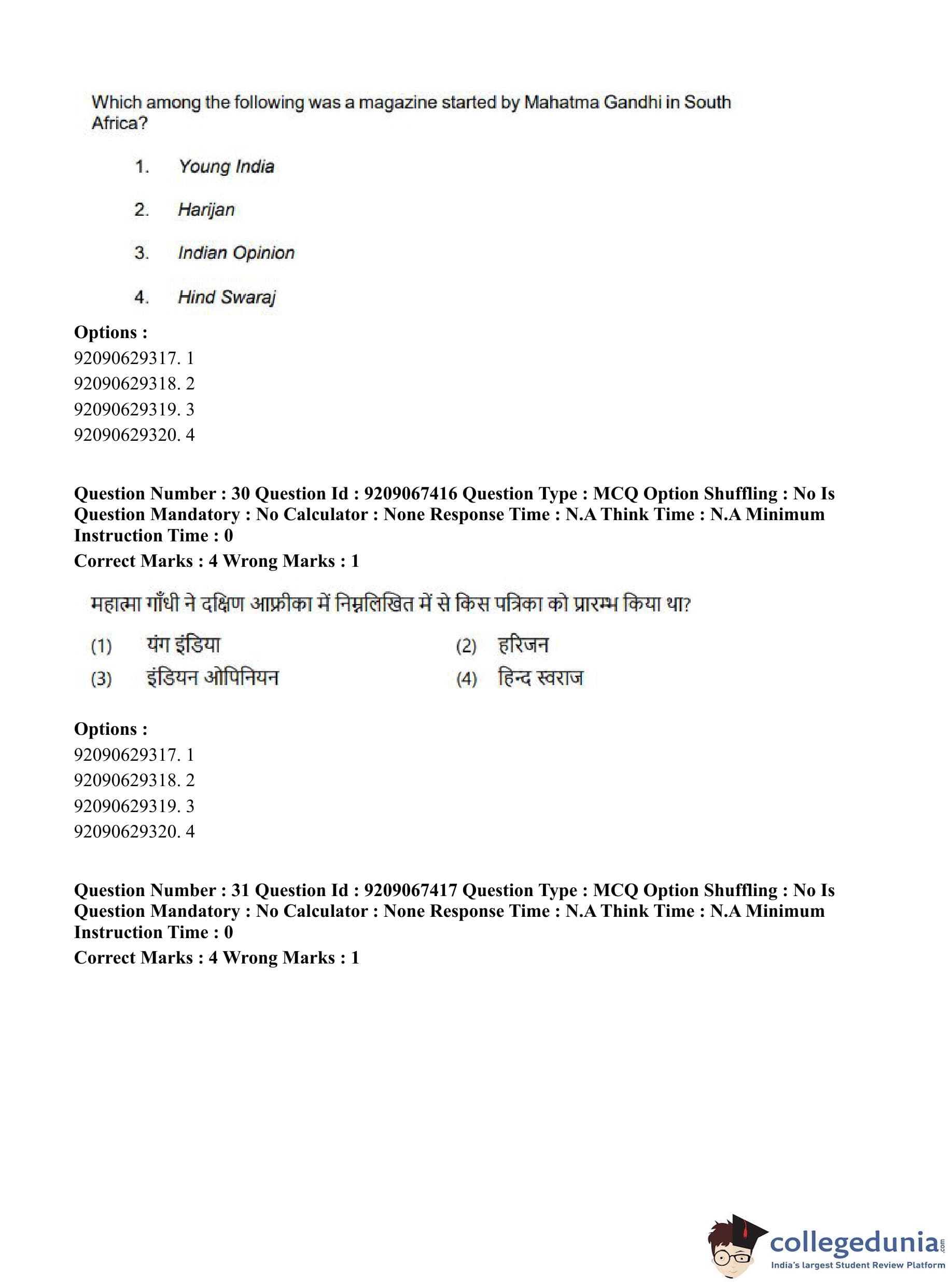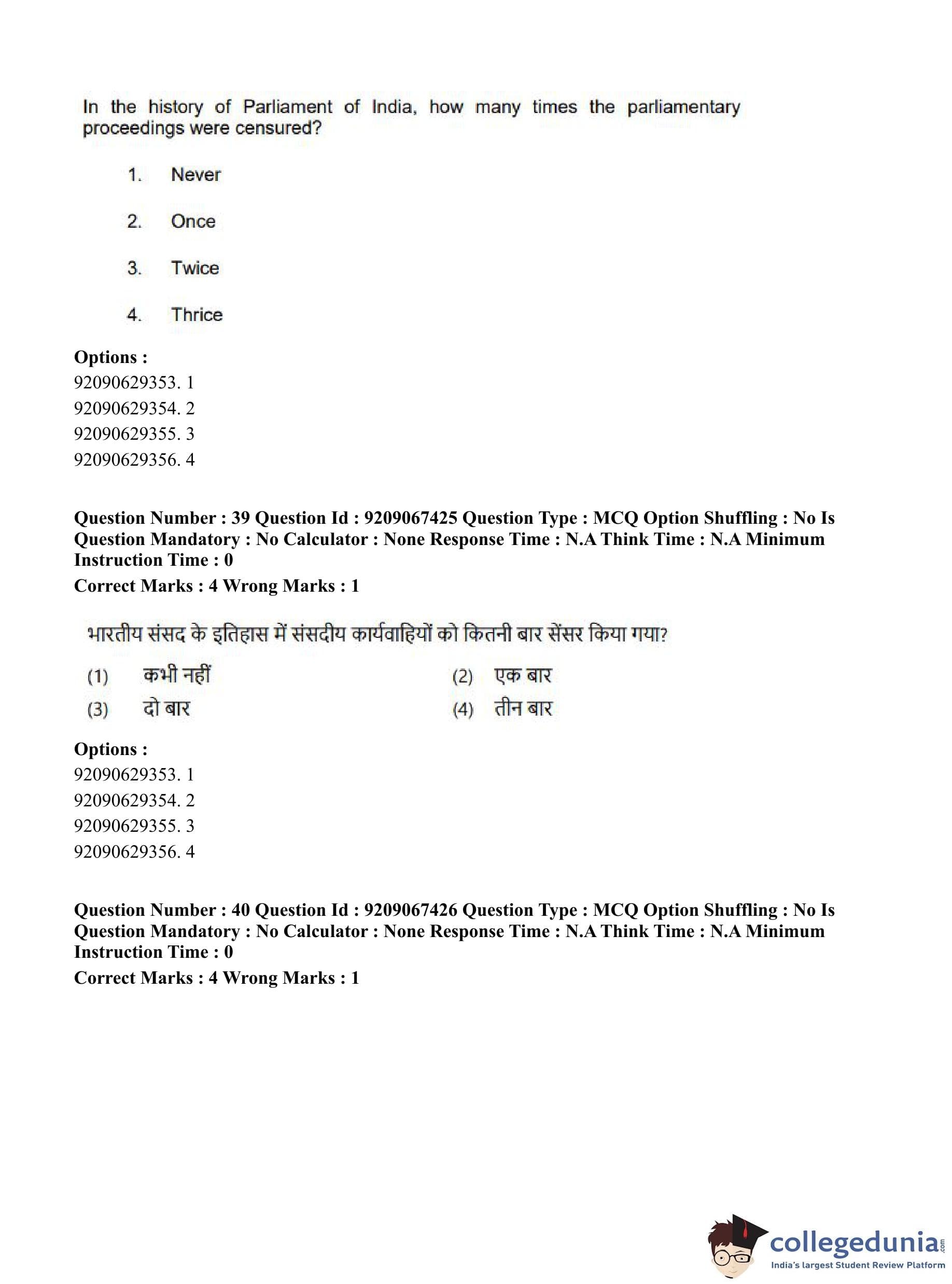 CUET PG 2023 Political Science Question Paper in Hindi (June 8 - Shift 1)