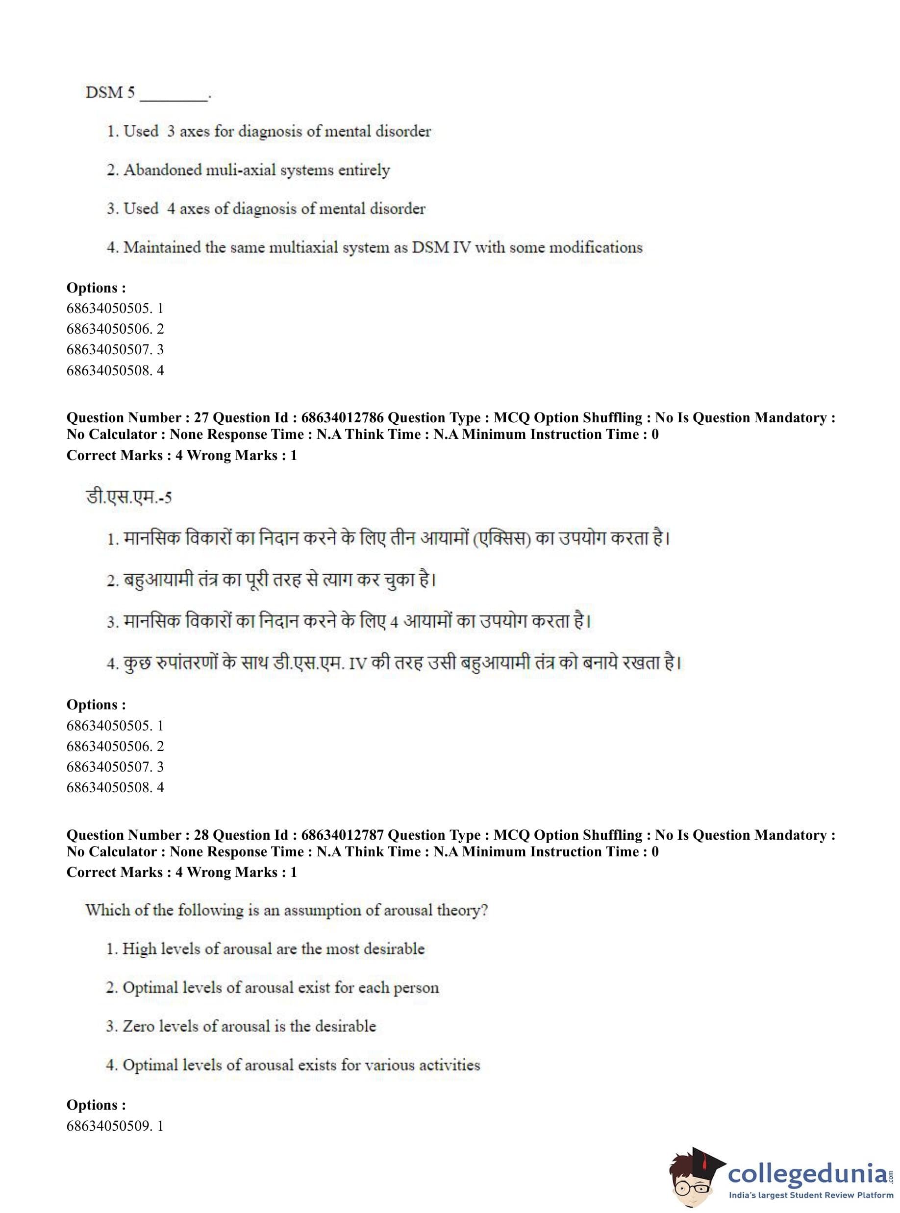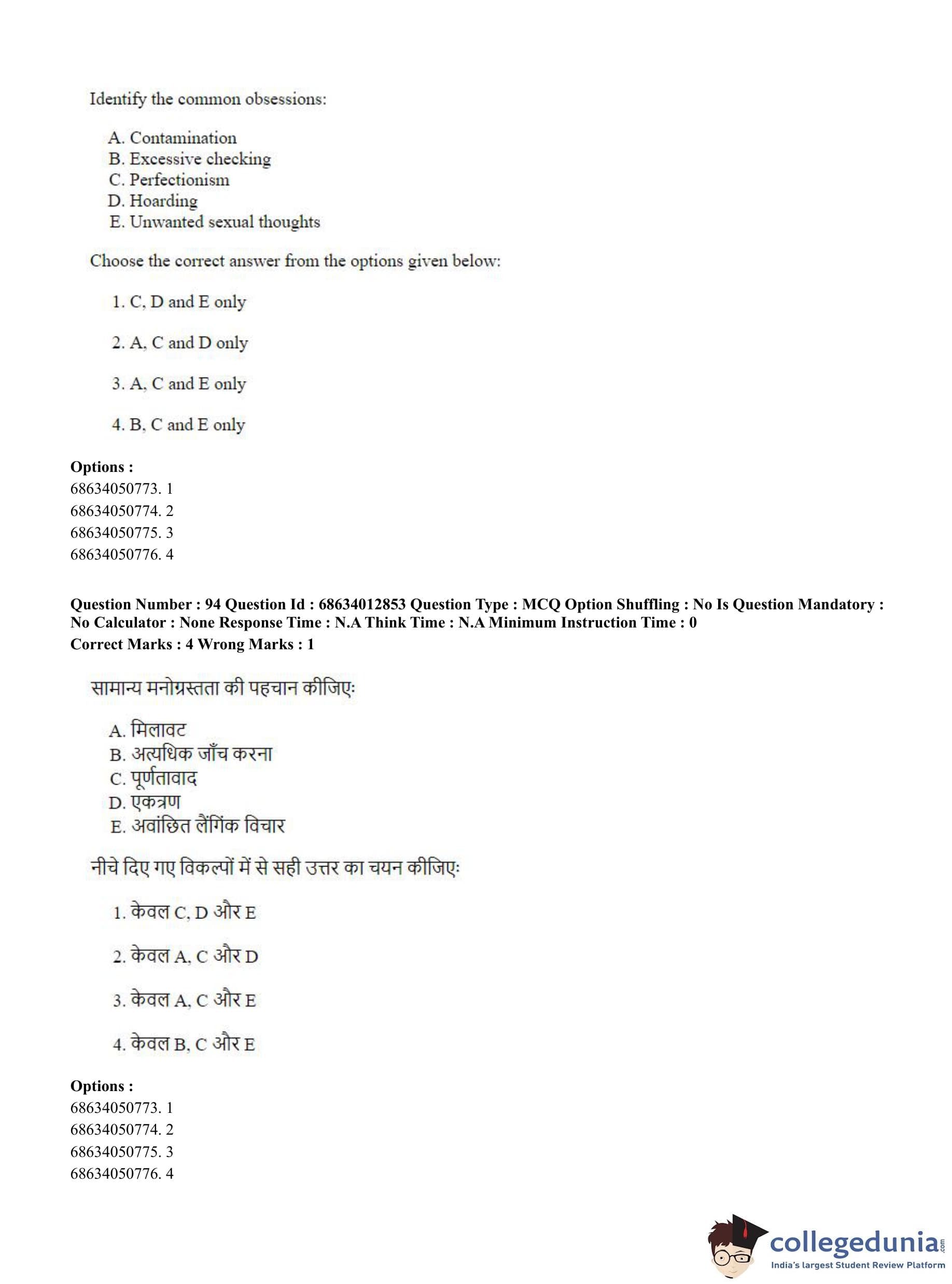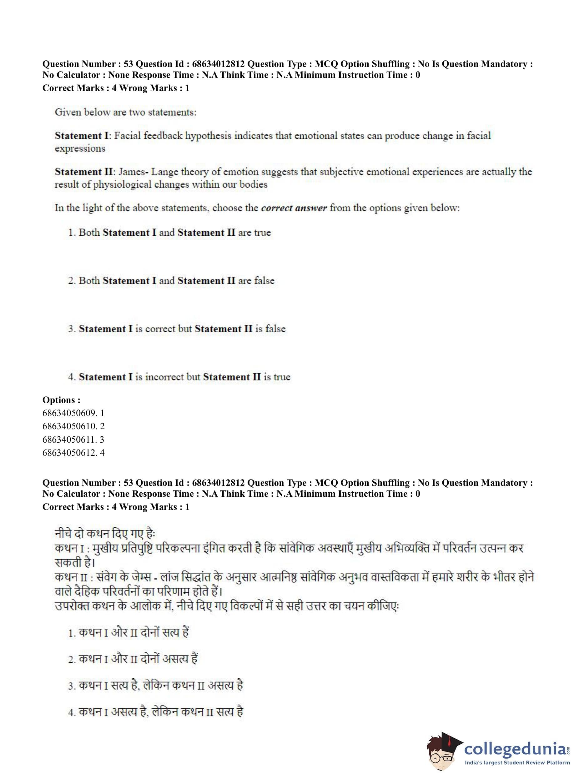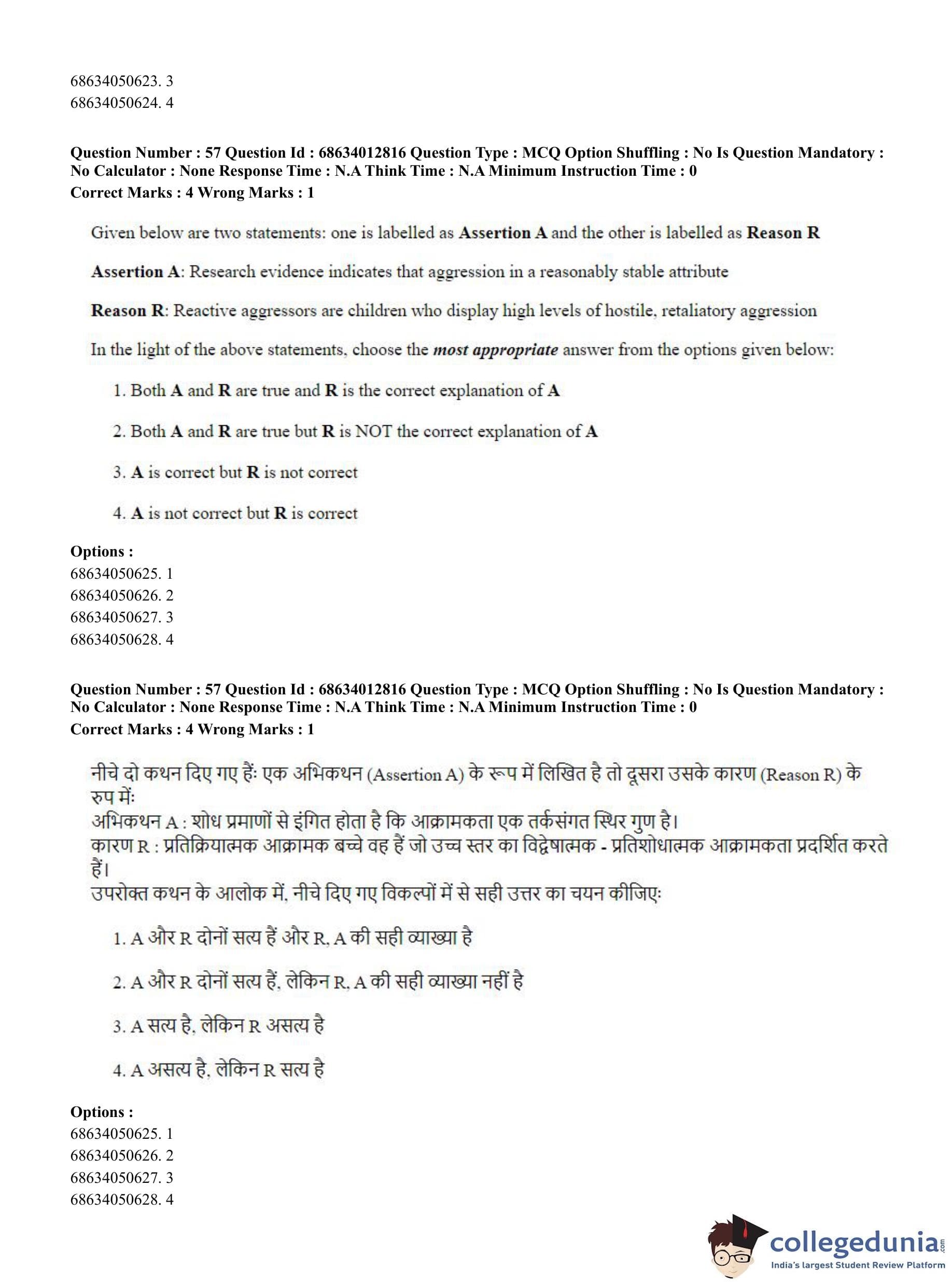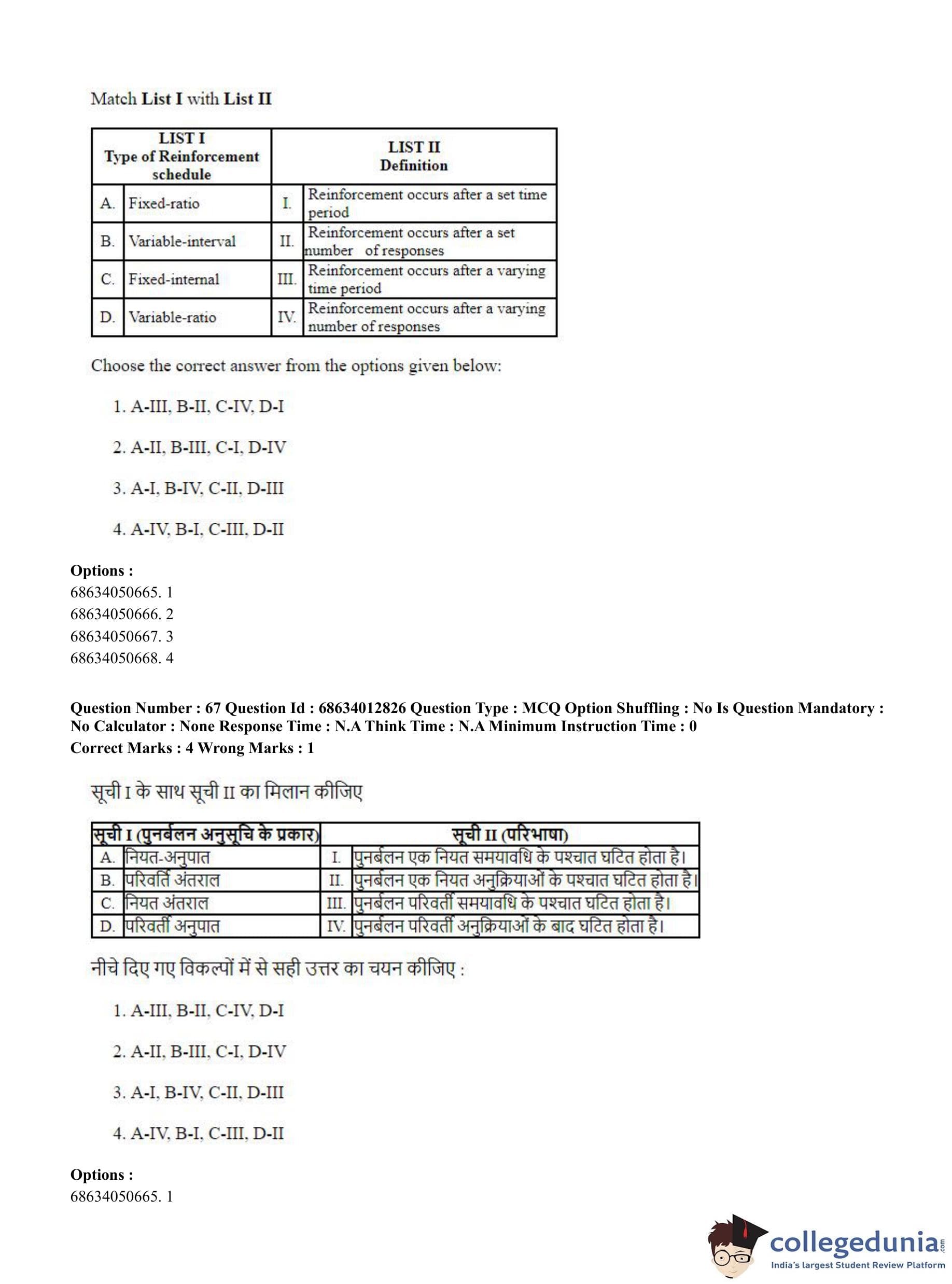 CUET PG 2023 Psychology Question Paper in Hindi (June 11 - Shift 1)