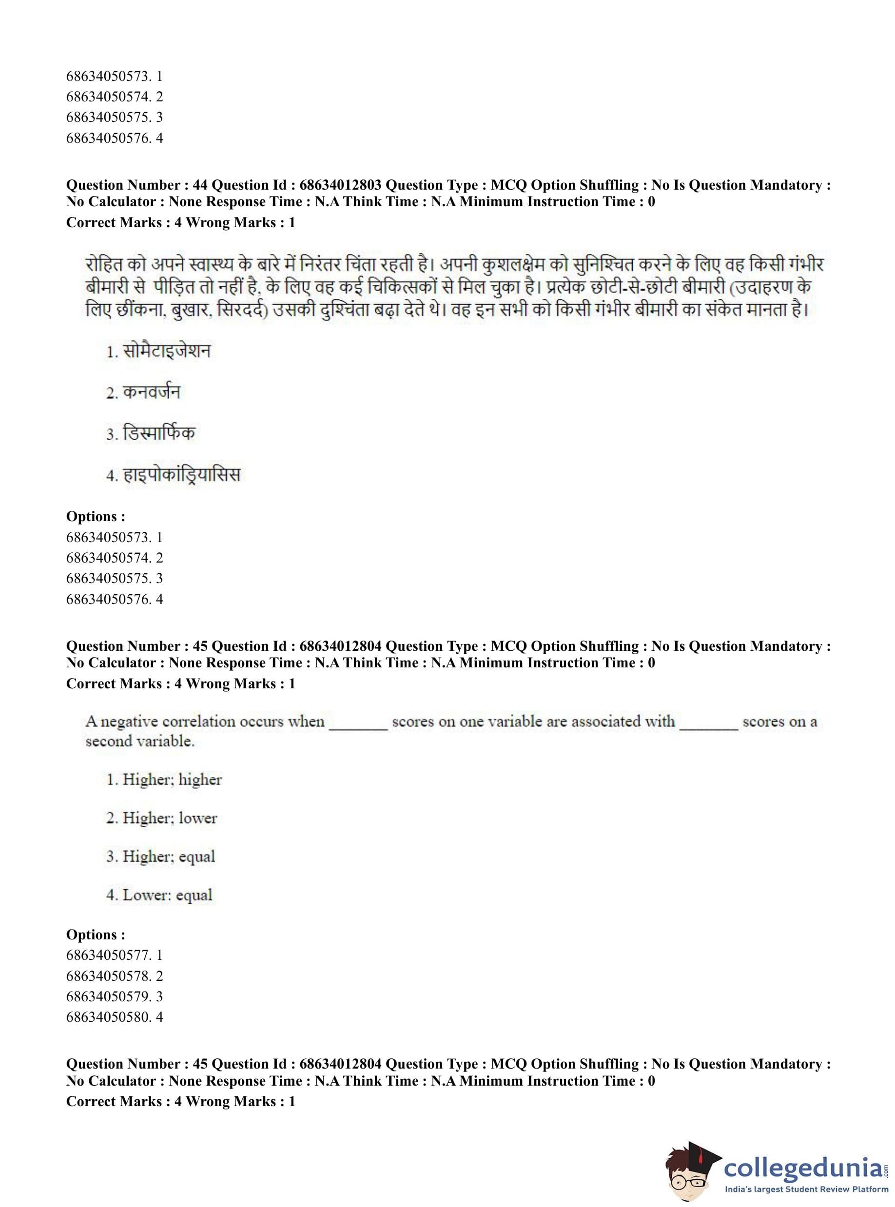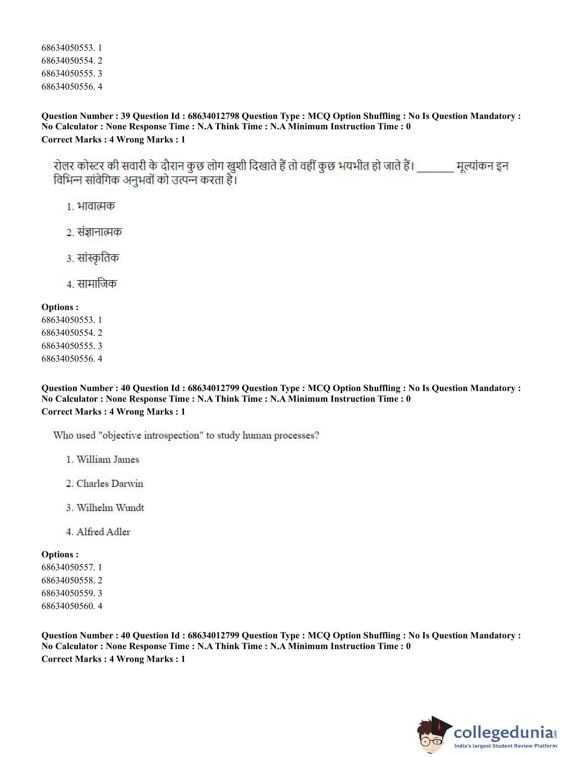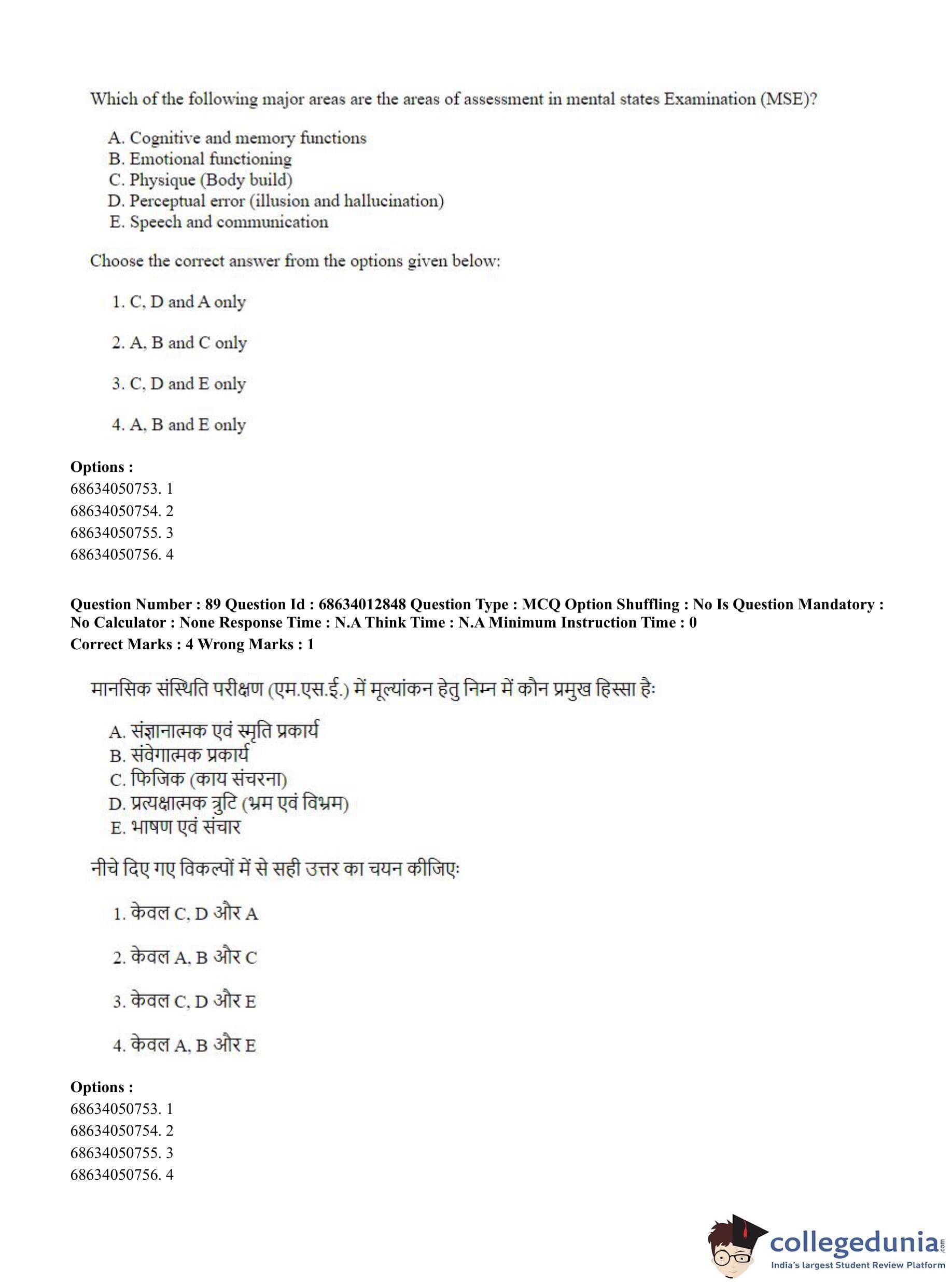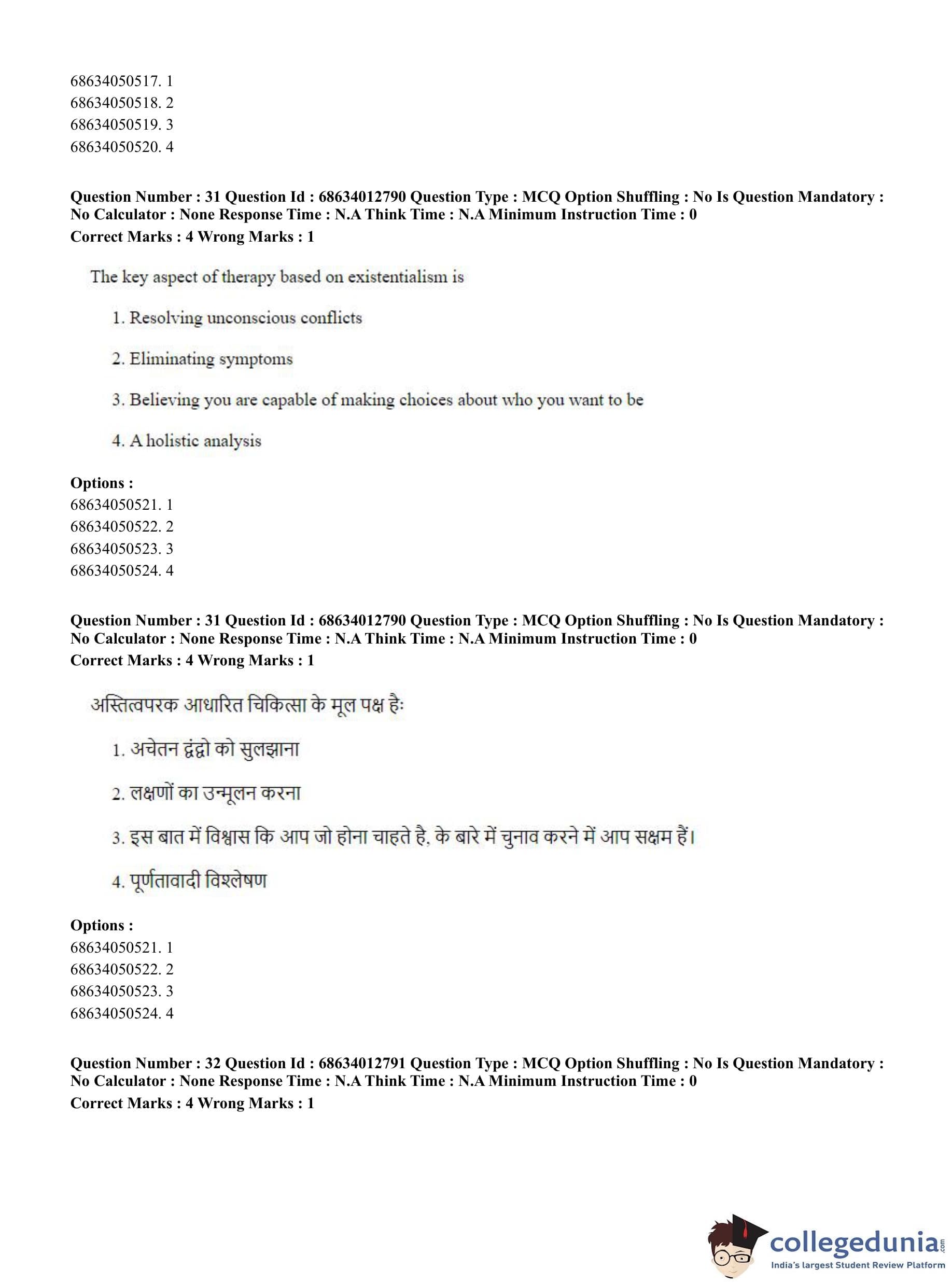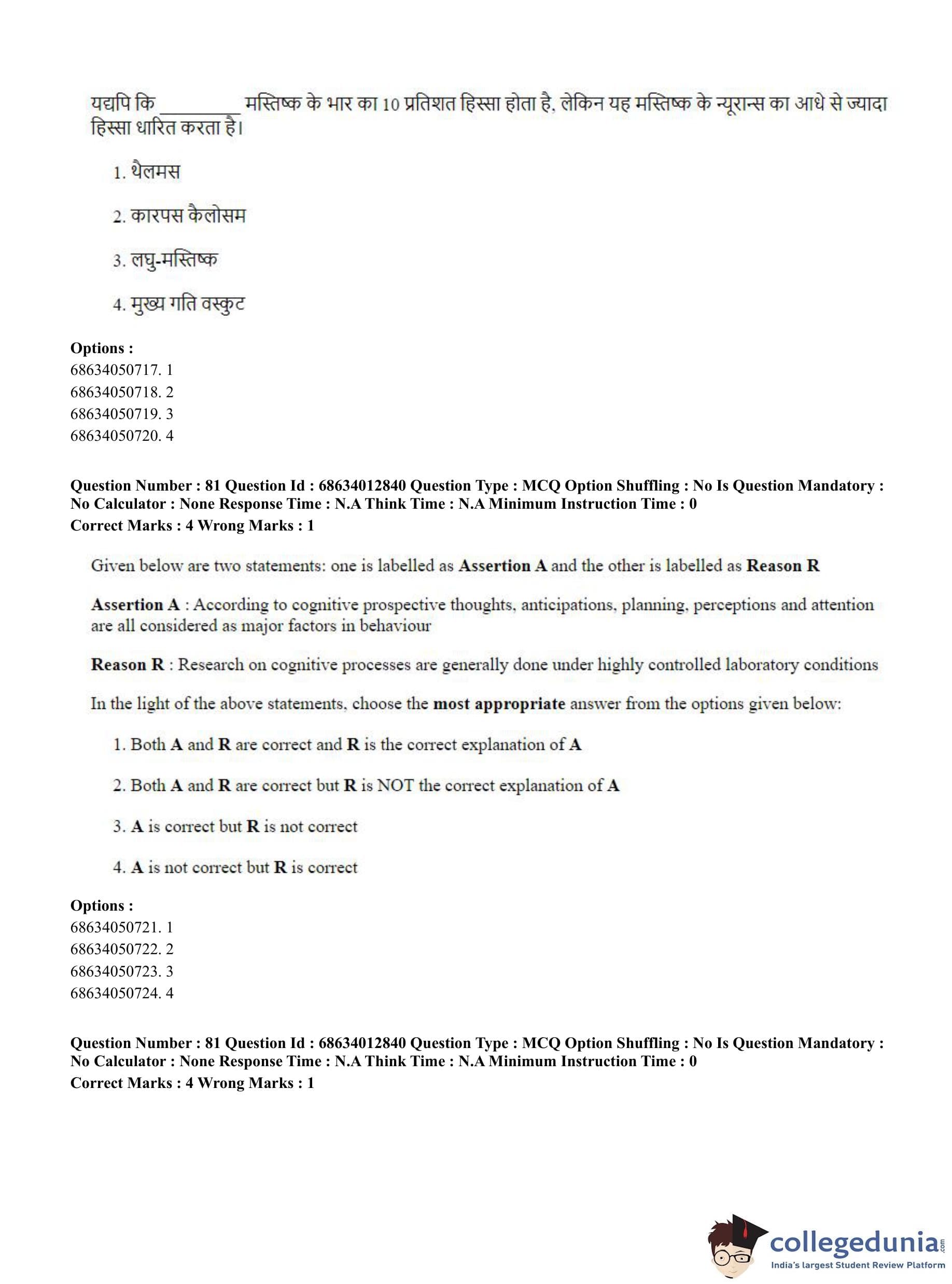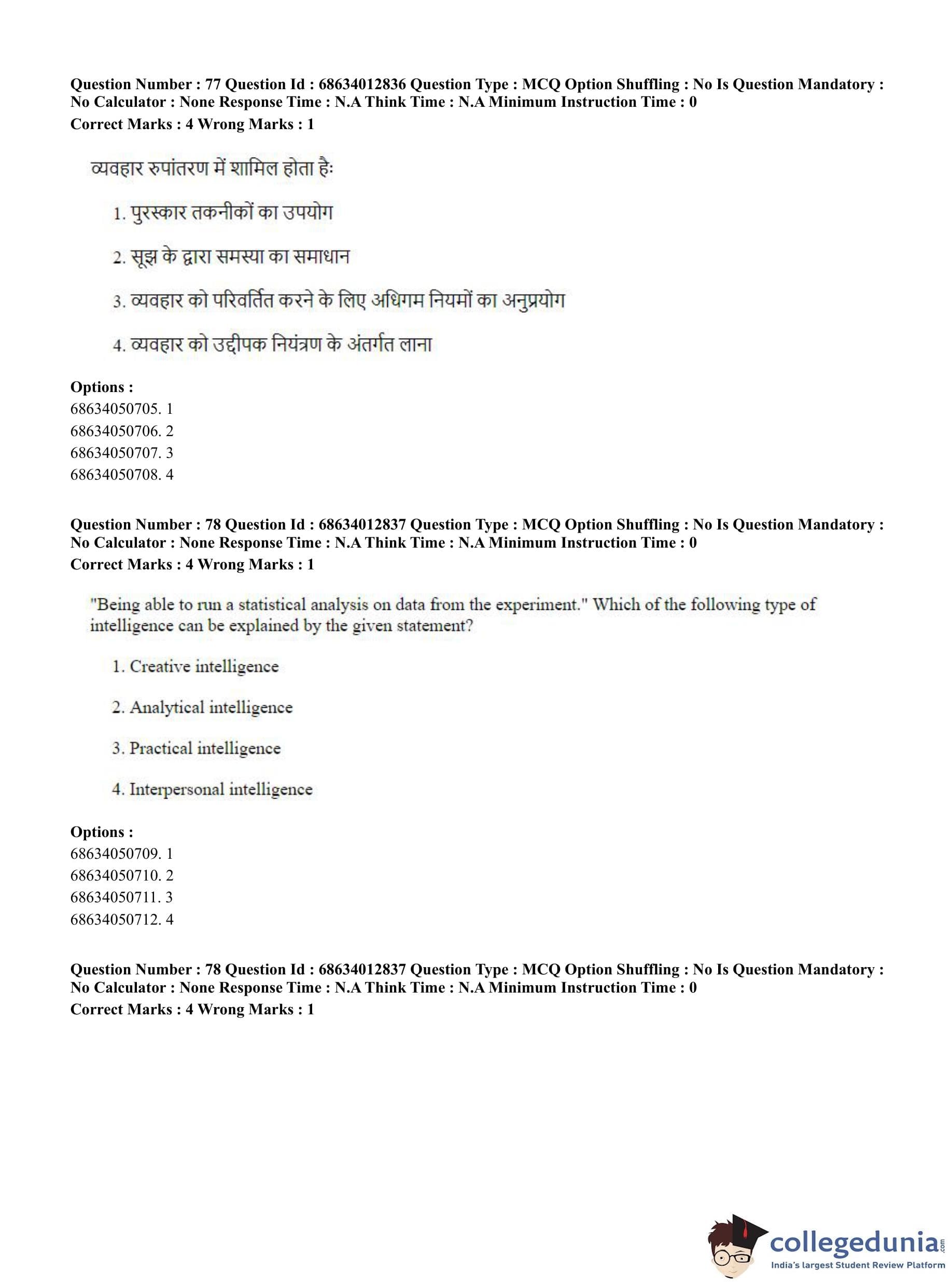 CUET PG 2023 Psychology Question Paper in Hindi (June 11 - Shift 1)