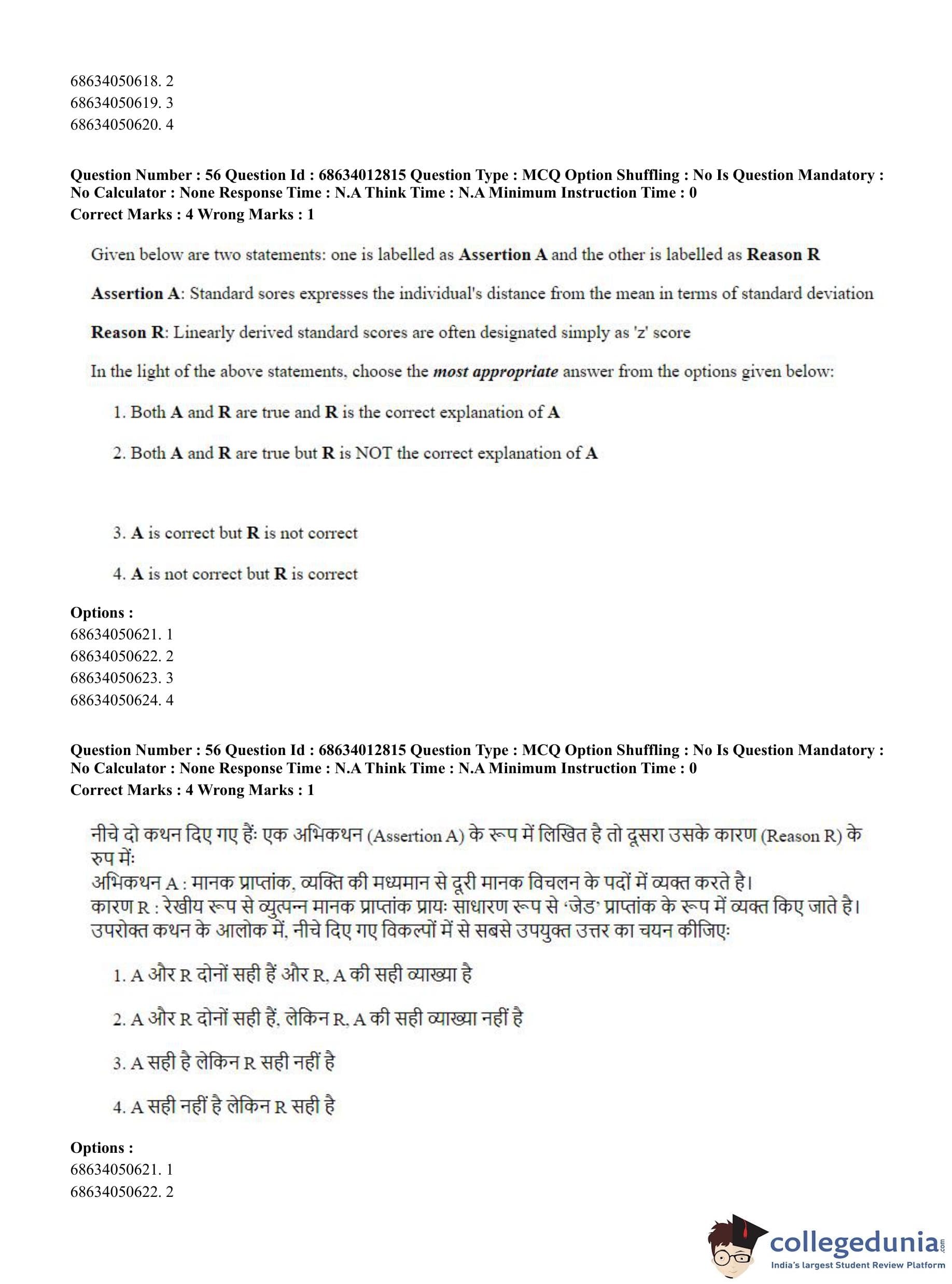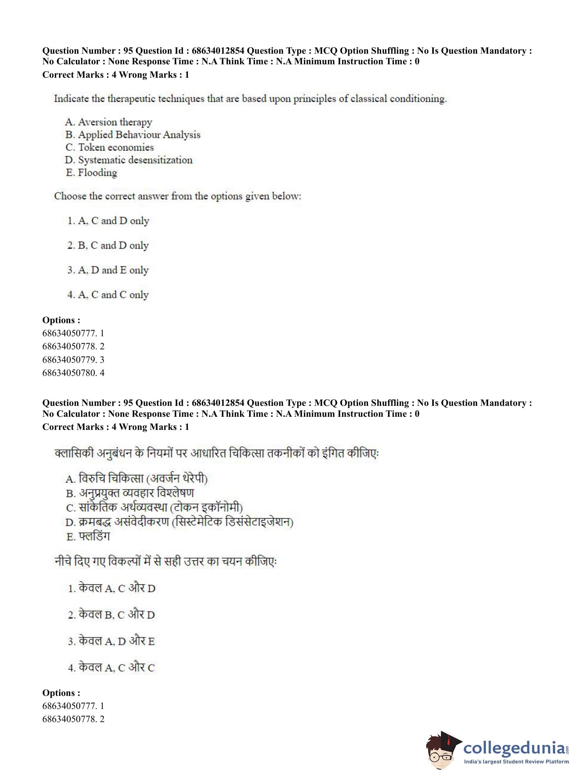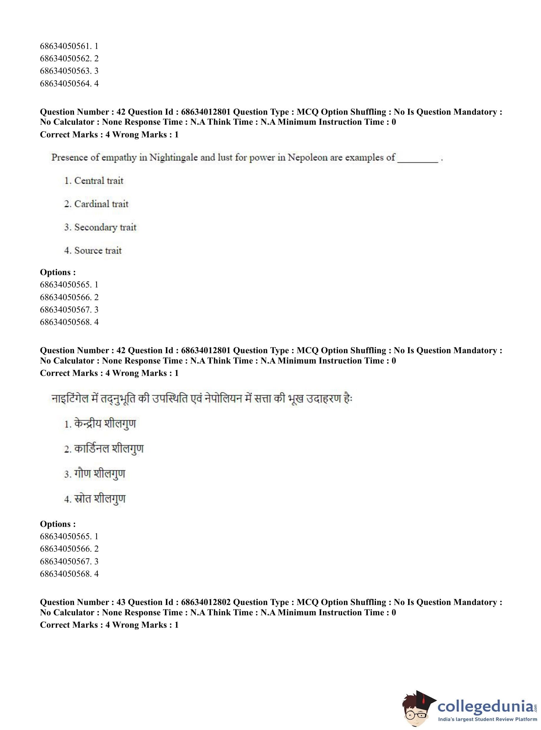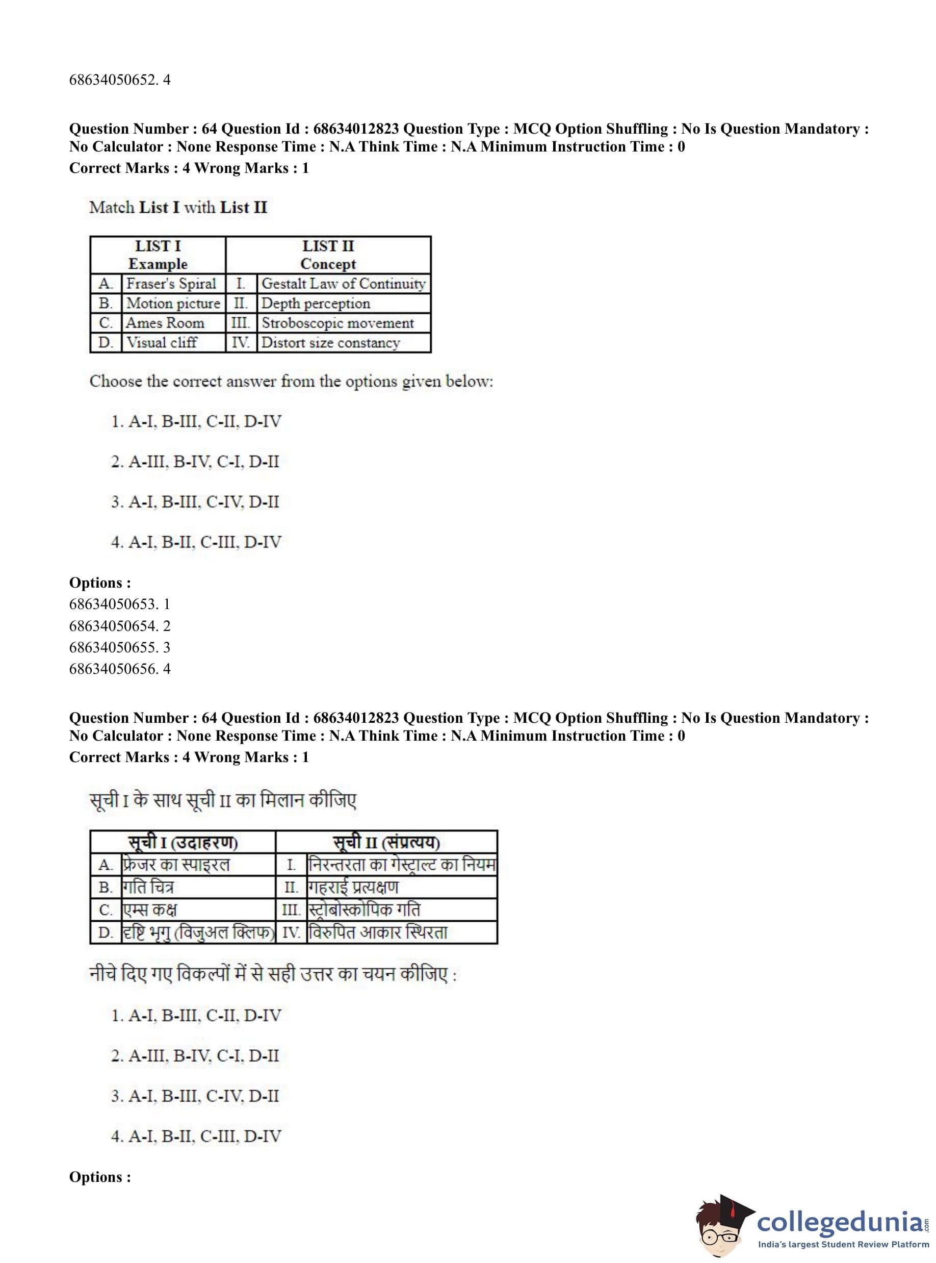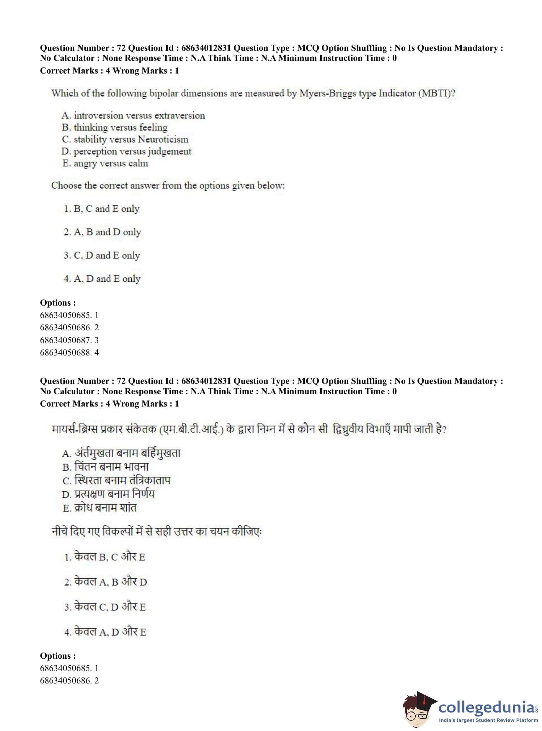 CUET PG 2023 Psychology Question Paper in Hindi (June 11 - Shift 1)