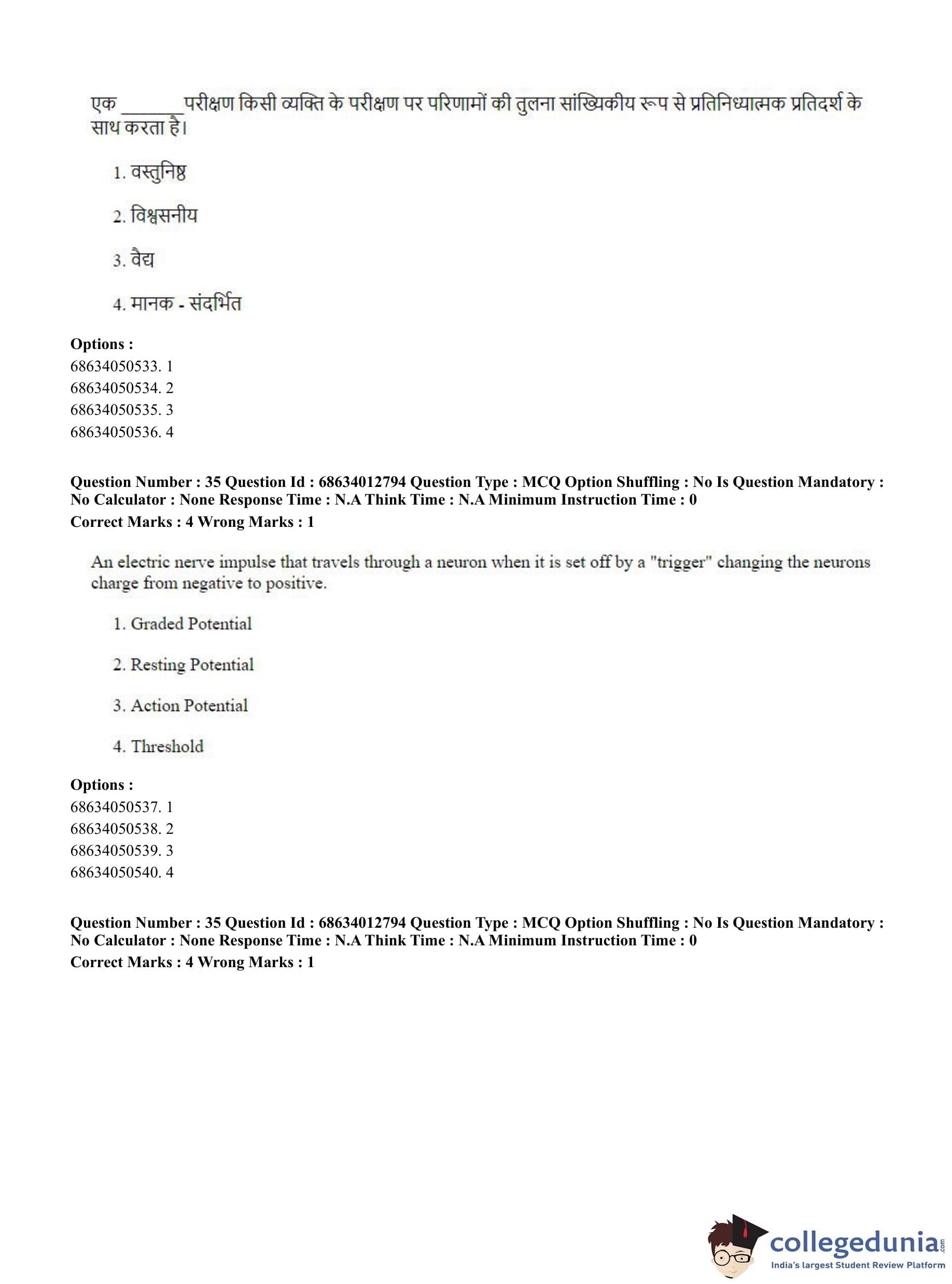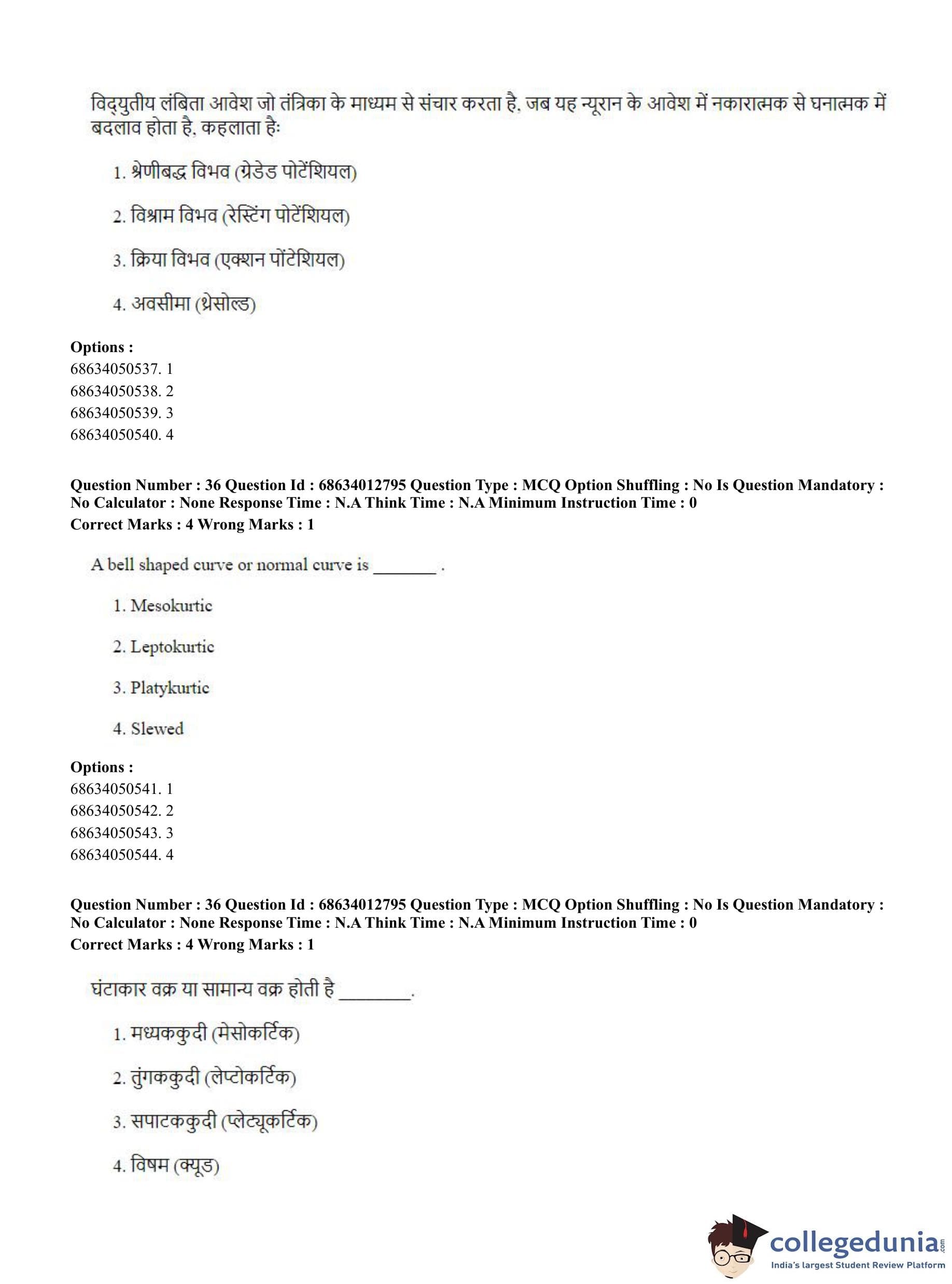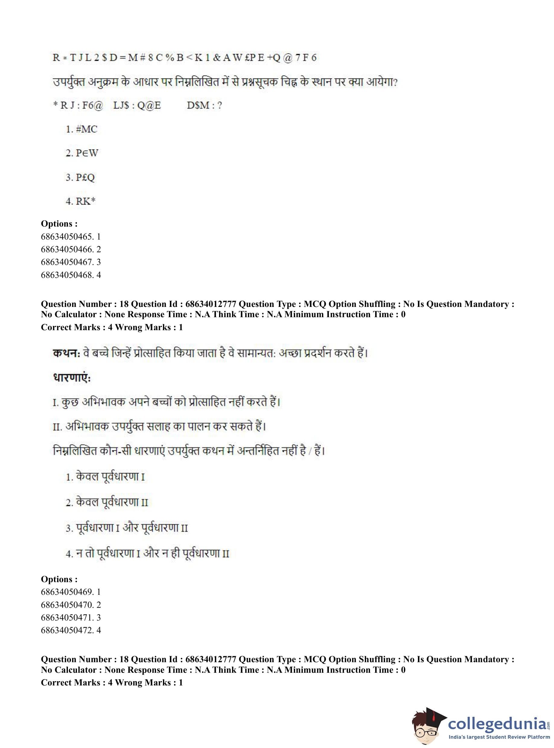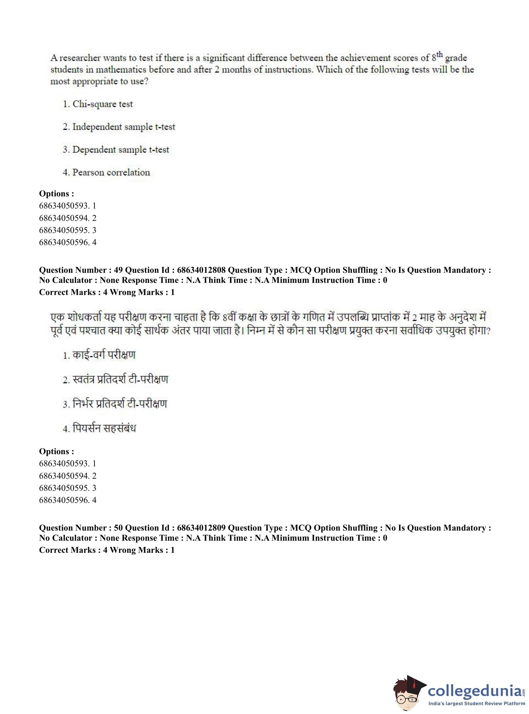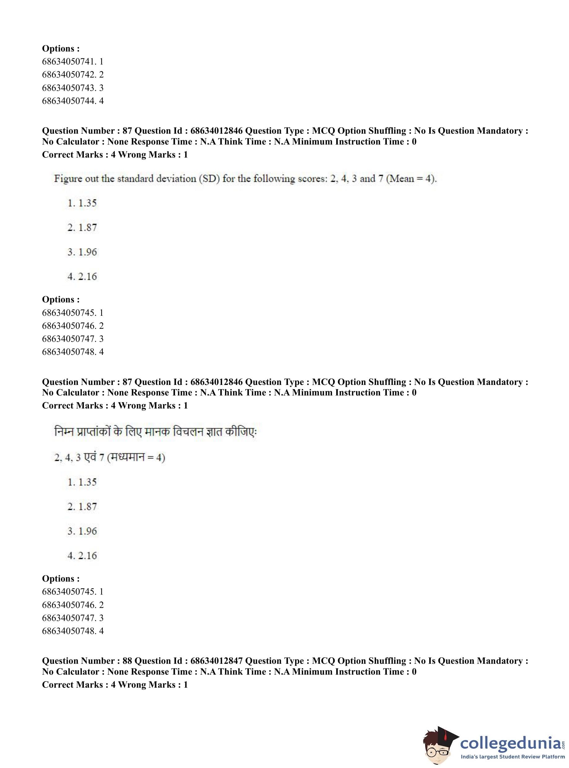 CUET PG 2023 Psychology Question Paper in Hindi (June 11 - Shift 1)