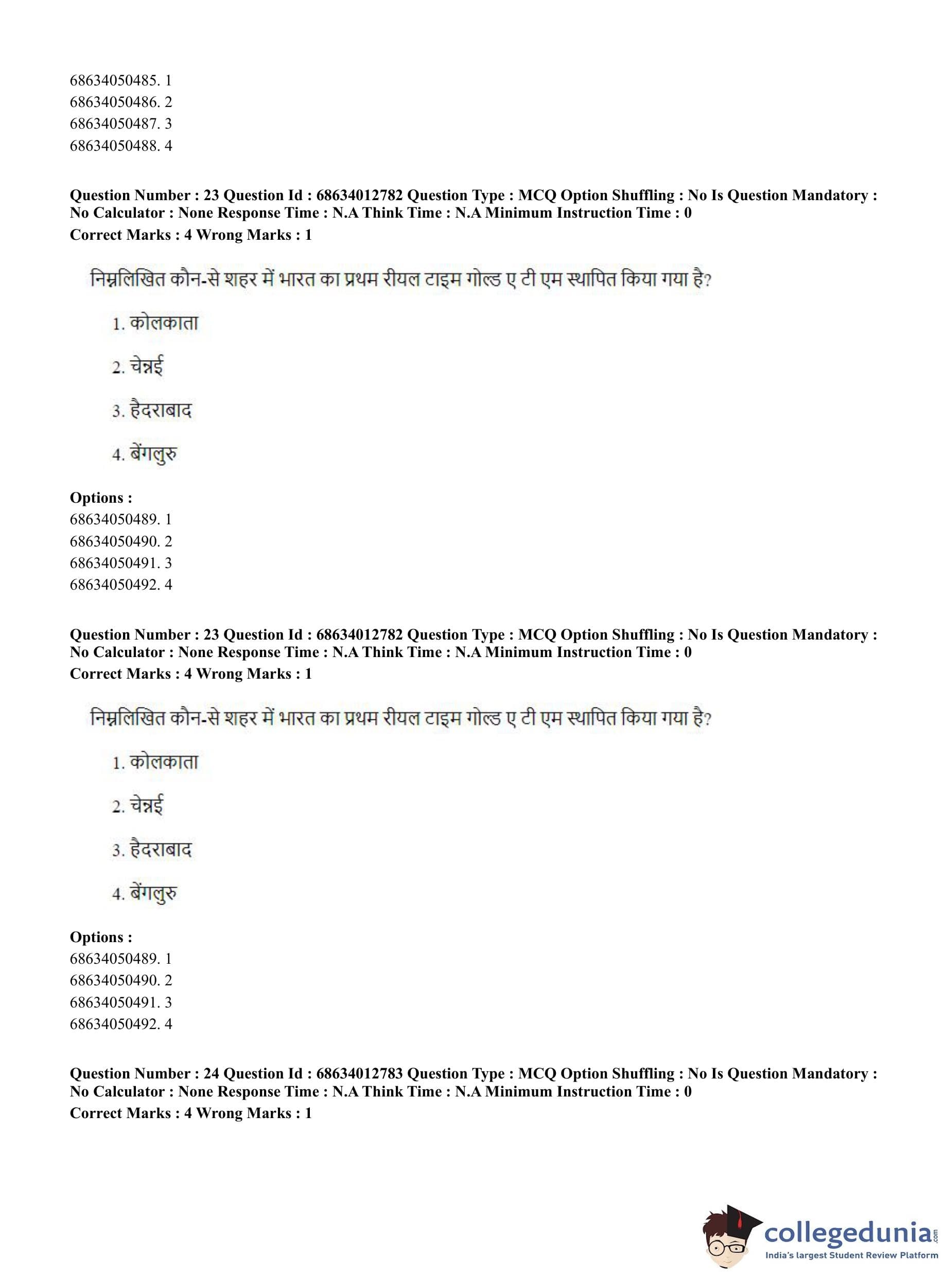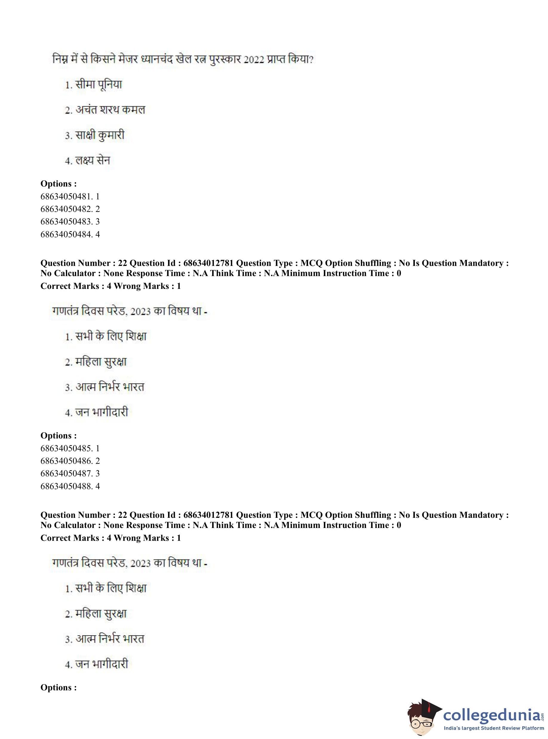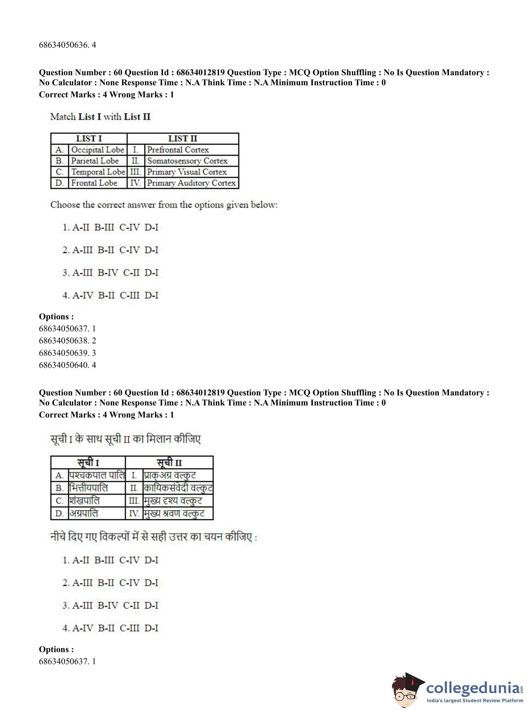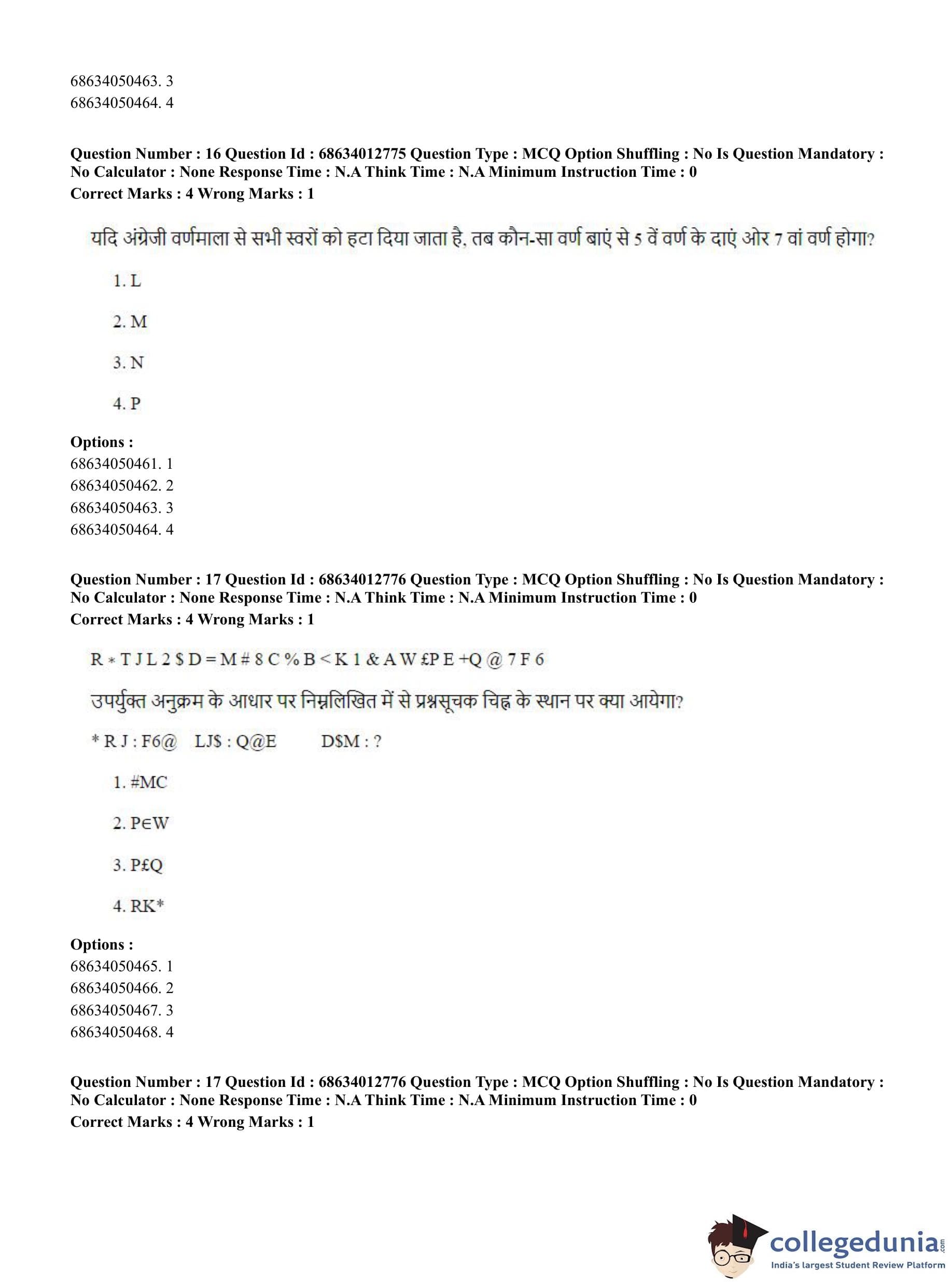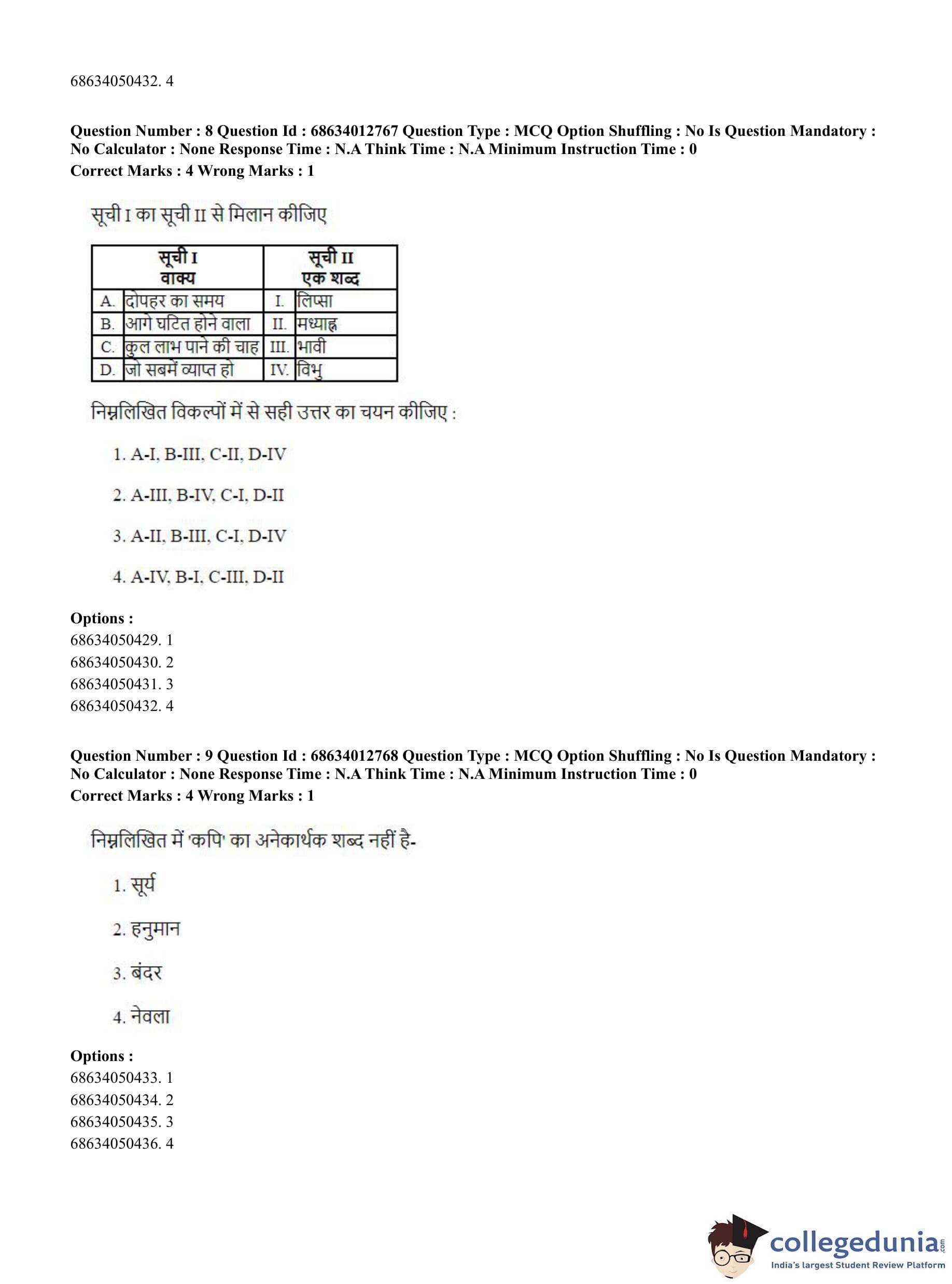 CUET PG 2023 Psychology Question Paper in Hindi (June 11 - Shift 1)