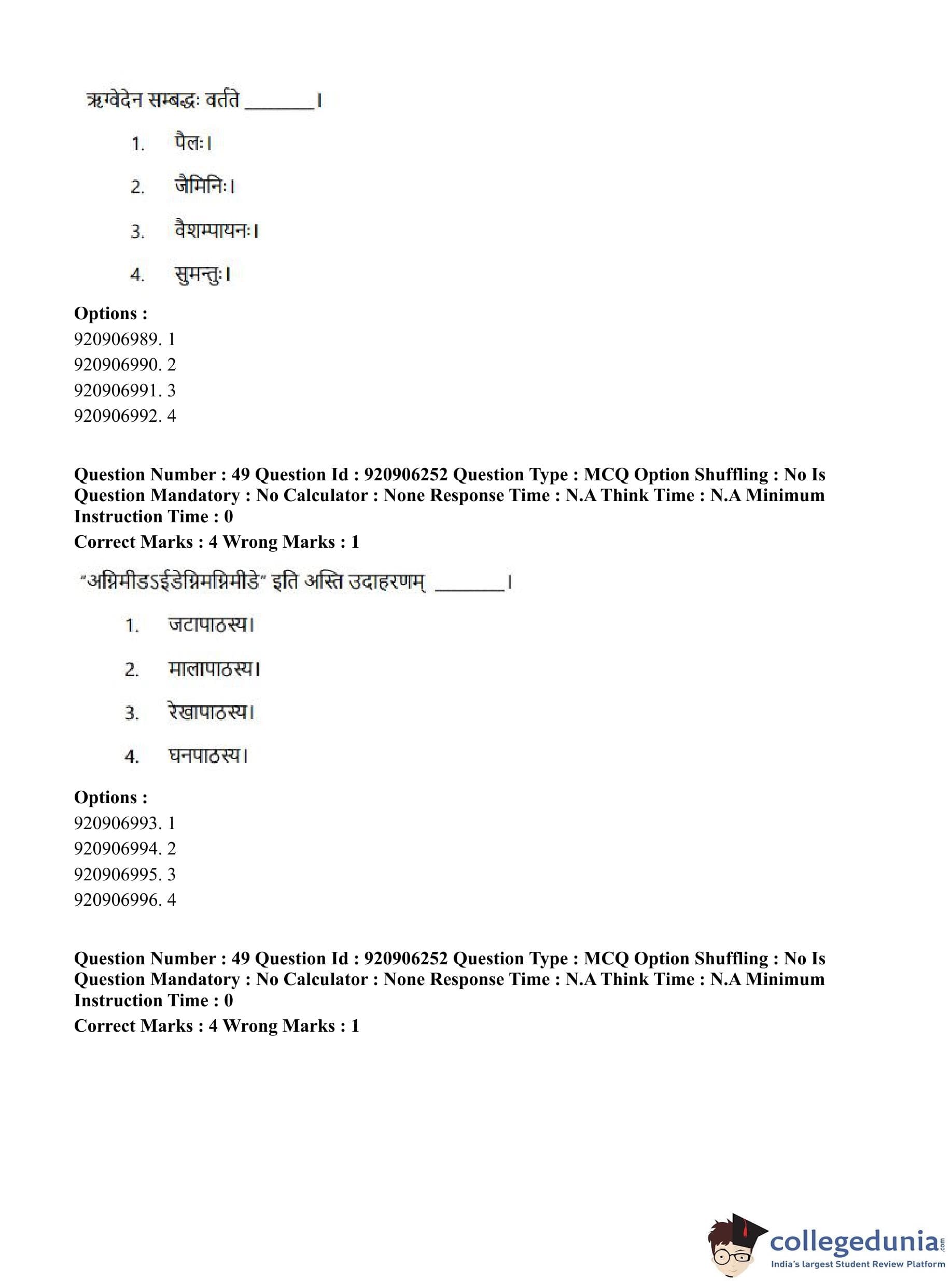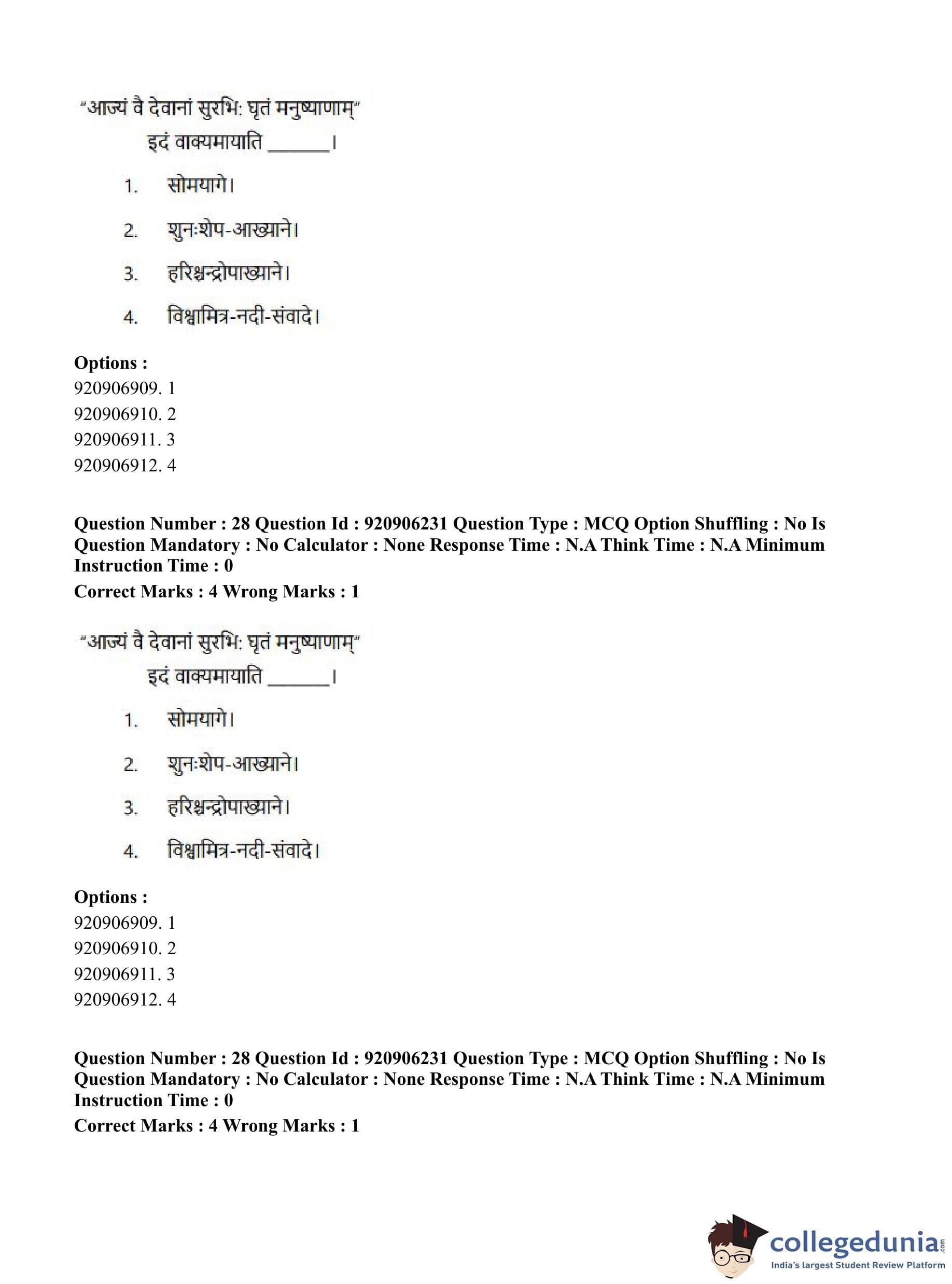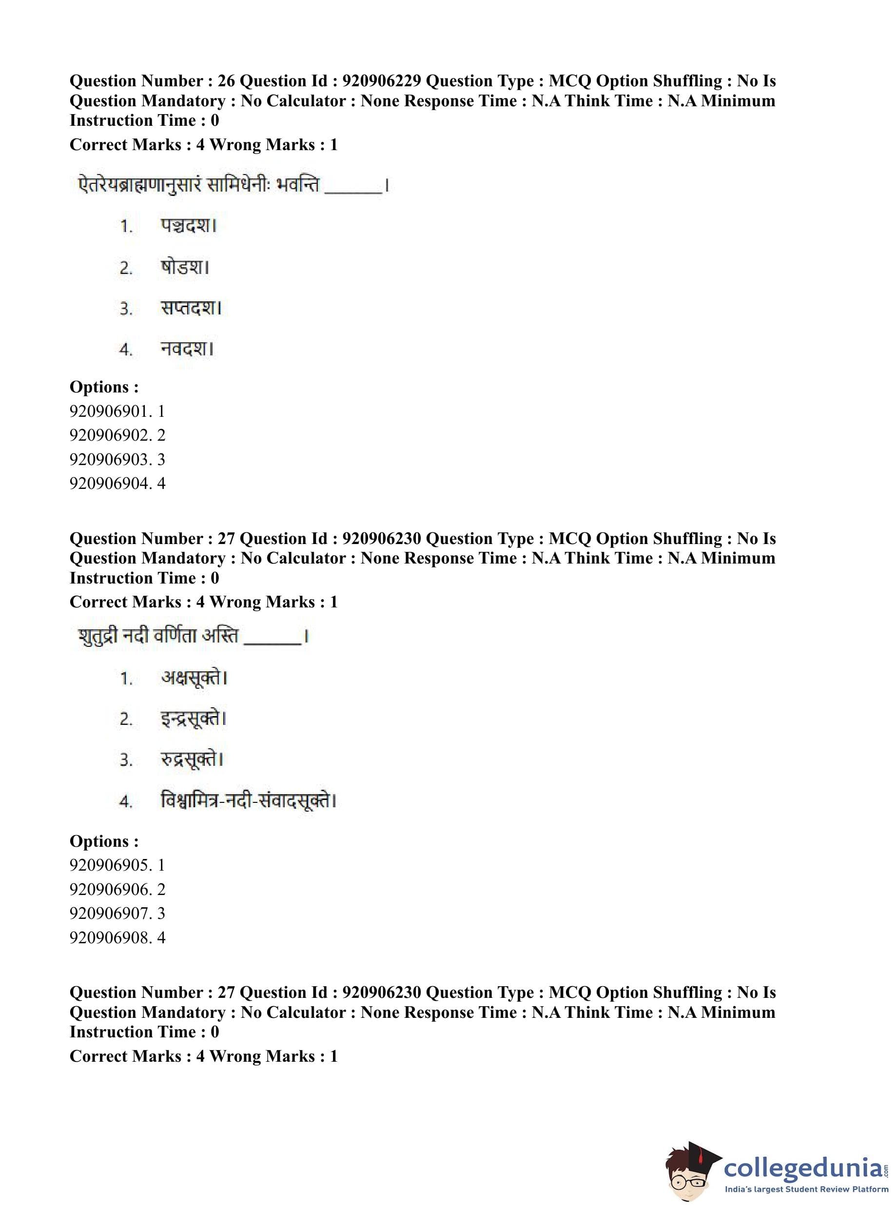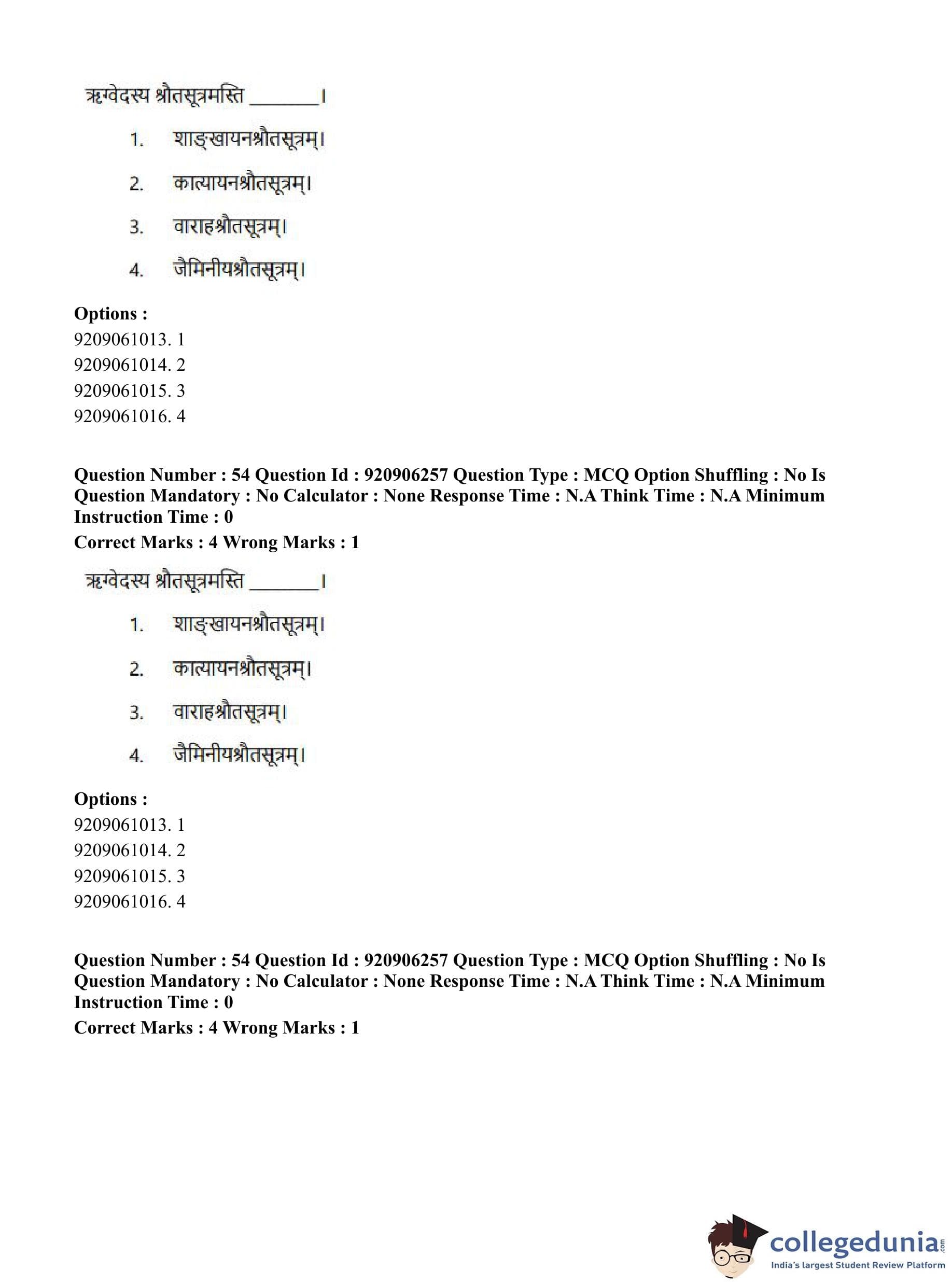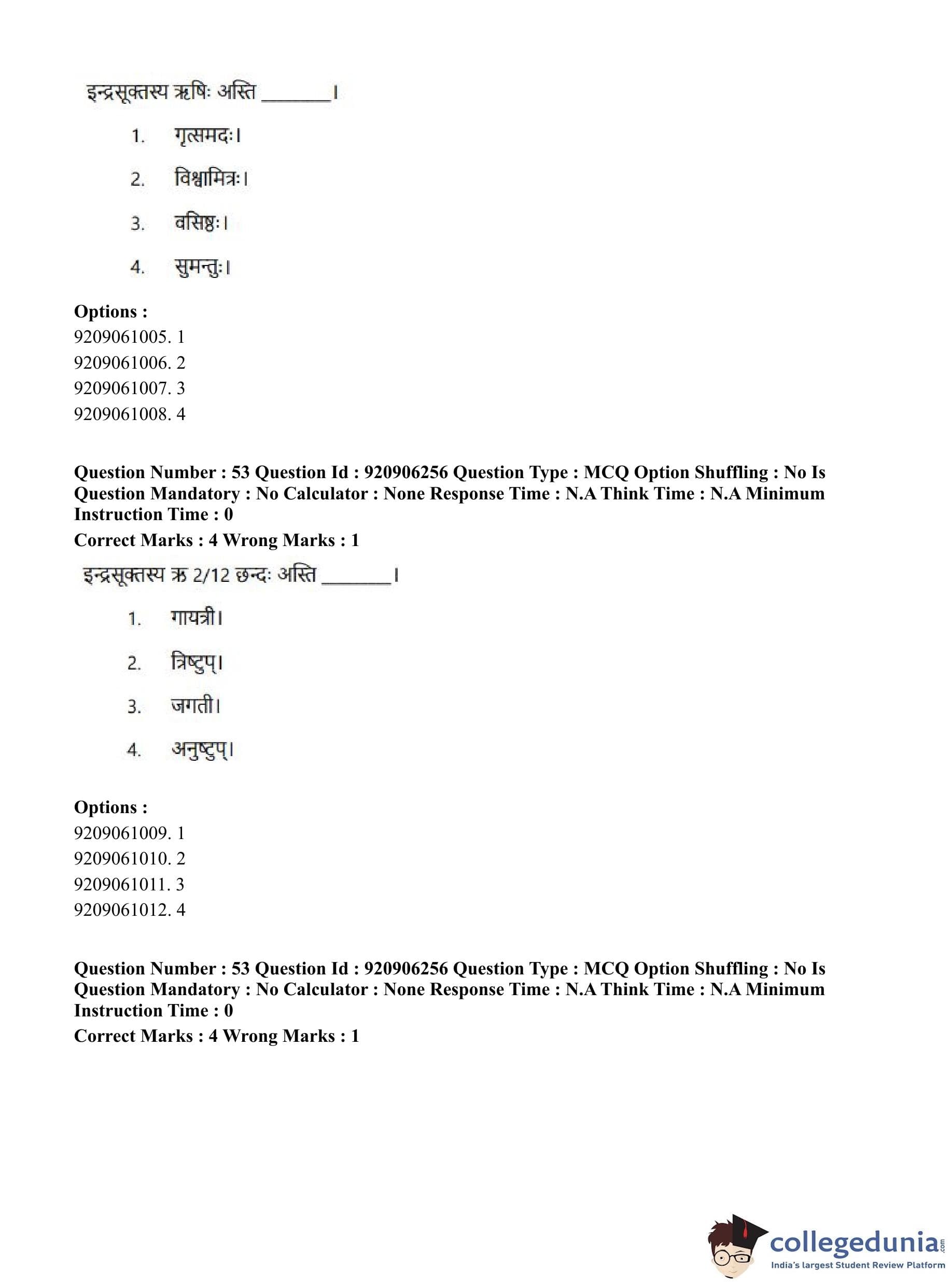 CUET PG 2023 Rigveda Question Paper in English (June 6 - Shift 1)