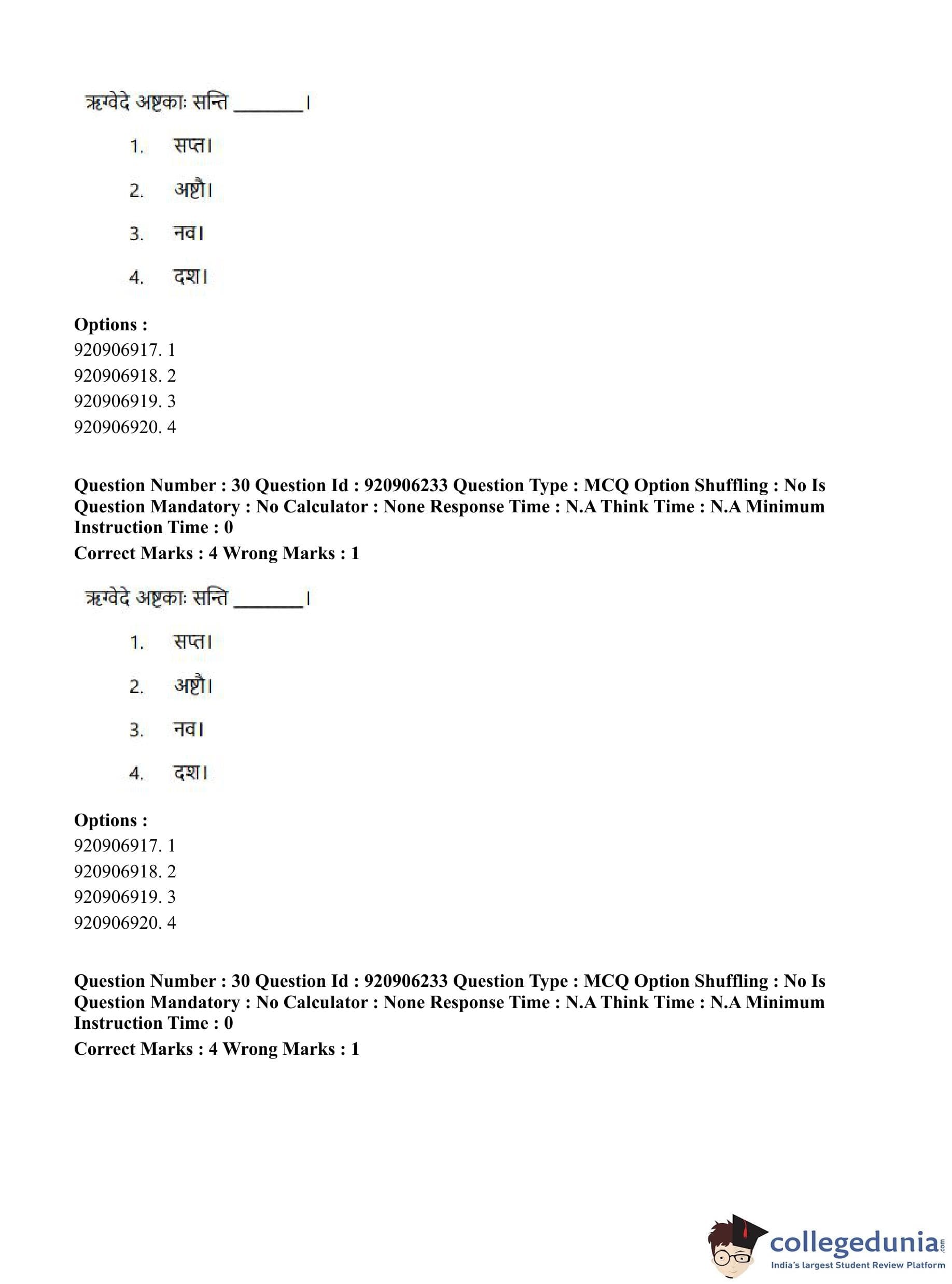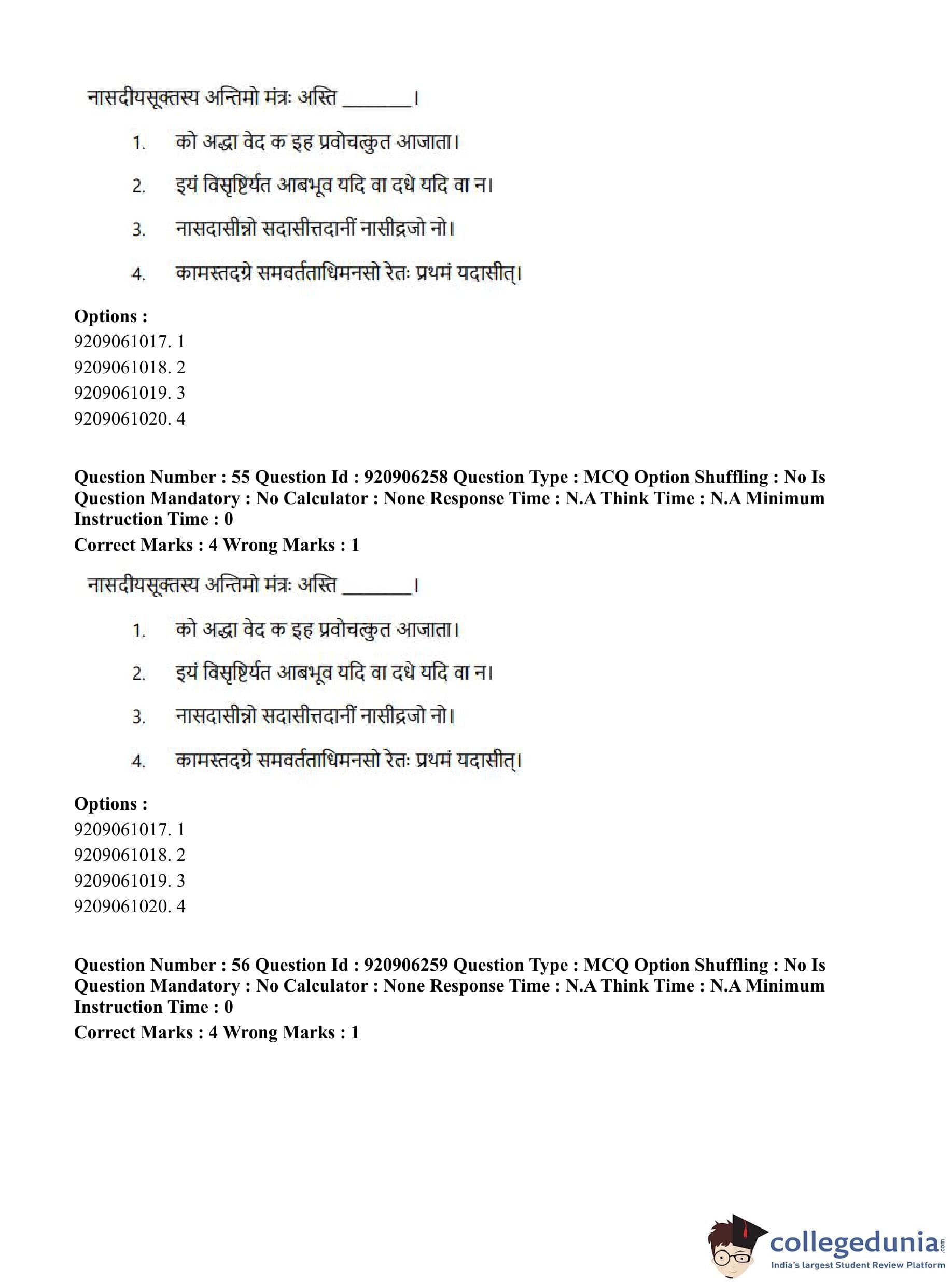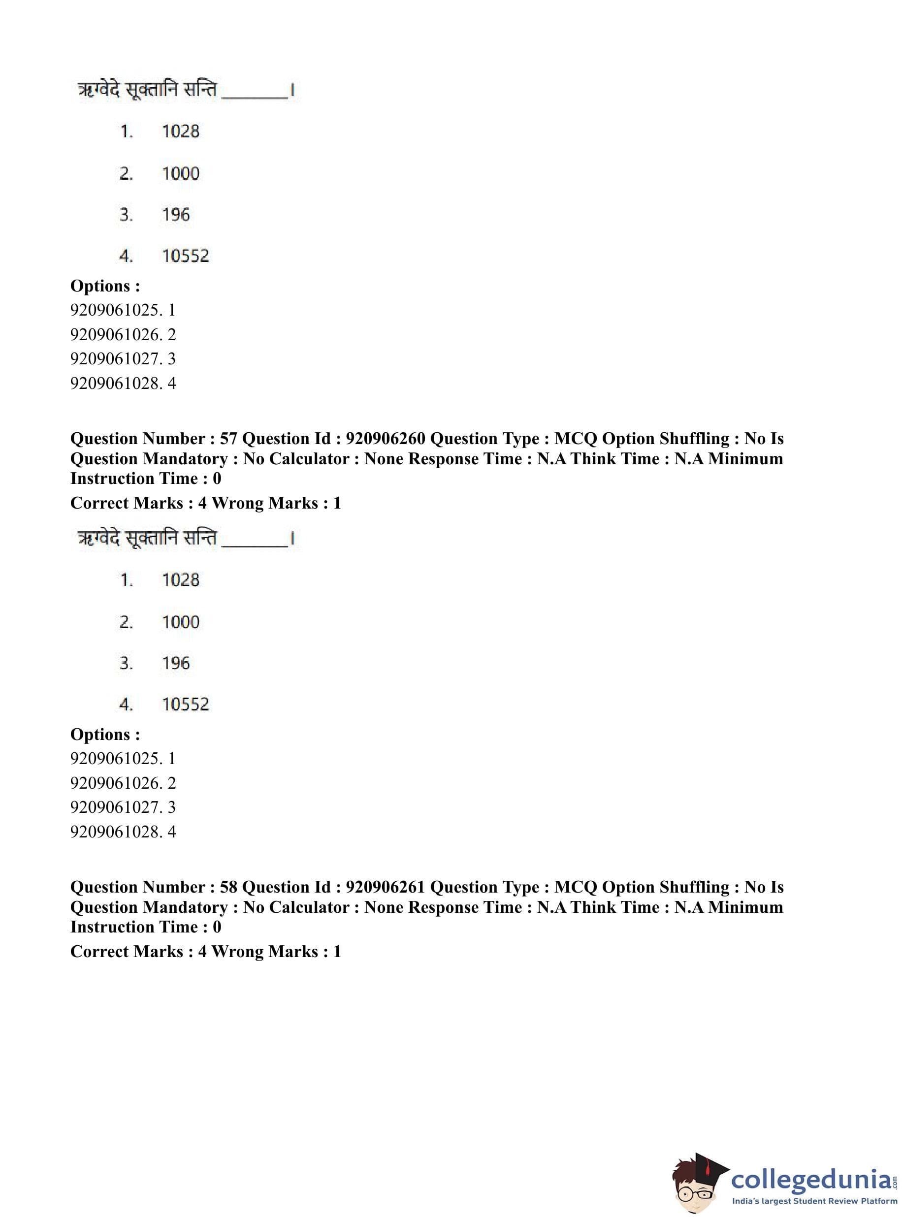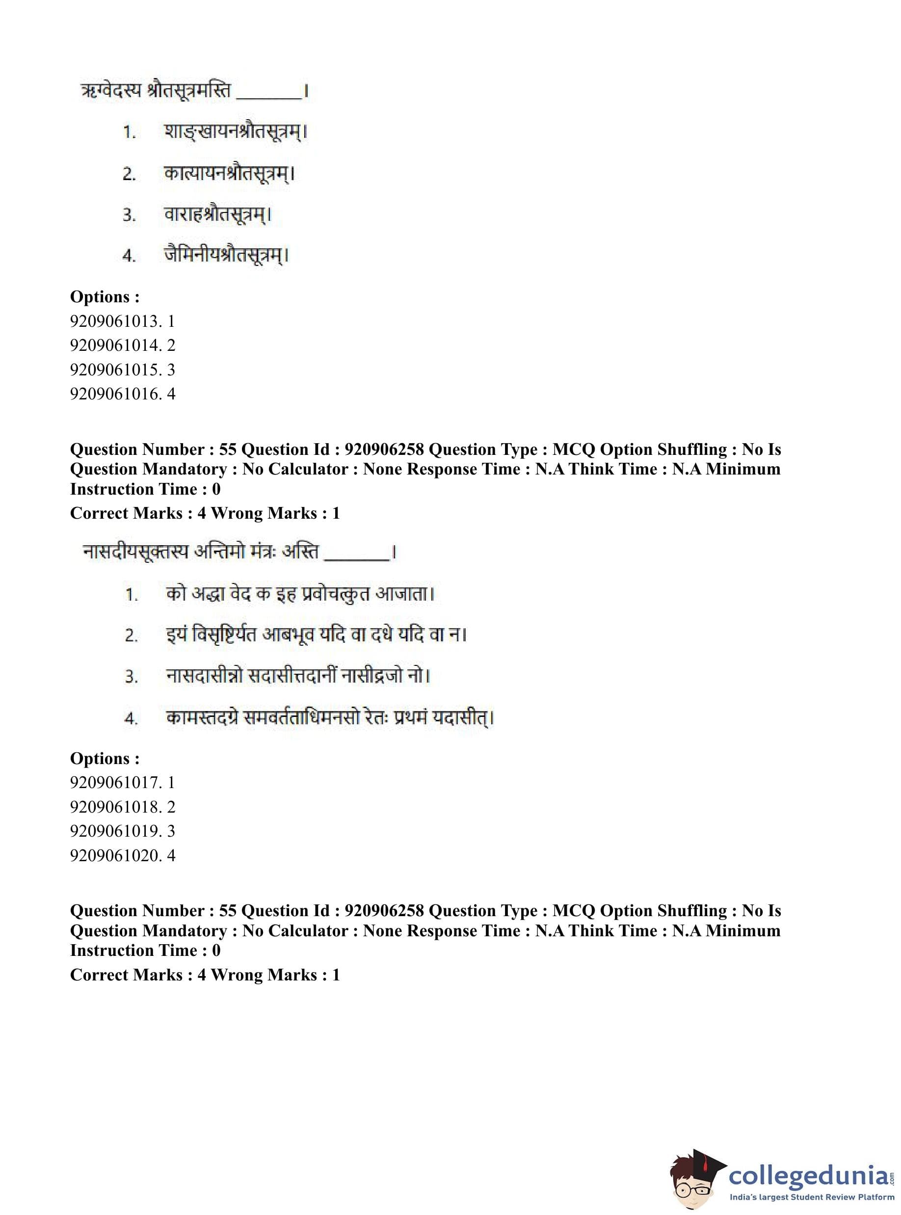 CUET PG 2023 Rigveda Question Paper in English (June 6 - Shift 1)
