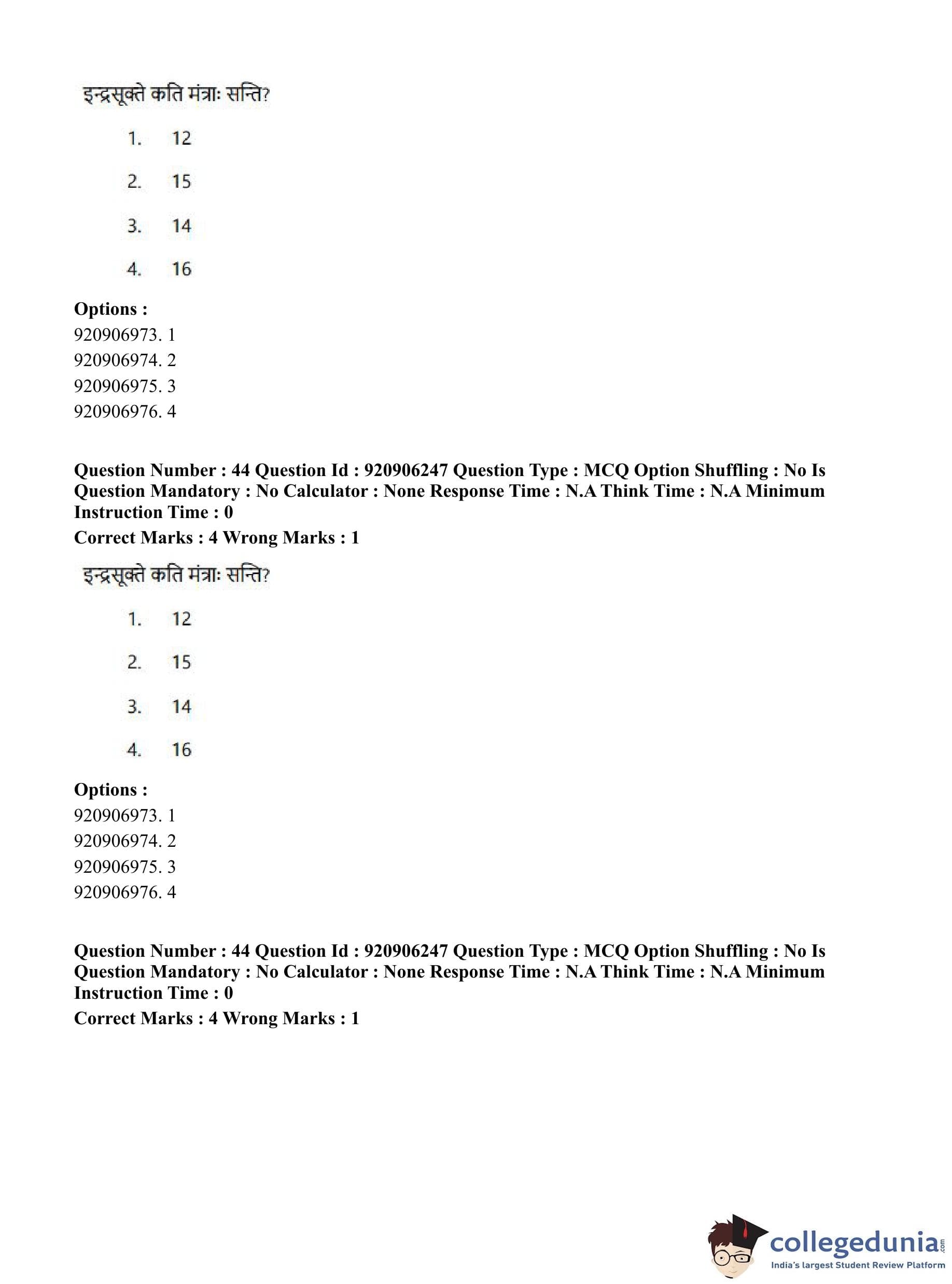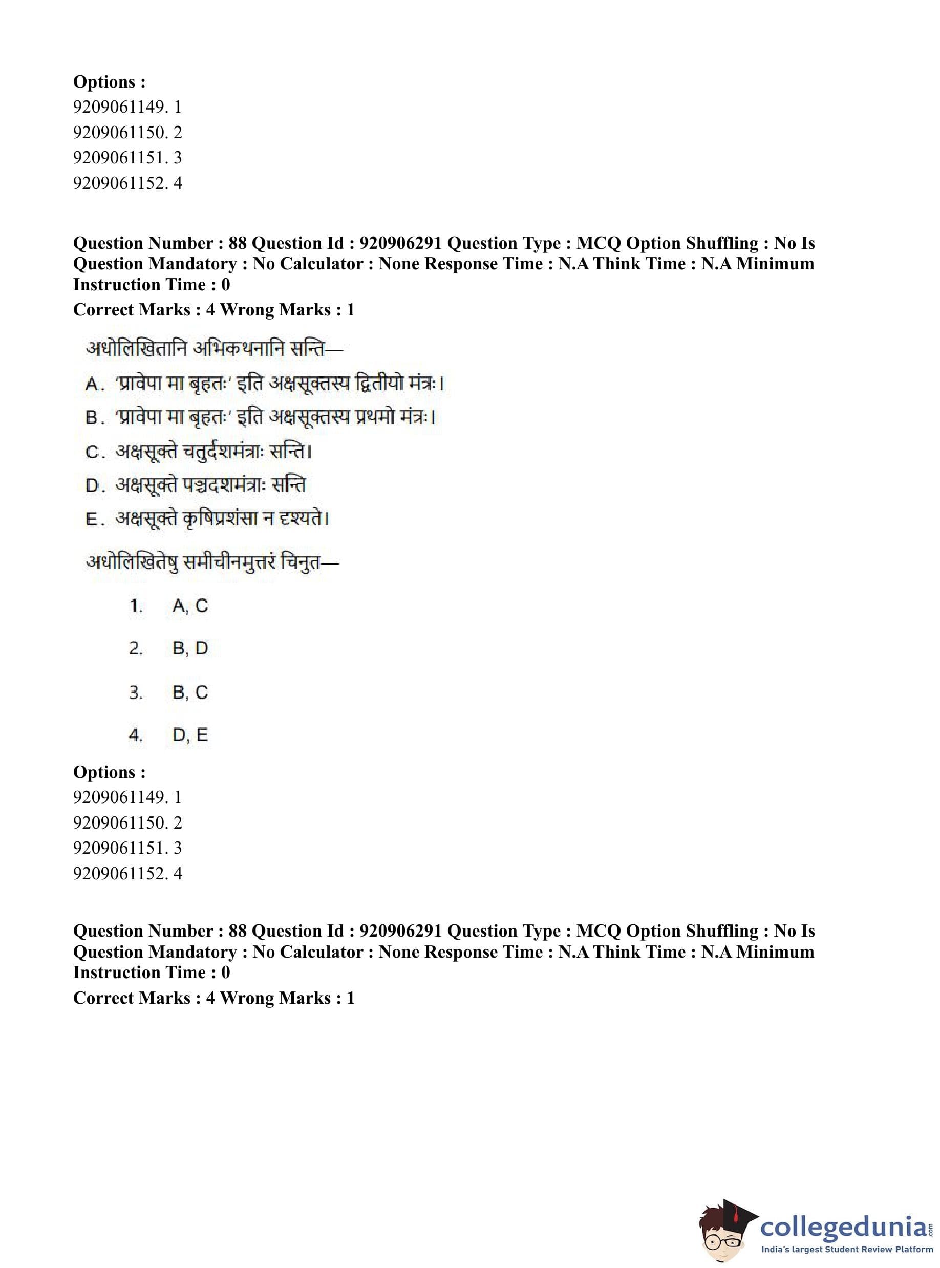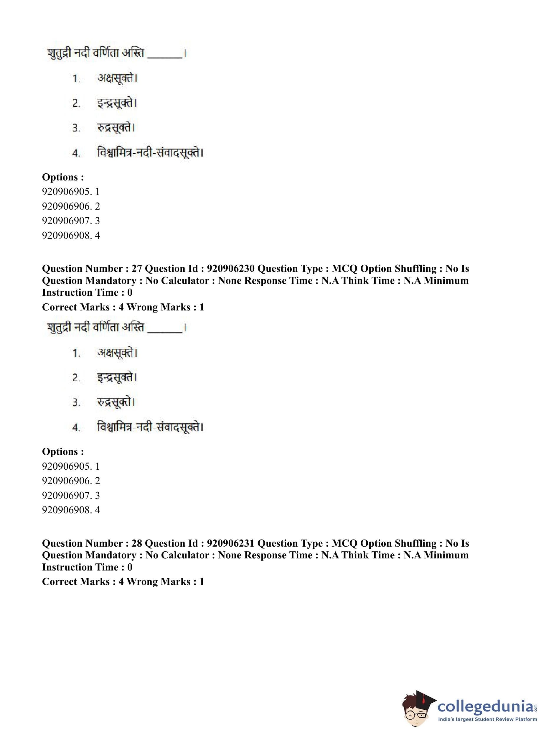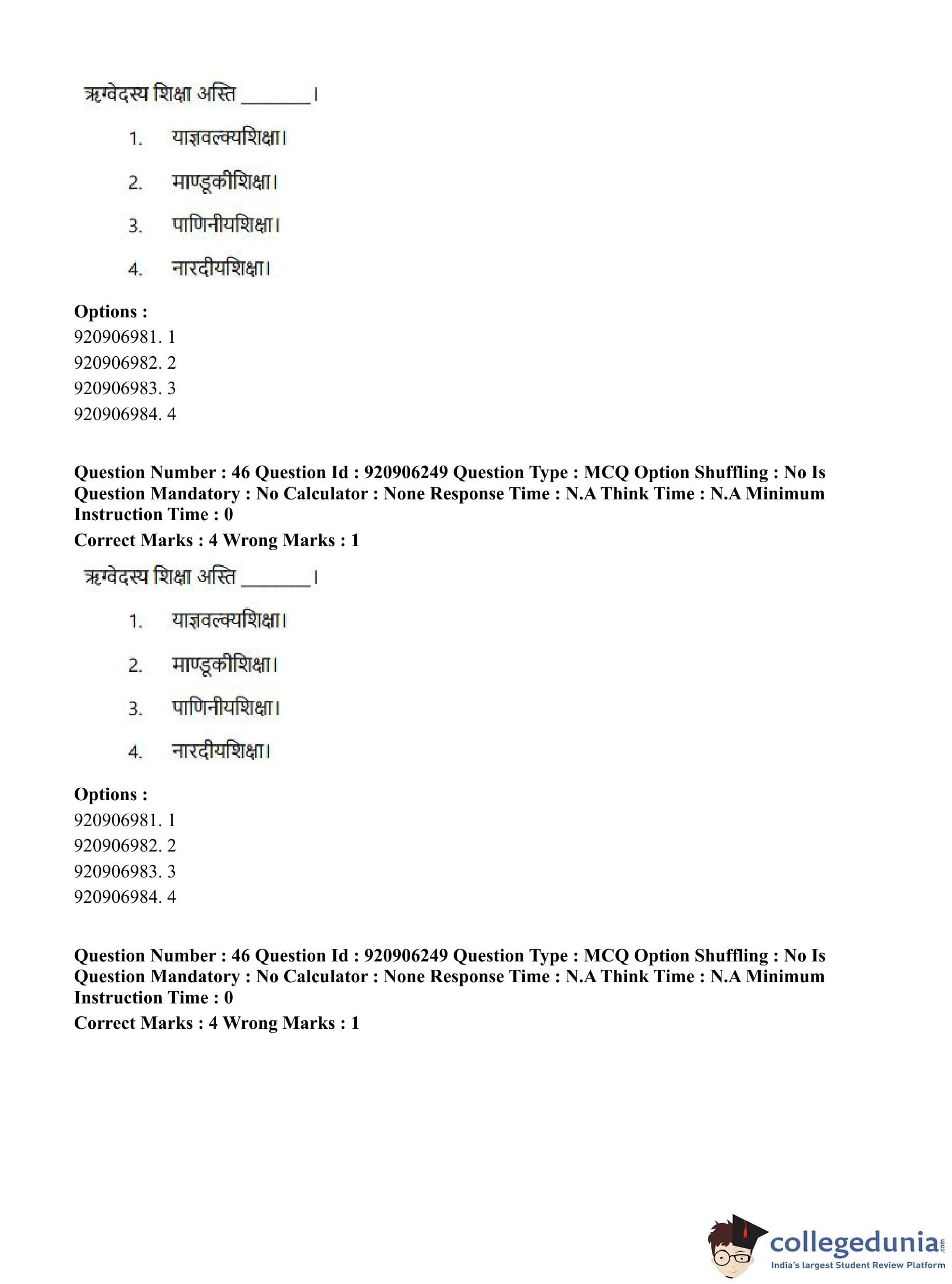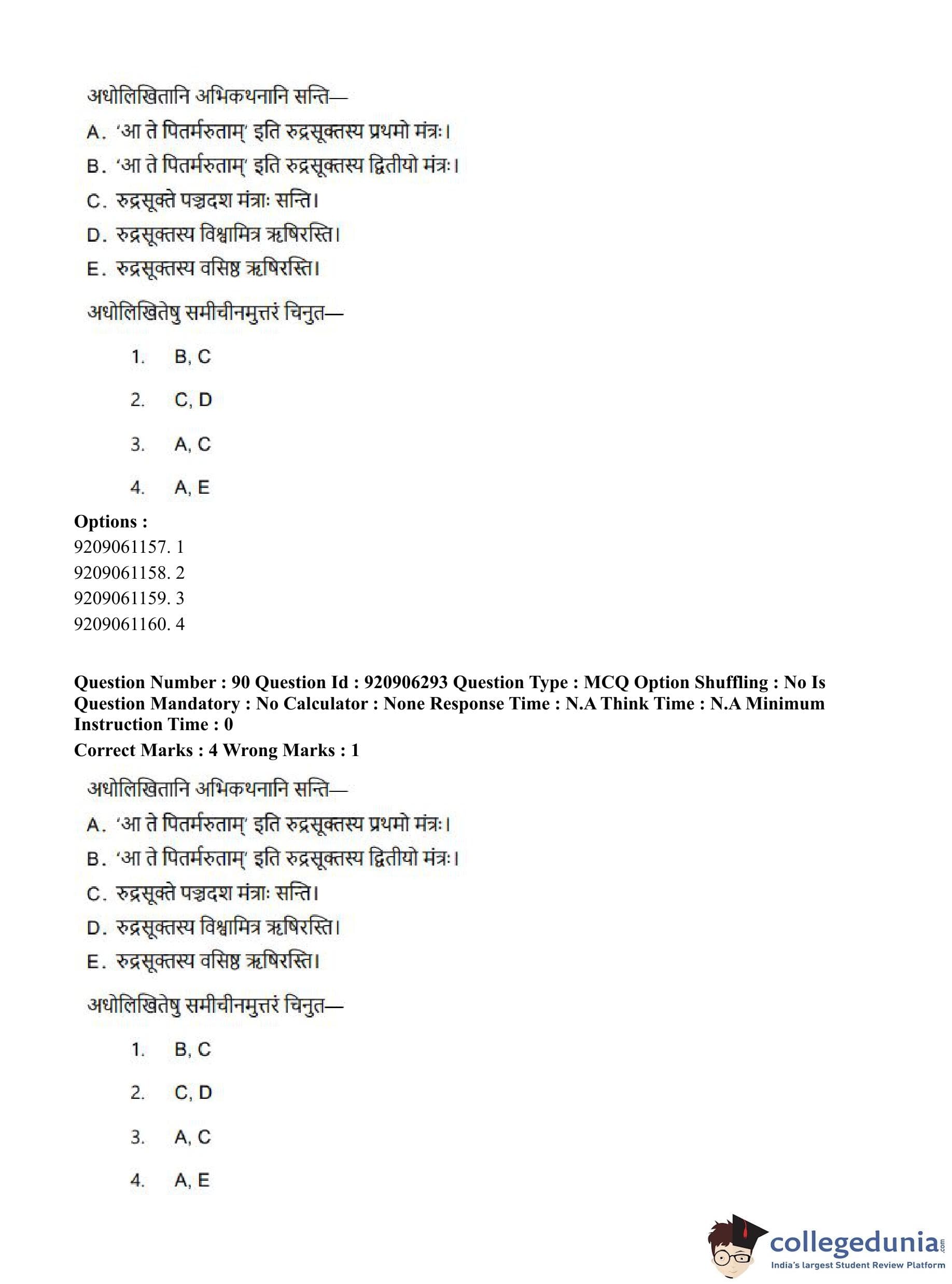 CUET PG 2023 Rigveda Question Paper in English (June 6 - Shift 1)