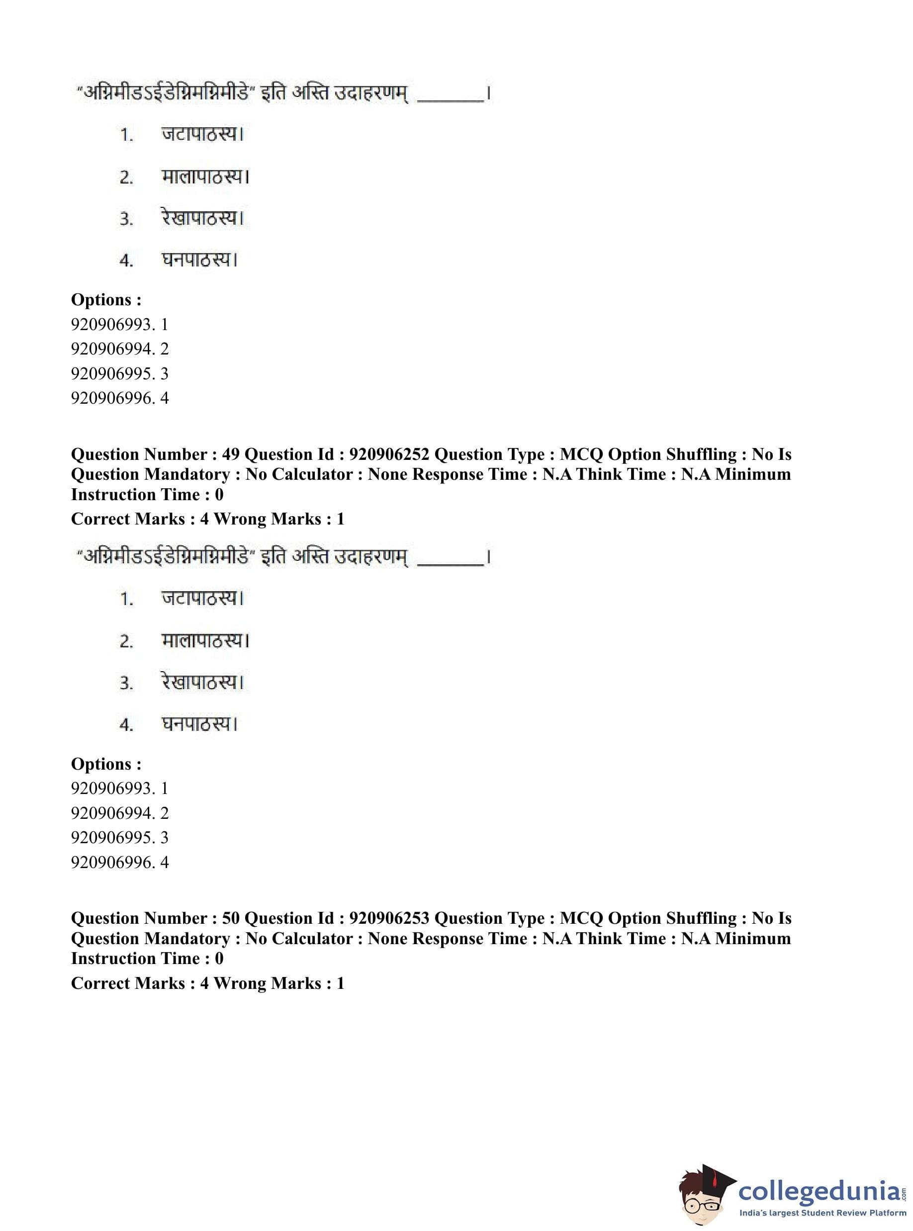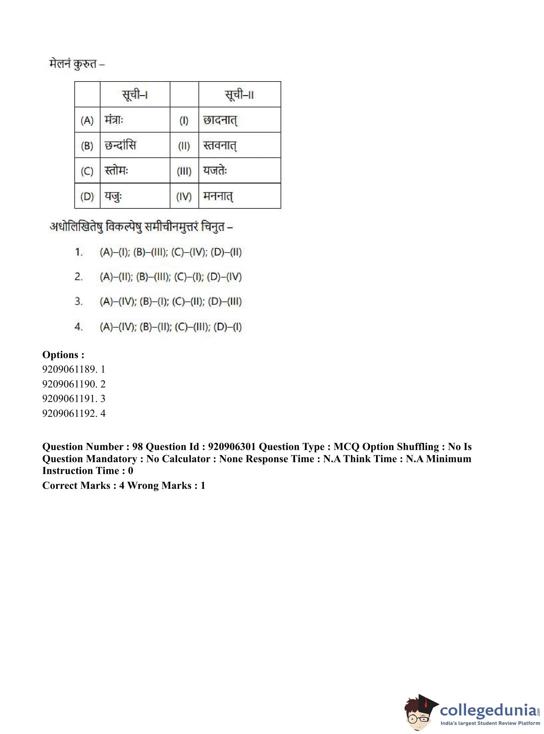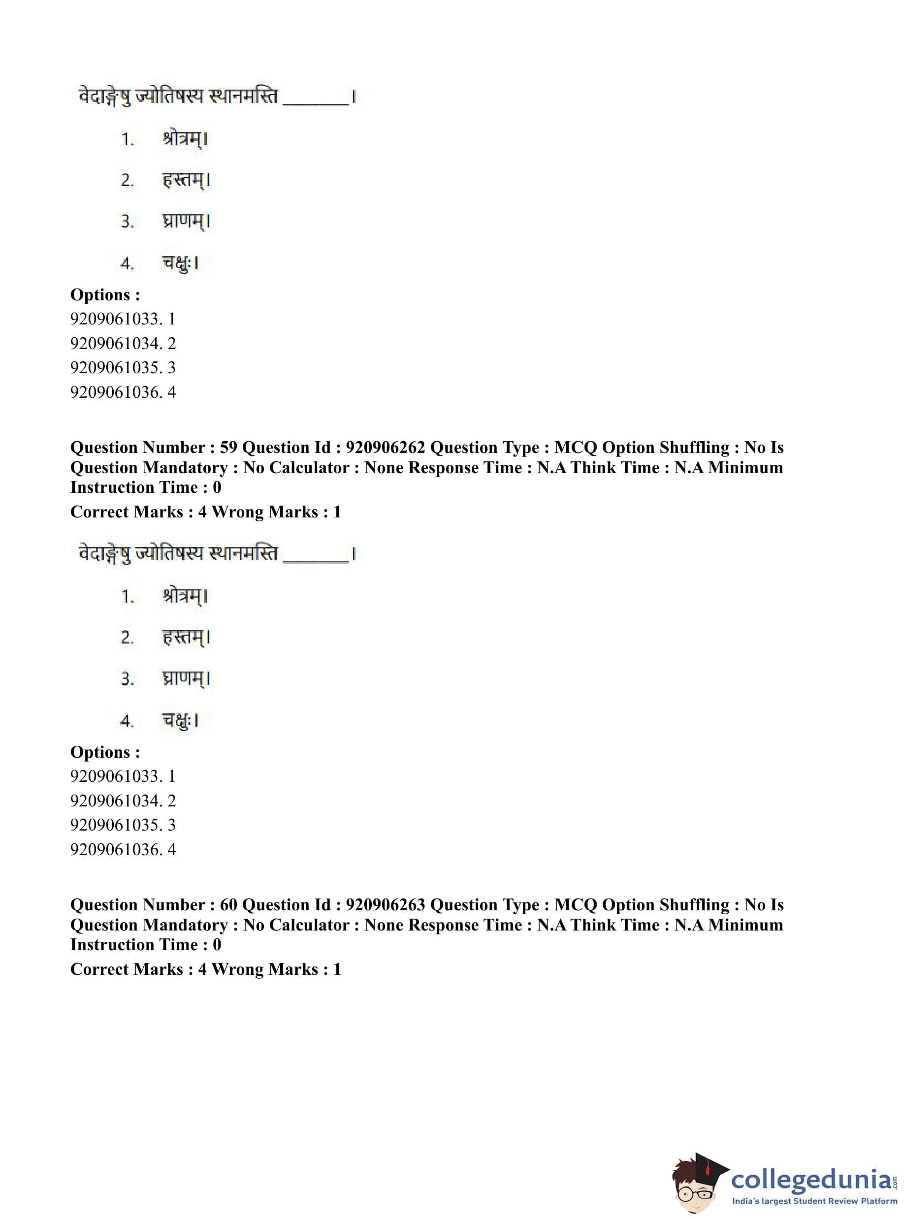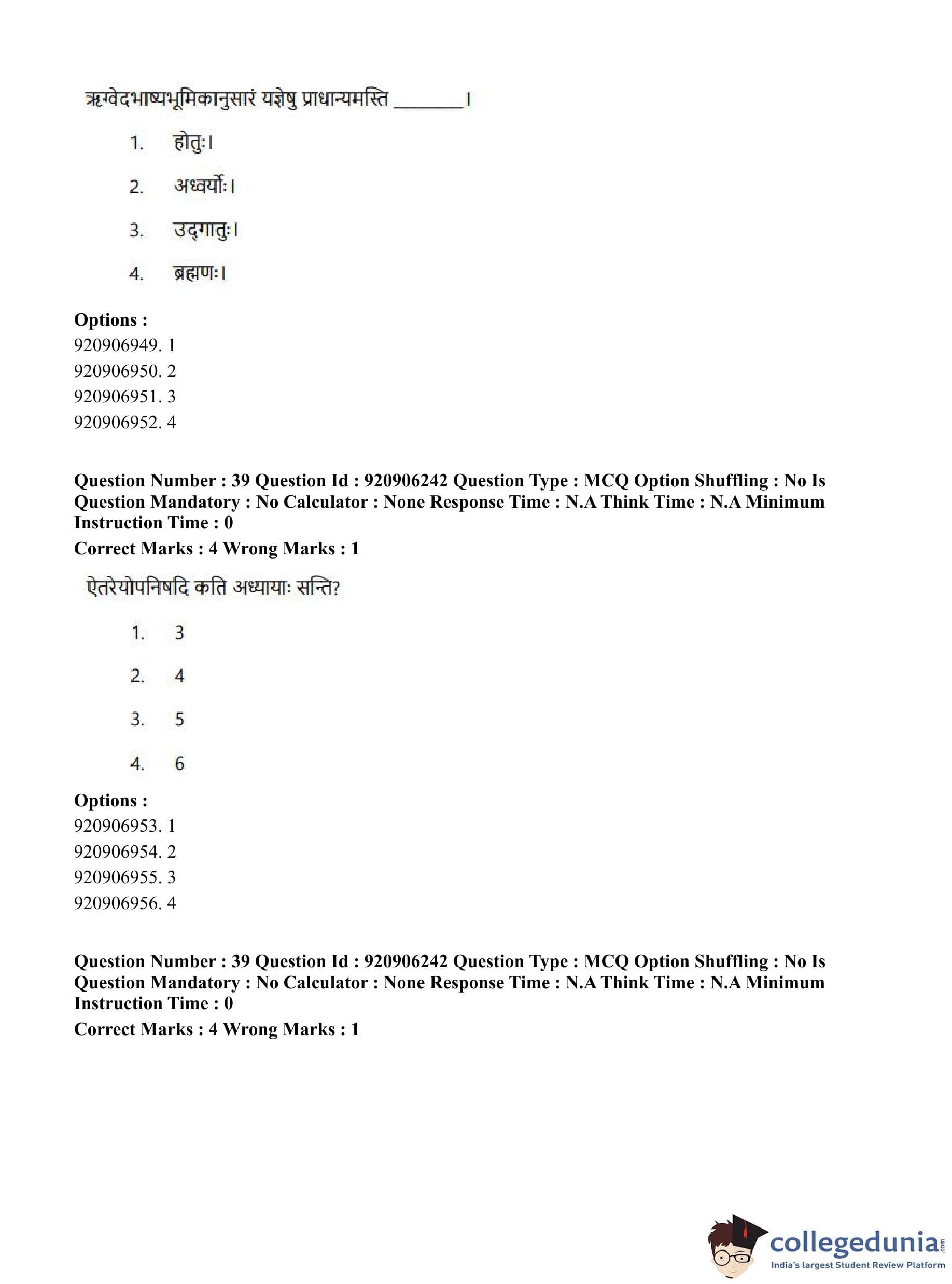 CUET PG 2023 Rigveda Question Paper in English (June 6 - Shift 1)