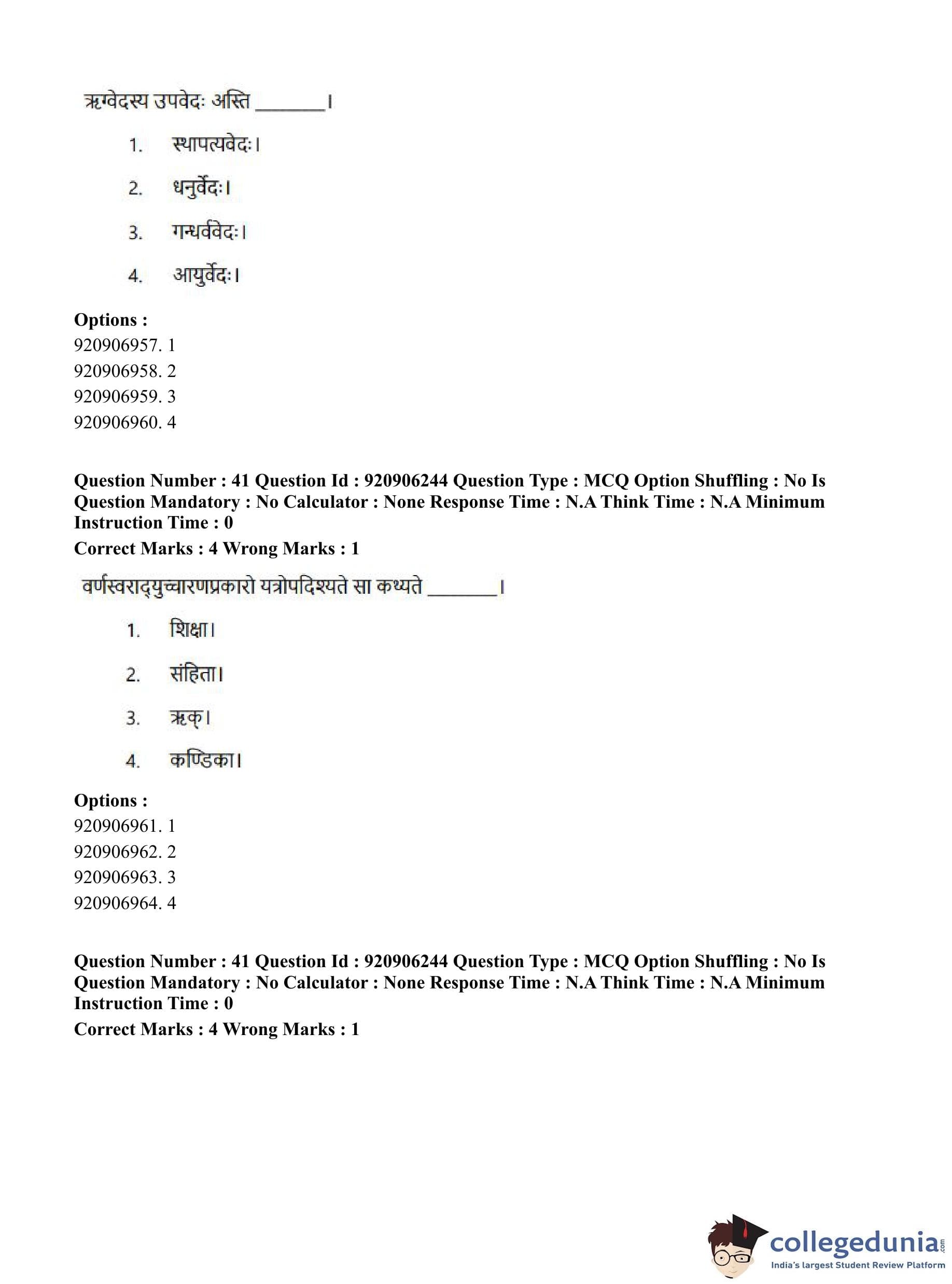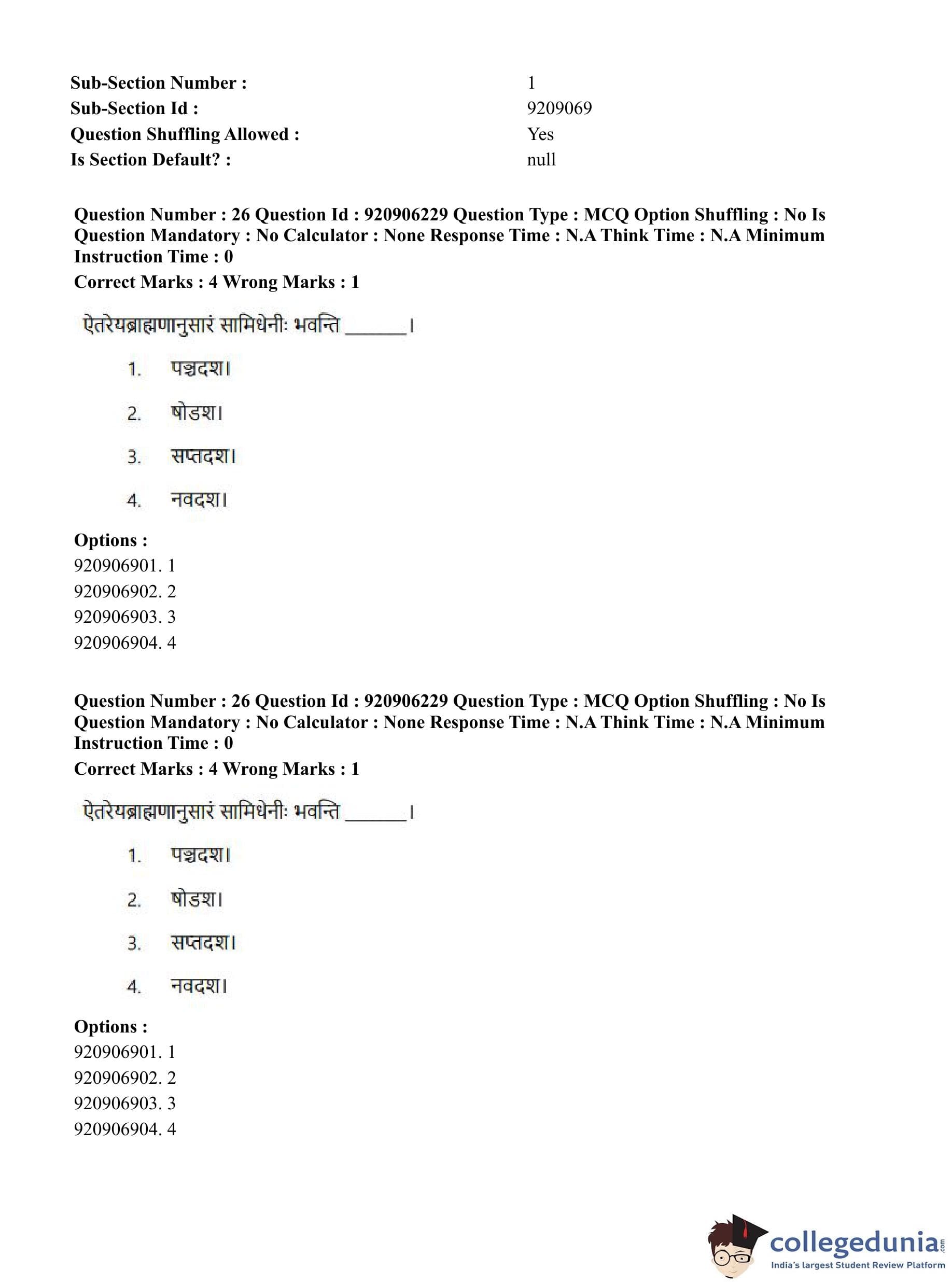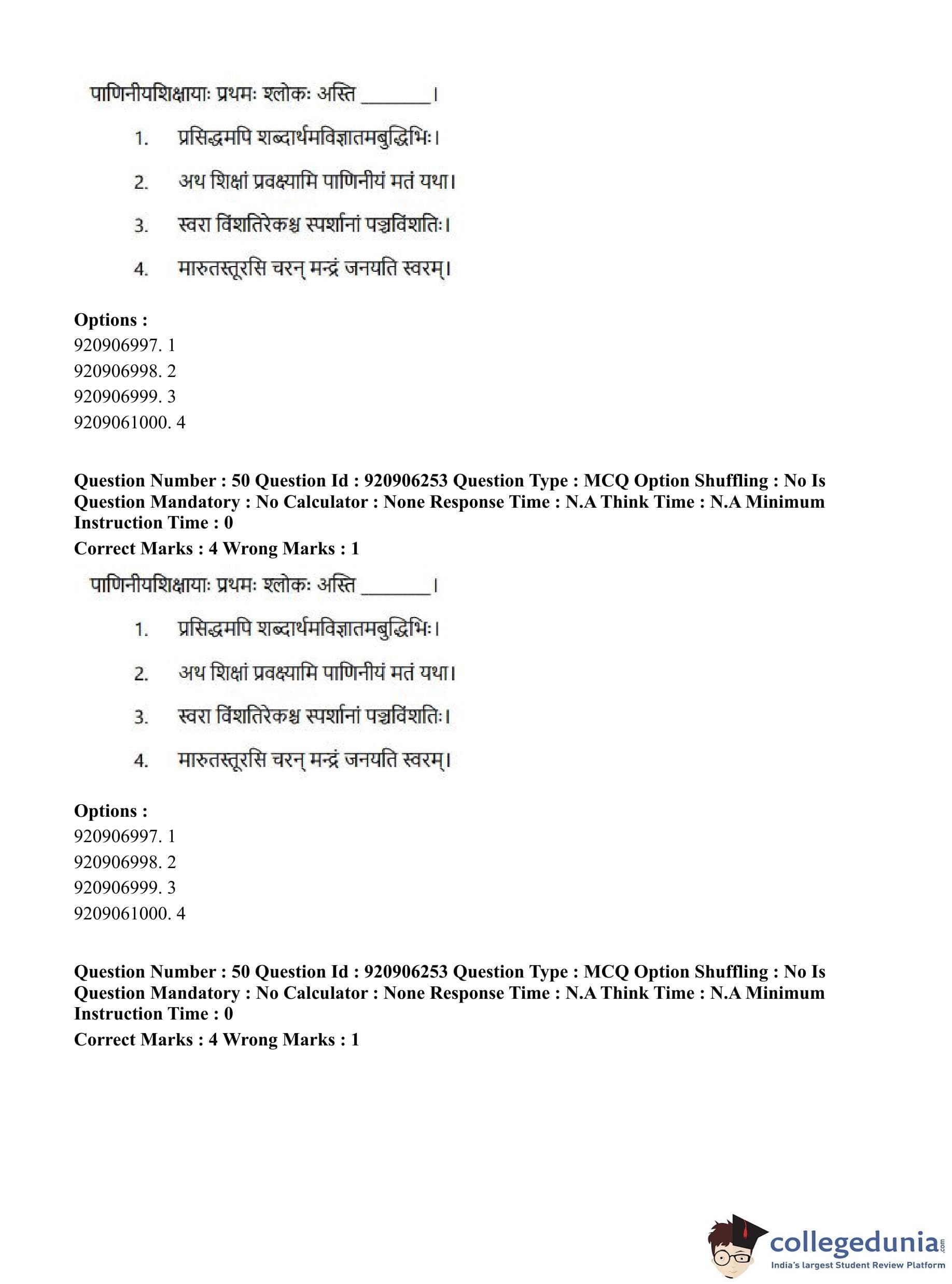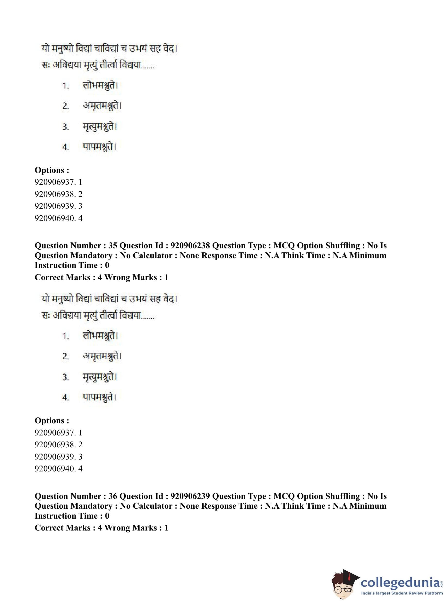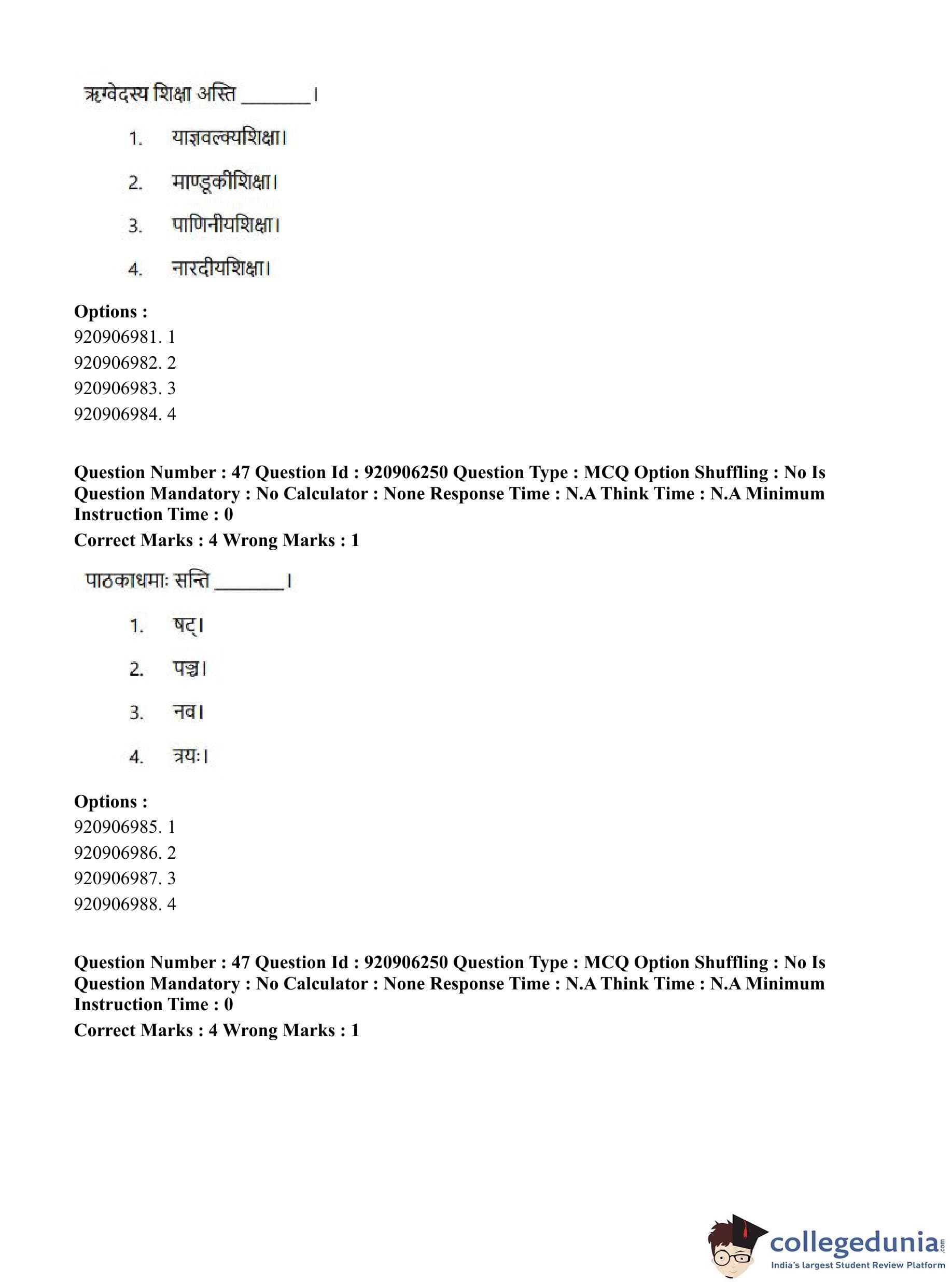 CUET PG 2023 Rigveda Question Paper in English (June 6 - Shift 1)