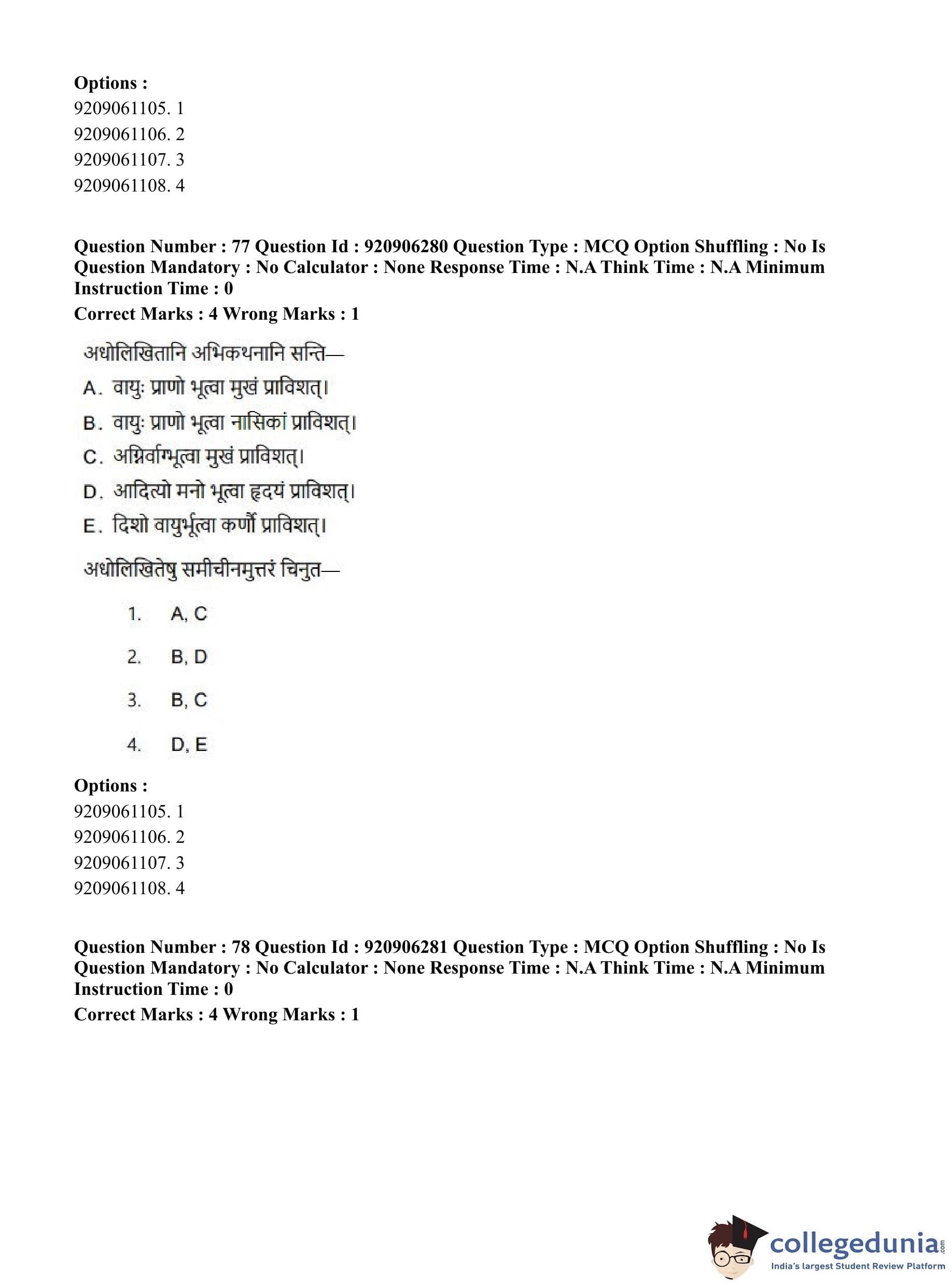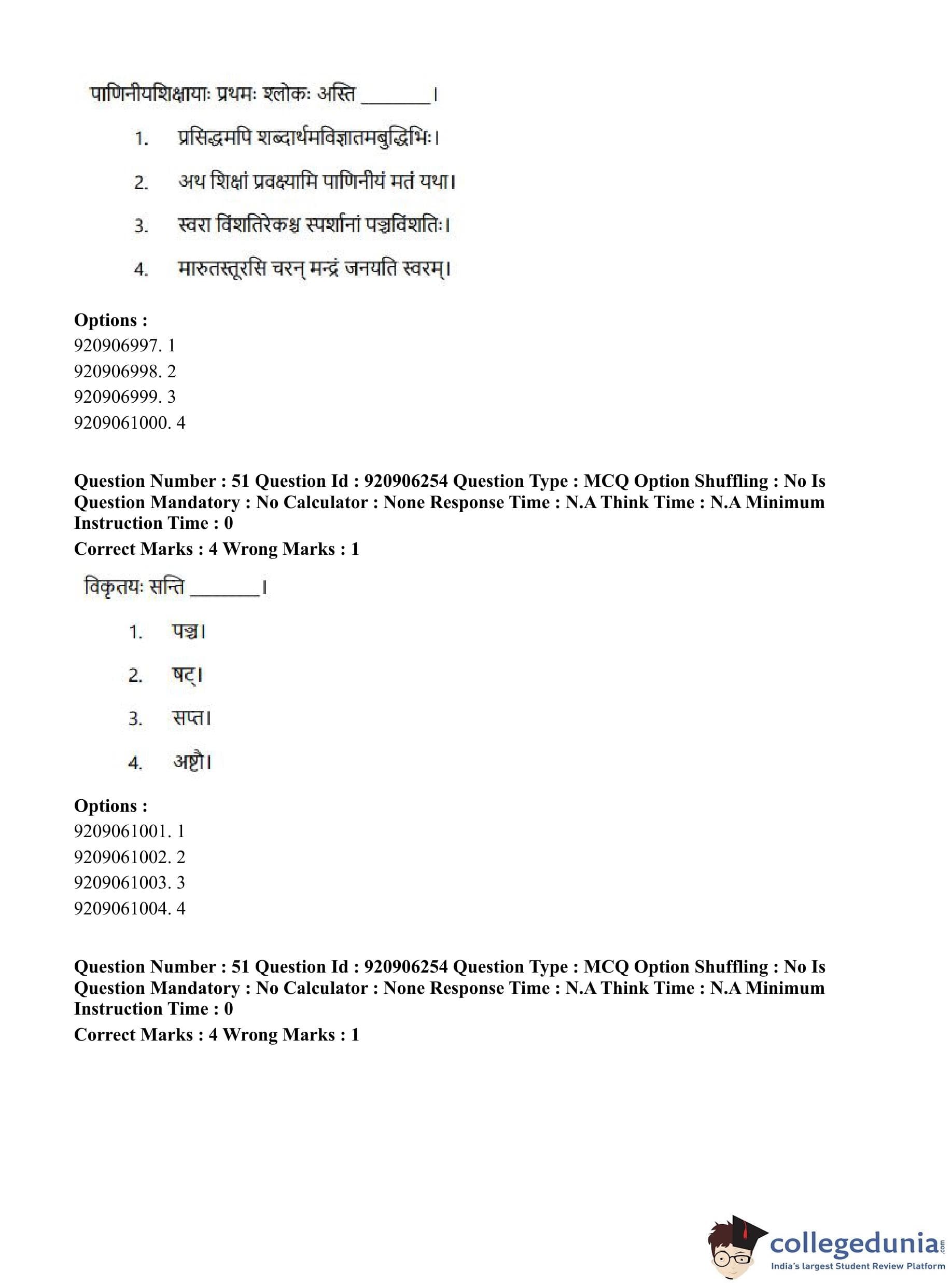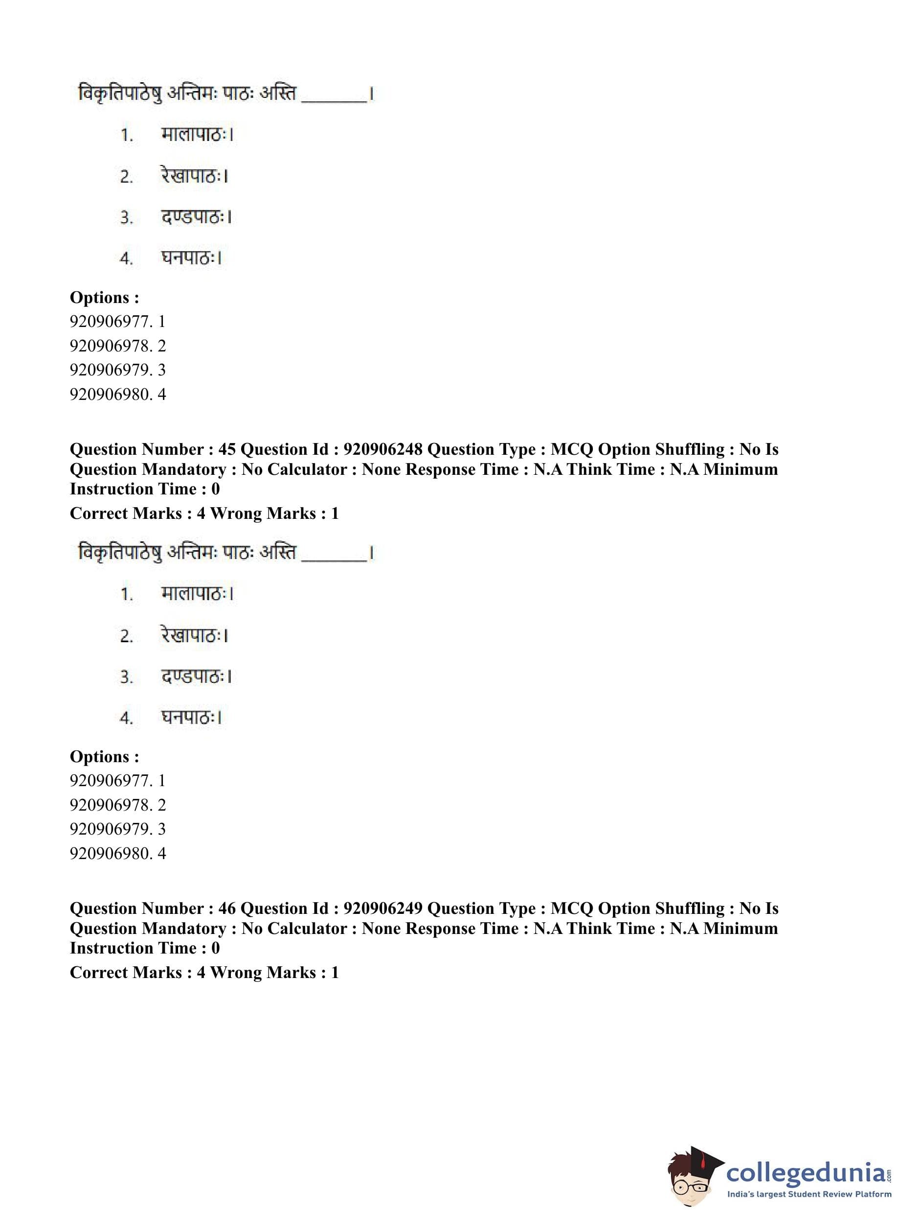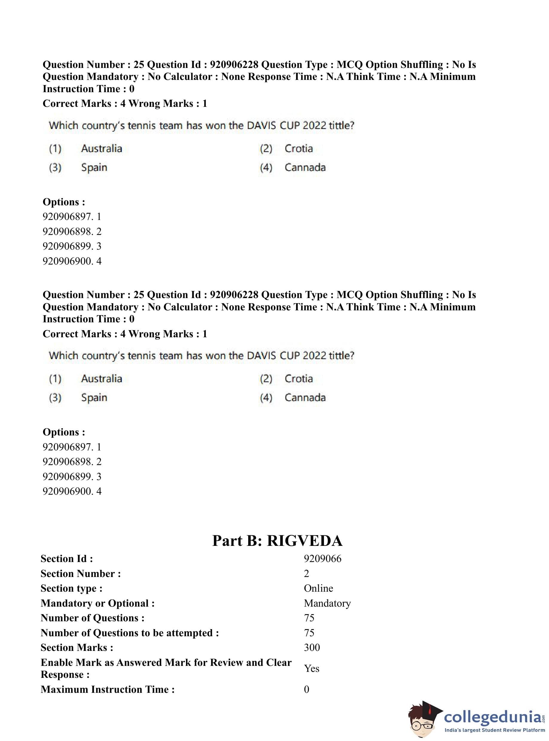 CUET PG 2023 Rigveda Question Paper in English (June 6 - Shift 1)