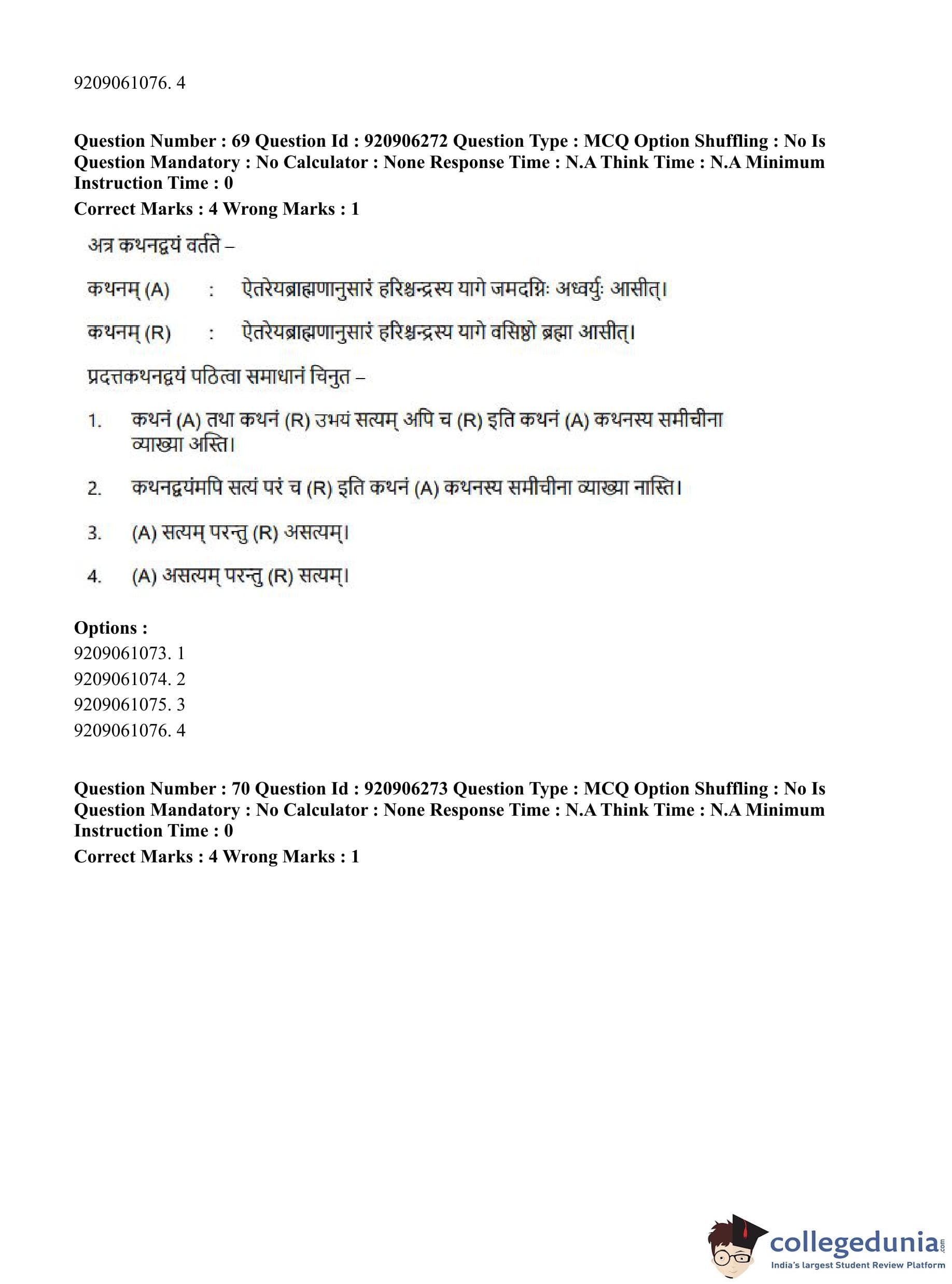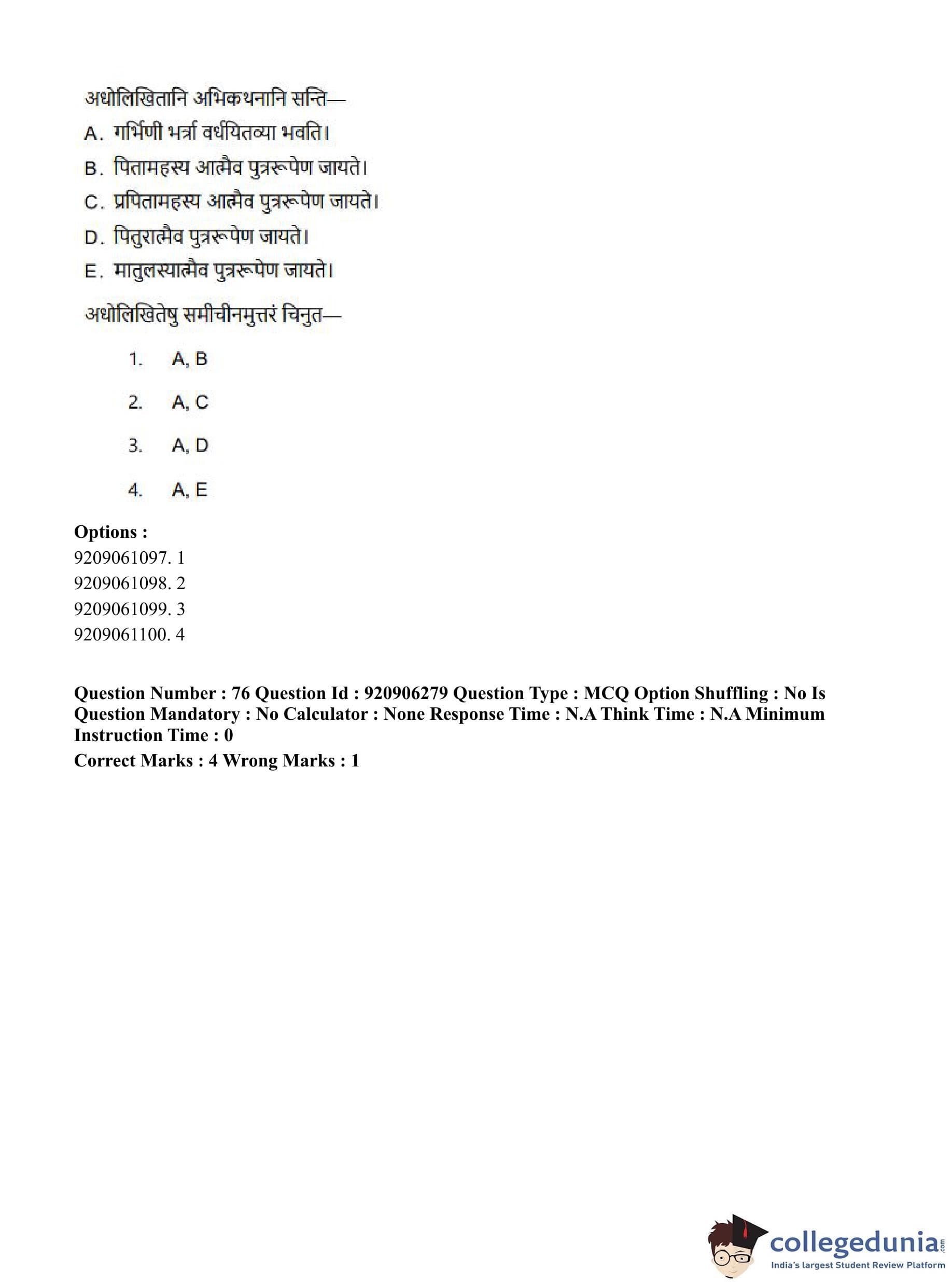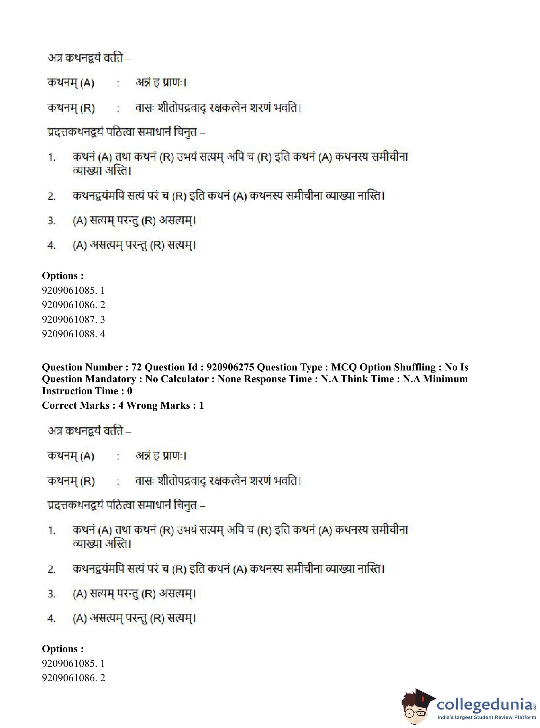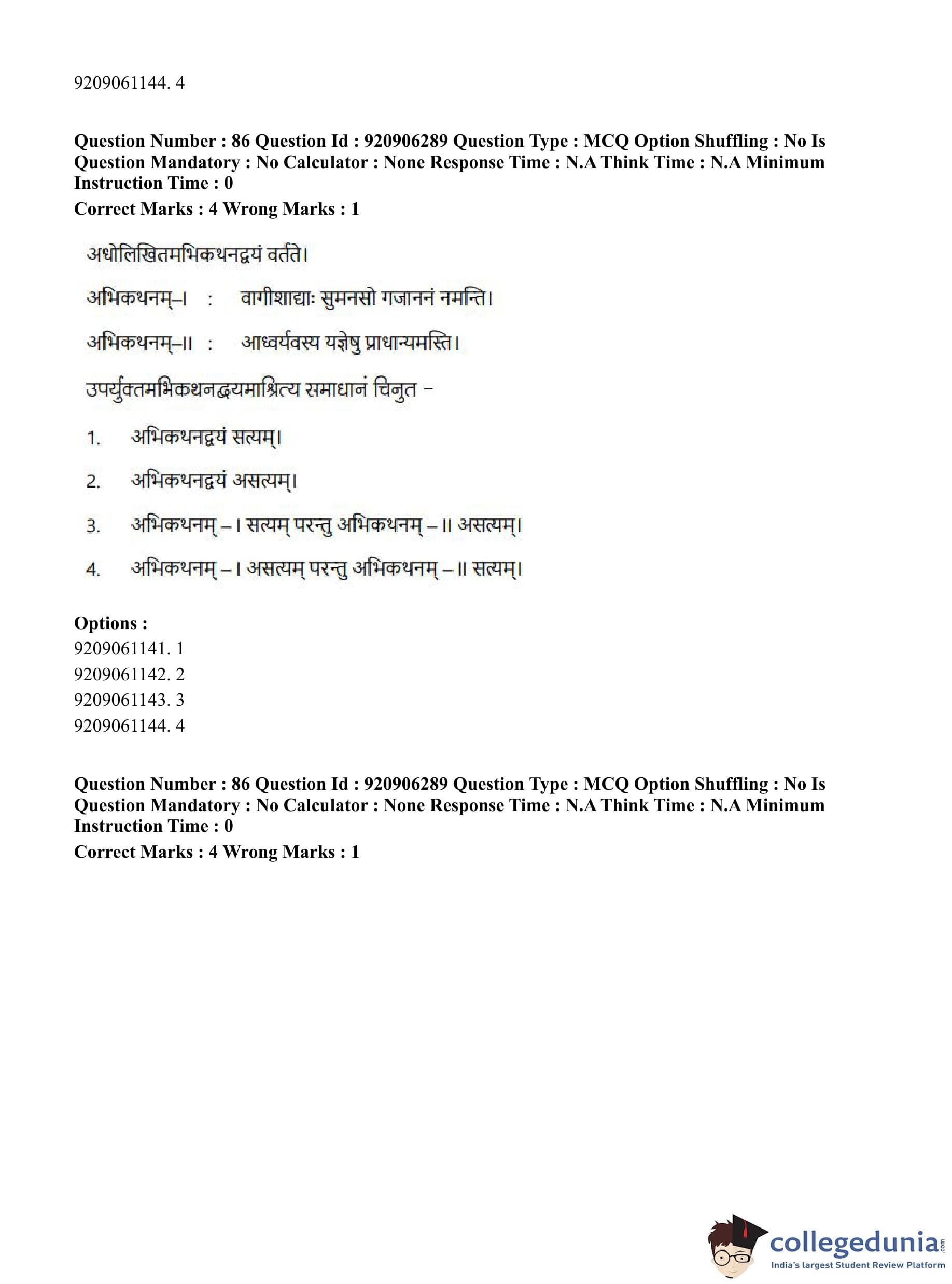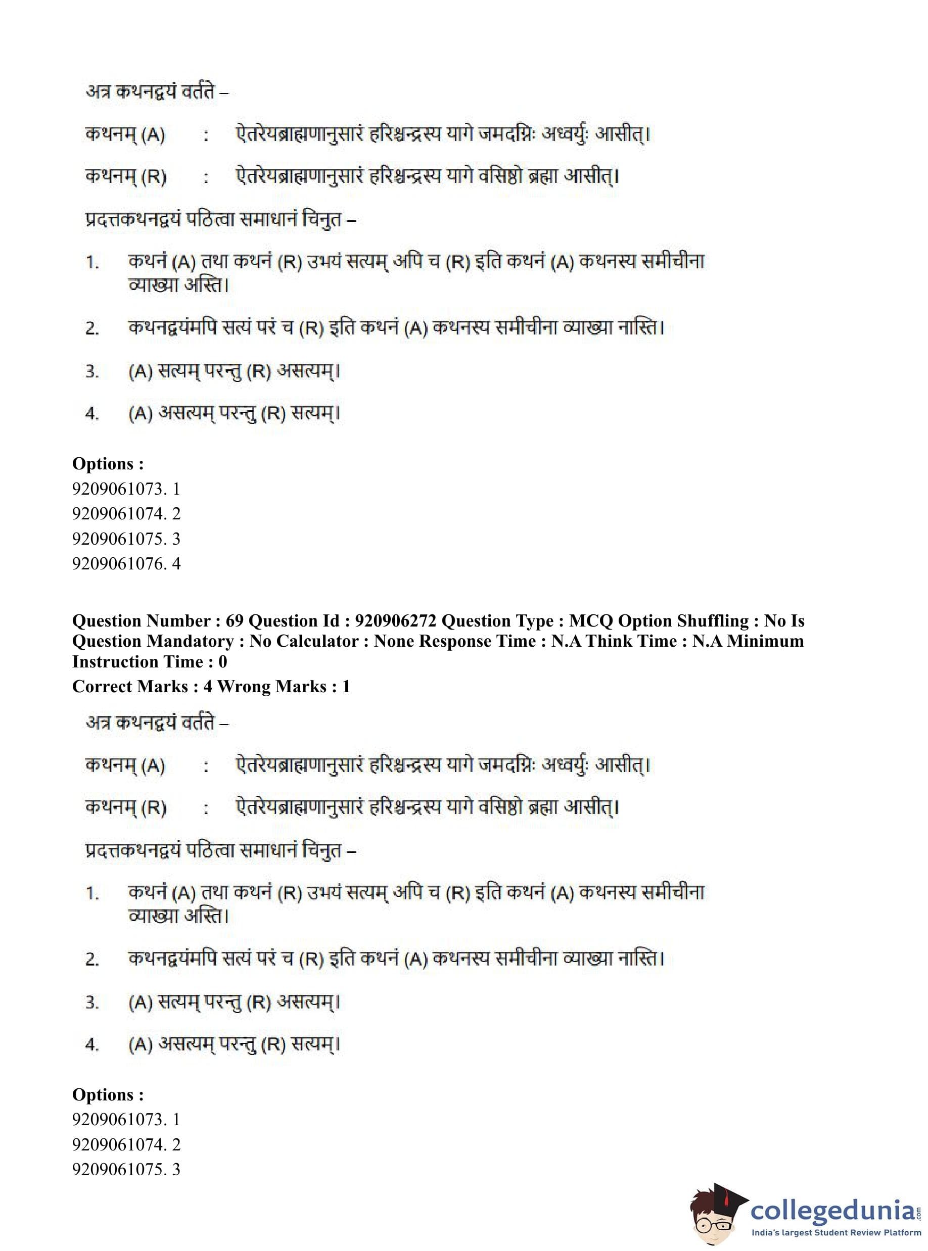 CUET PG 2023 Rigveda Question Paper in English (June 6 - Shift 1)