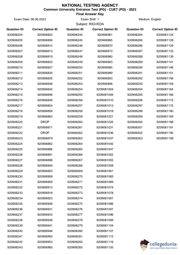 | CUET PG Rigveda Question Paper 2023 PDF | CUET PG Rigveda Answer Key 2023 PDF |