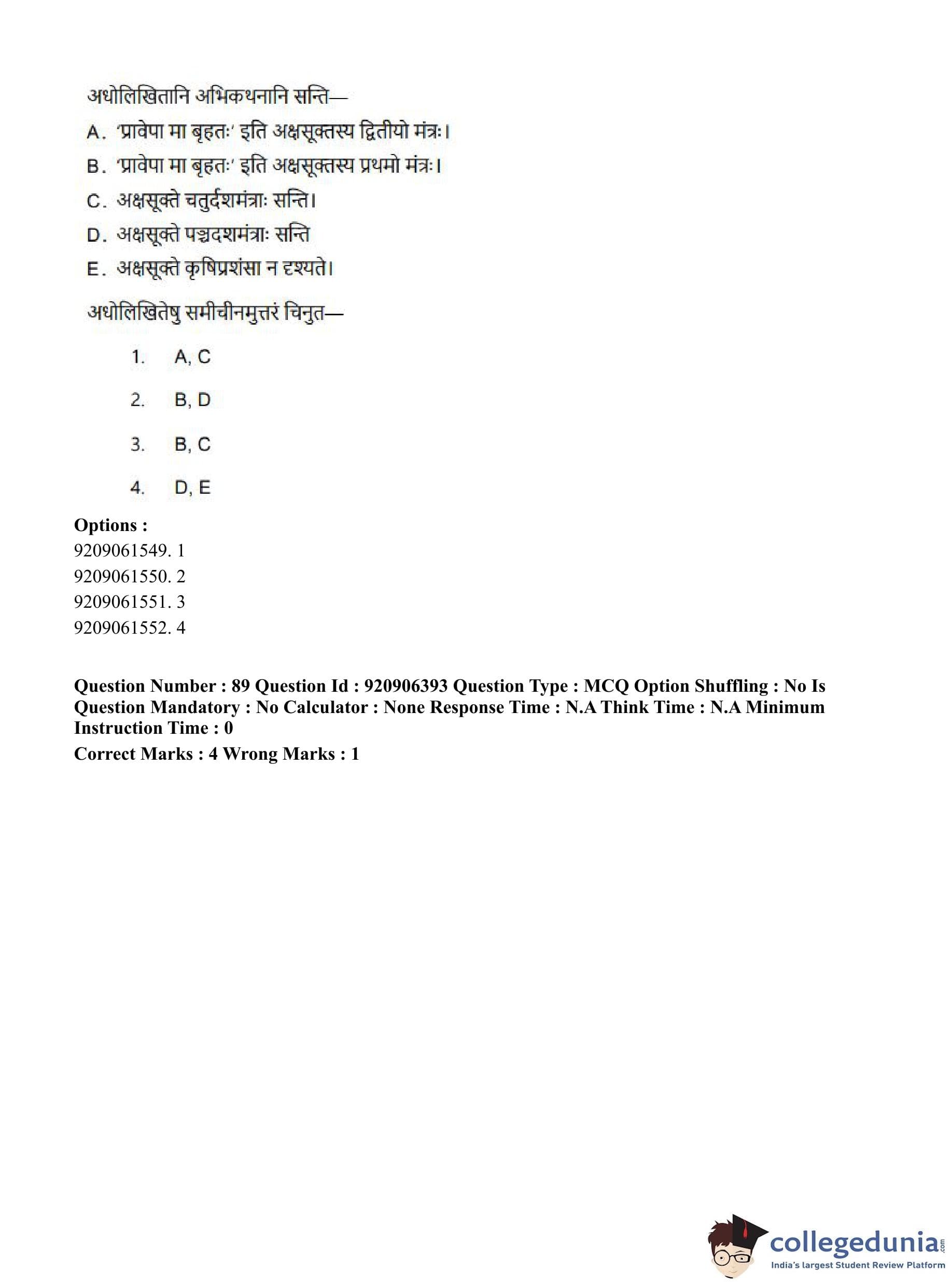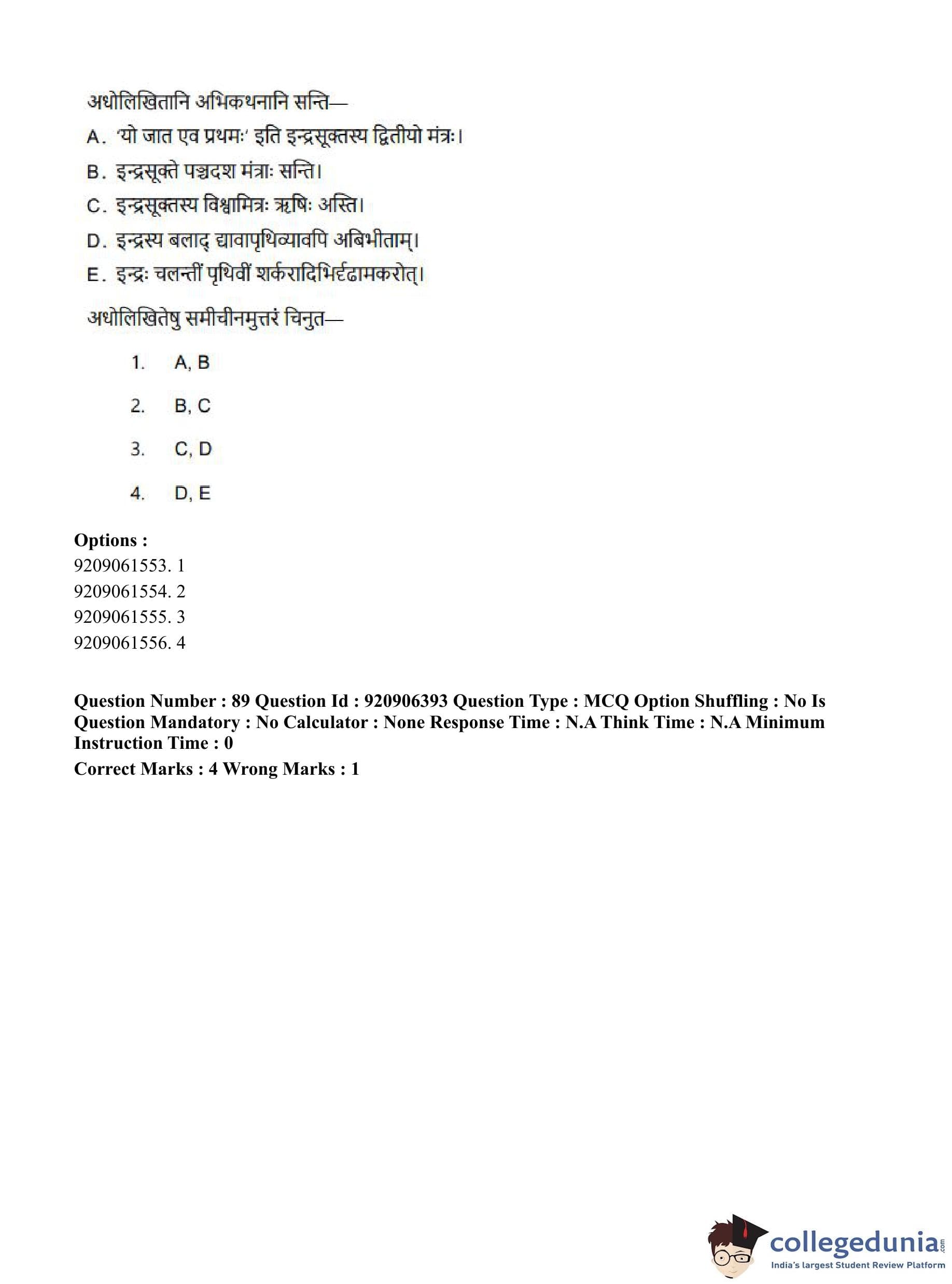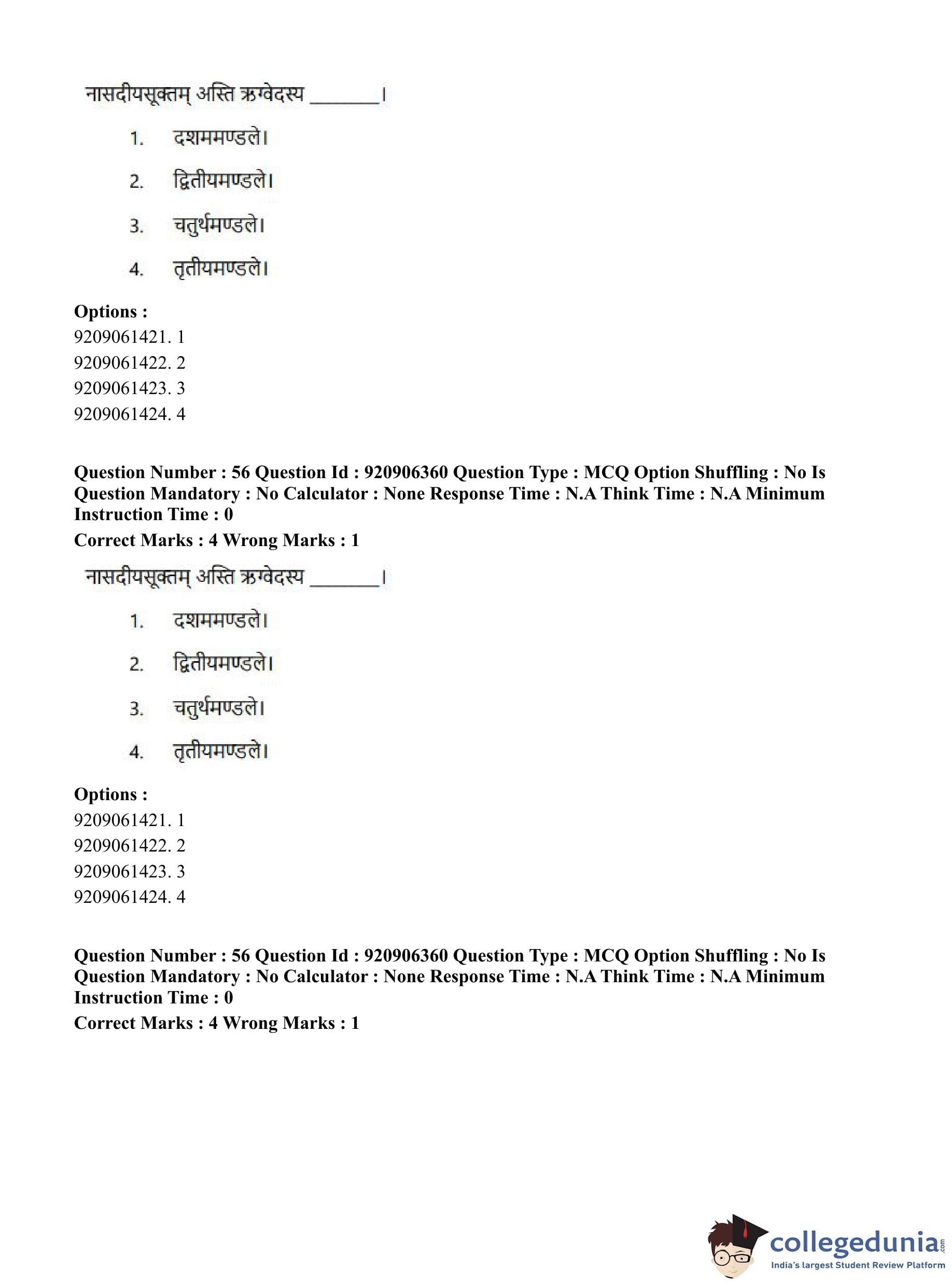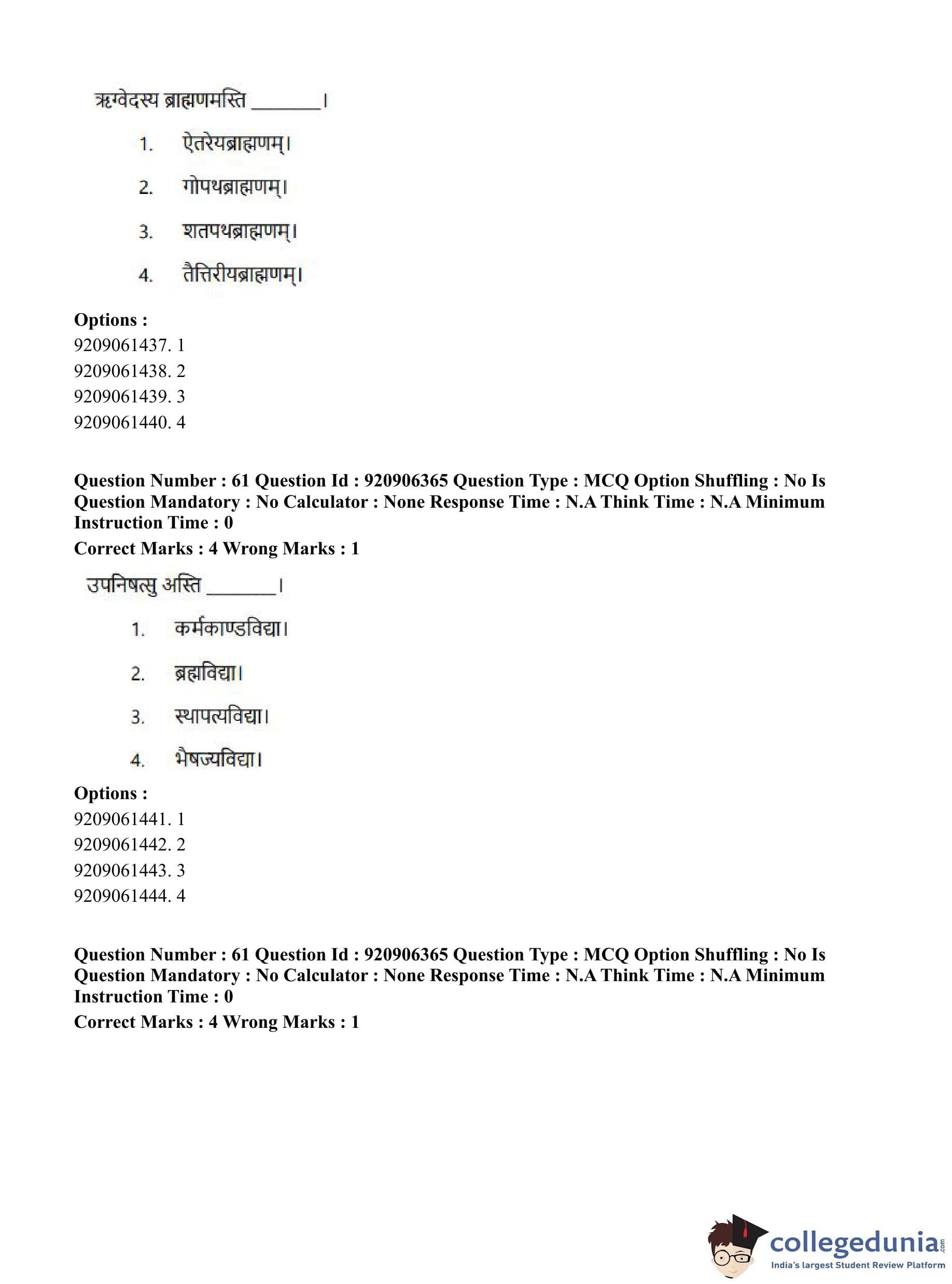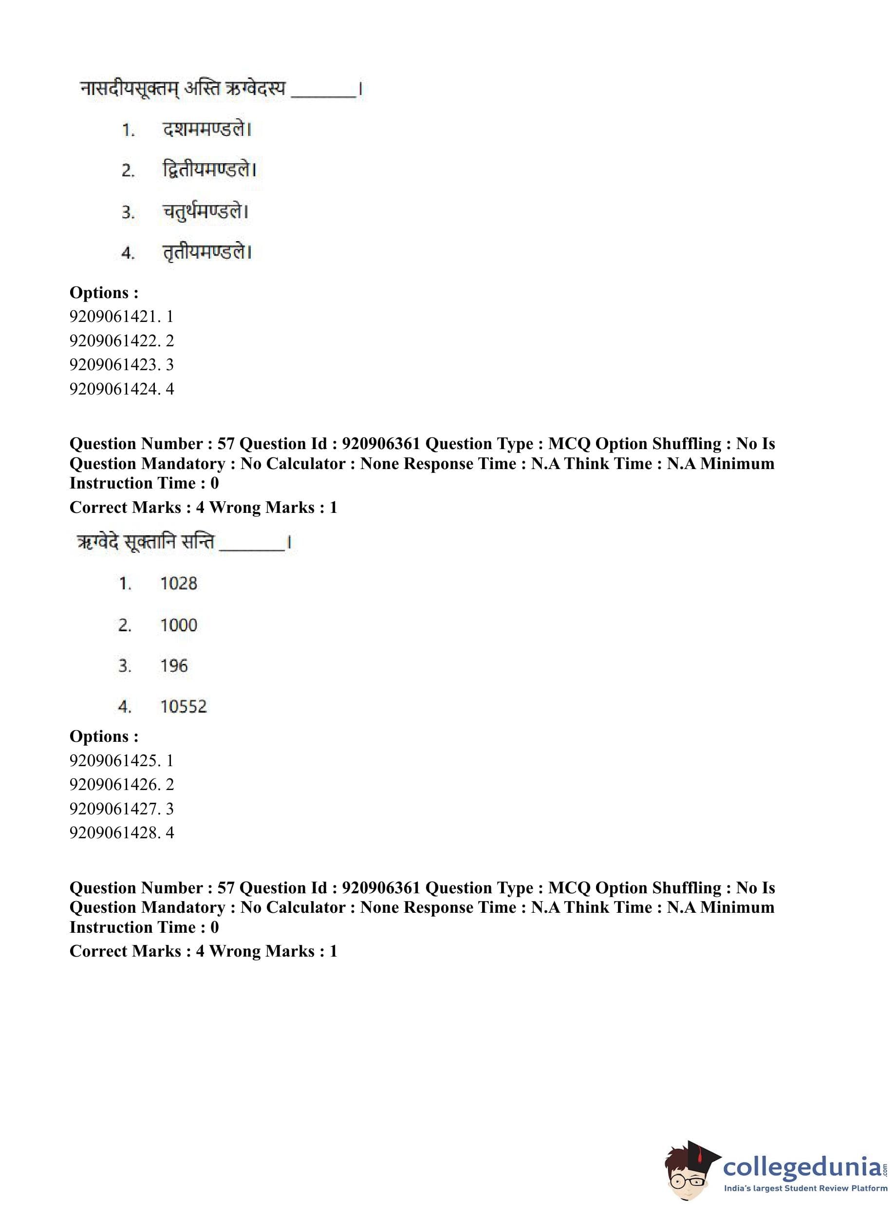 CUET PG 2023 Rigveda Question Paper in Hindi (June 6 - Shift 1)