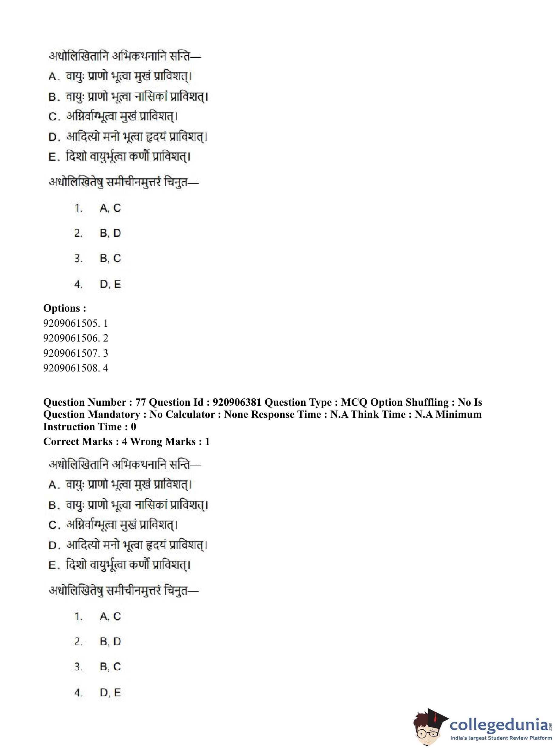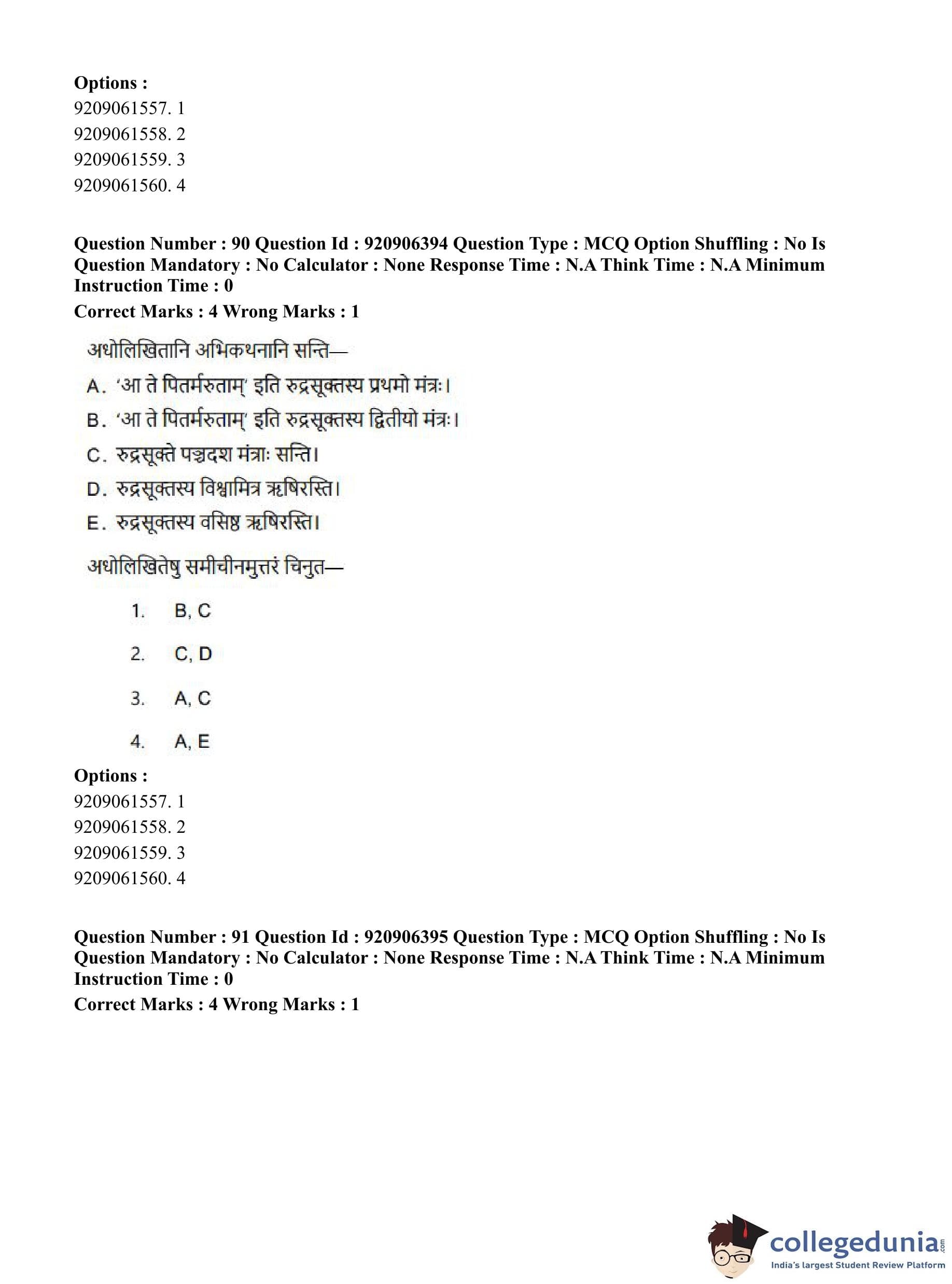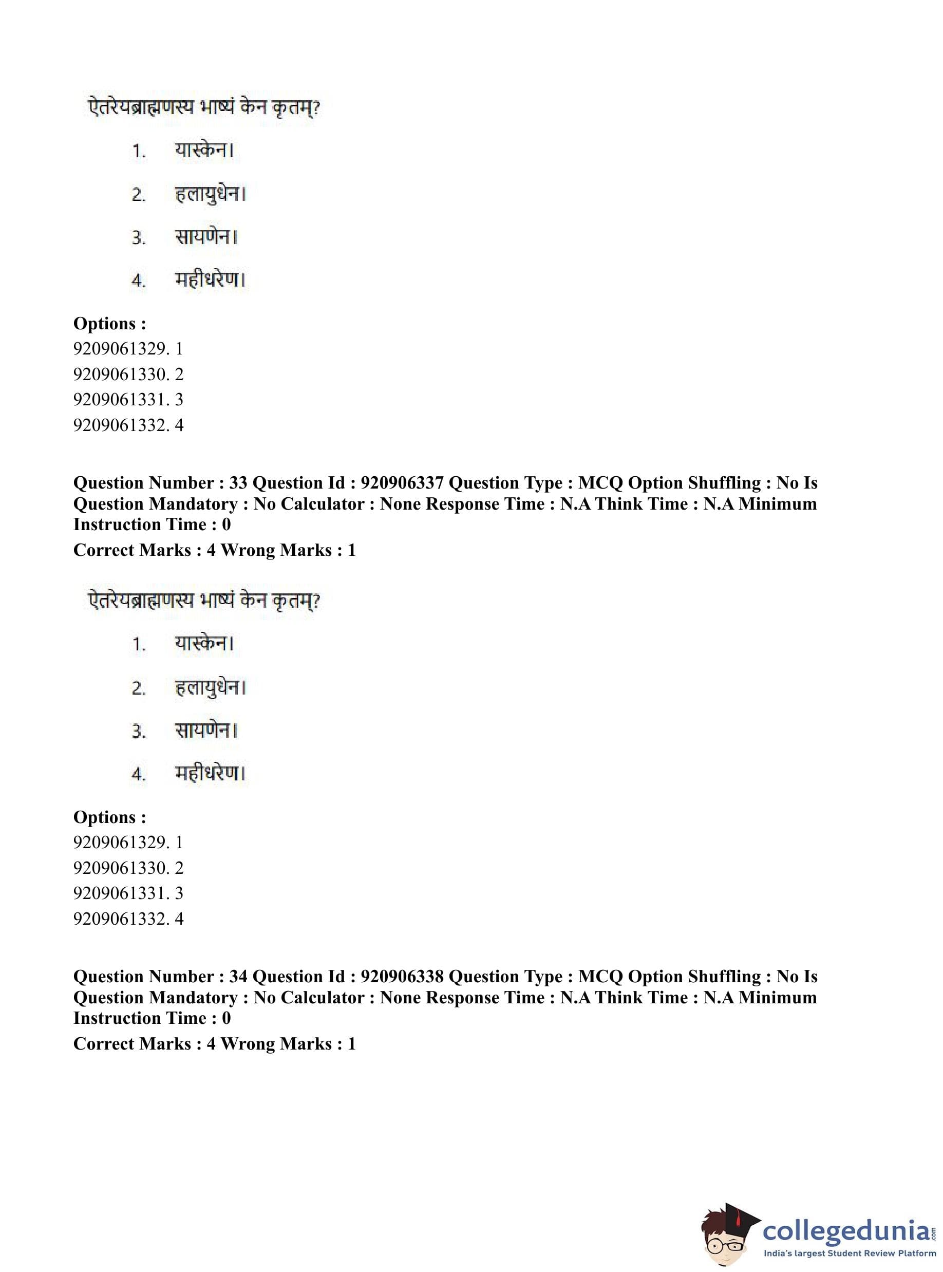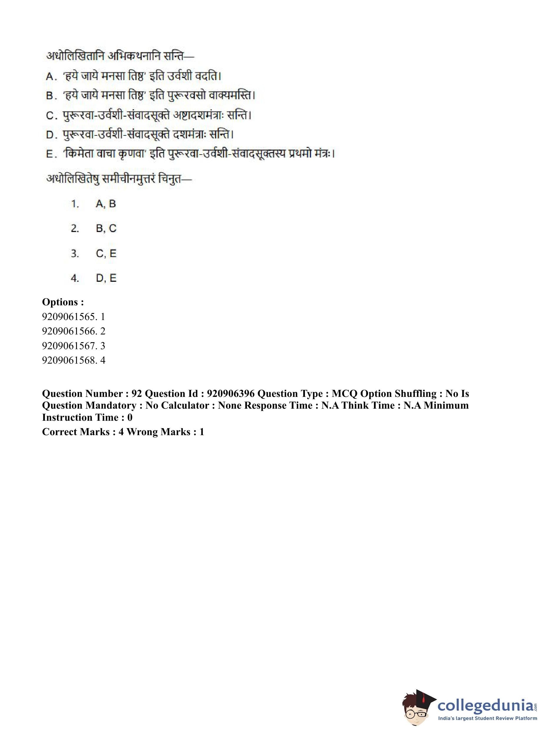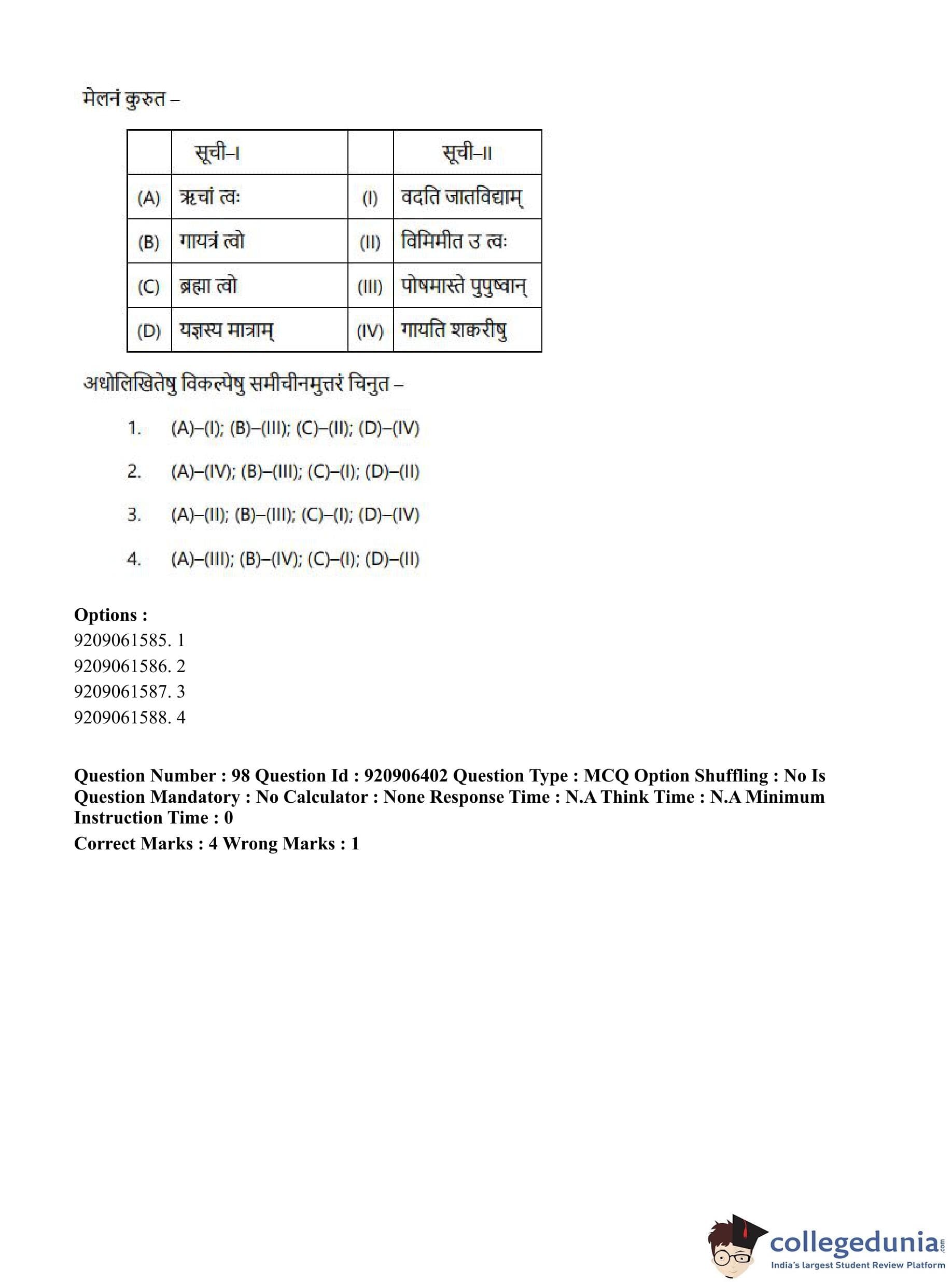 CUET PG 2023 Rigveda Question Paper in Hindi (June 6 - Shift 1)