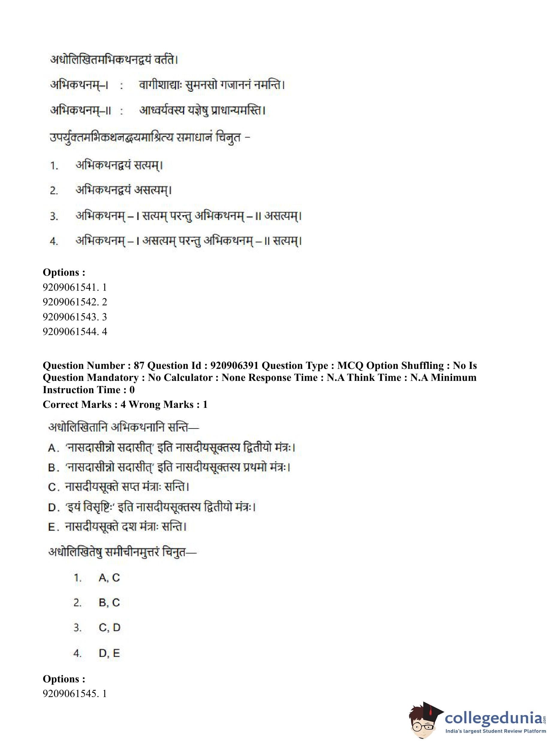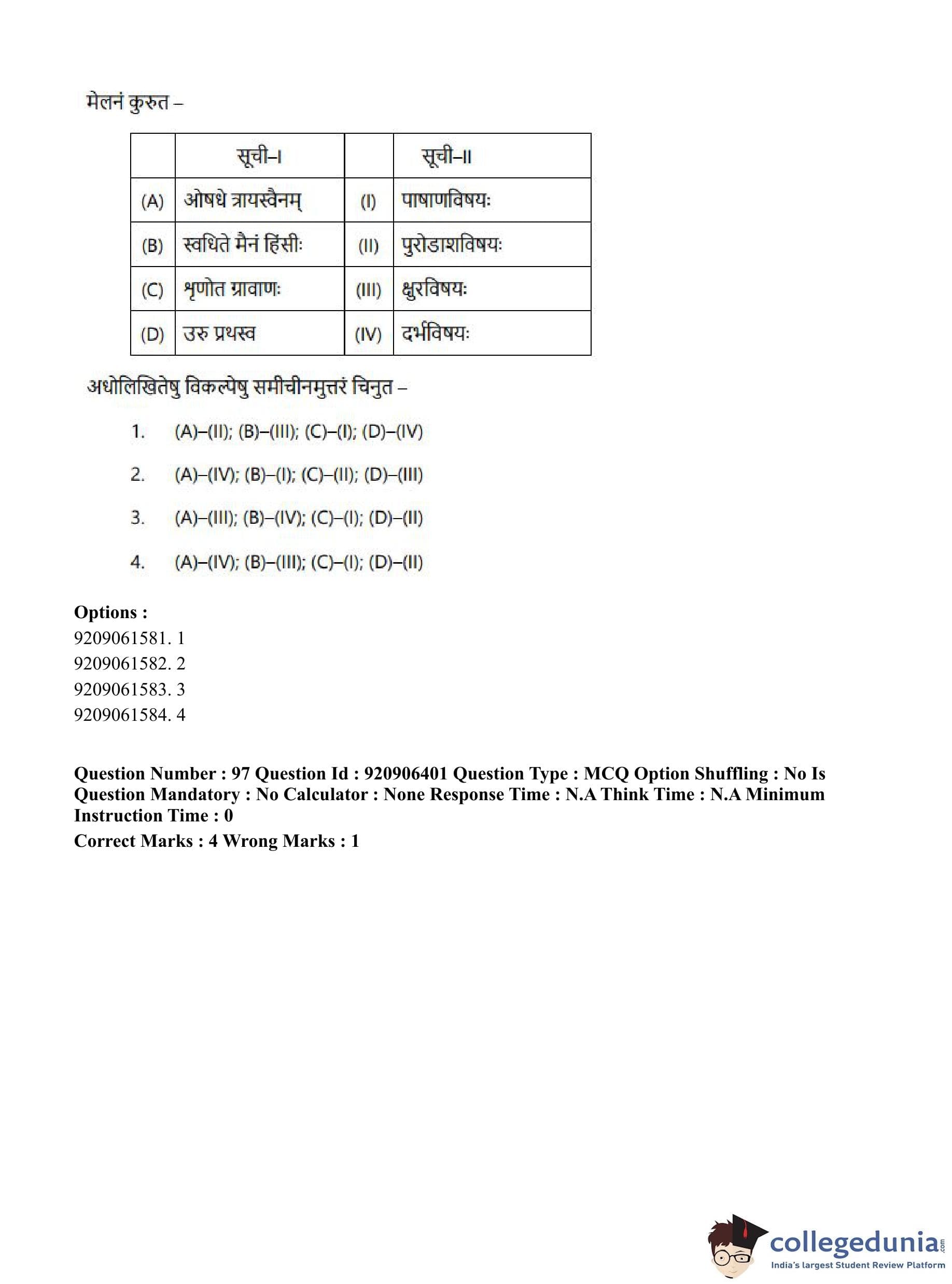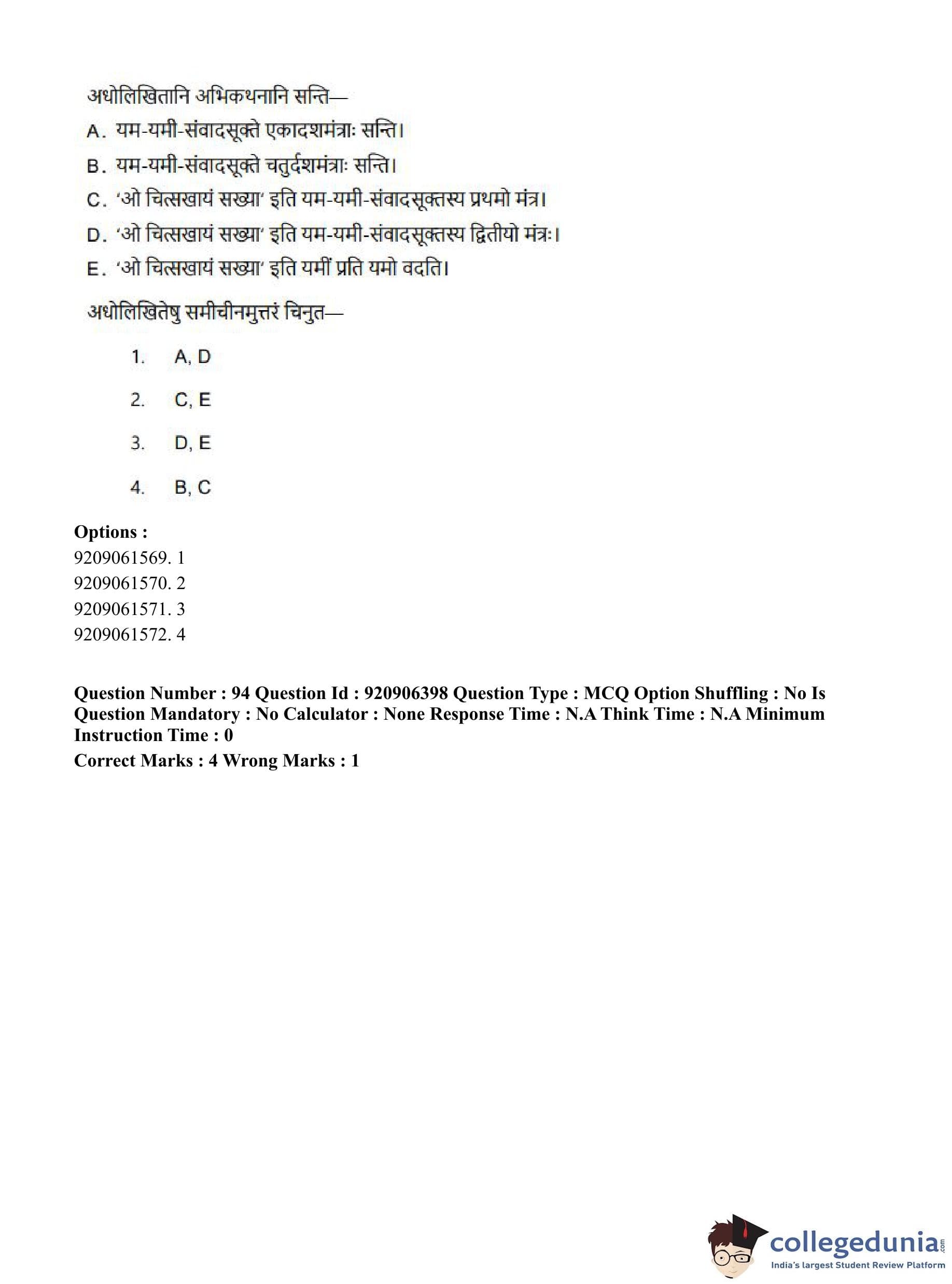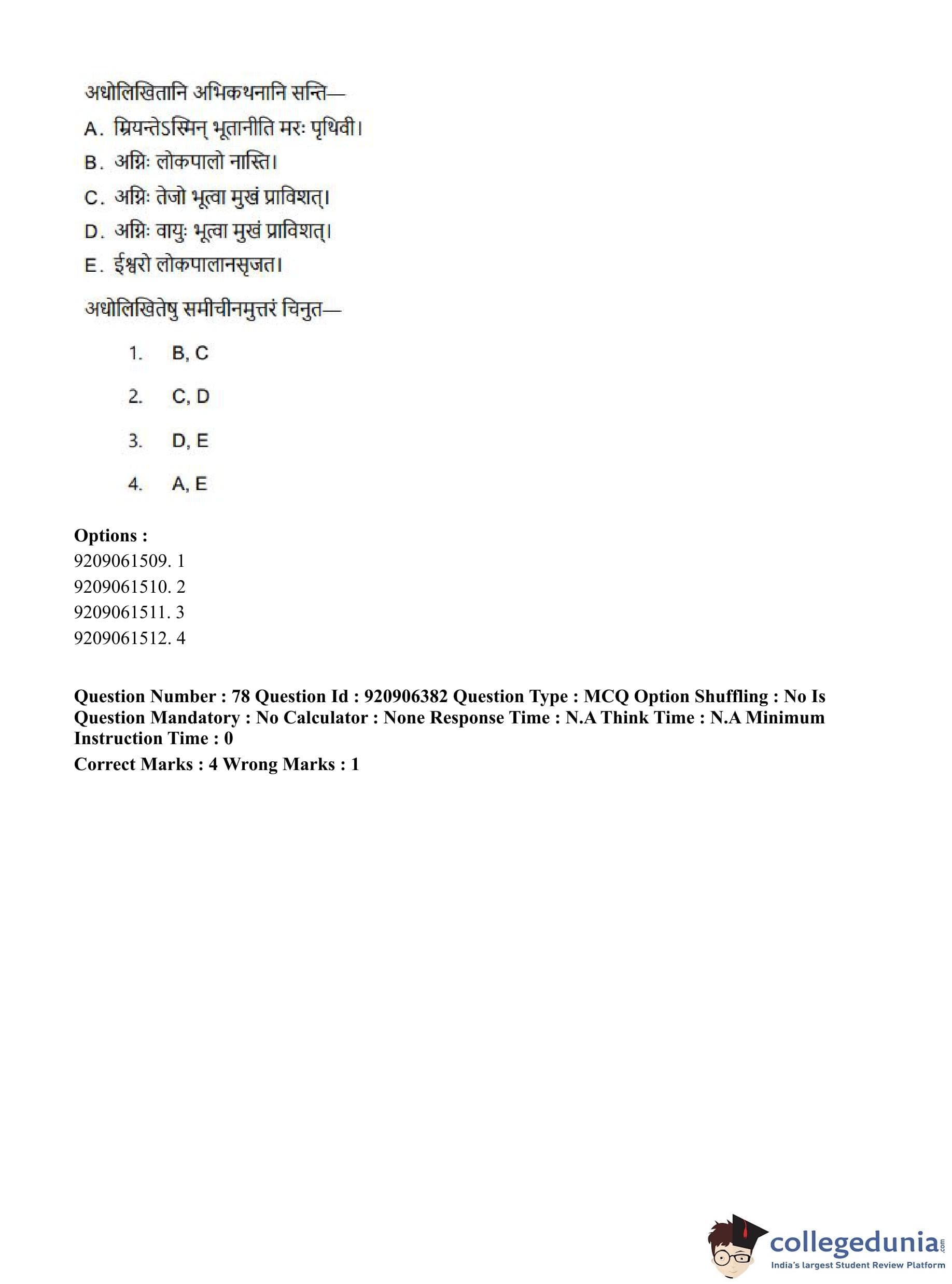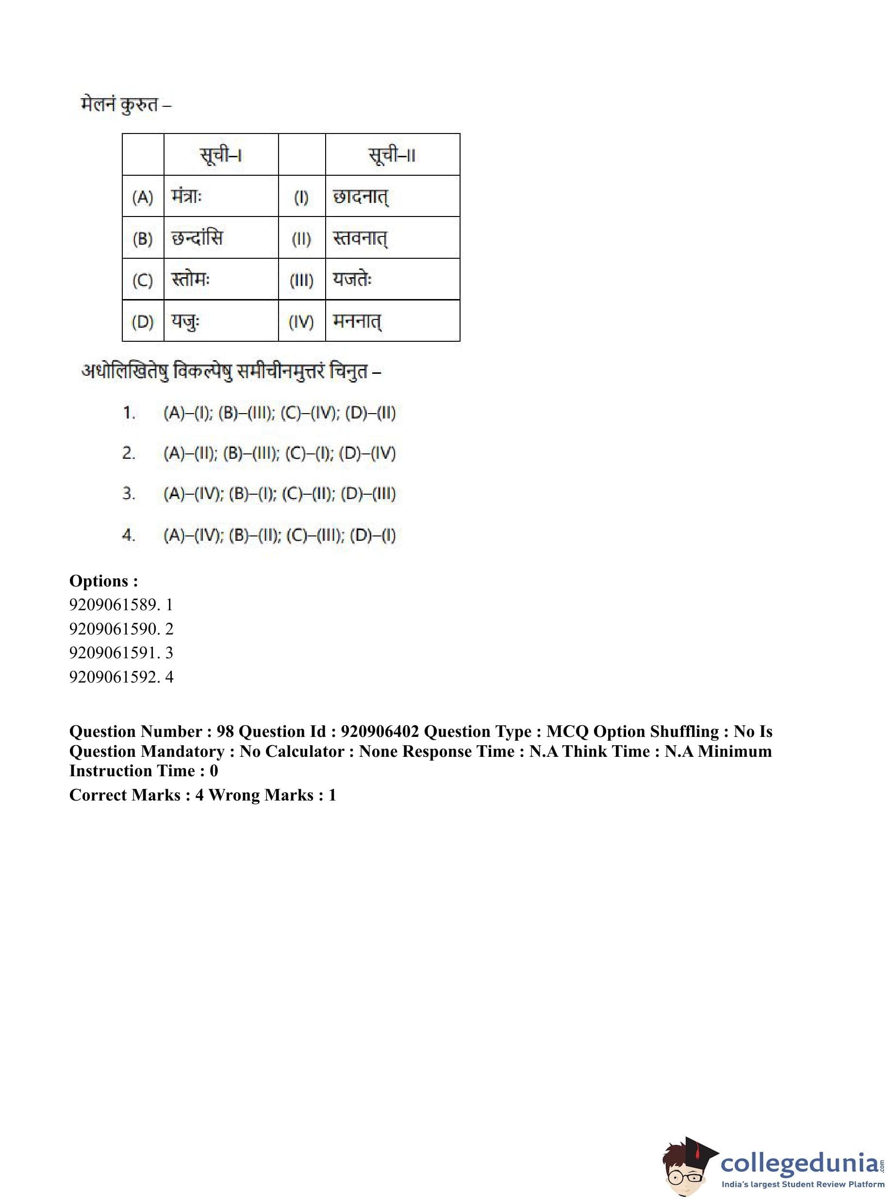 CUET PG 2023 Rigveda Question Paper in Hindi (June 6 - Shift 1)