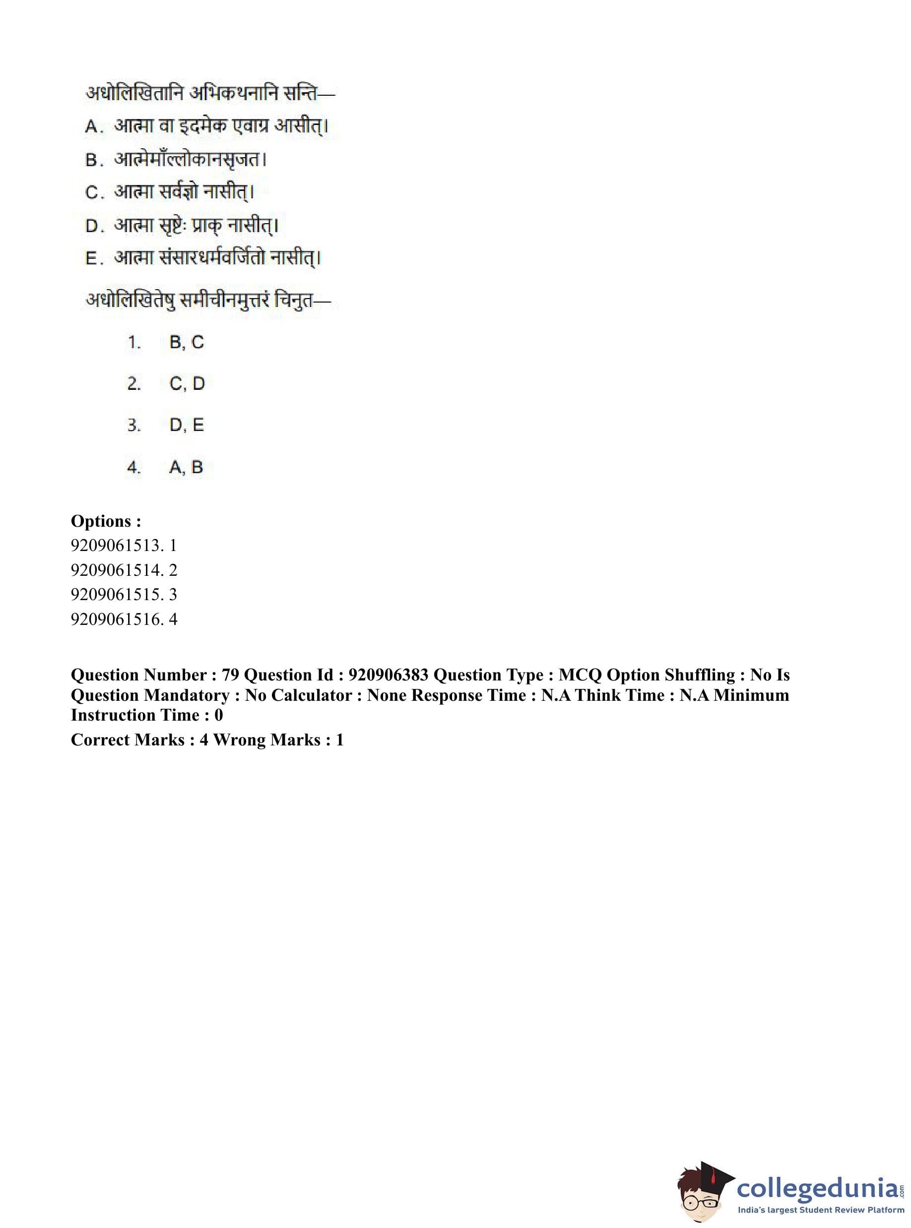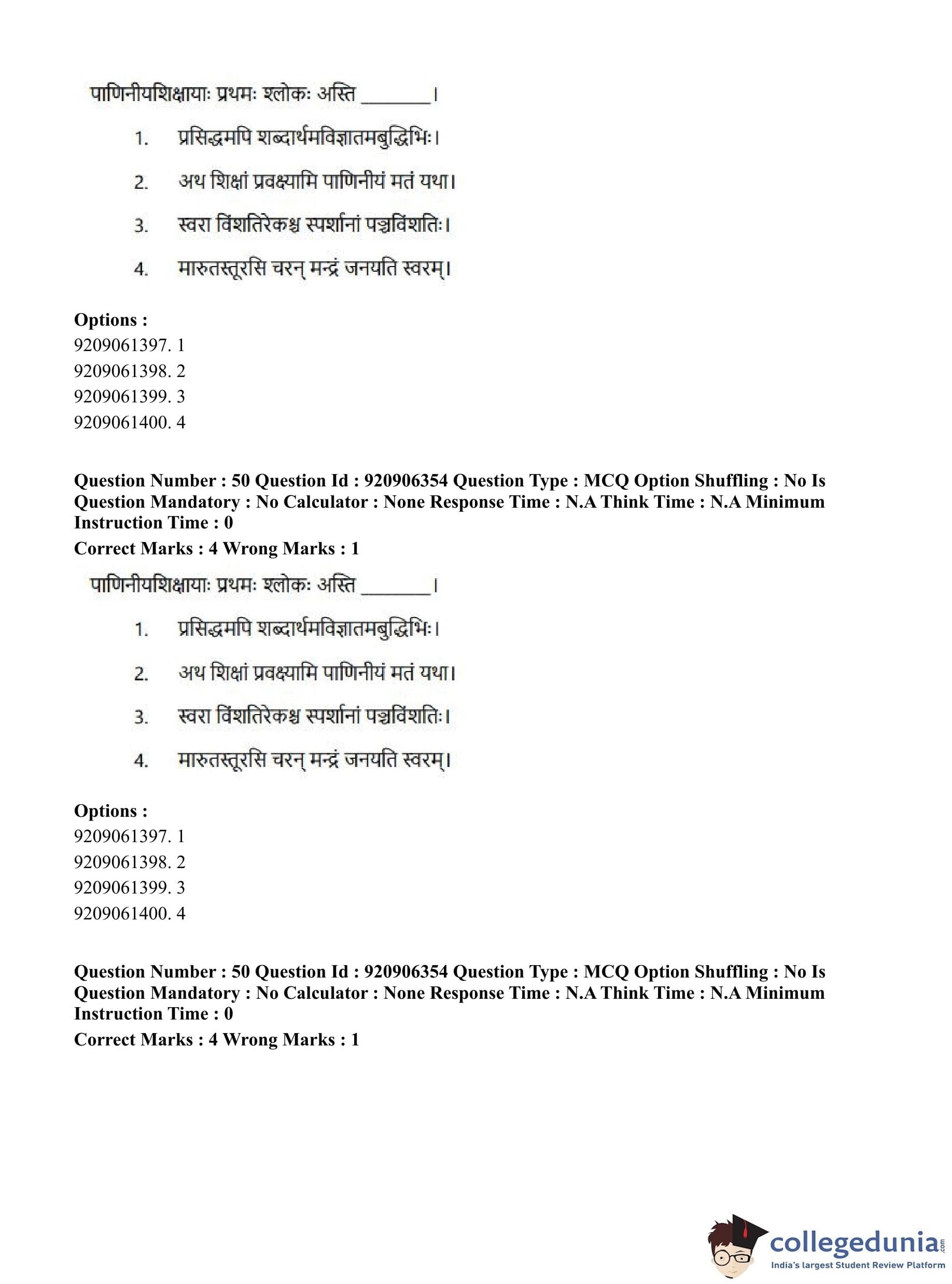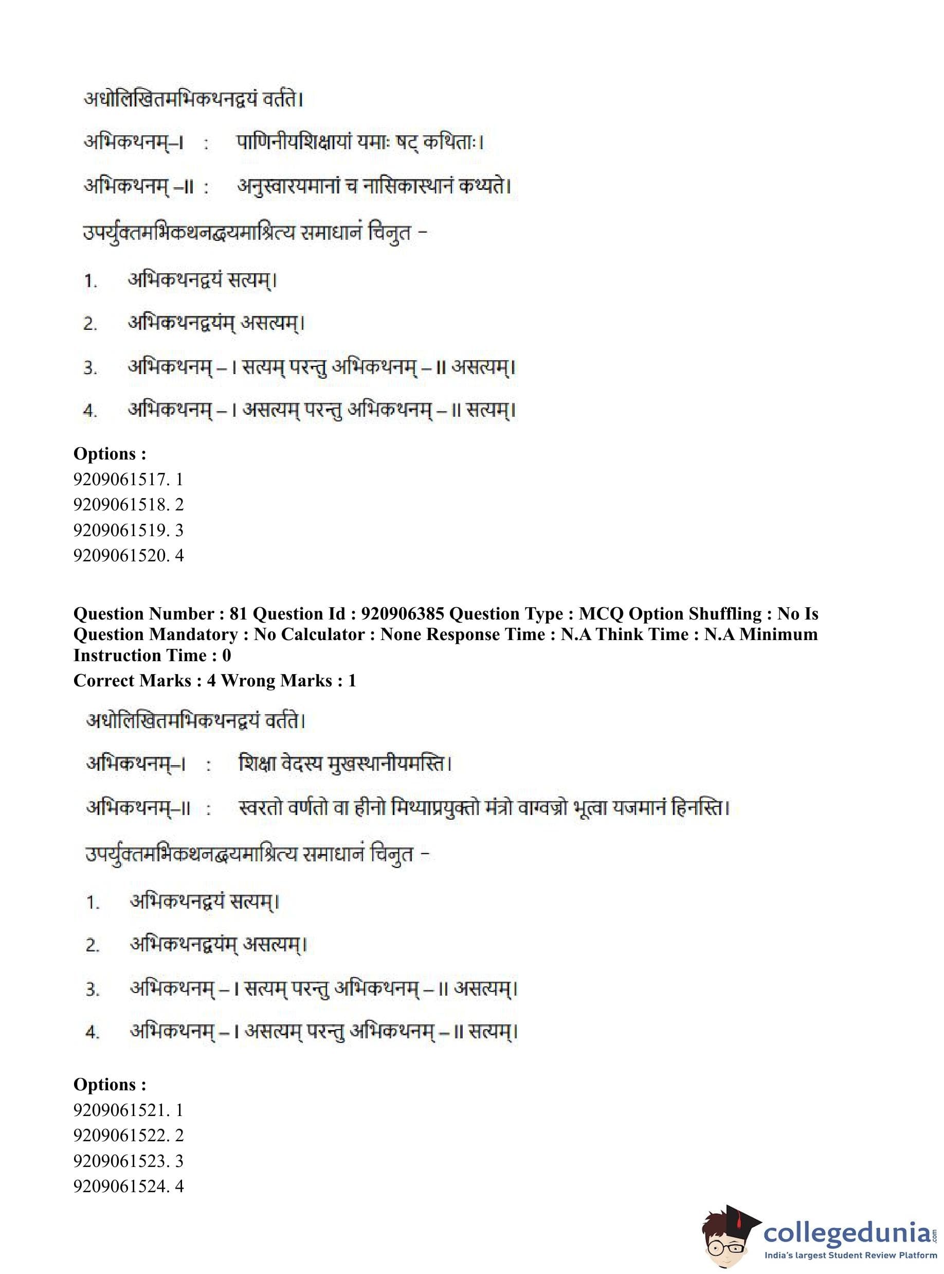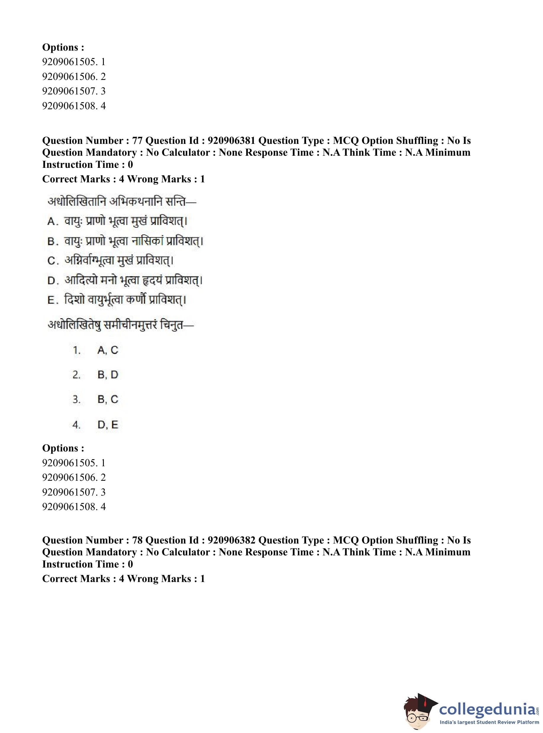 CUET PG 2023 Rigveda Question Paper in Hindi (June 6 - Shift 1)
