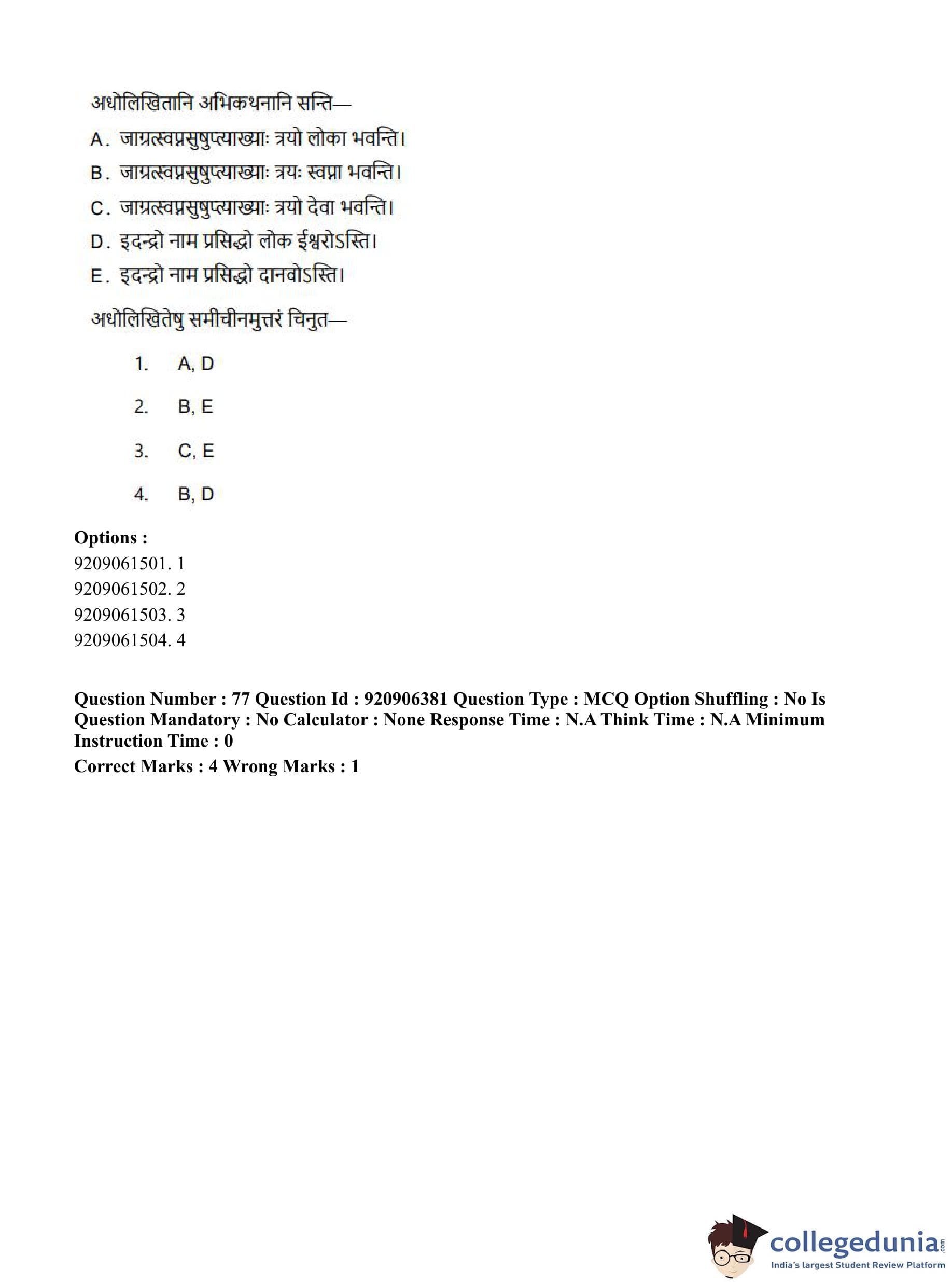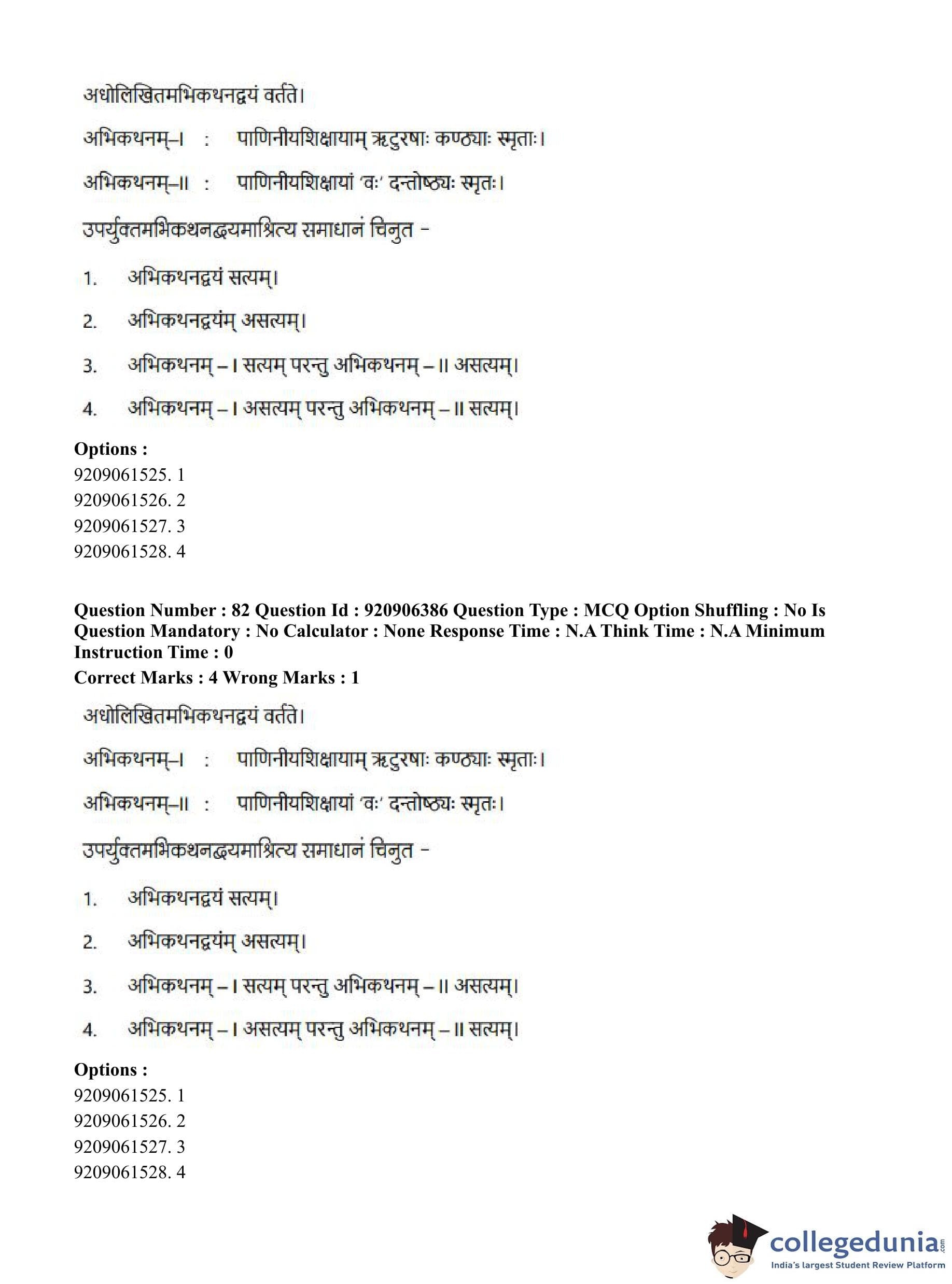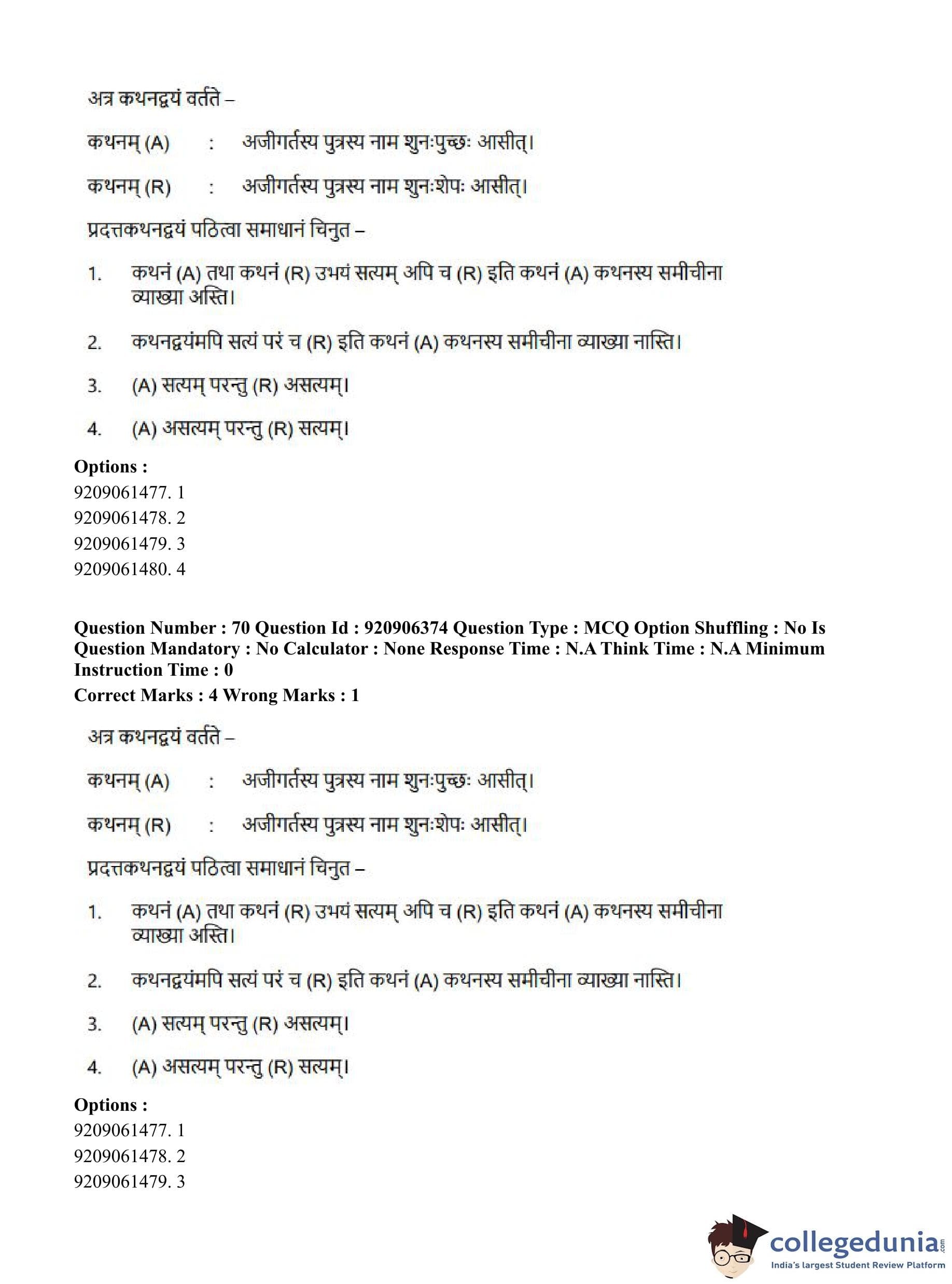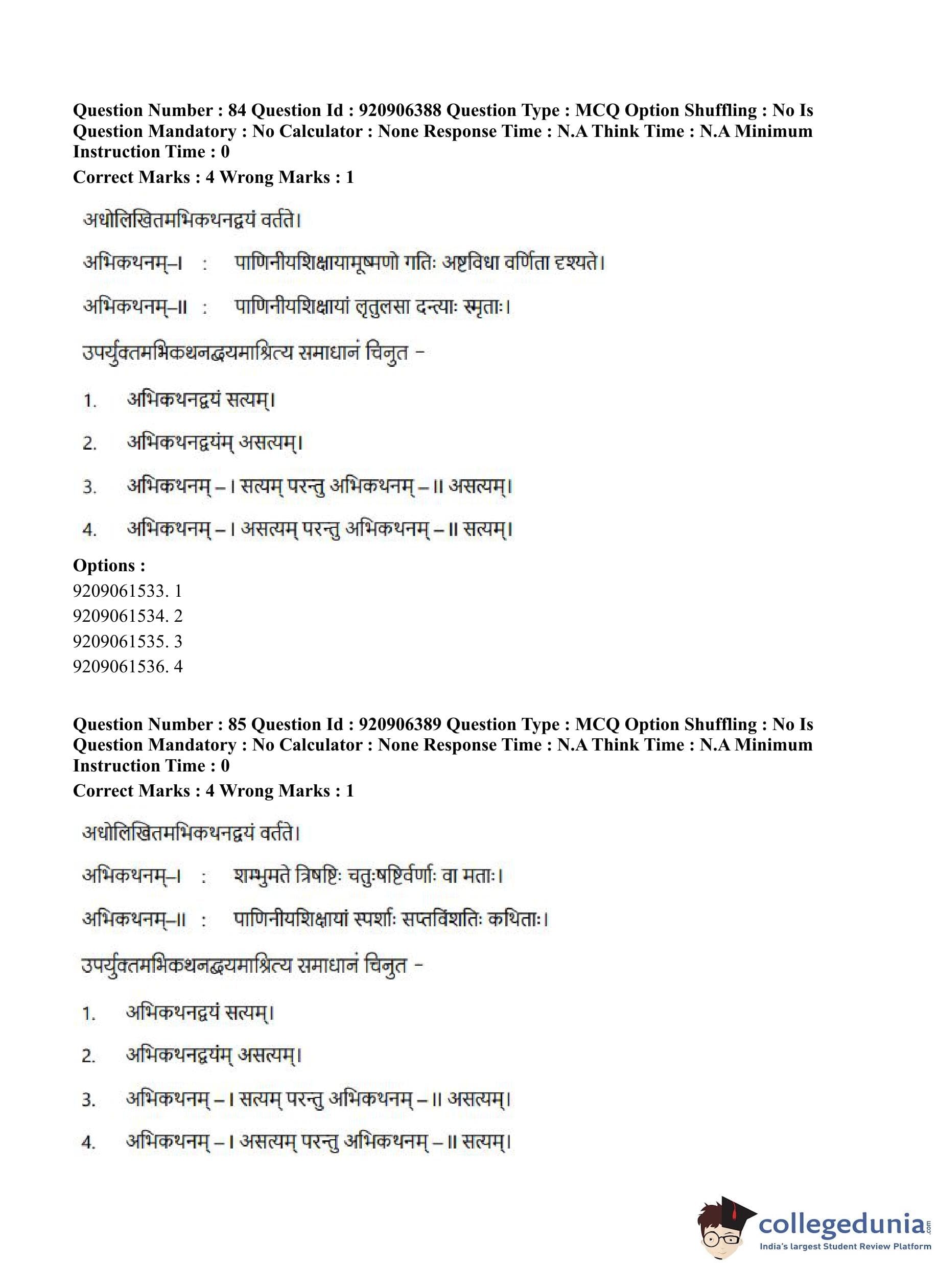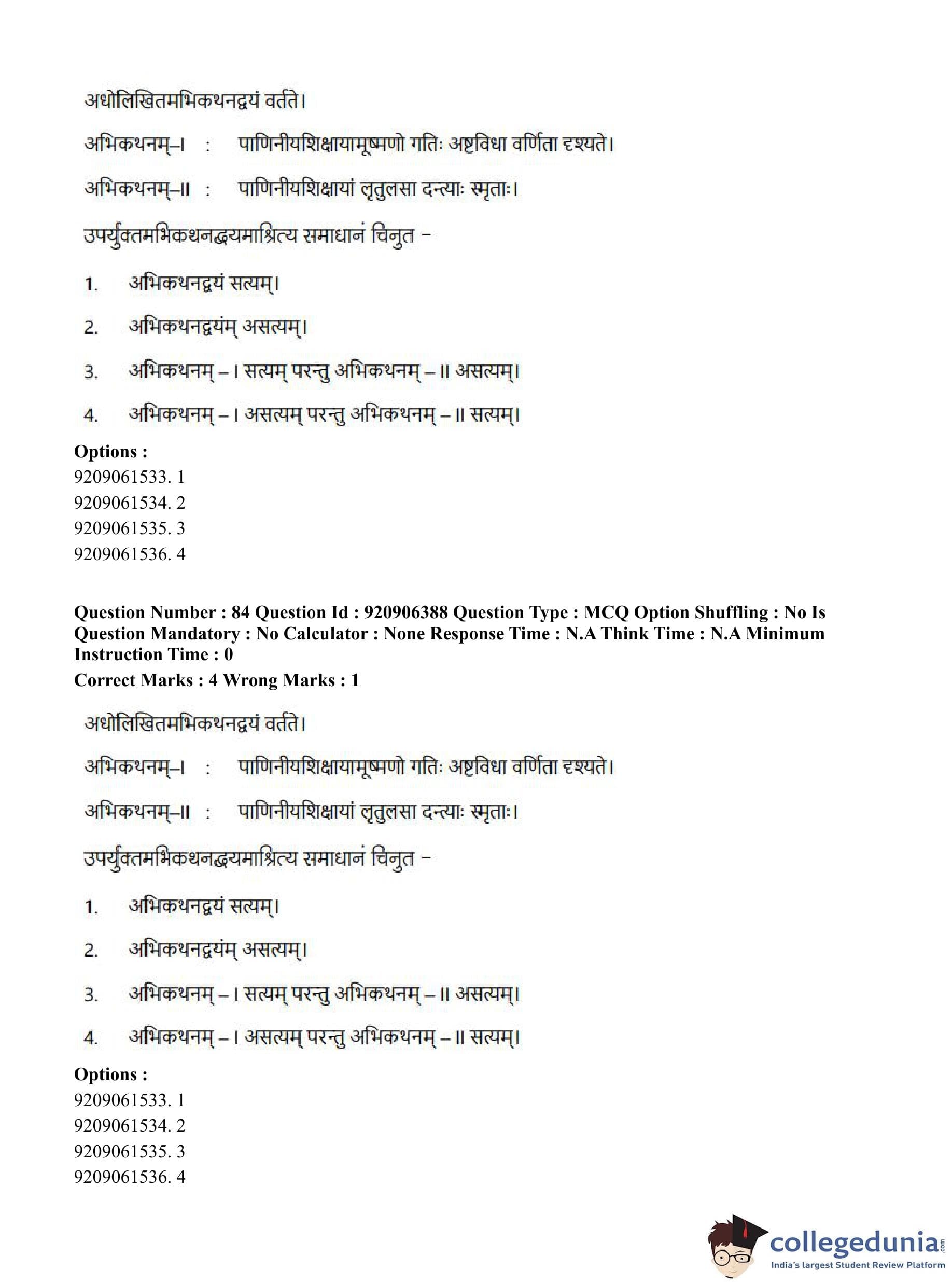 CUET PG 2023 Rigveda Question Paper in Hindi (June 6 - Shift 1)