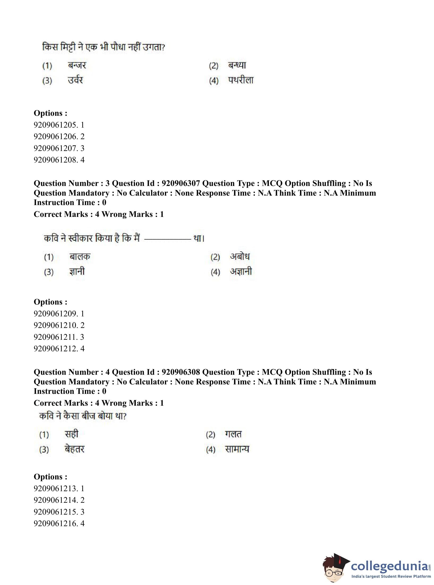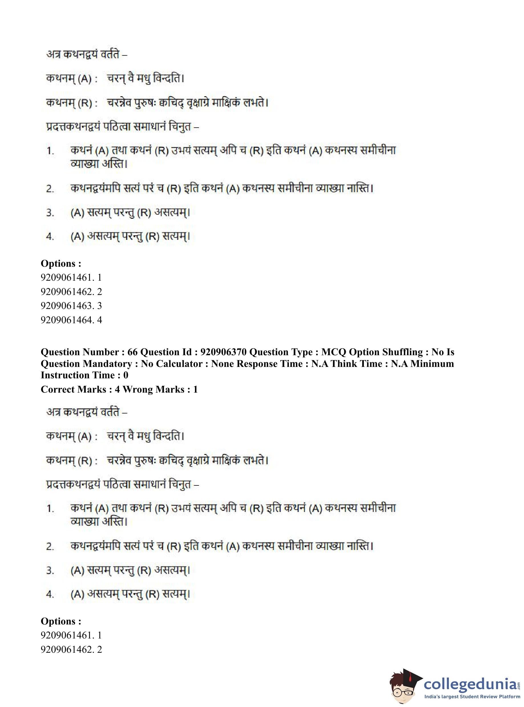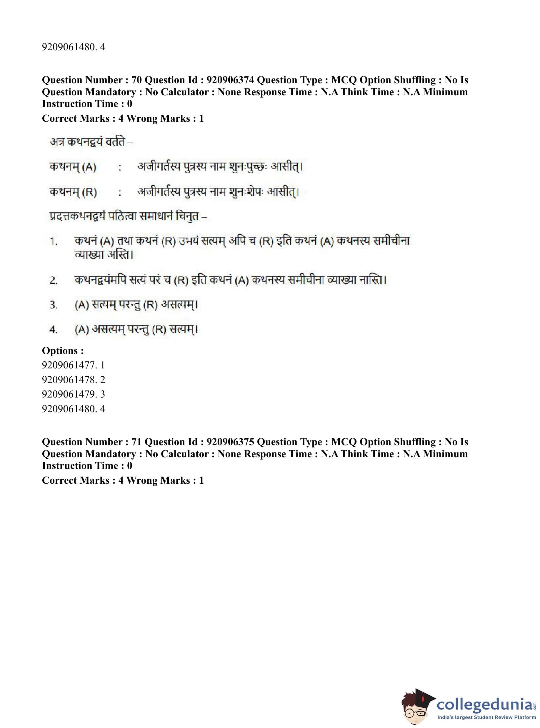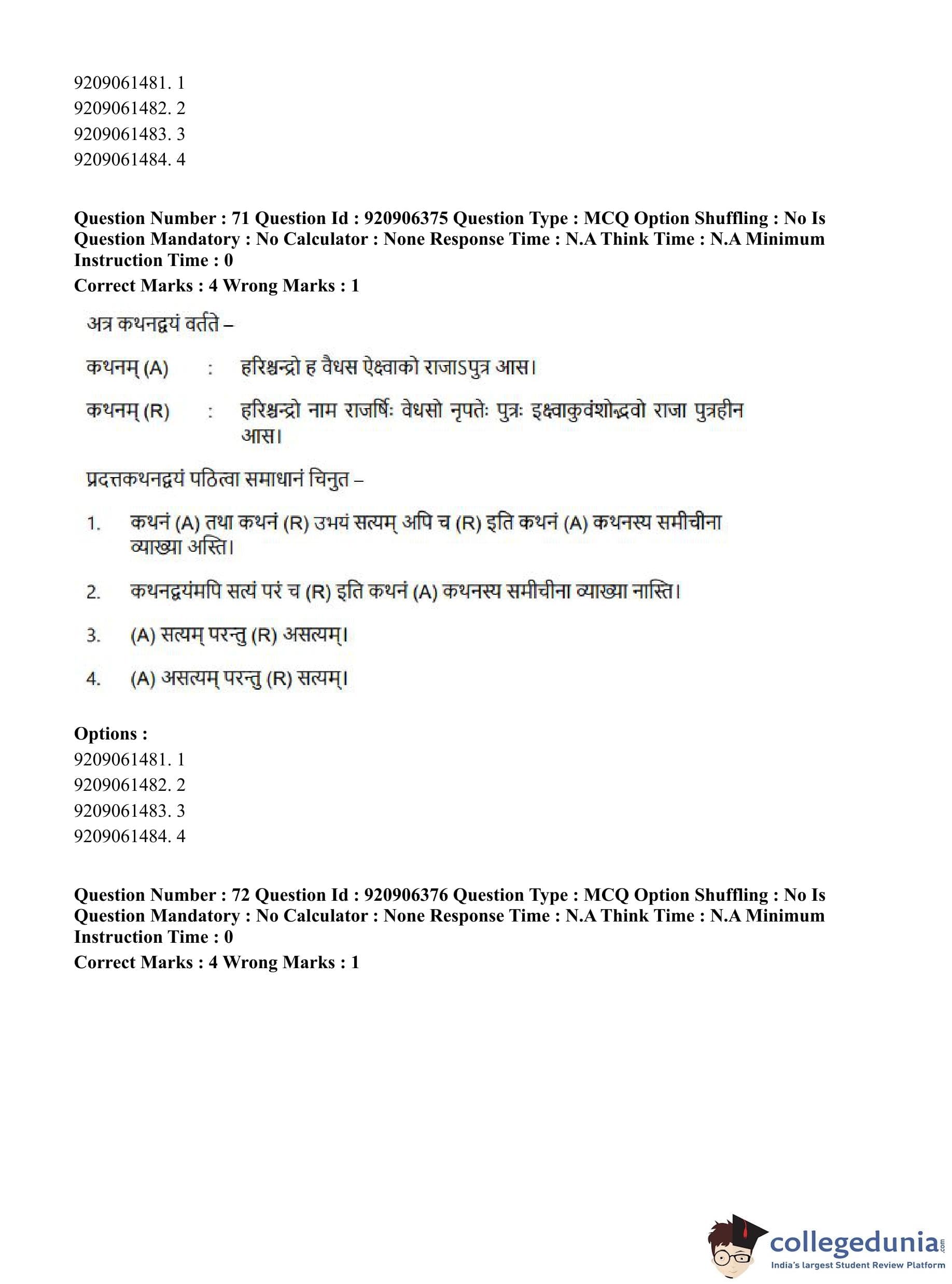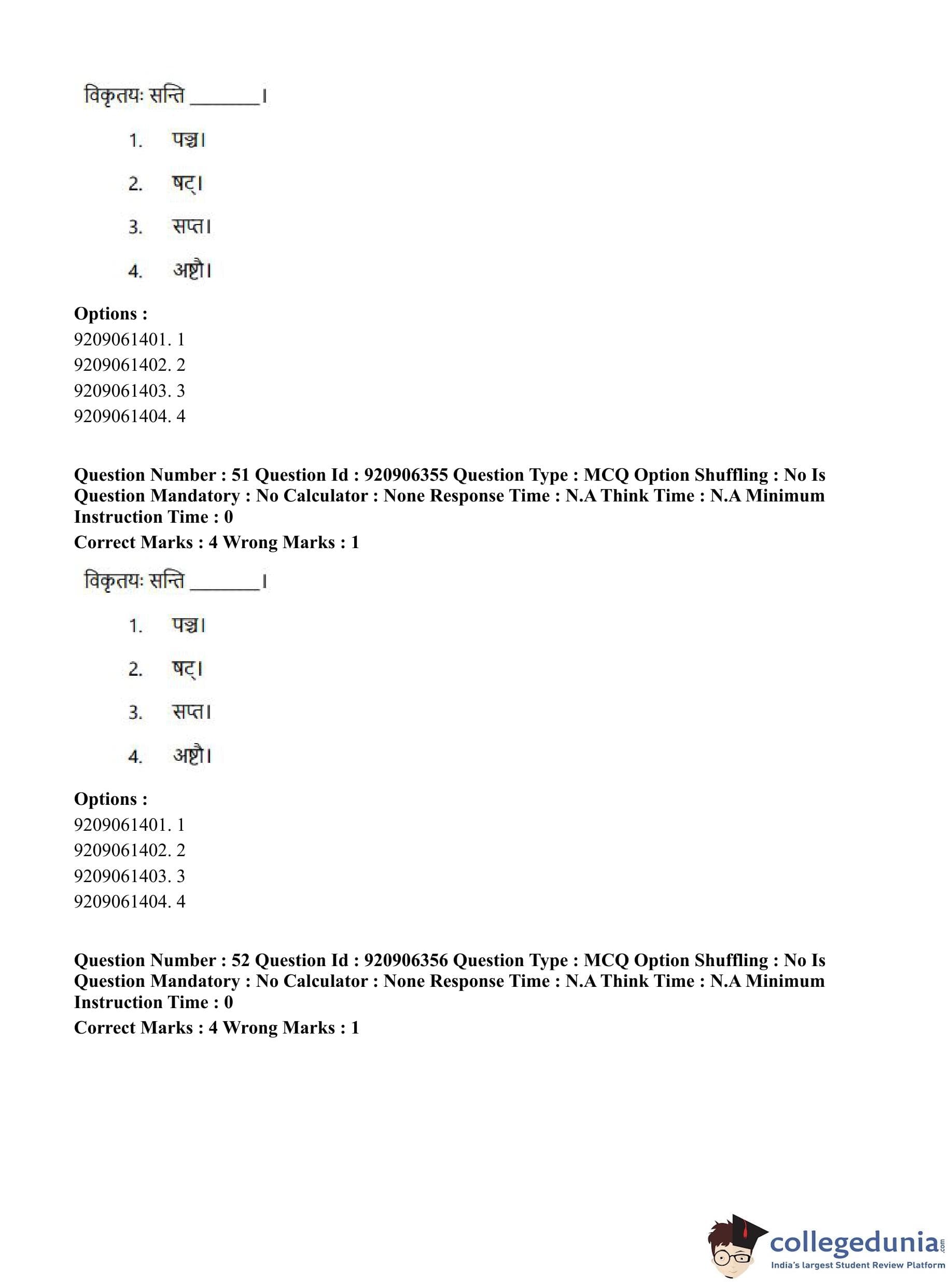 CUET PG 2023 Rigveda Question Paper in Hindi (June 6 - Shift 1)