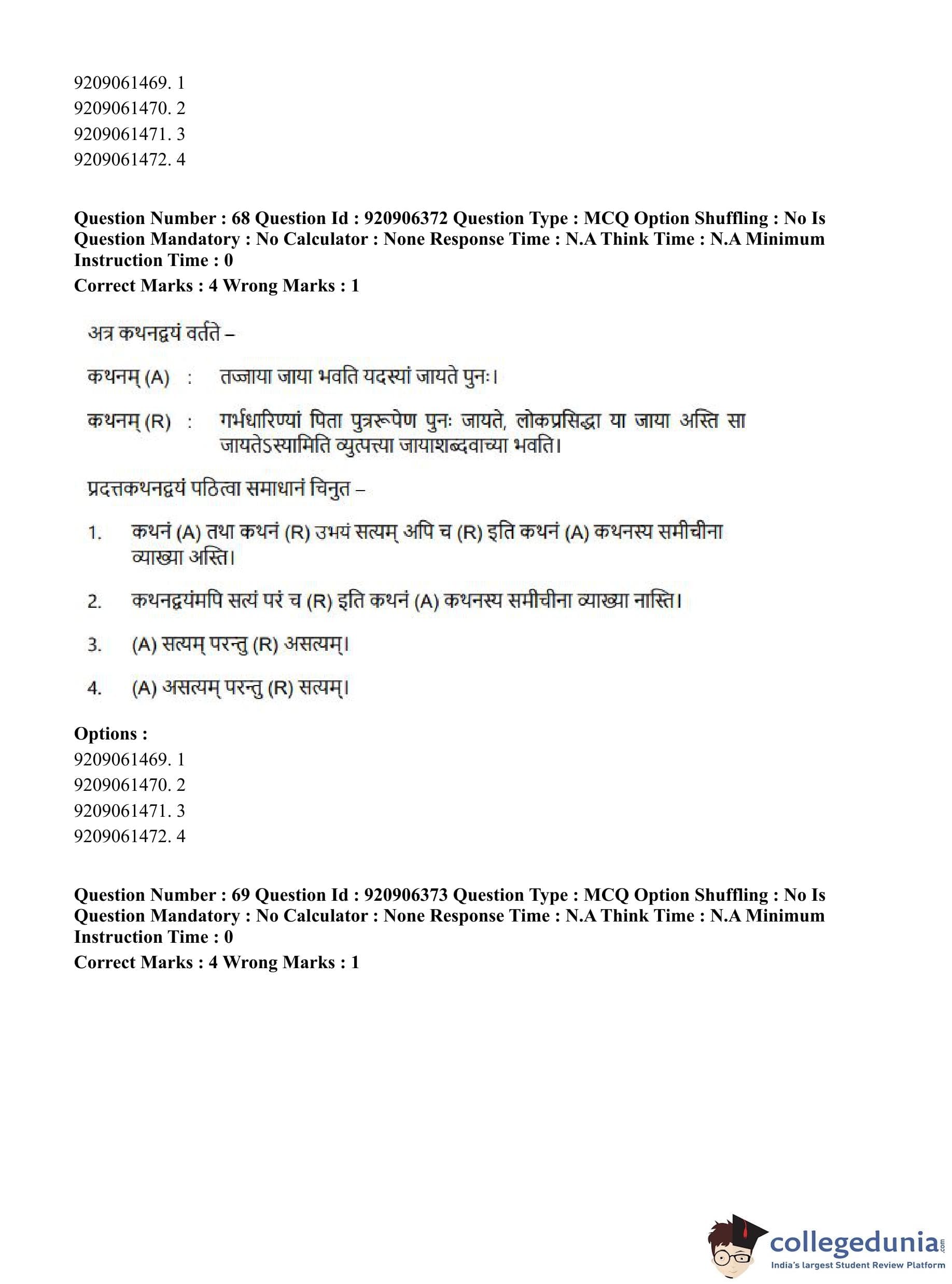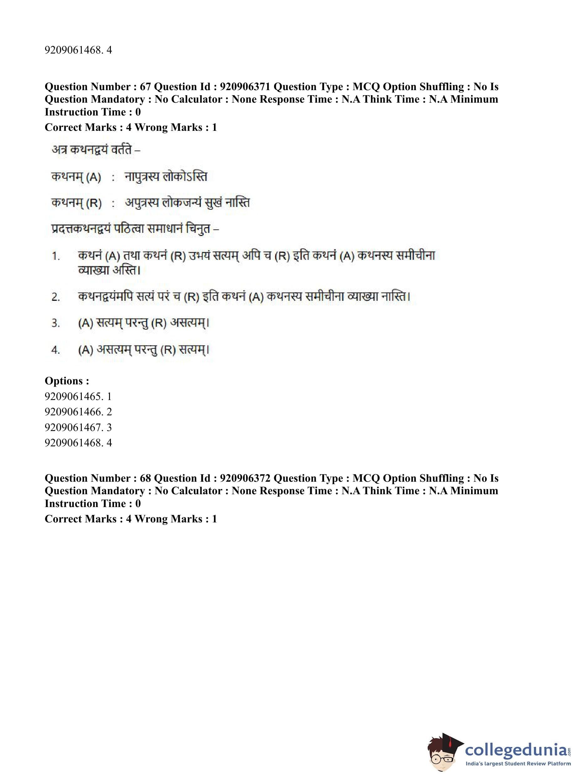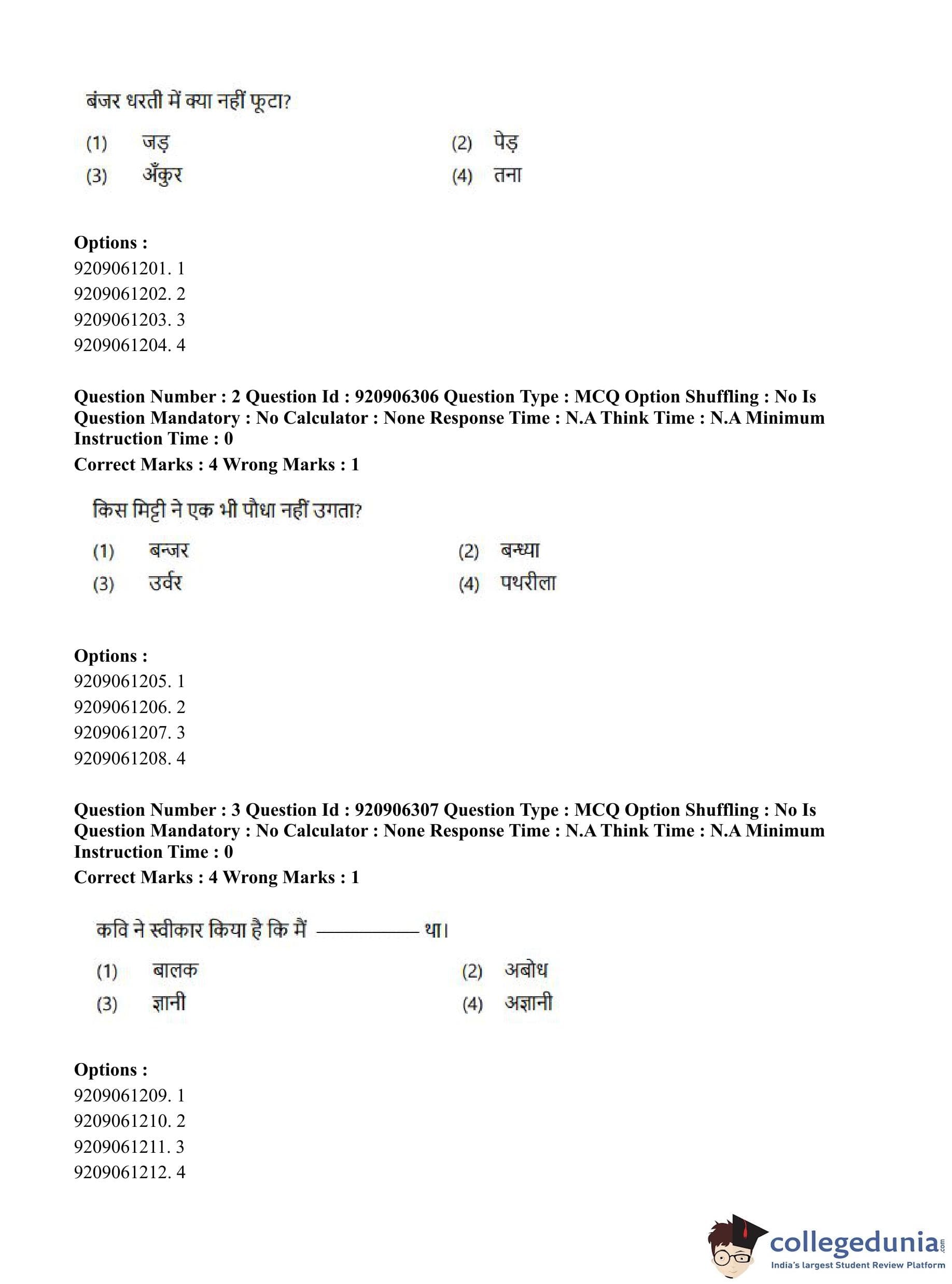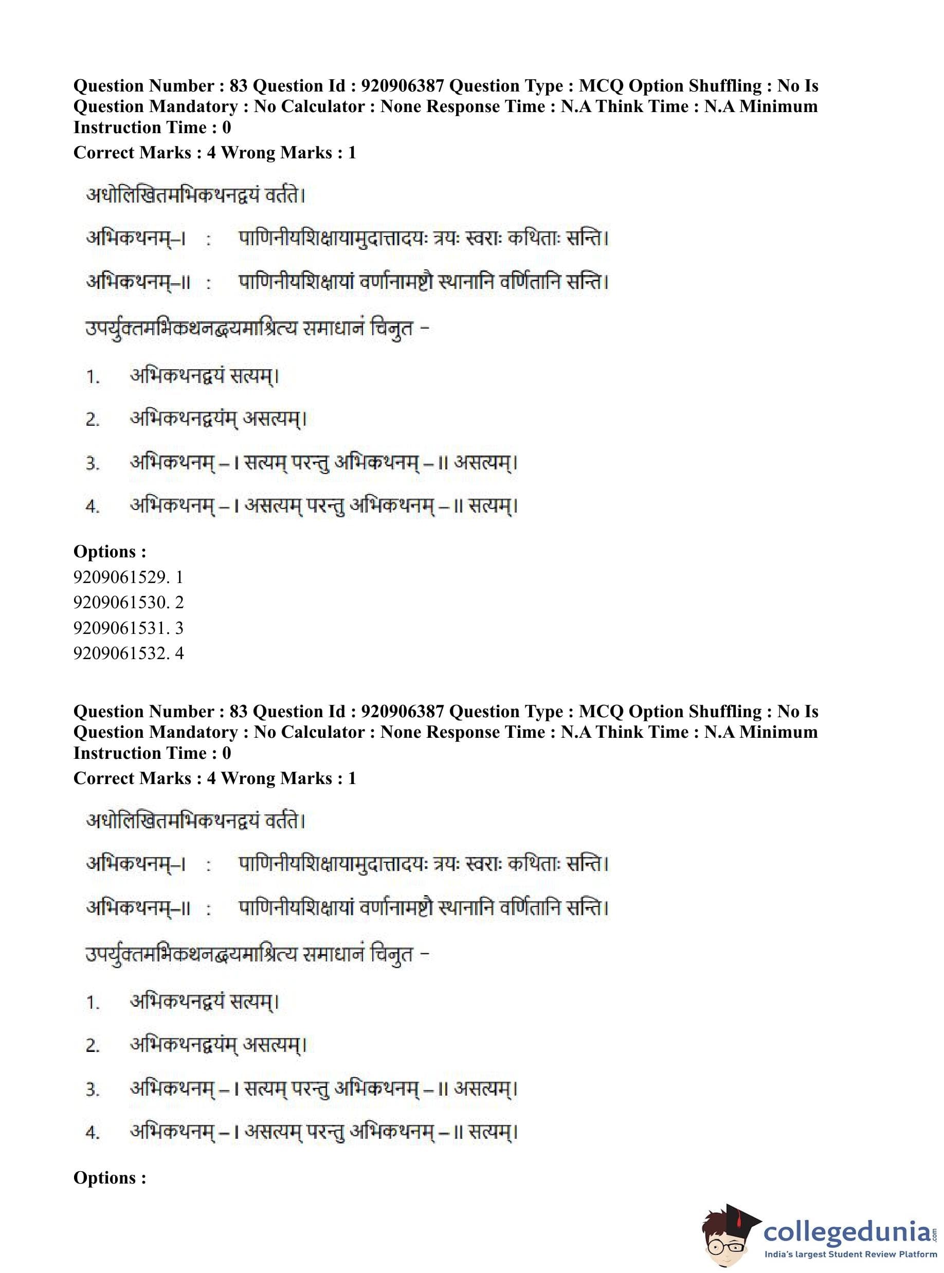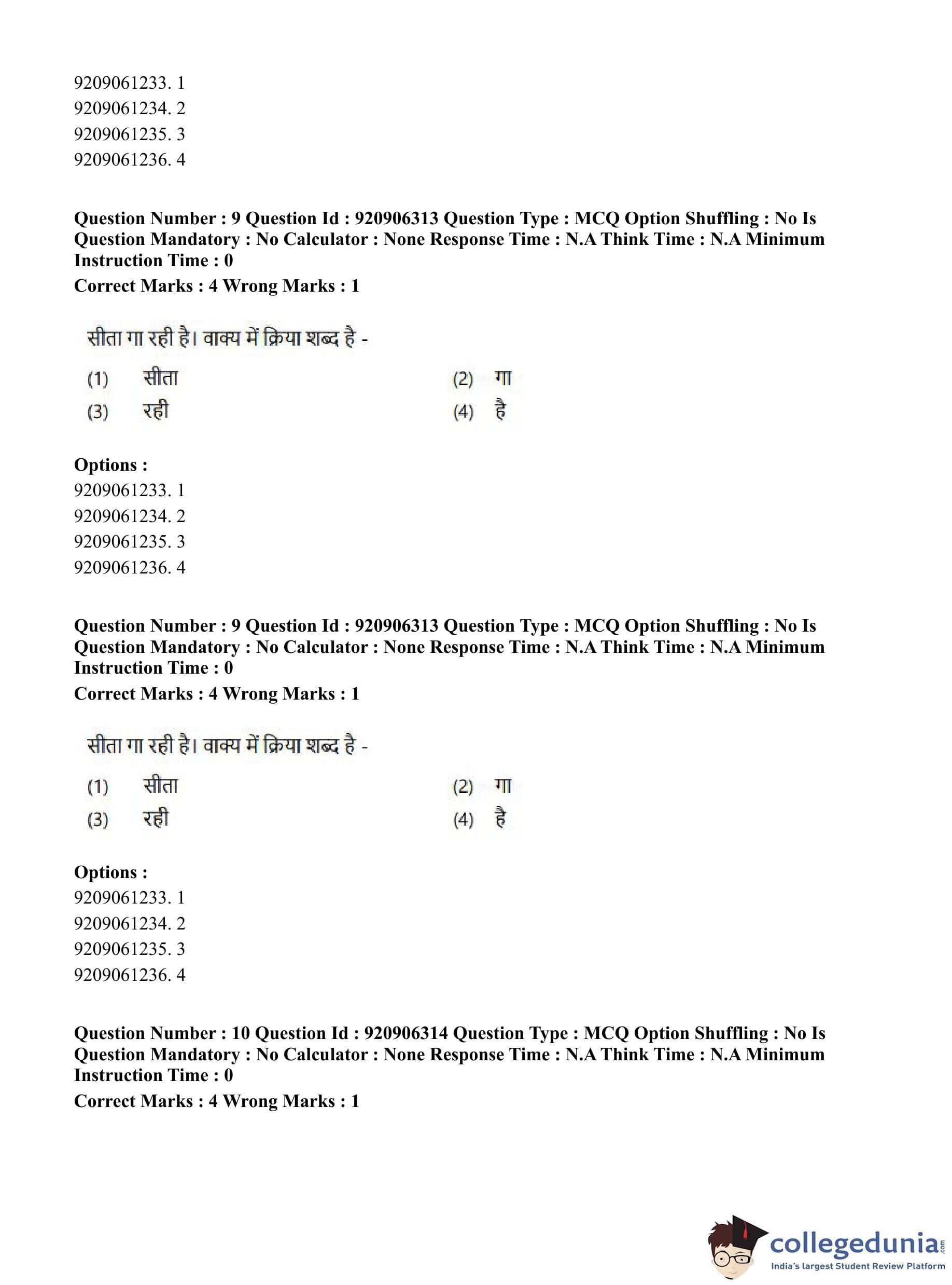 CUET PG 2023 Rigveda Question Paper in Hindi (June 6 - Shift 1)