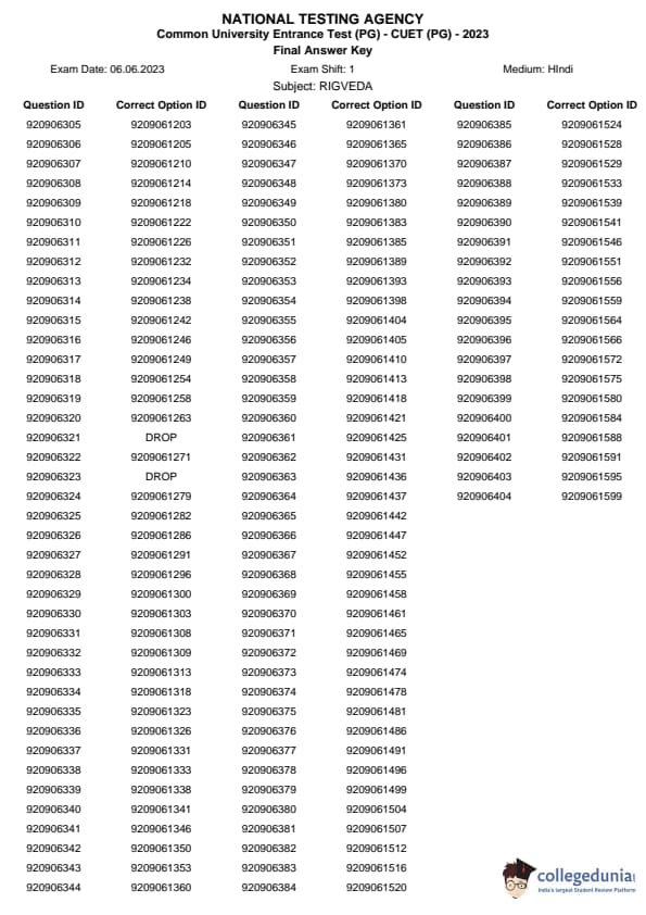 | CUET PG Rigveda Question Paper 2023 PDF | CUET PG Rigveda Answer Key 2023 PDF |