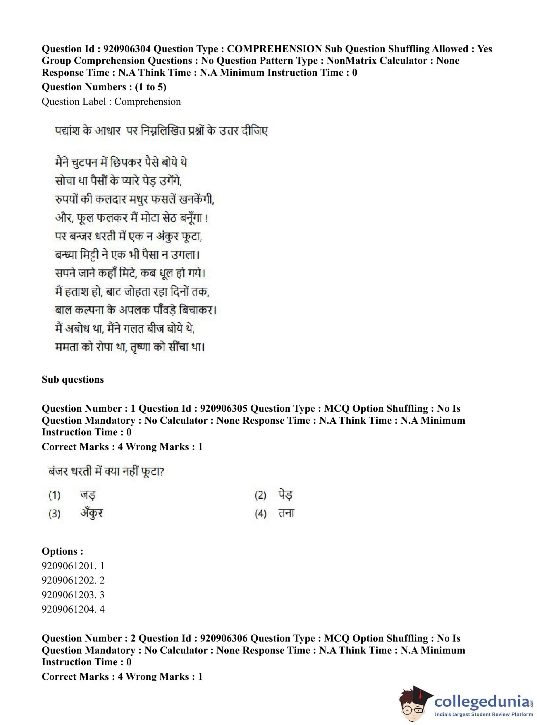 CUET PG 2023 Rigveda Question Paper with Answer Key PDF in Hindi is available for download here. The exam was conducted by National Testing Agency (NTA) on June 6, 2023 in Shift 1. The question paper comprised a total of 100 questions divided into 2 sections.