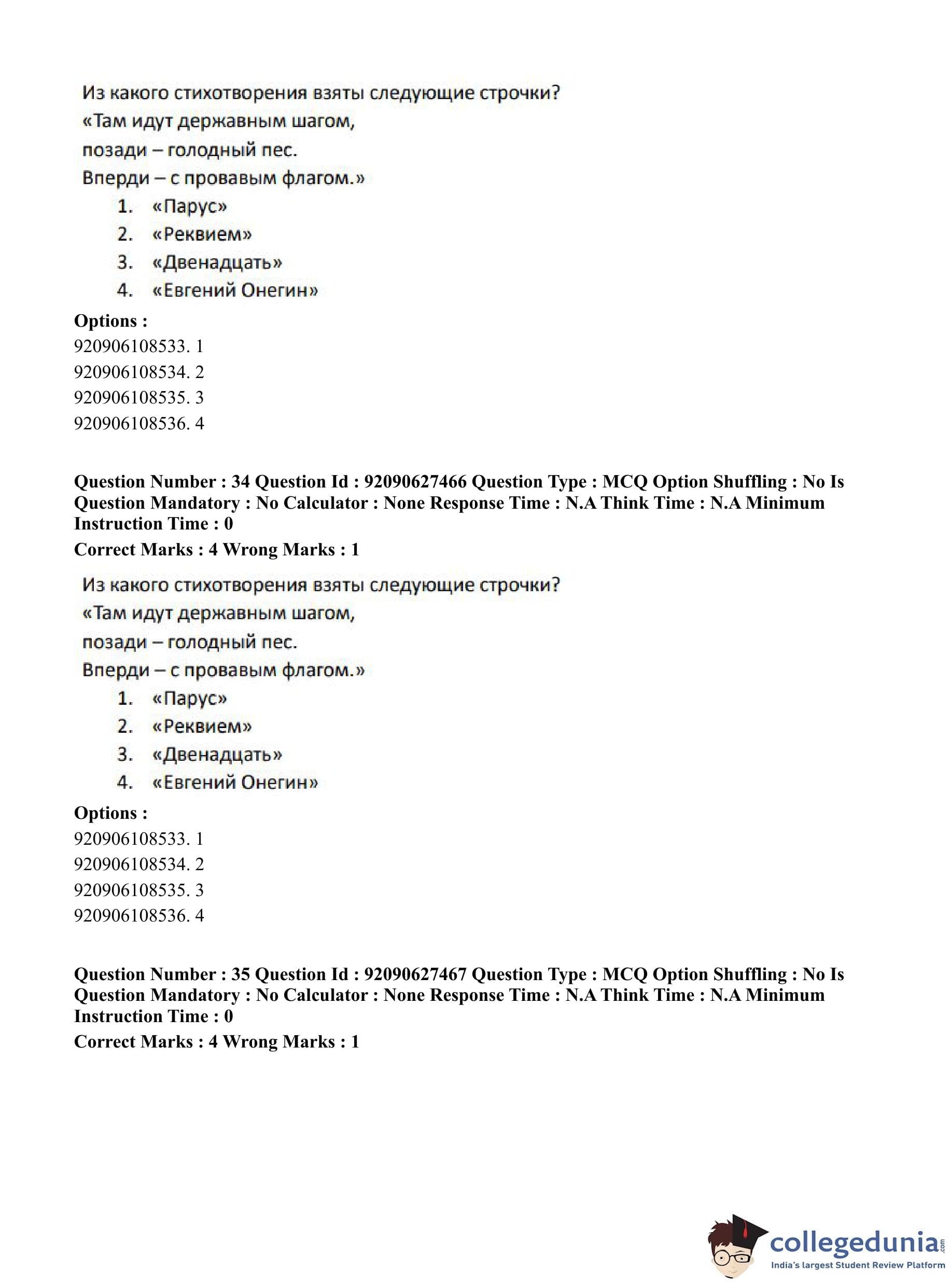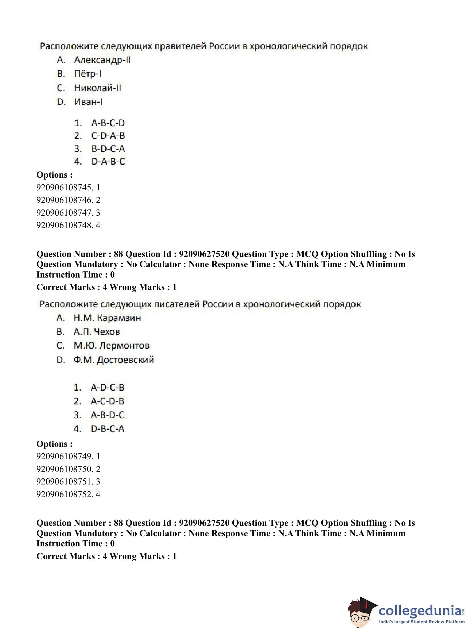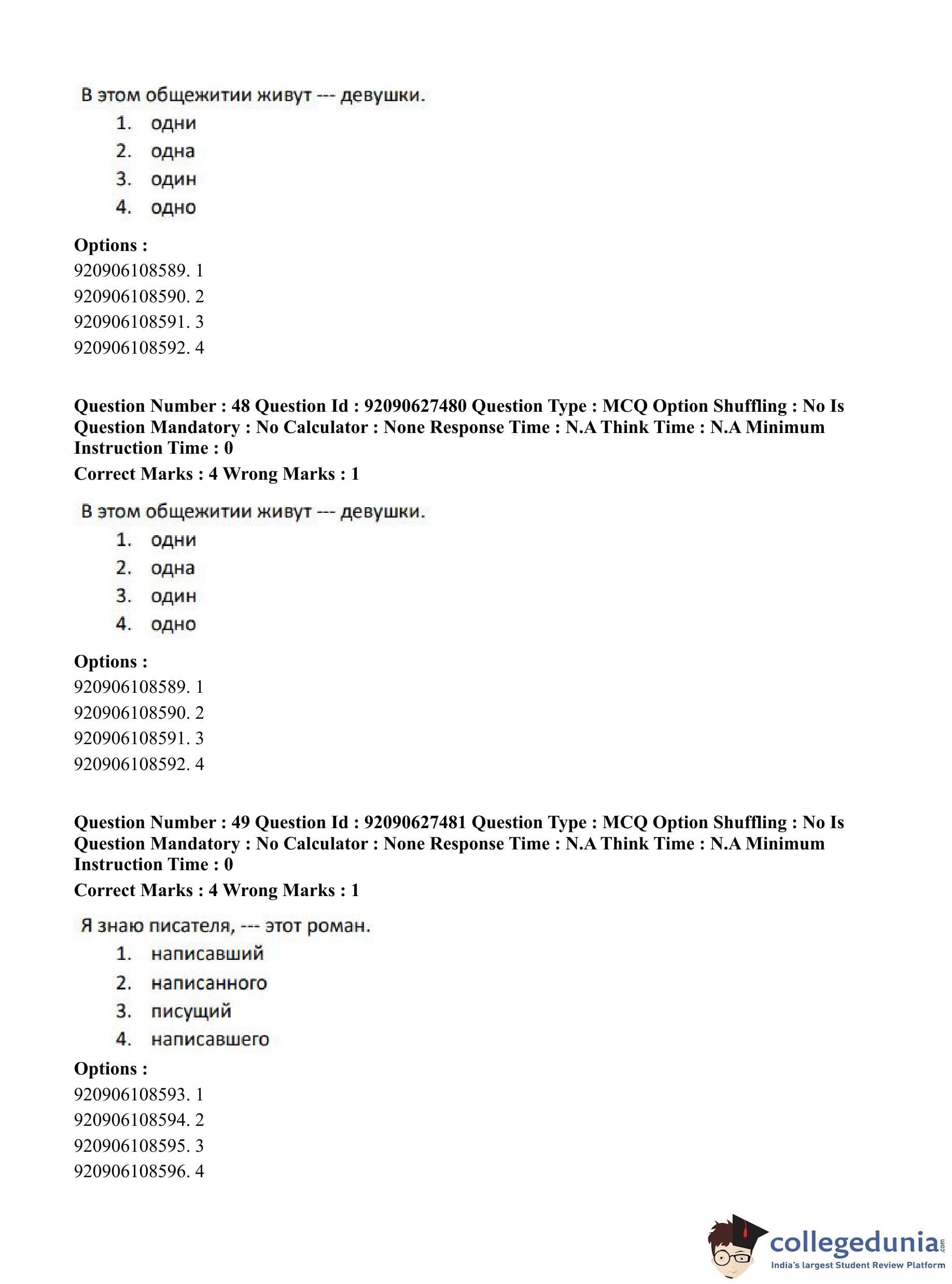 CUET PG 2023 Russian Question Paper in English (June 26 - Shift 3)