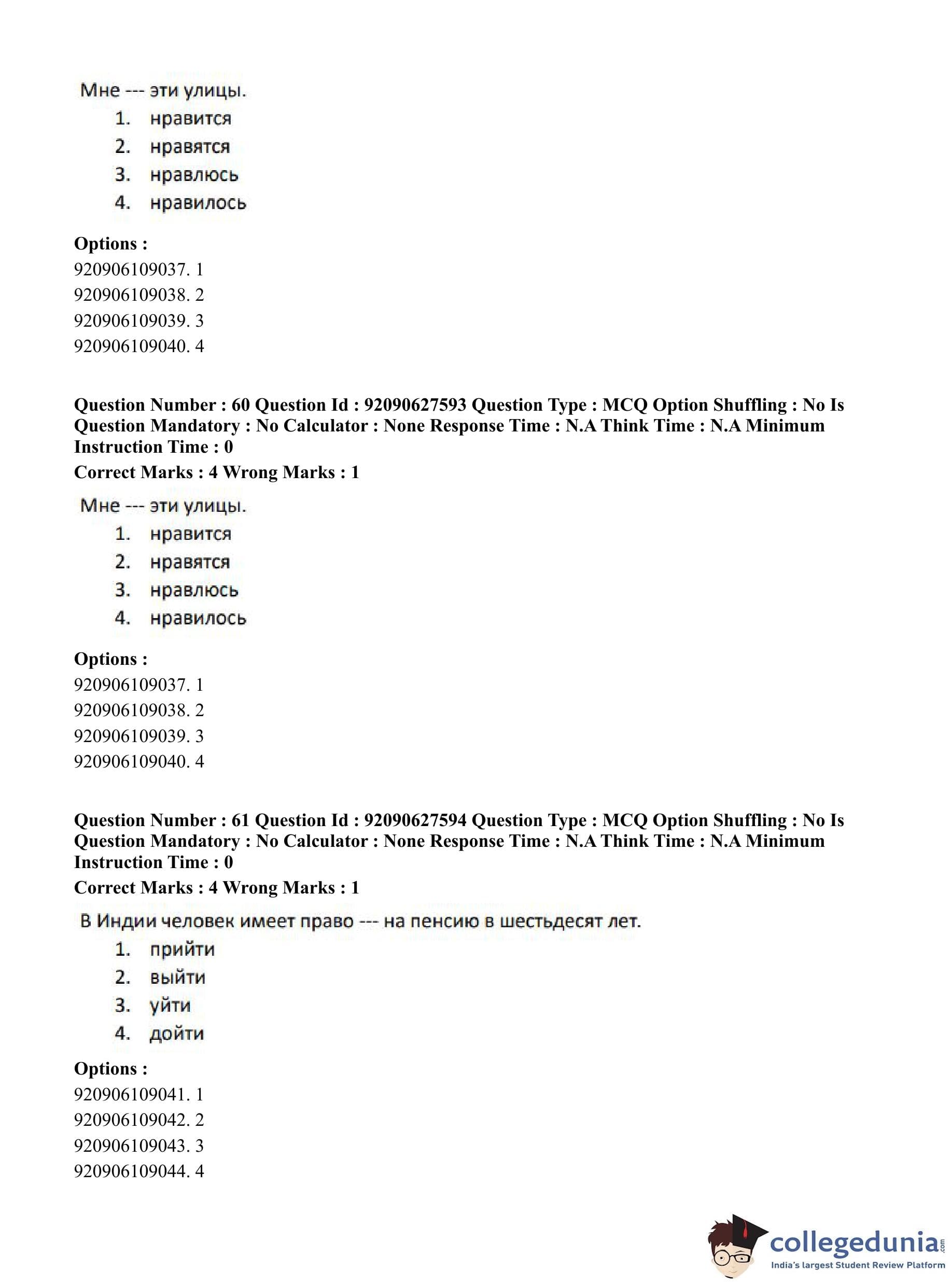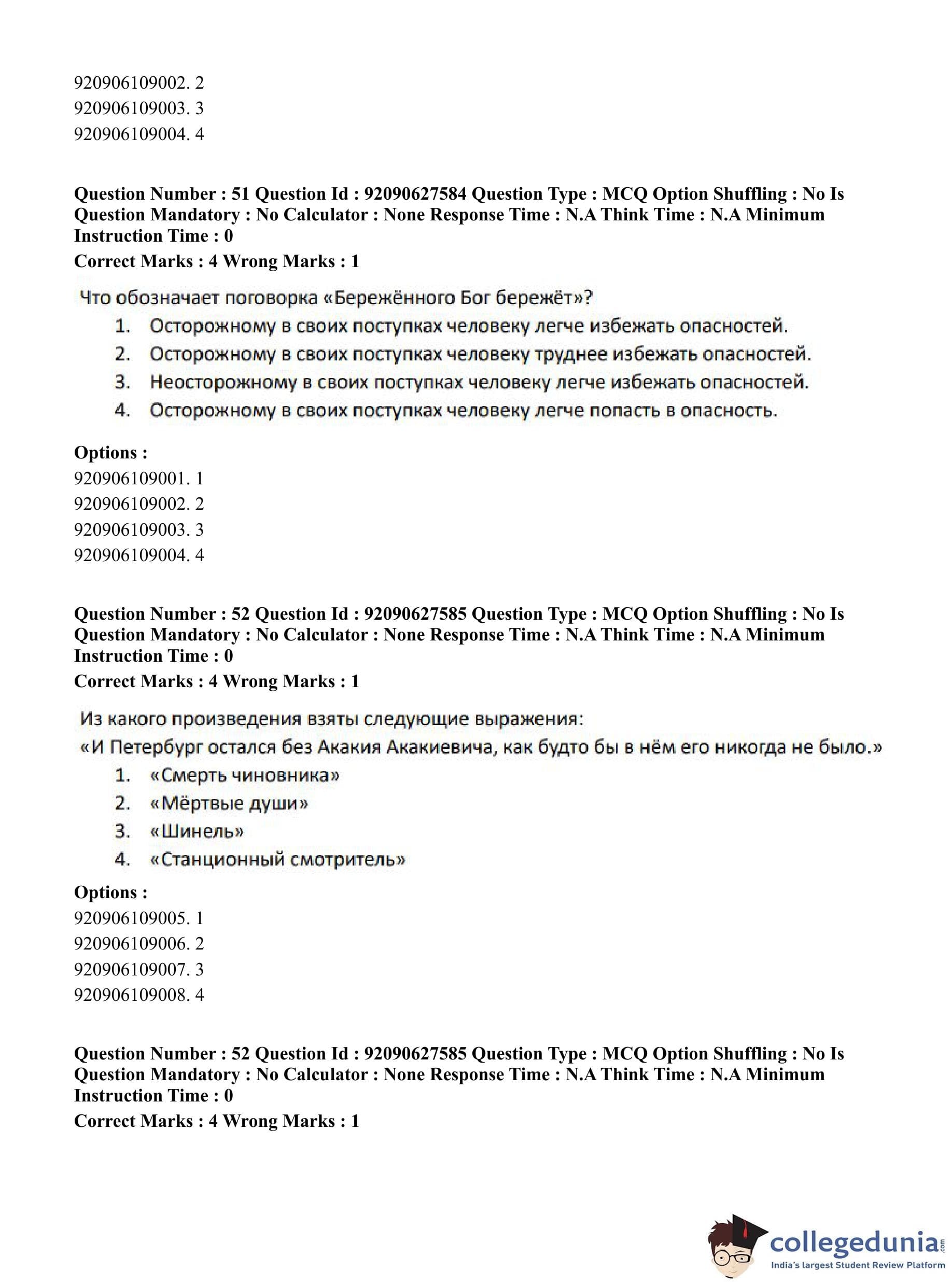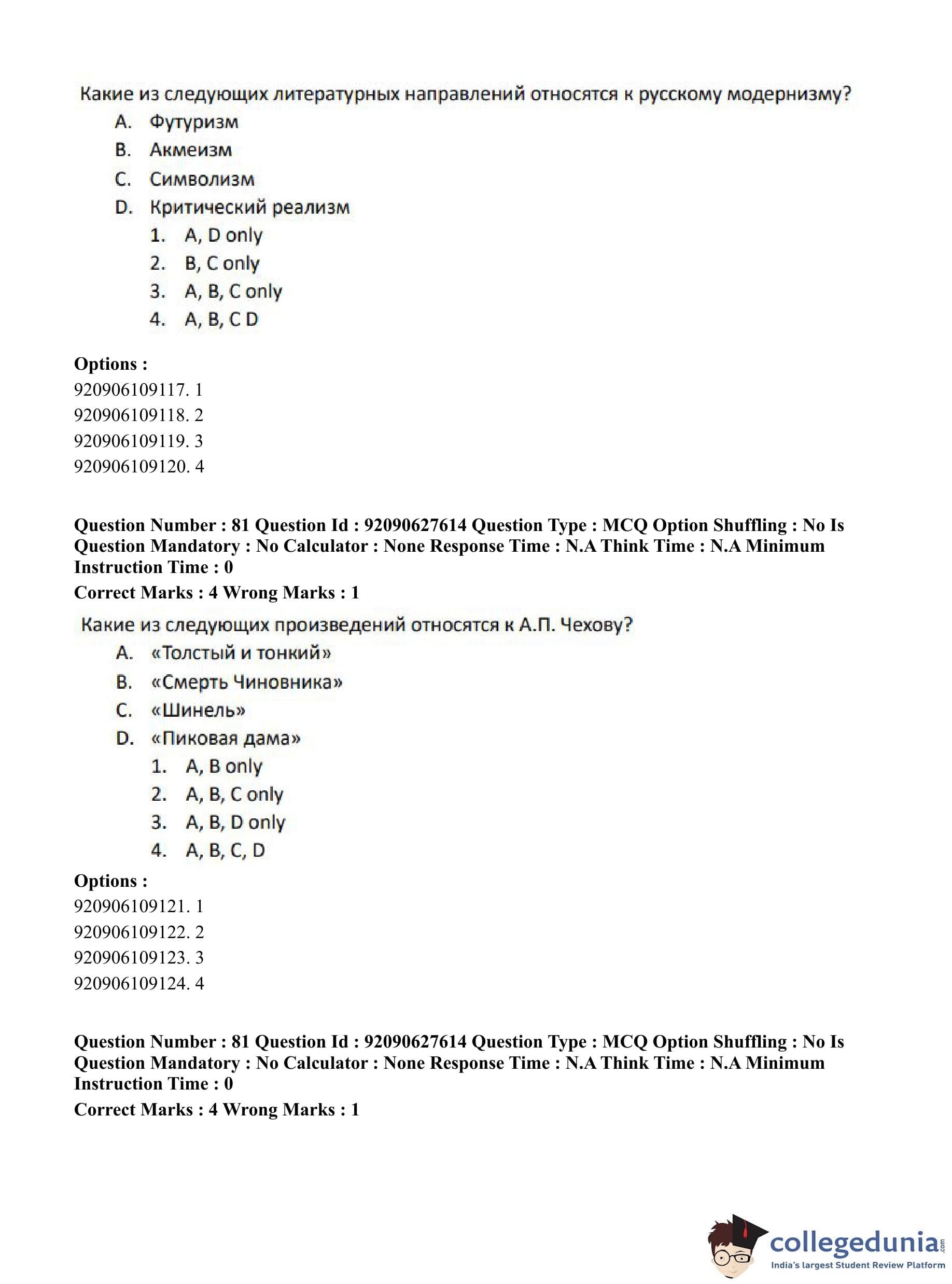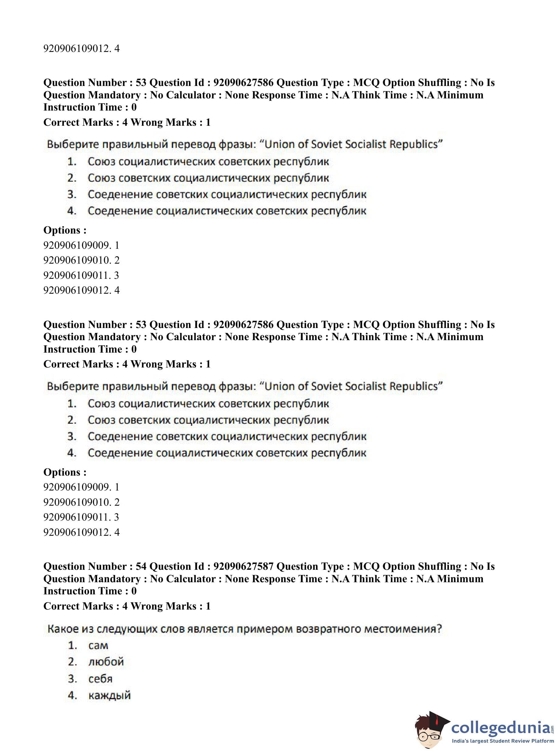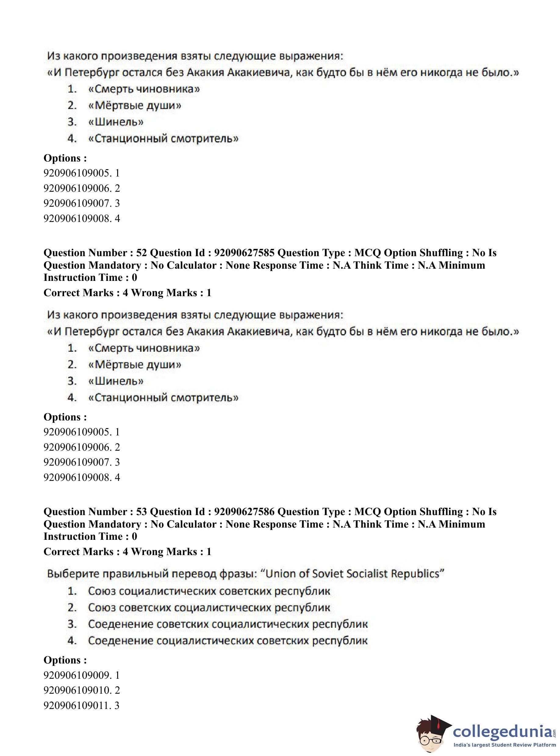CUET PG 2023 Russian Question Paper in Hindi (June 26 - Shift 3)