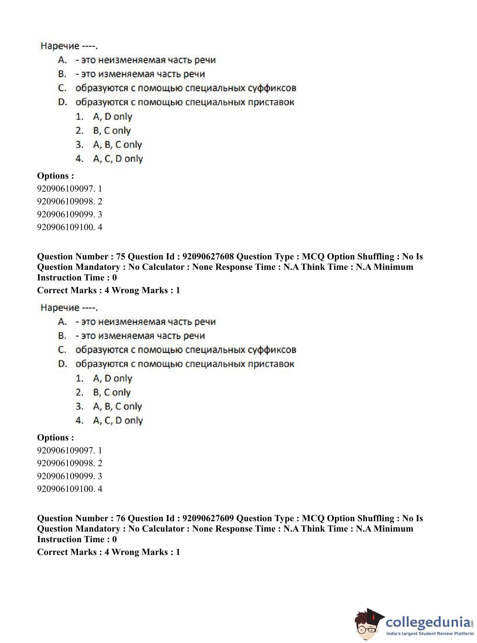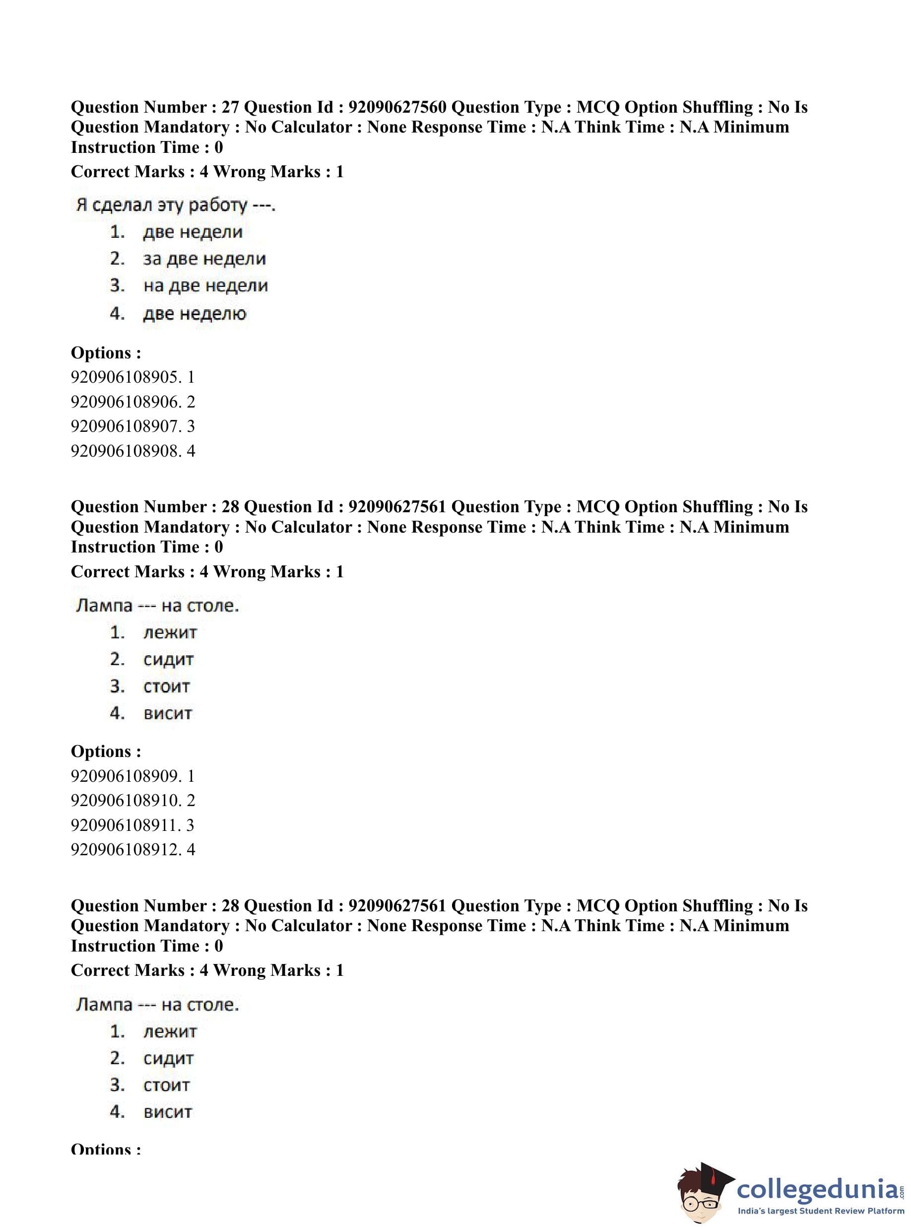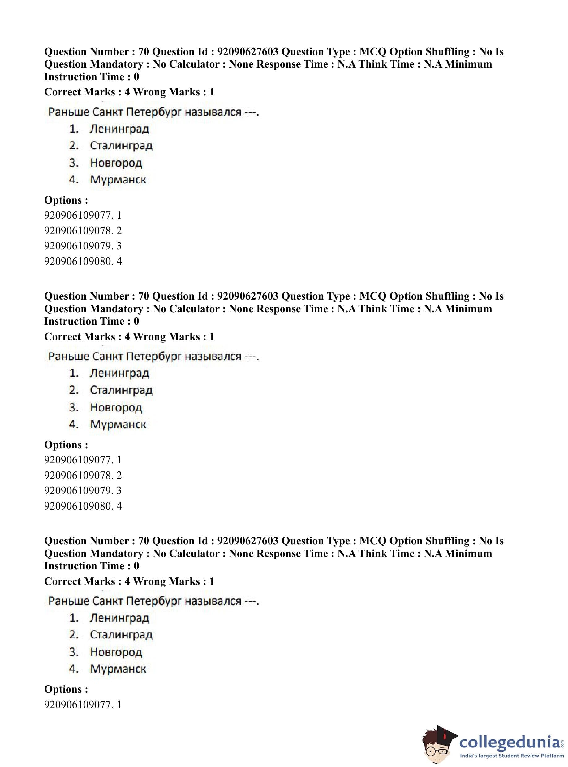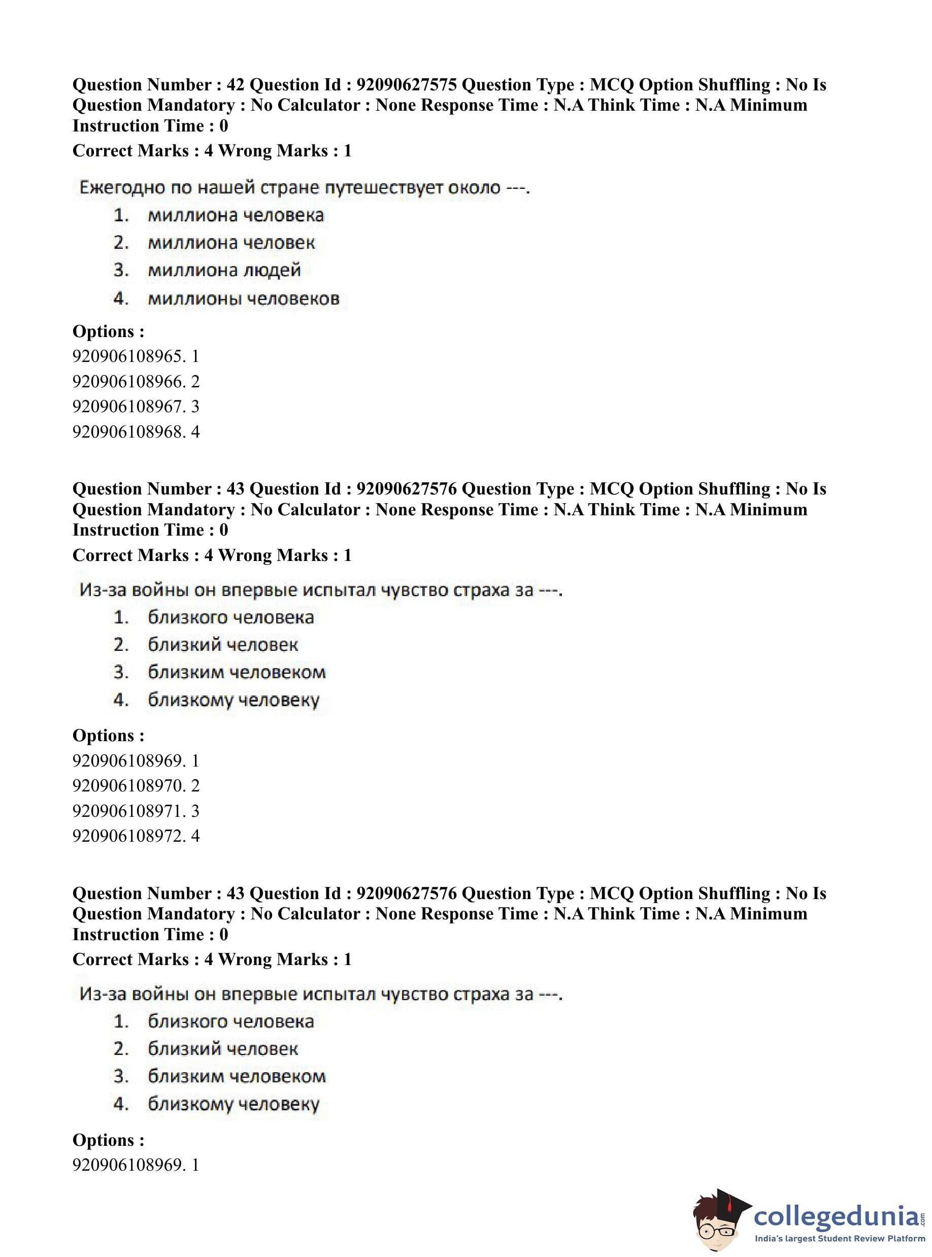 CUET PG 2023 Russian Question Paper in Hindi (June 26 - Shift 3)