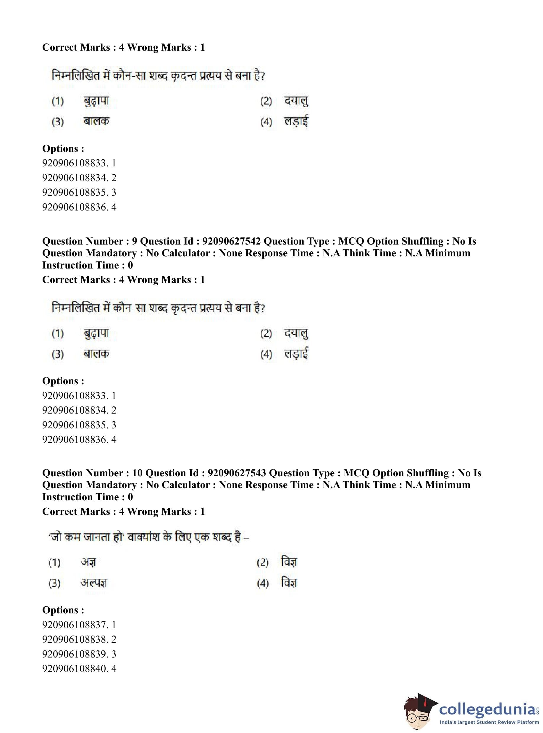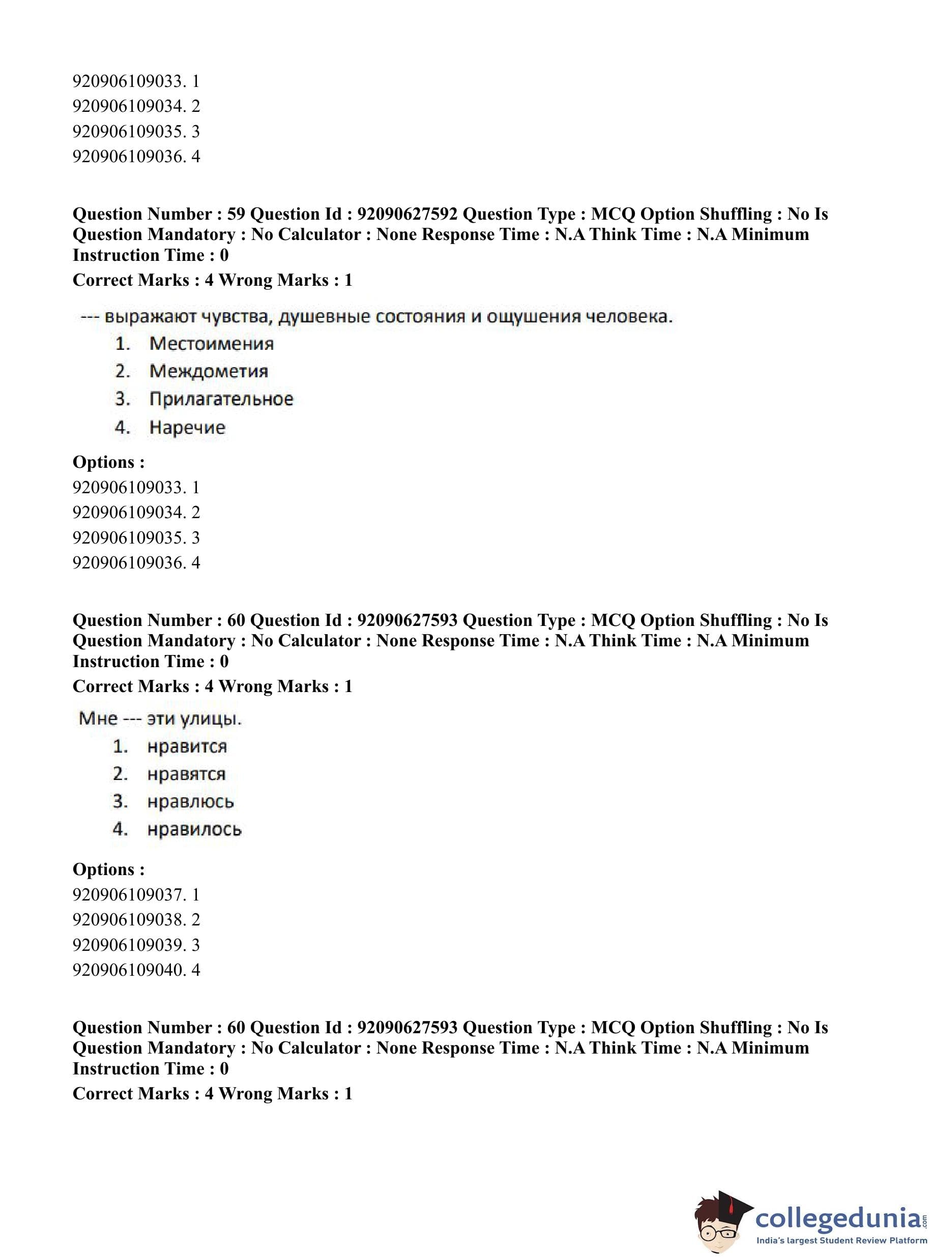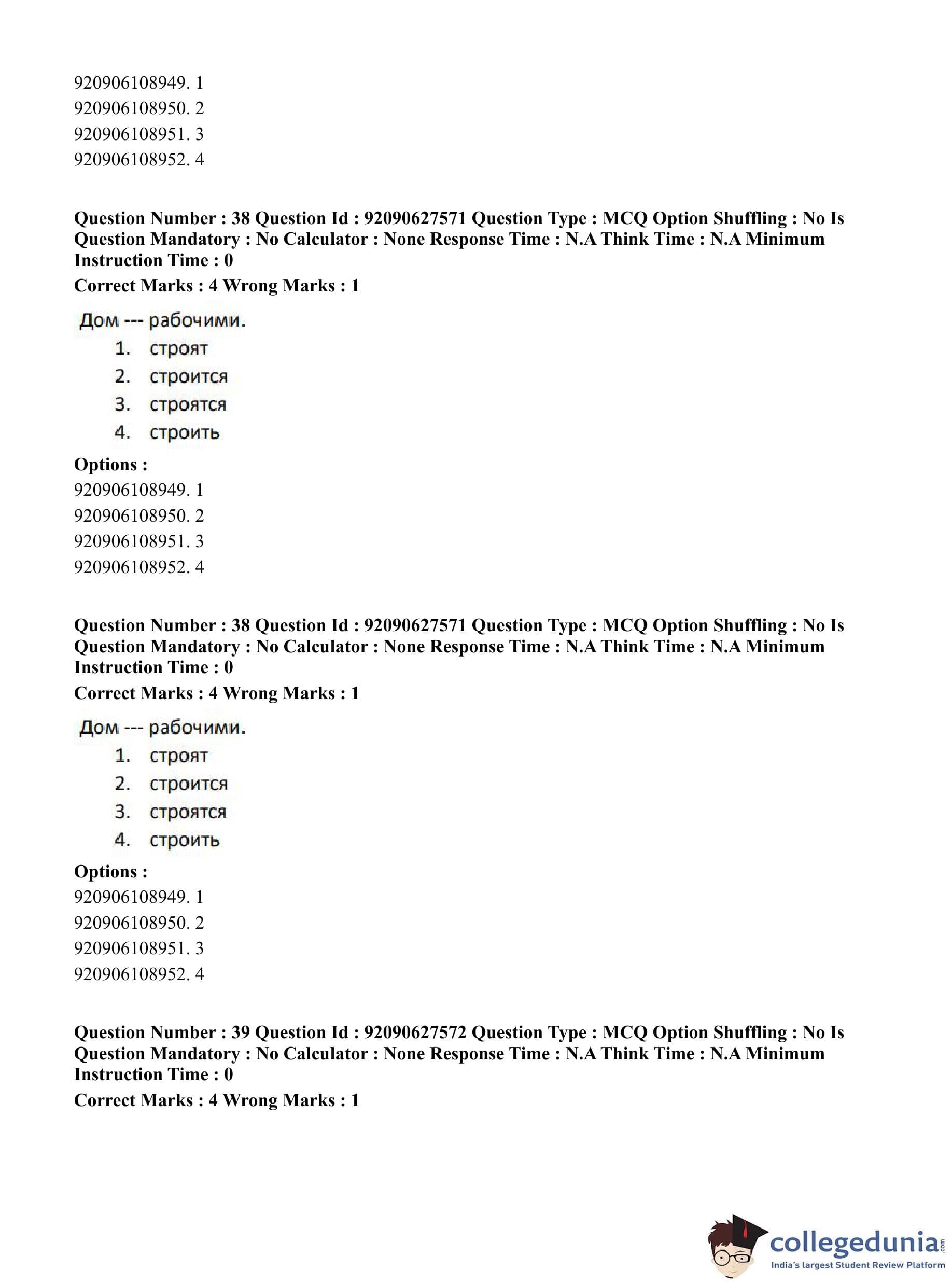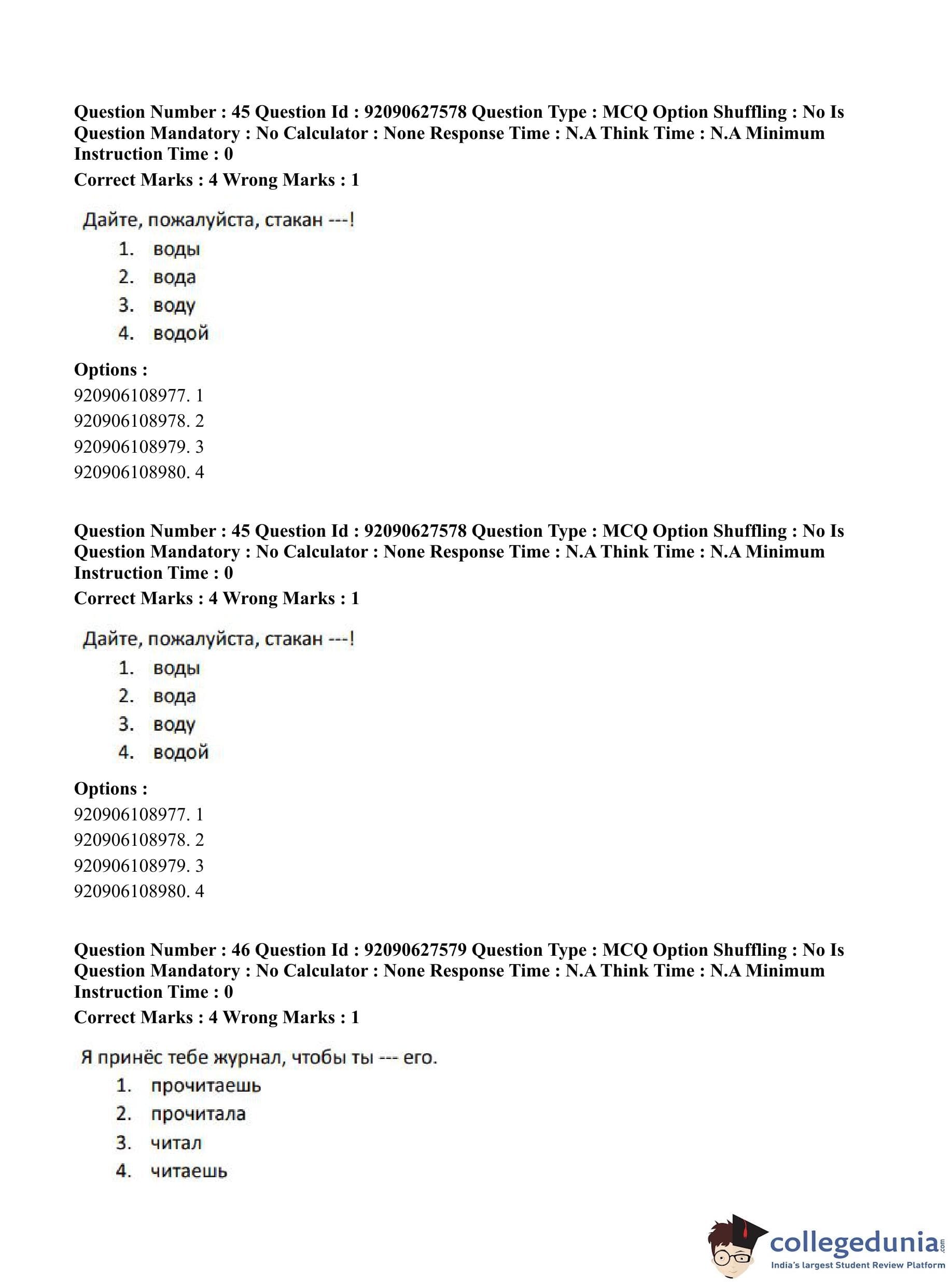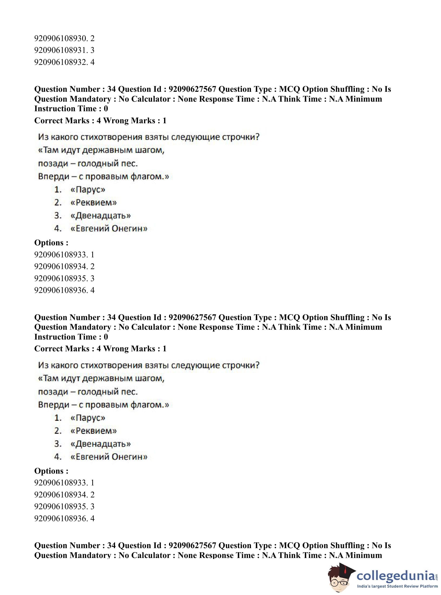 CUET PG 2023 Russian Question Paper in Hindi (June 26 - Shift 3)