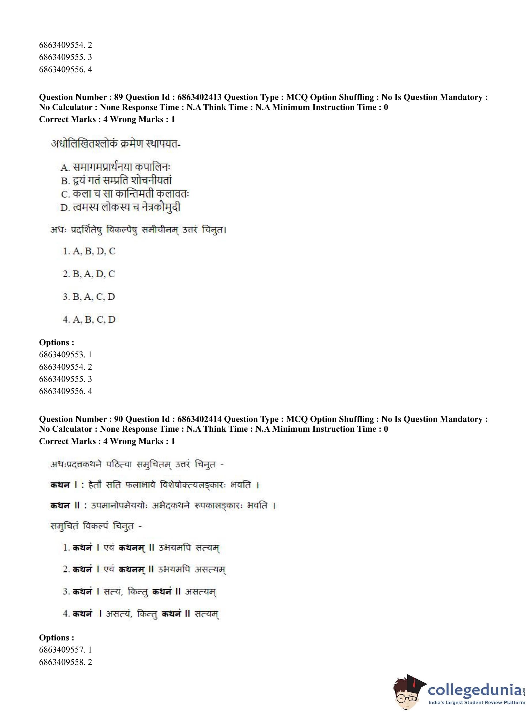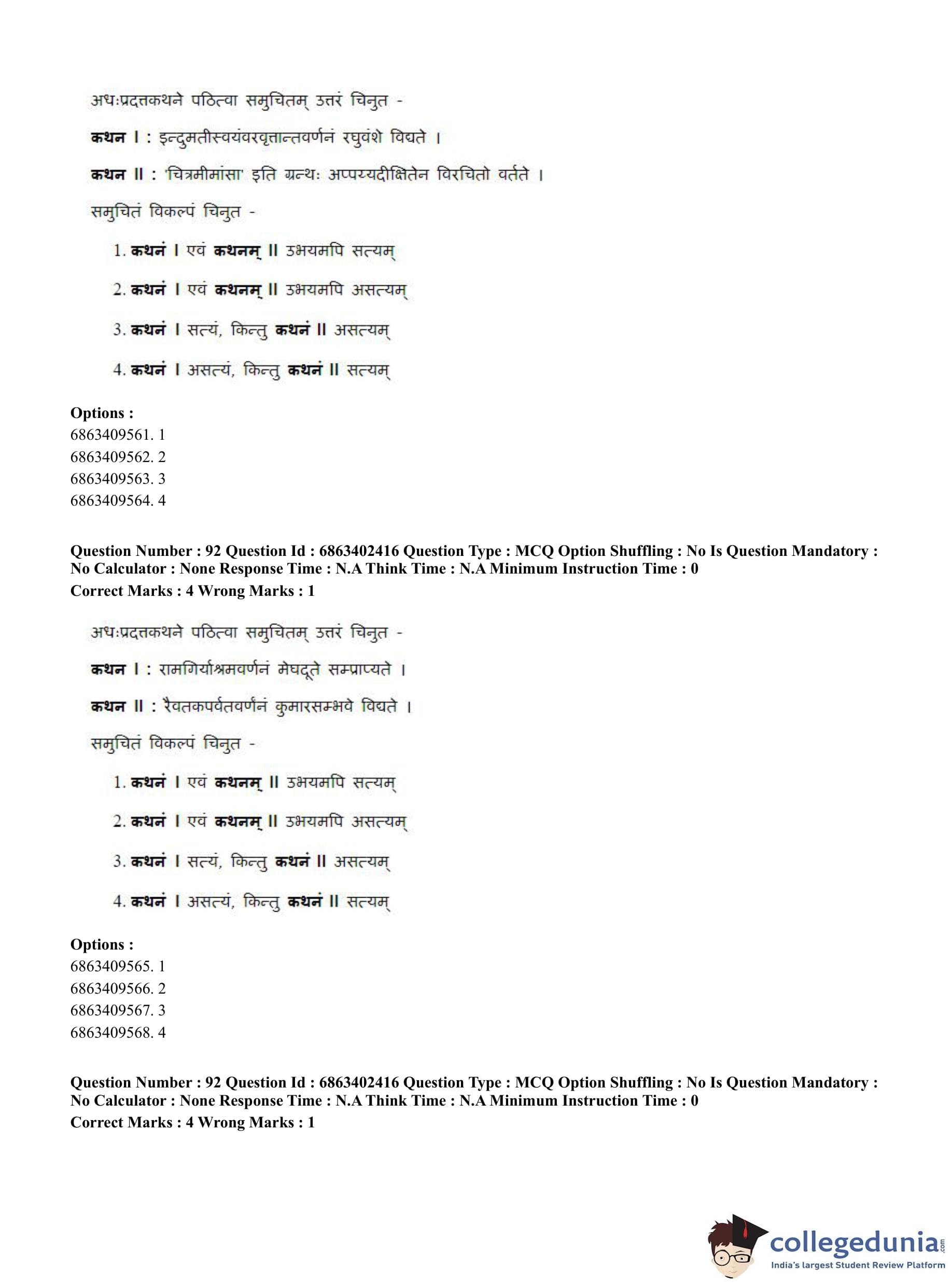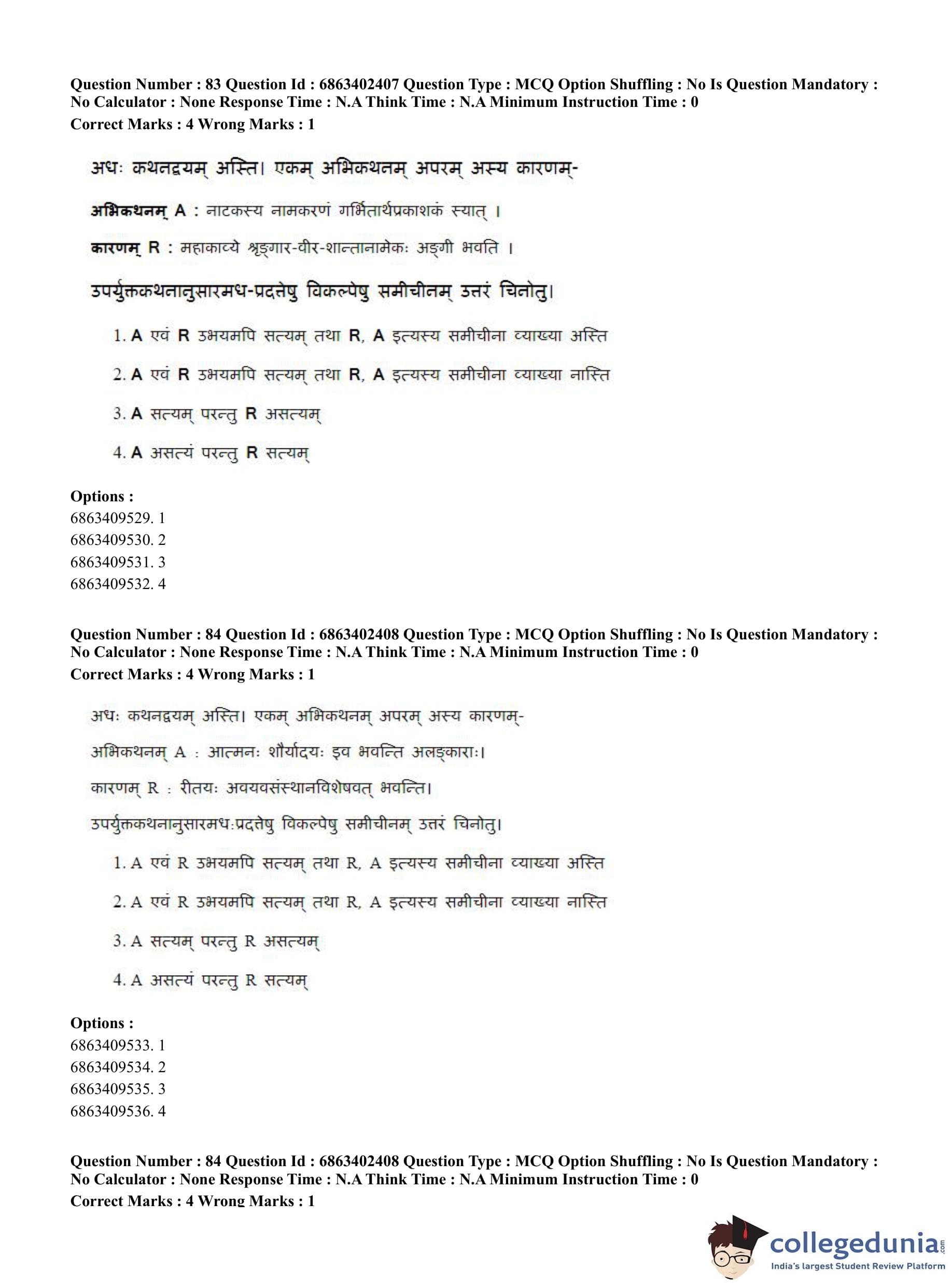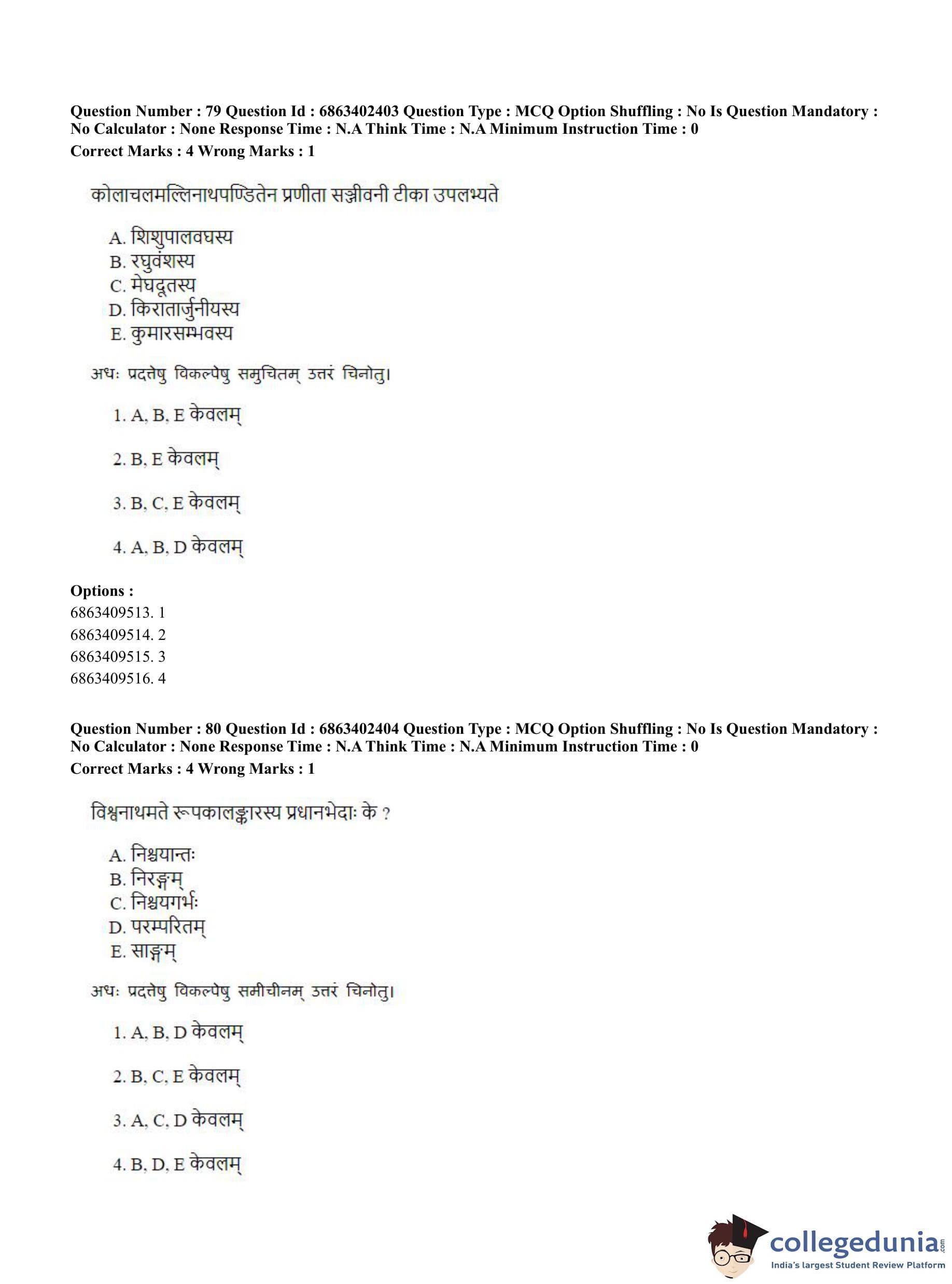 CUET PG 2023 Sahitya (Alankara and Kavya varga) Question Paper in Hindi (June 5 - Shift 2)