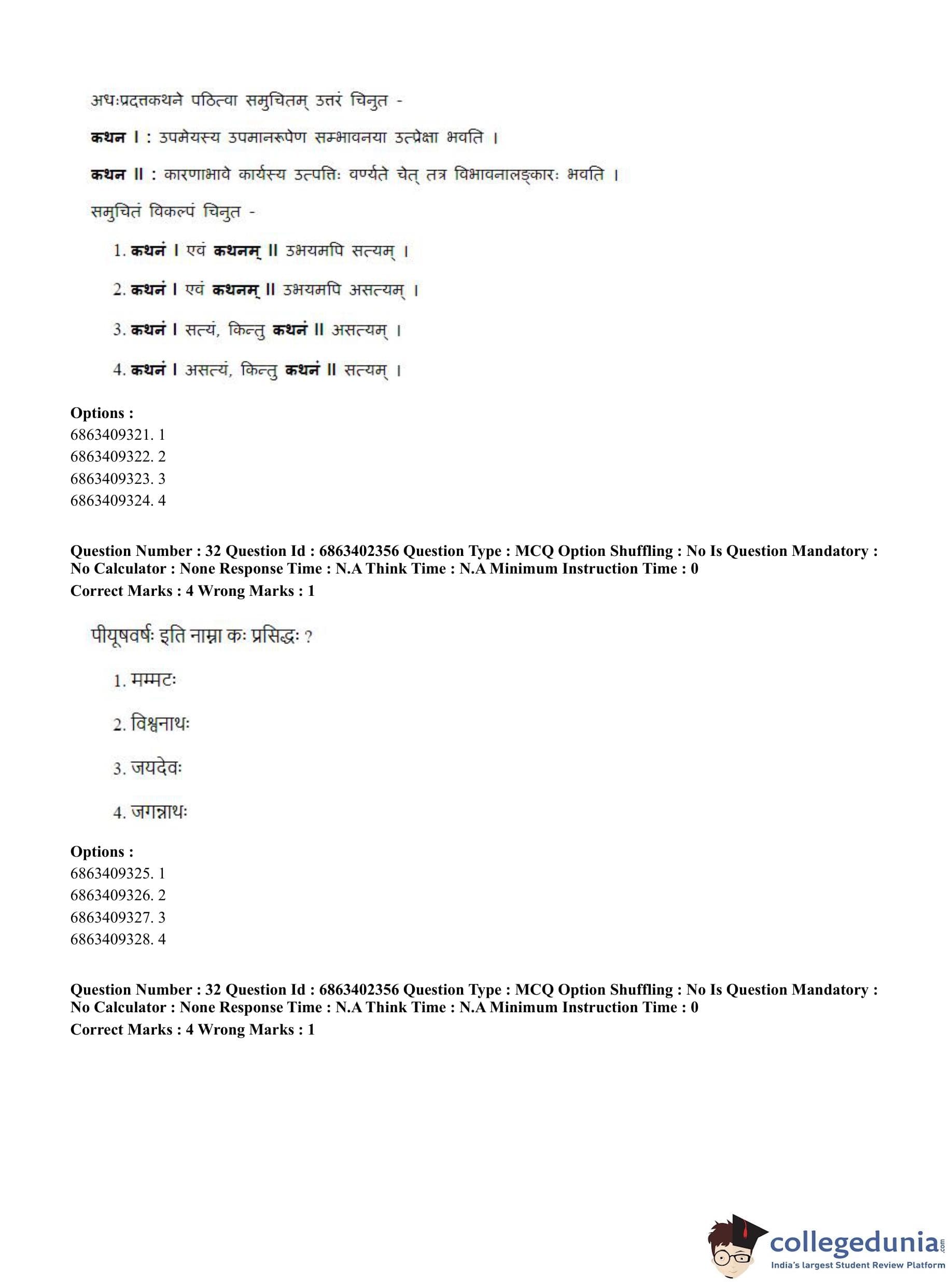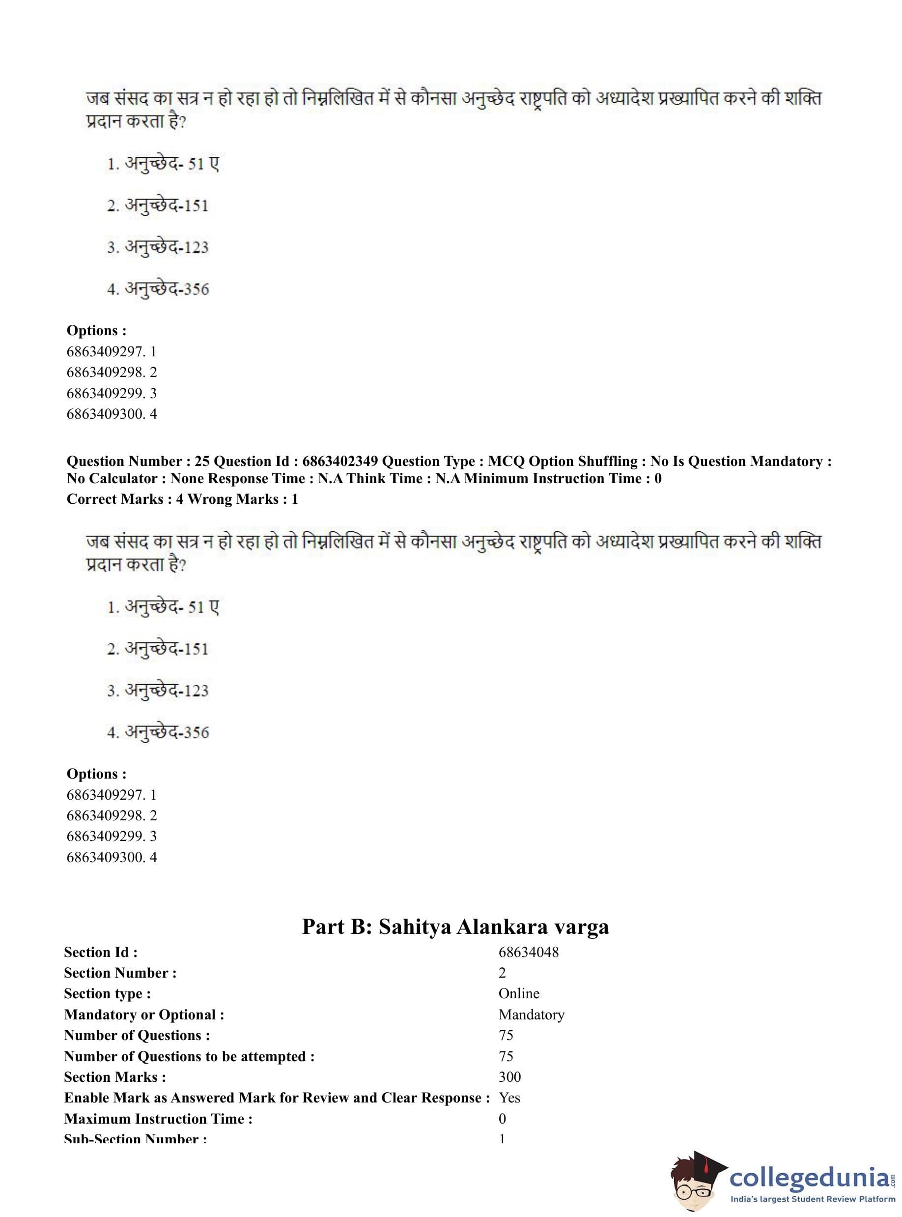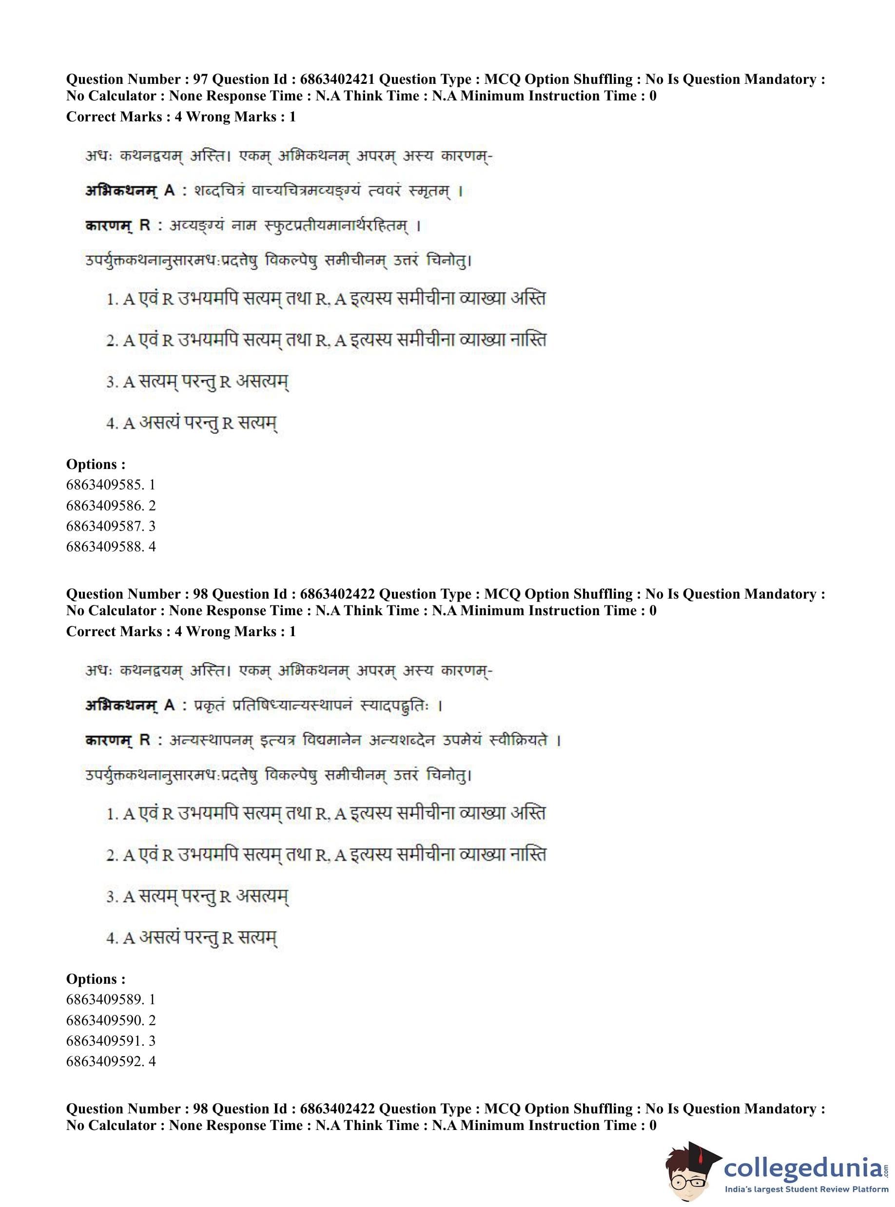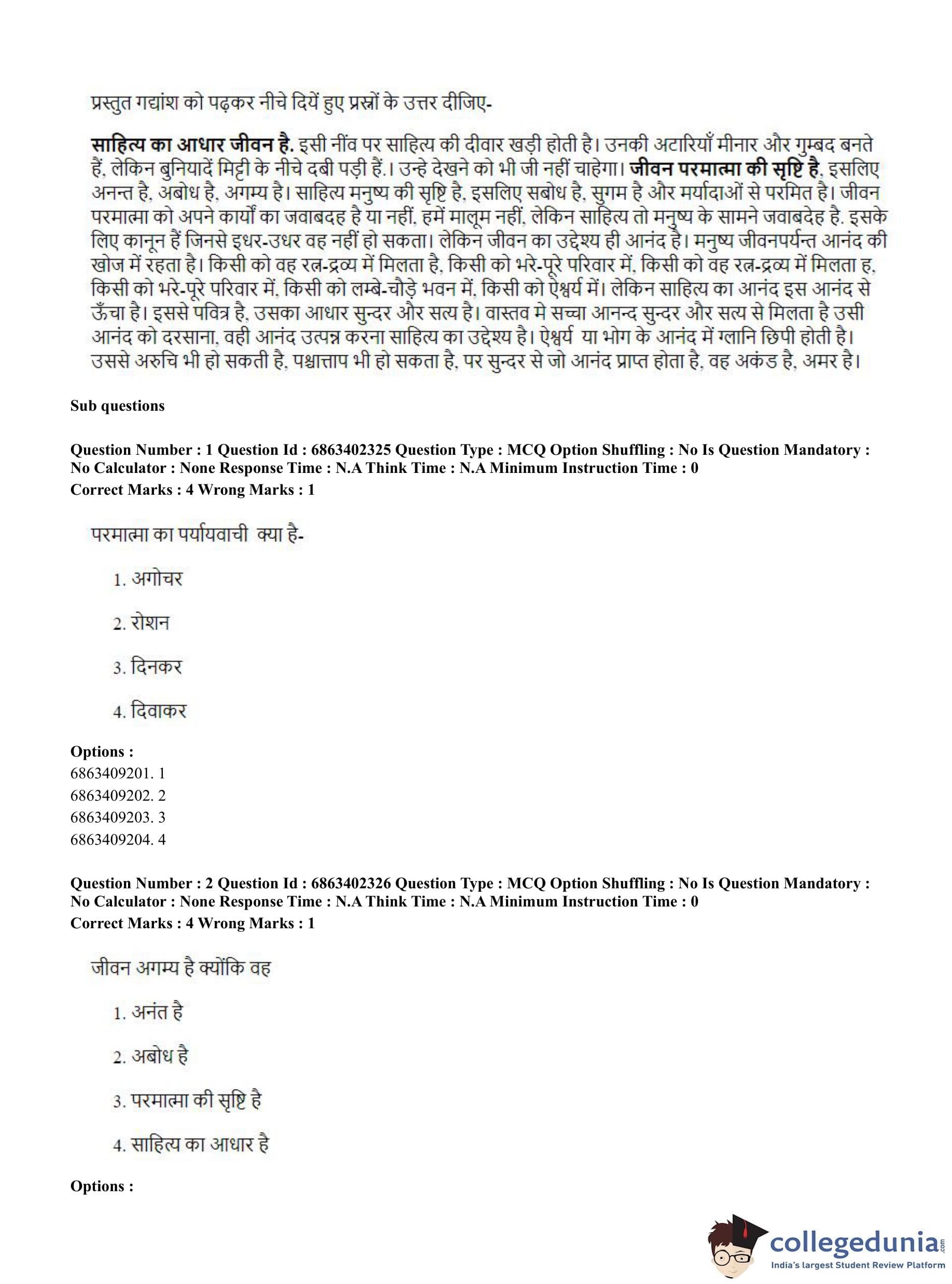 CUET PG 2023 Sahitya (Alankara and Kavya varga) Question Paper in Hindi (June 5 - Shift 2)