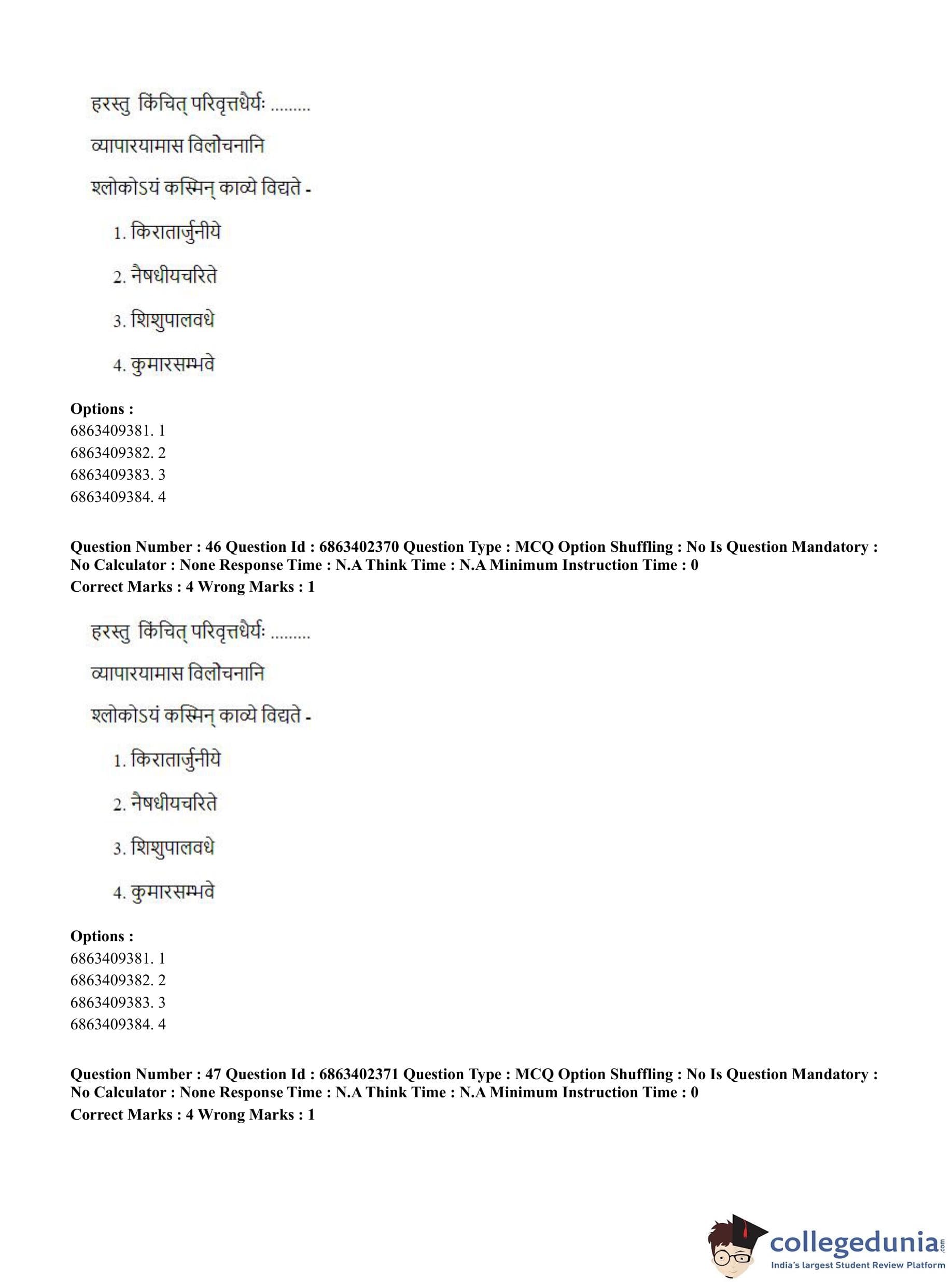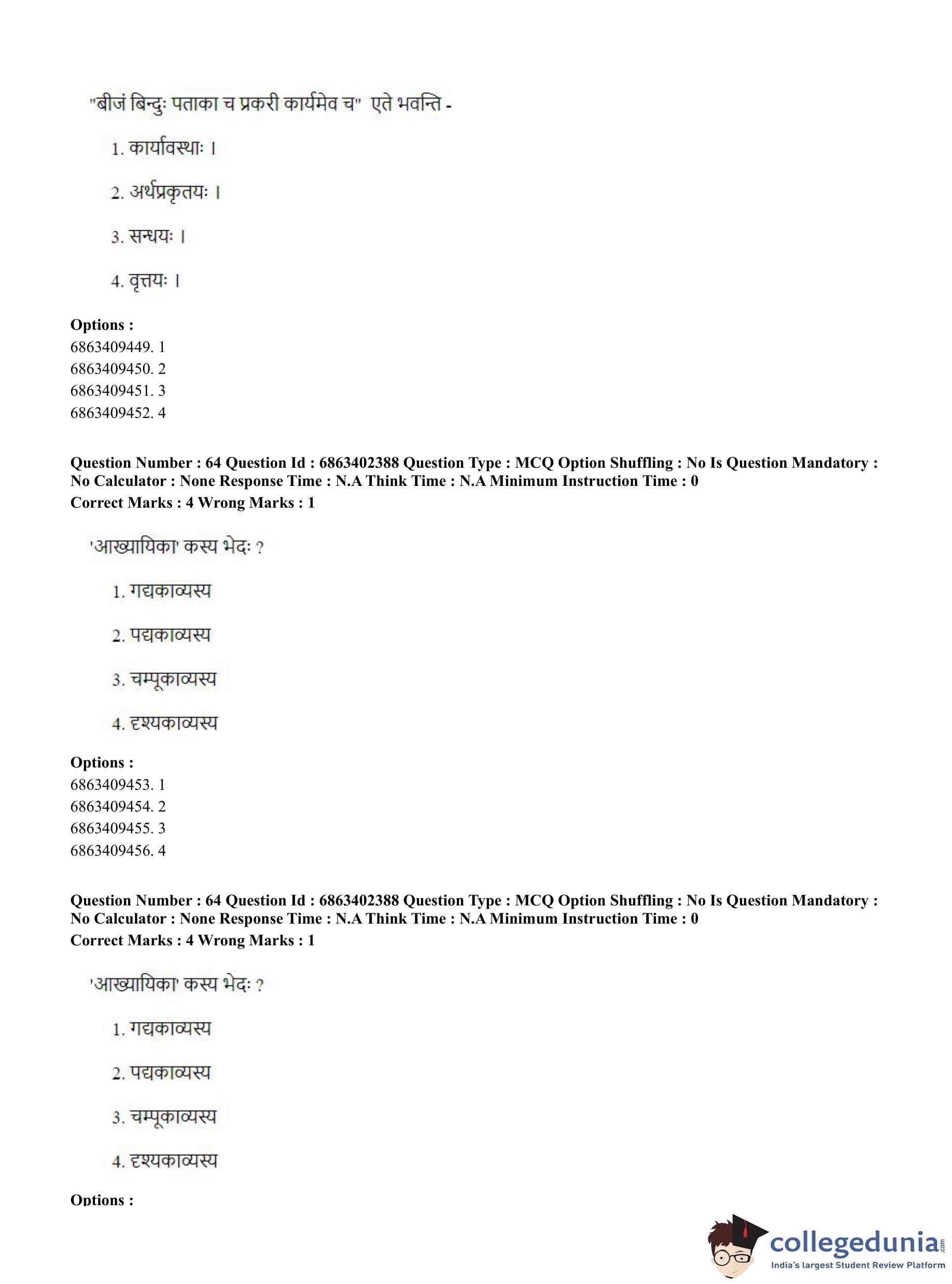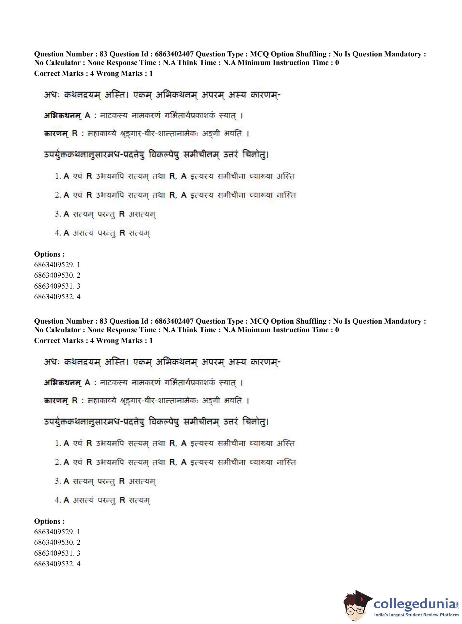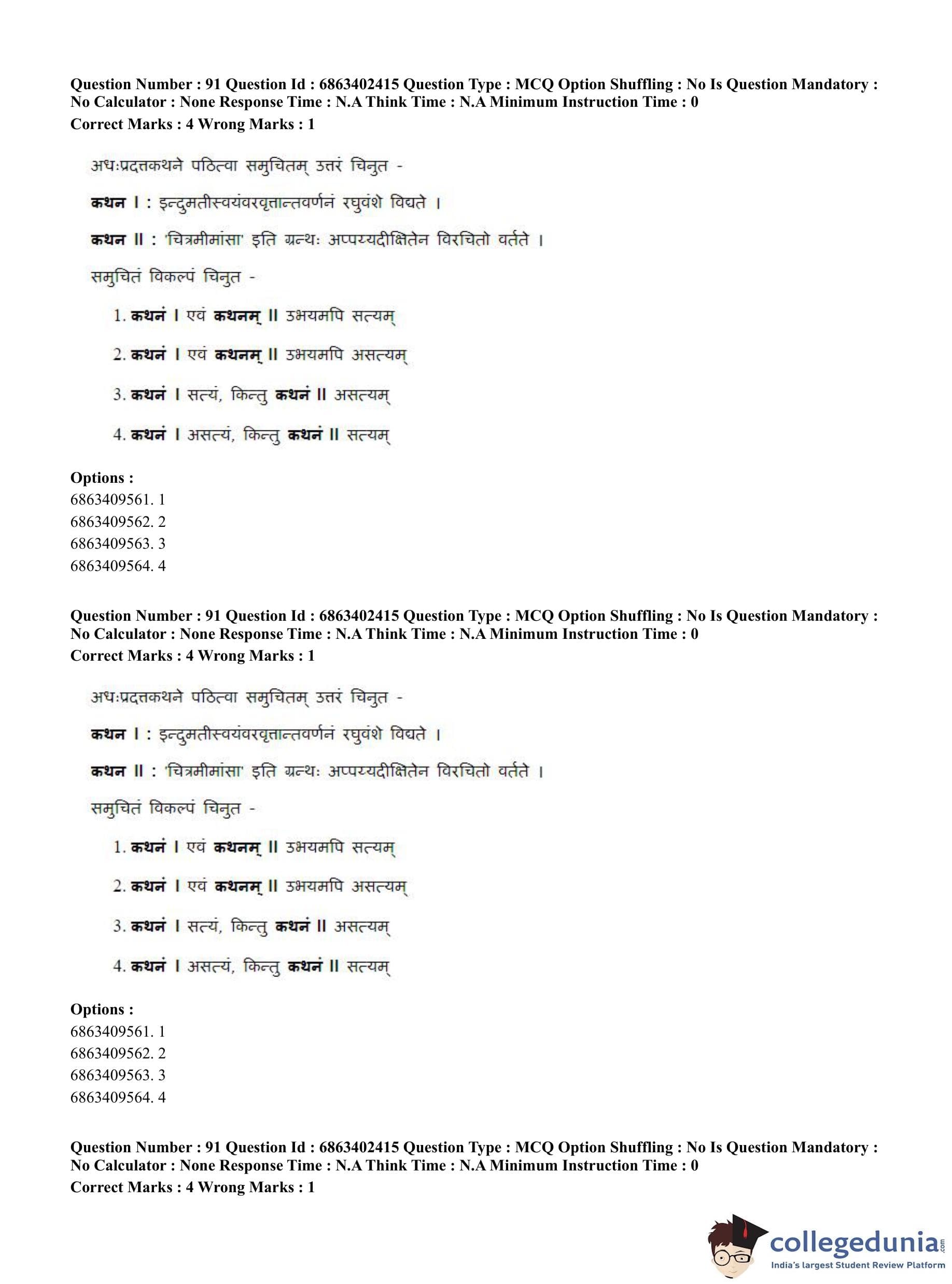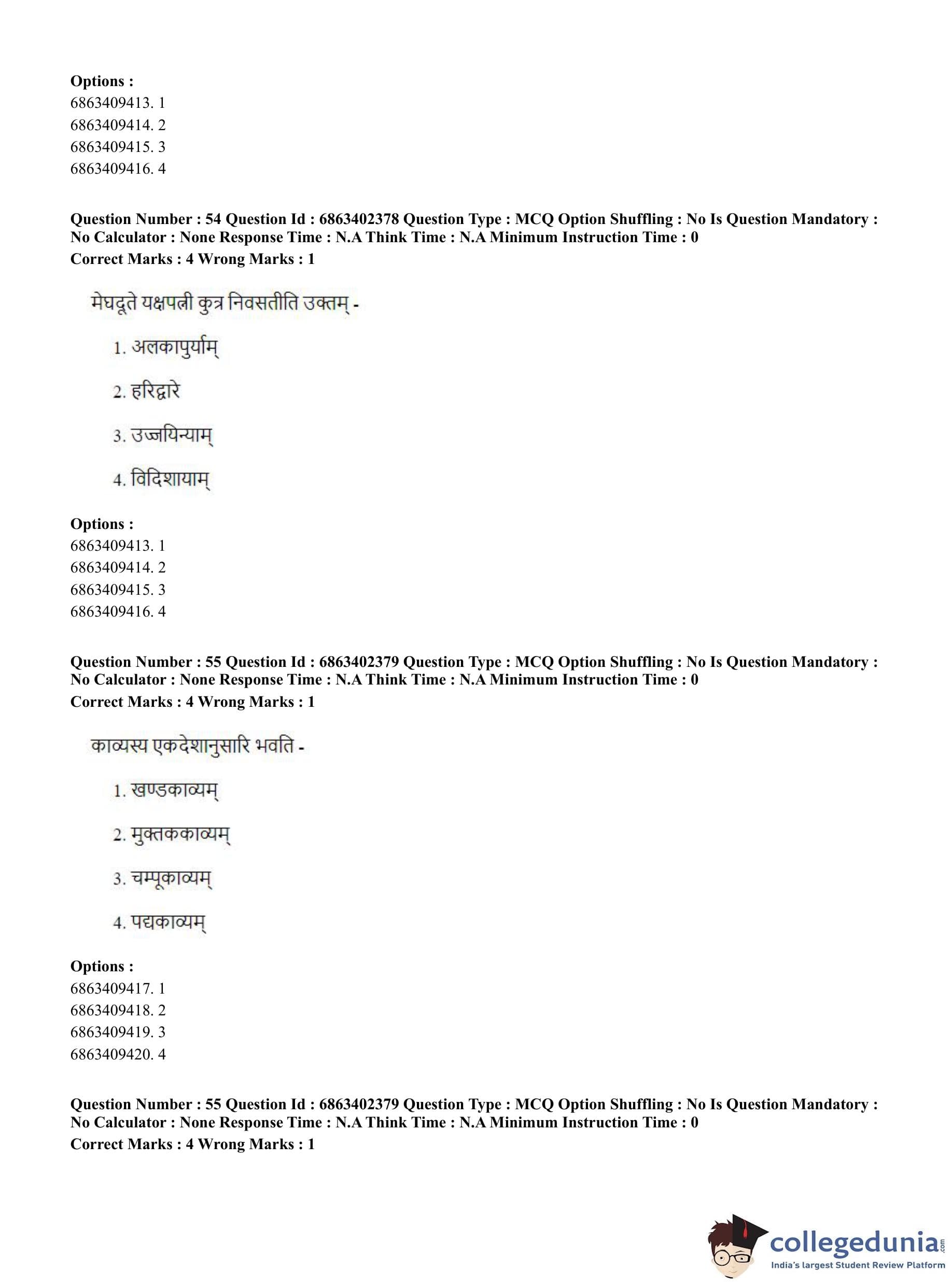CUET PG 2023 Sahitya (Alankara and Kavya varga) Question Paper in Hindi (June 5 - Shift 2)