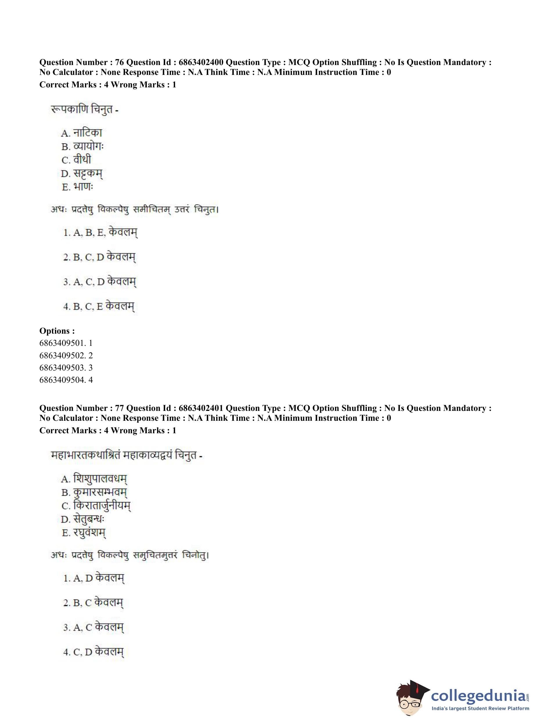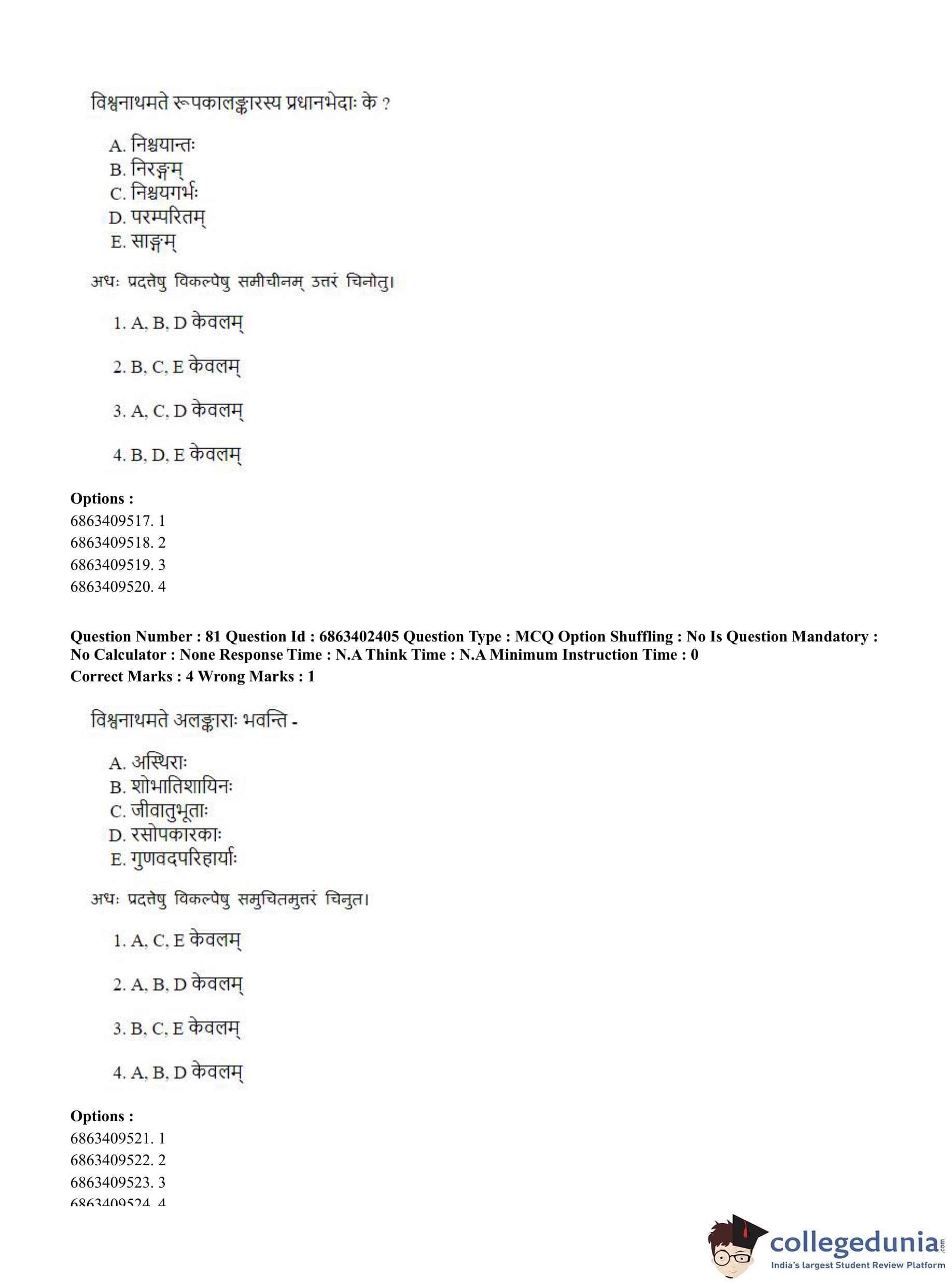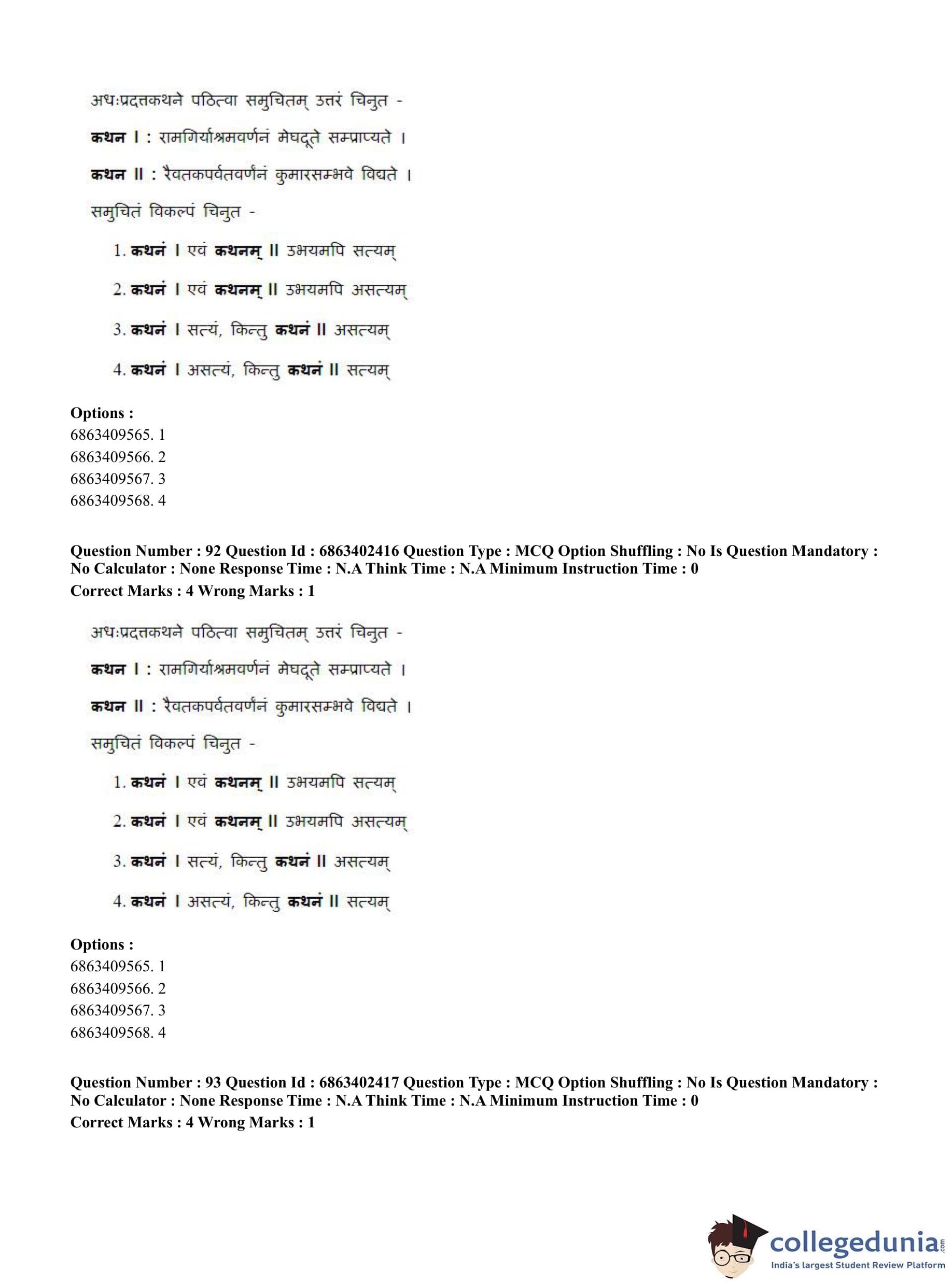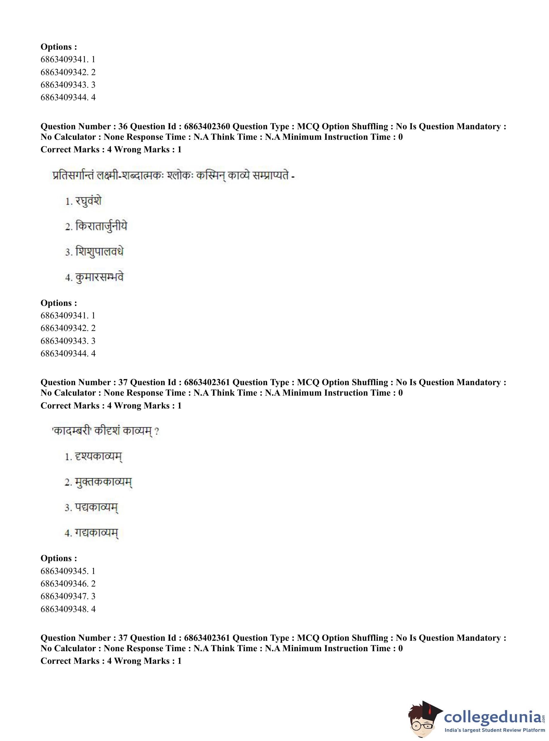 CUET PG 2023 Sahitya (Alankara and Kavya varga) Question Paper in Hindi (June 5 - Shift 2)