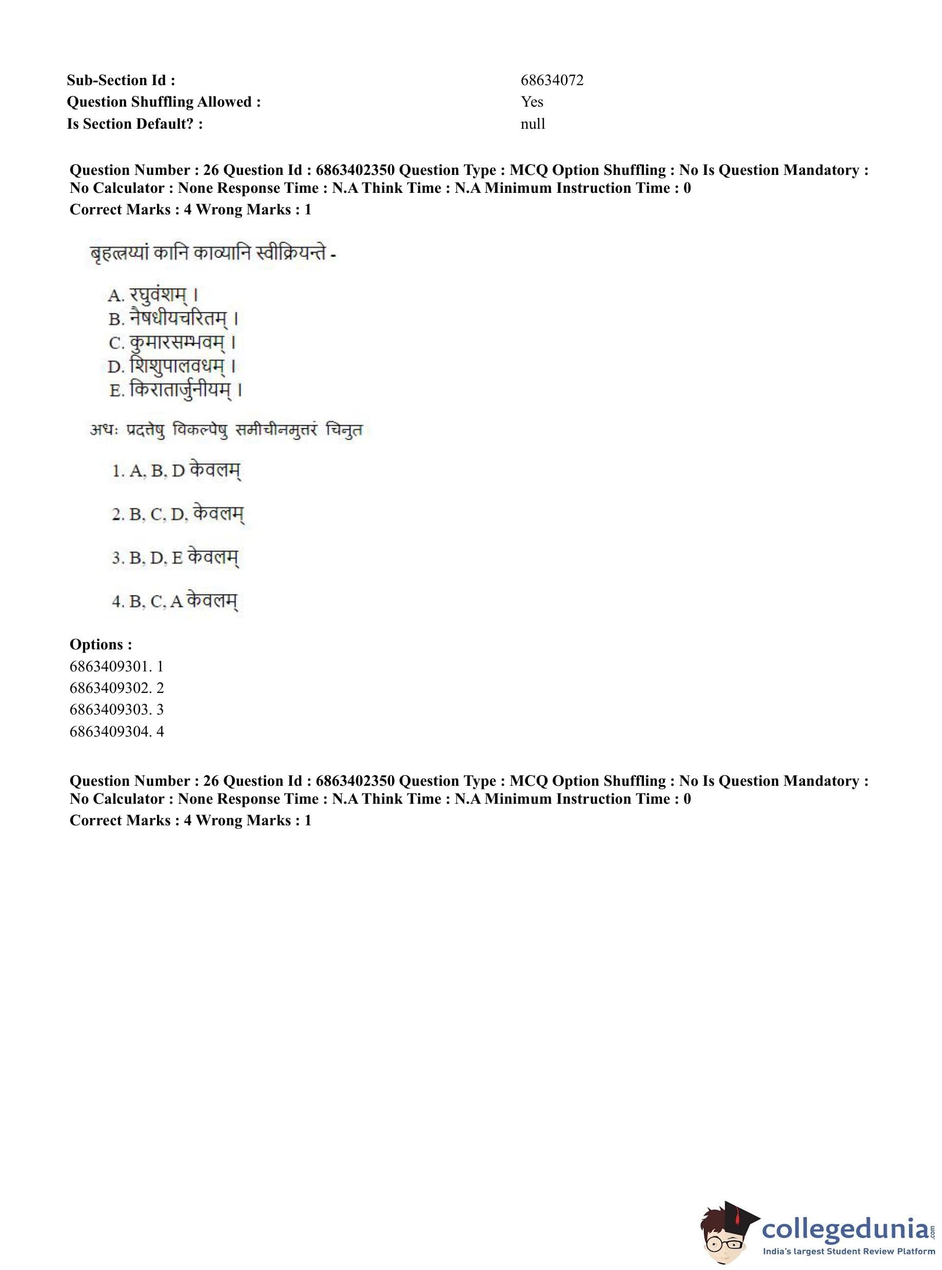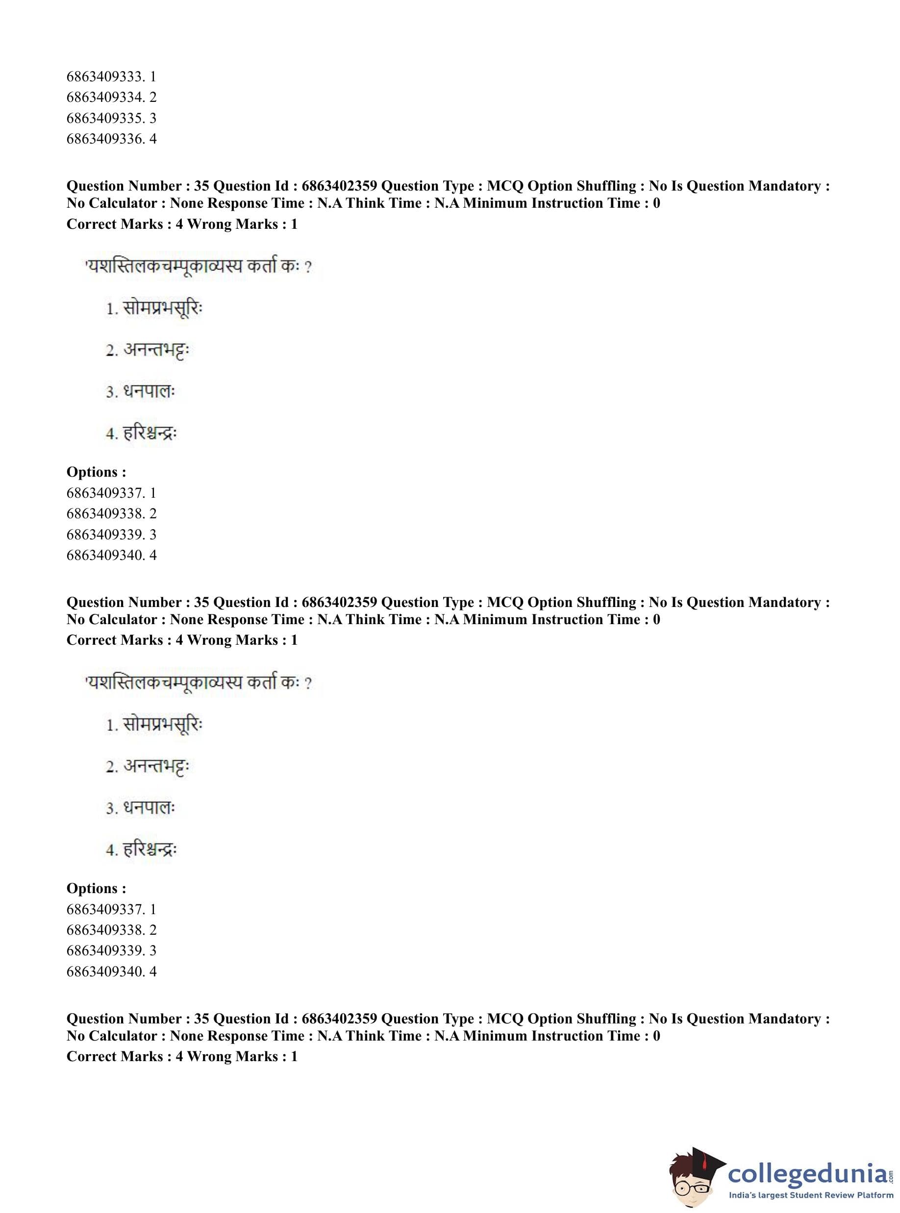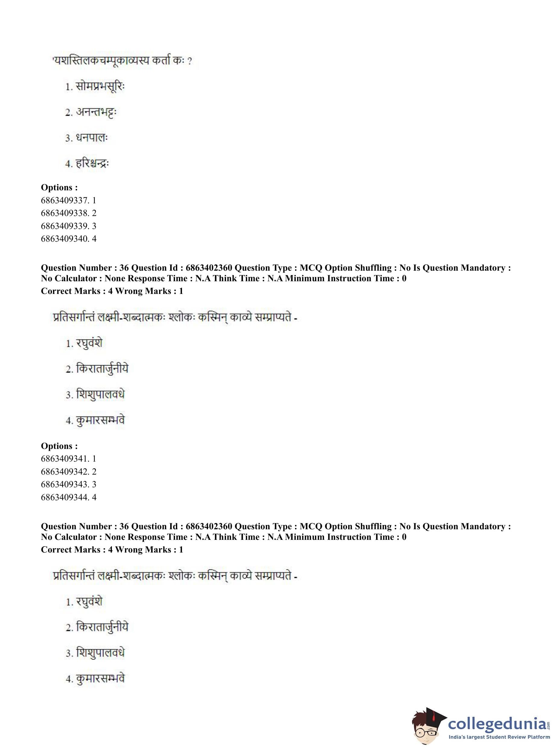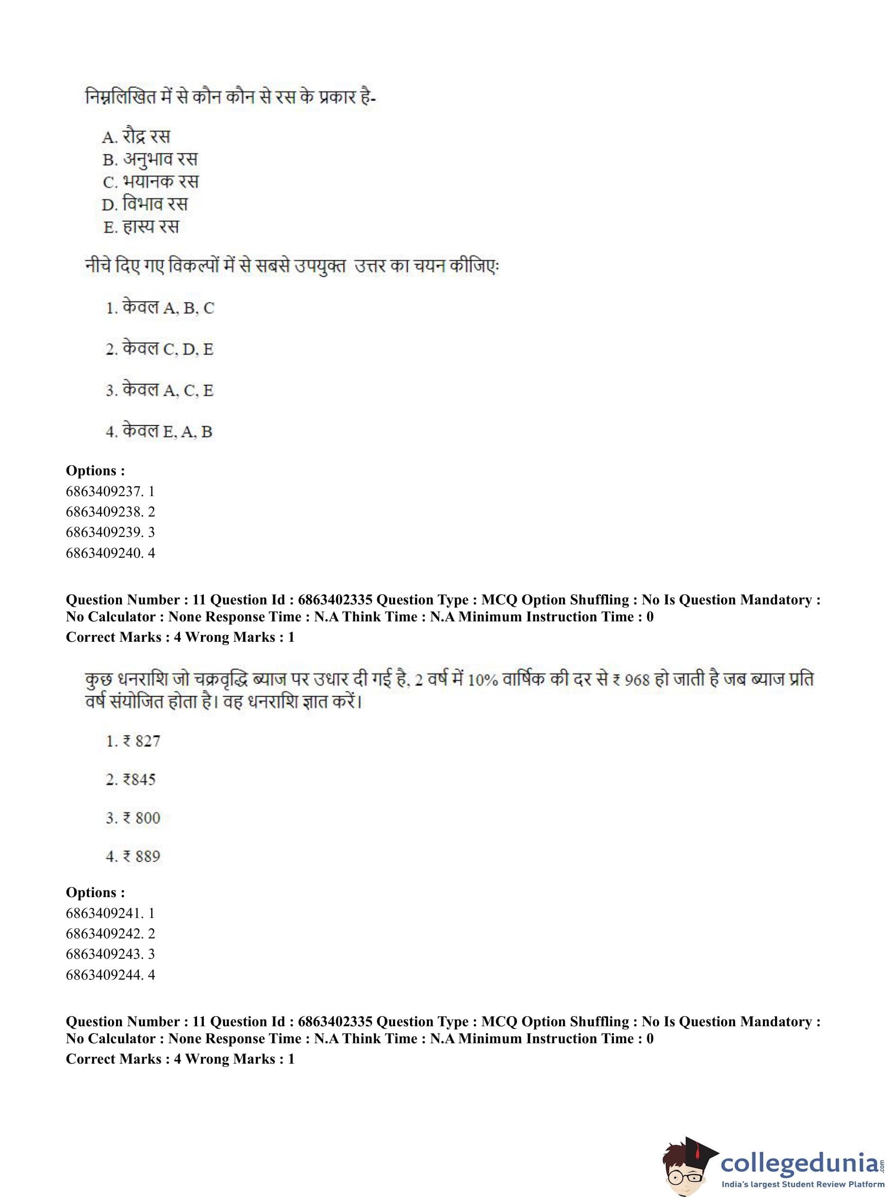 CUET PG 2023 Sahitya (Alankara and Kavya varga) Question Paper in Hindi (June 5 - Shift 2)