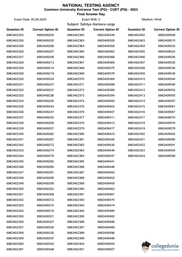 | CUET PG Sahitya (Alankara and Kavya varga) Question Paper 2023 PDF | CUET PG Sahitya (Alankara and Kavya varga) Answer Key 2023 PDF |