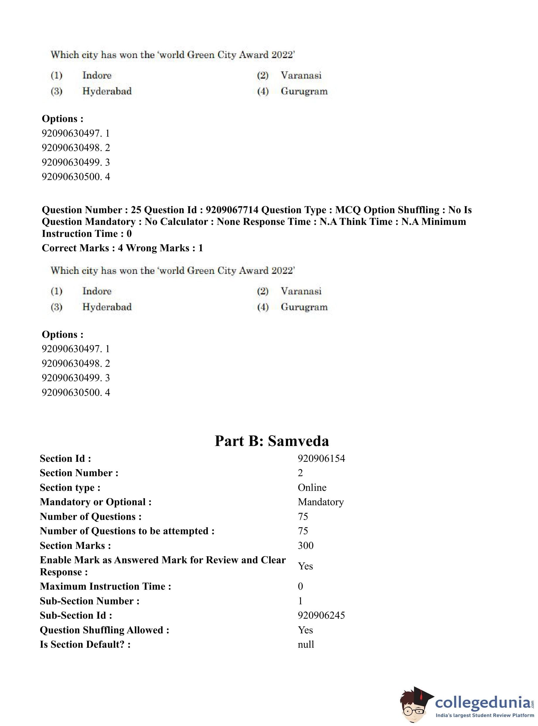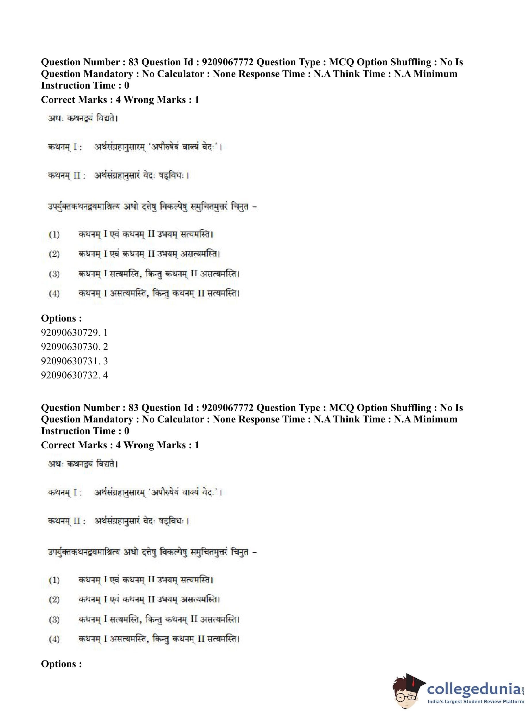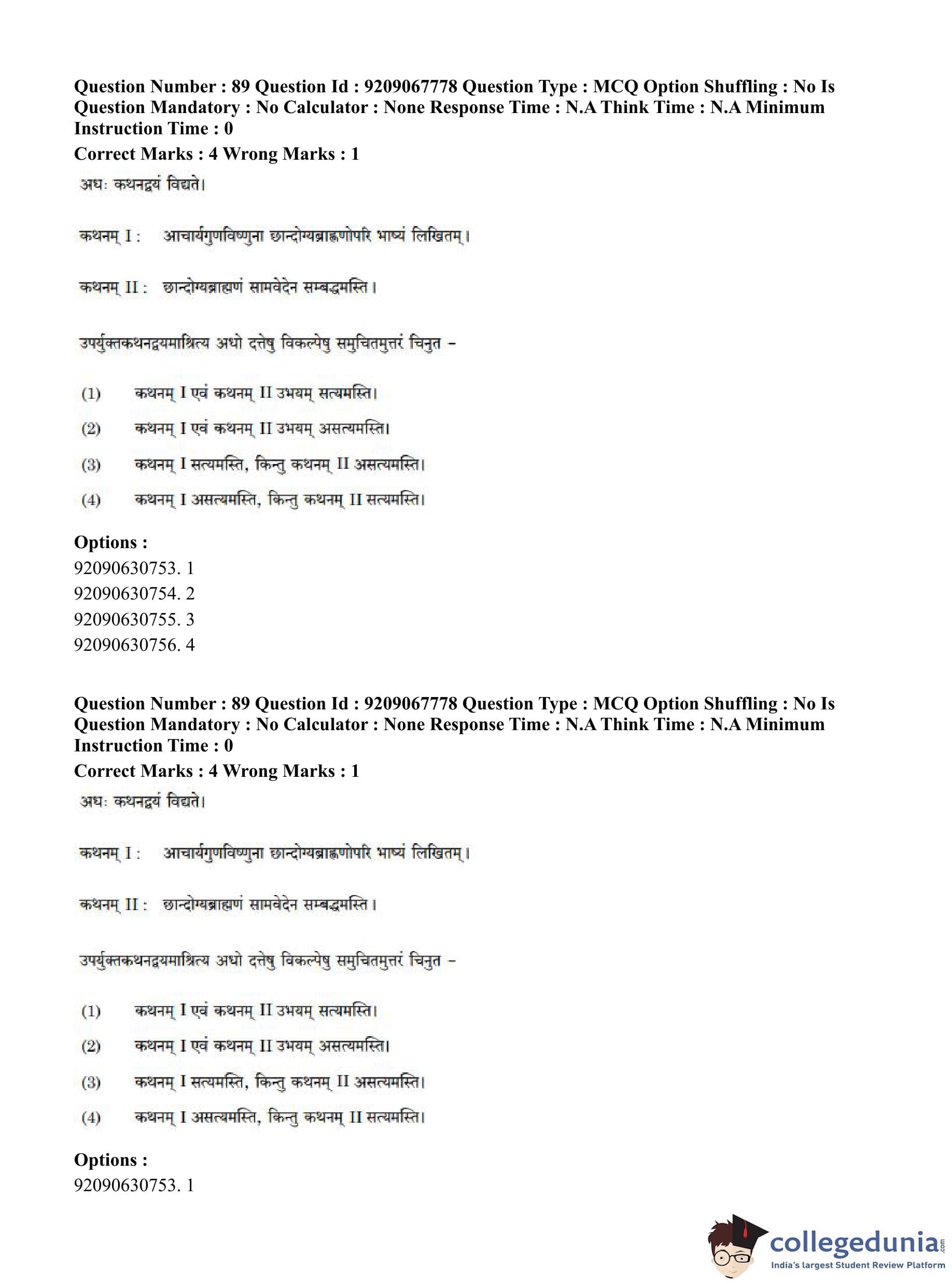 CUET PG 2023 Samveda Question Paper in English (June 8 - Shift 2)
