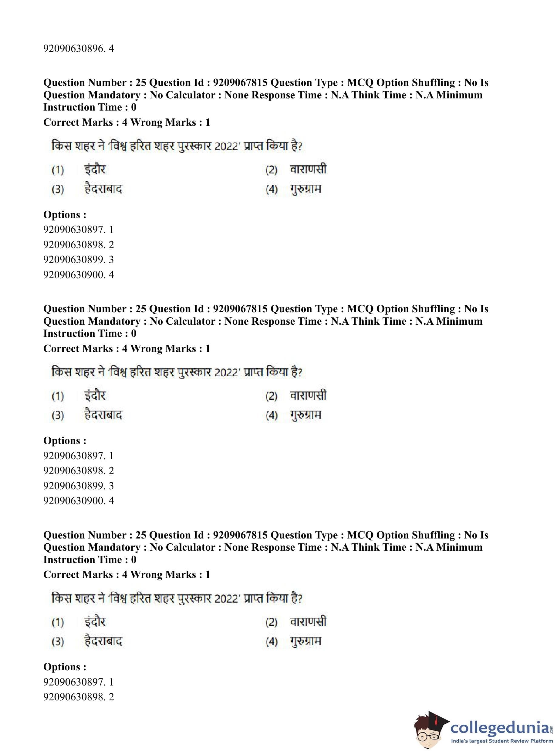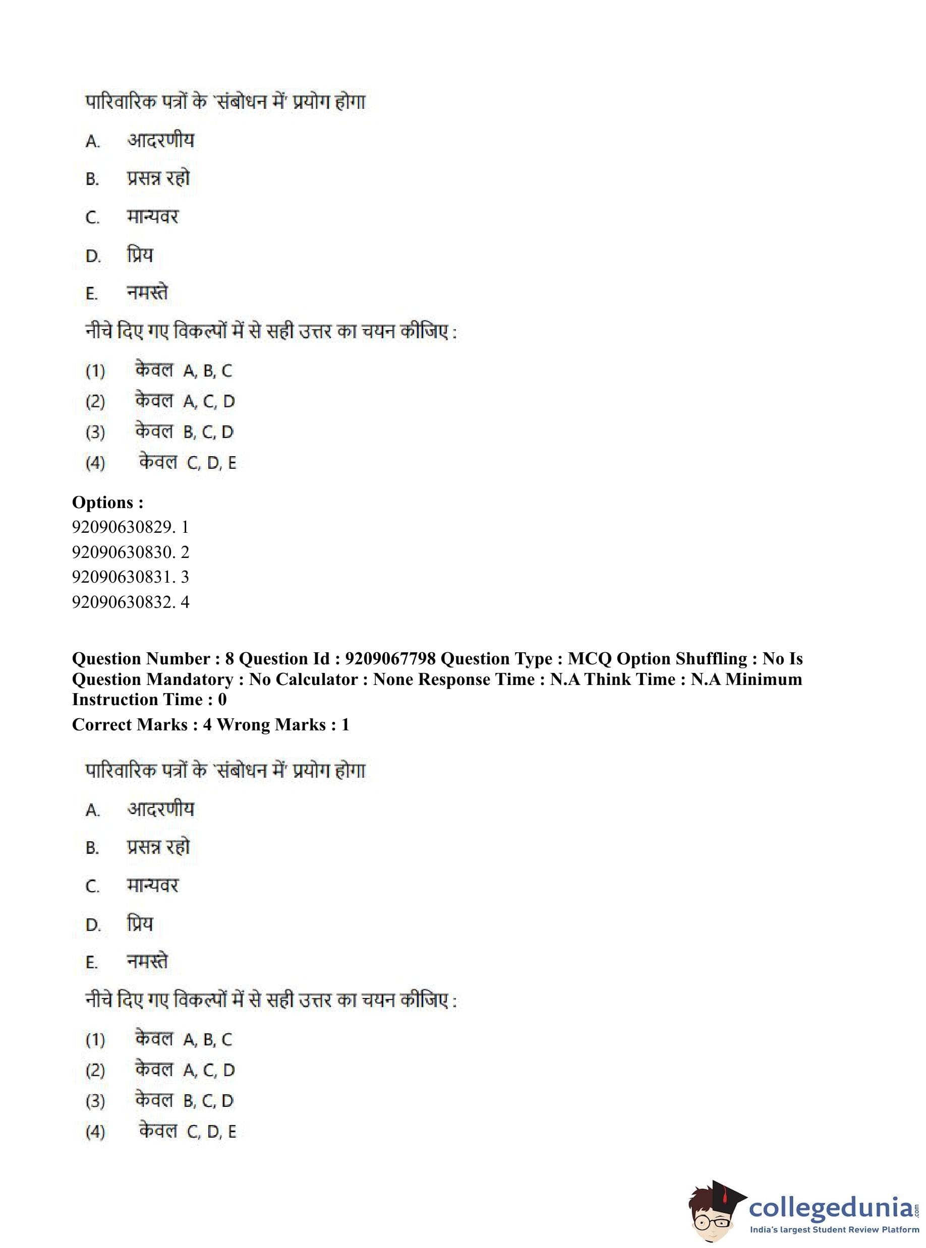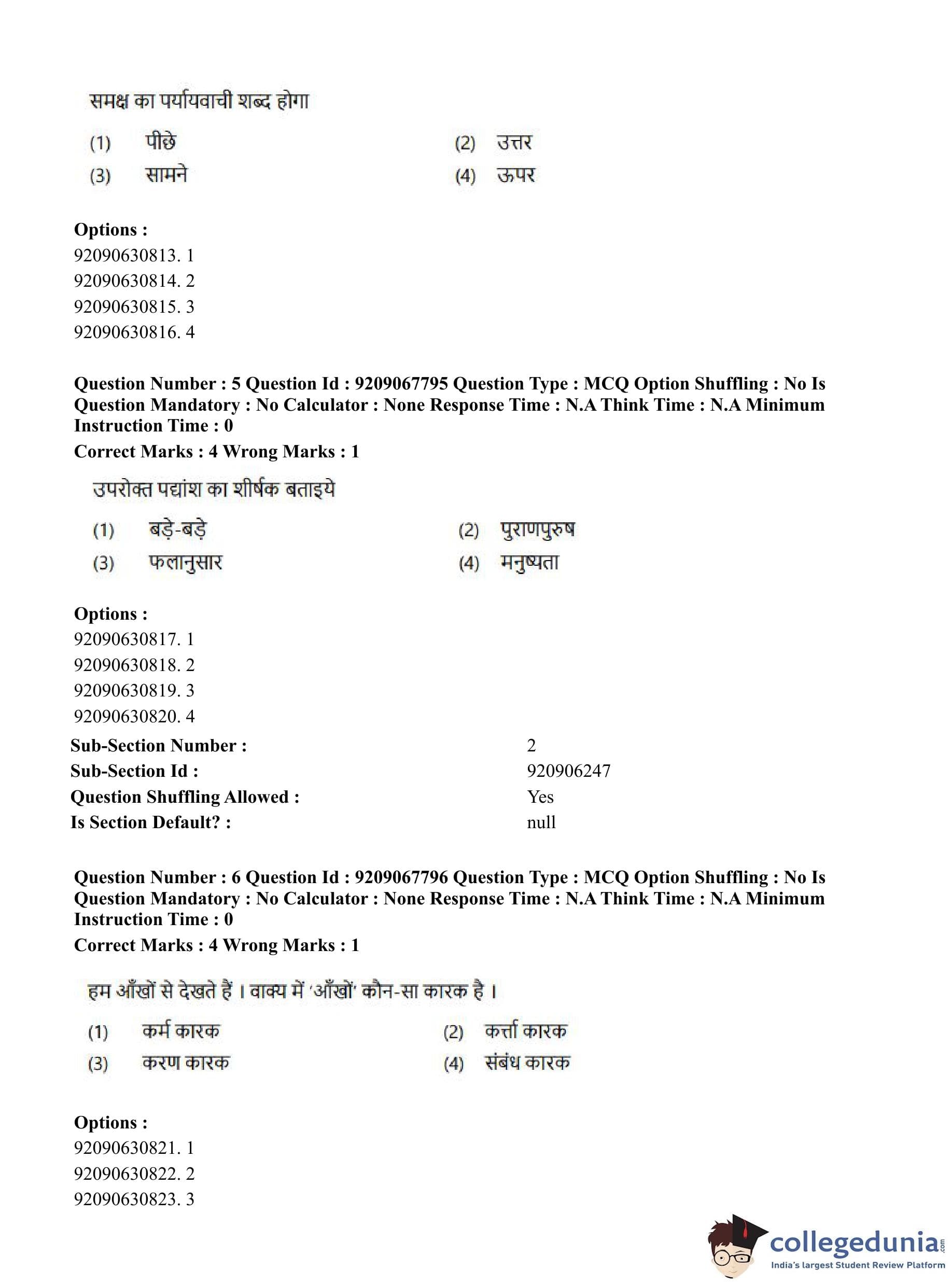 CUET PG 2023 Samveda Question Paper in Hindi (September 8 - Shift 2)