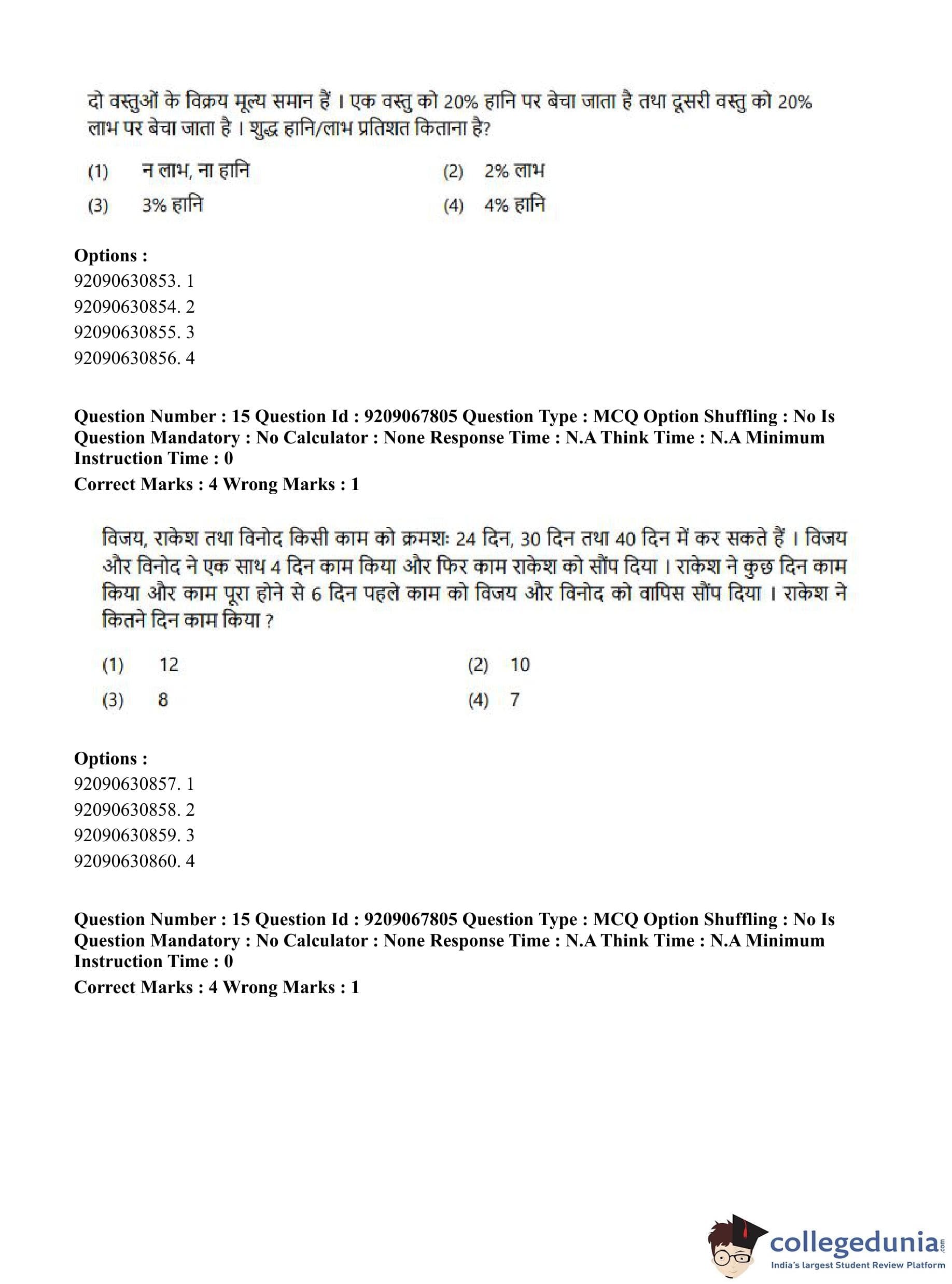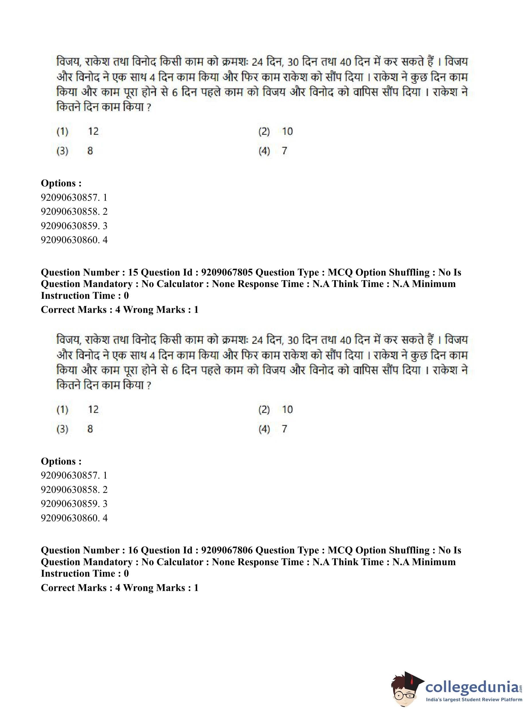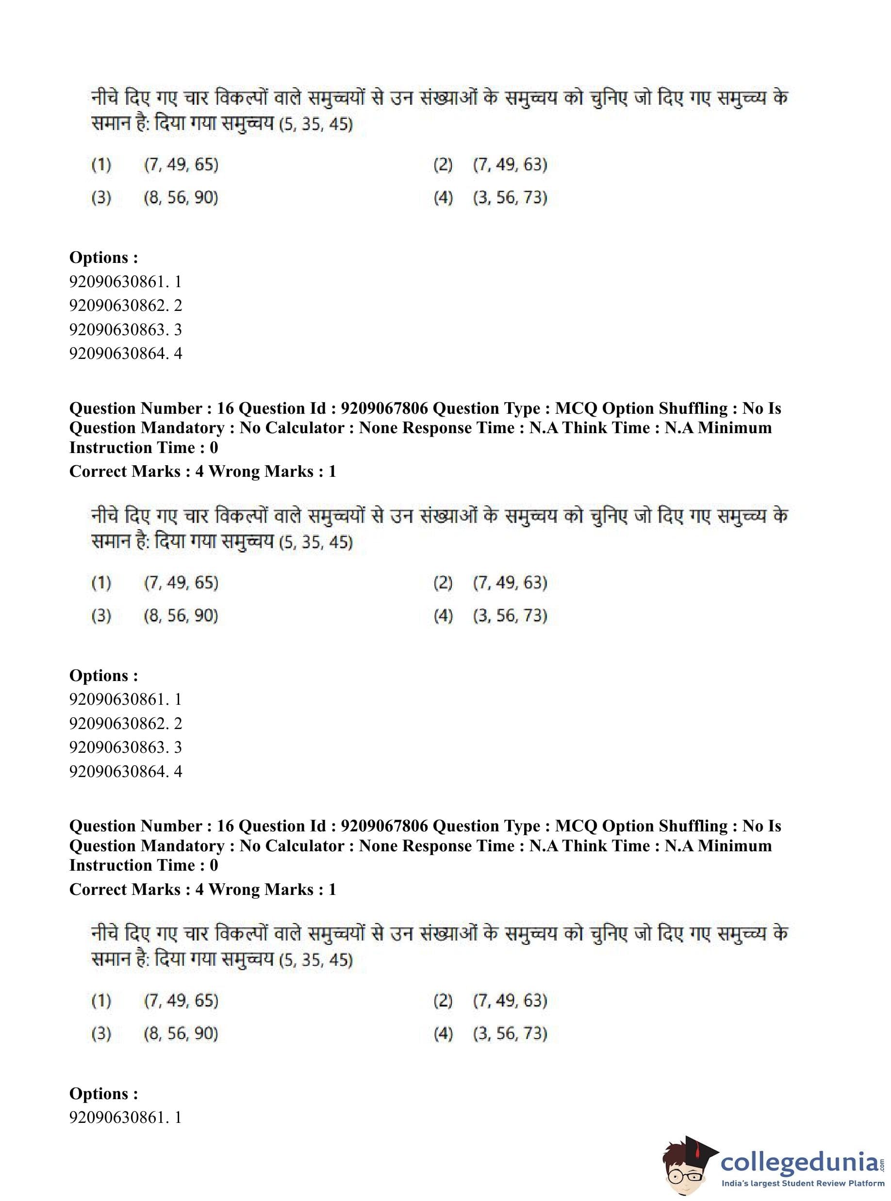 CUET PG 2023 Samveda Question Paper in Hindi (September 8 - Shift 2)