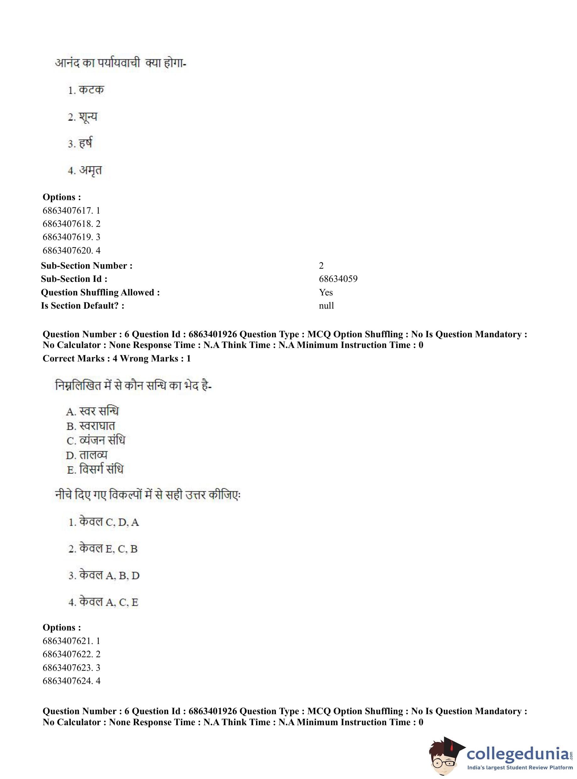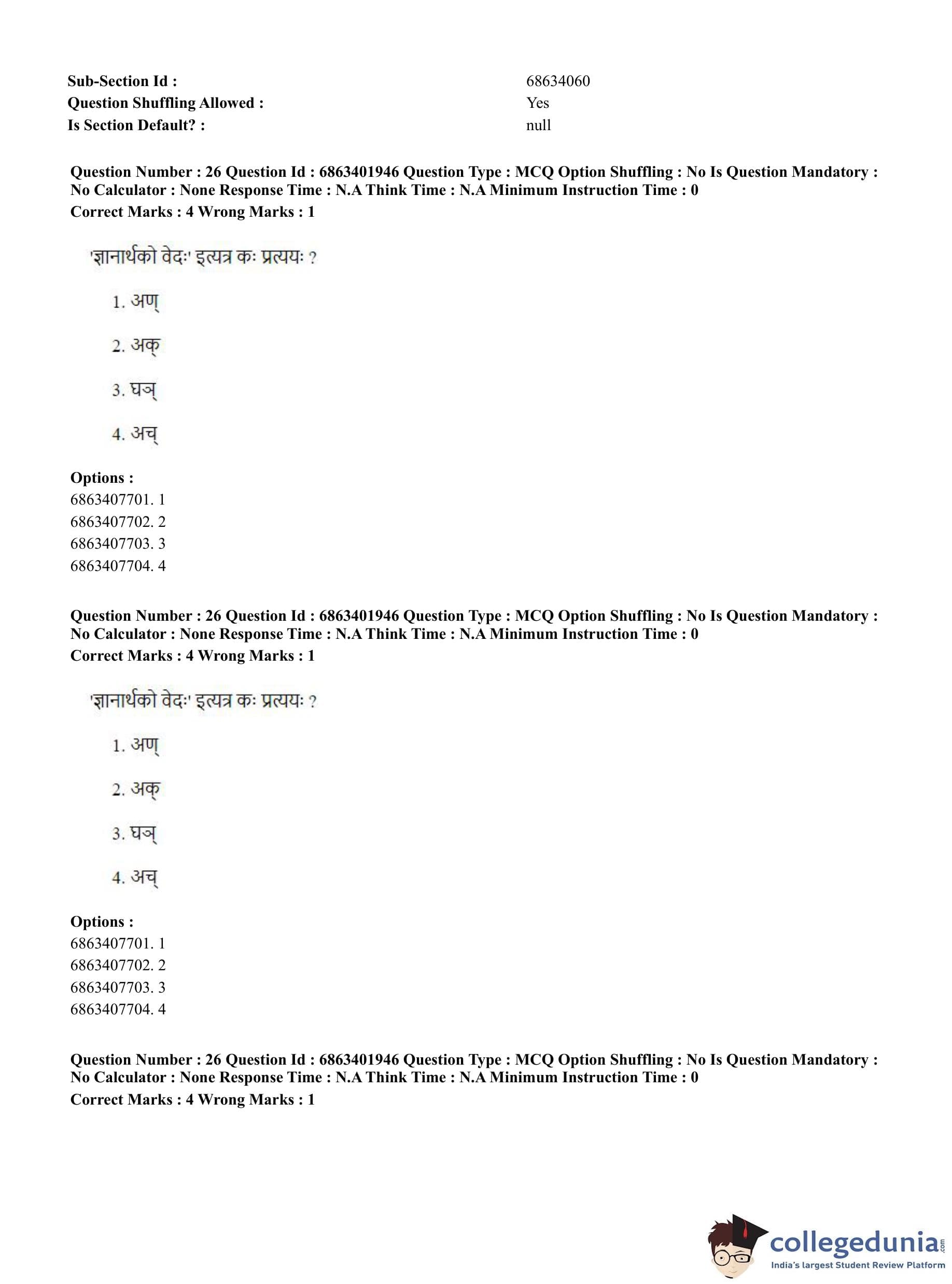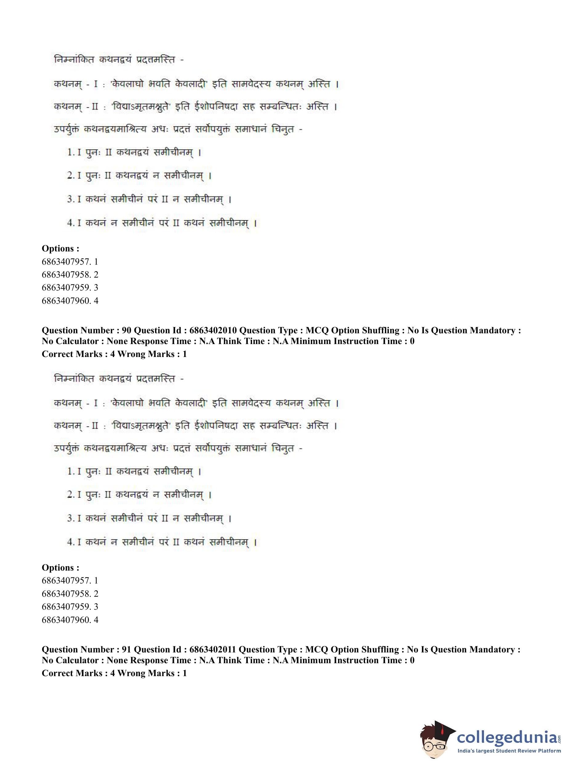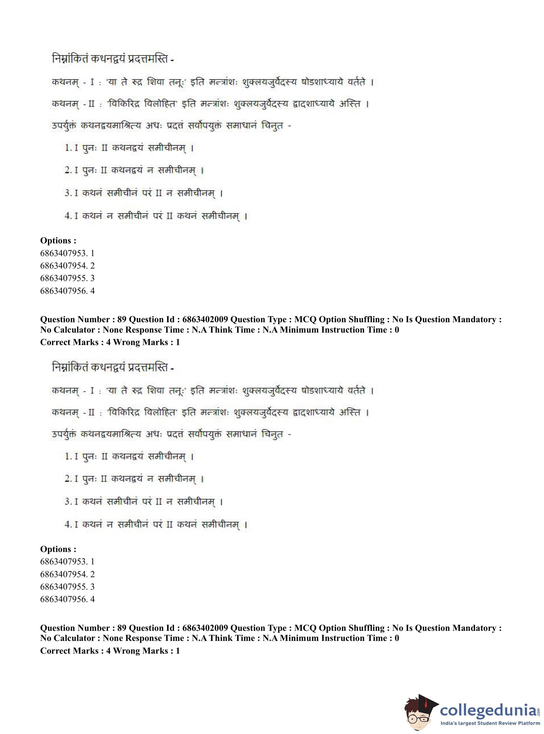 CUET PG 2023 Shukla Yajurveda Question Paper in Hindi (June 5 - Shift 2)