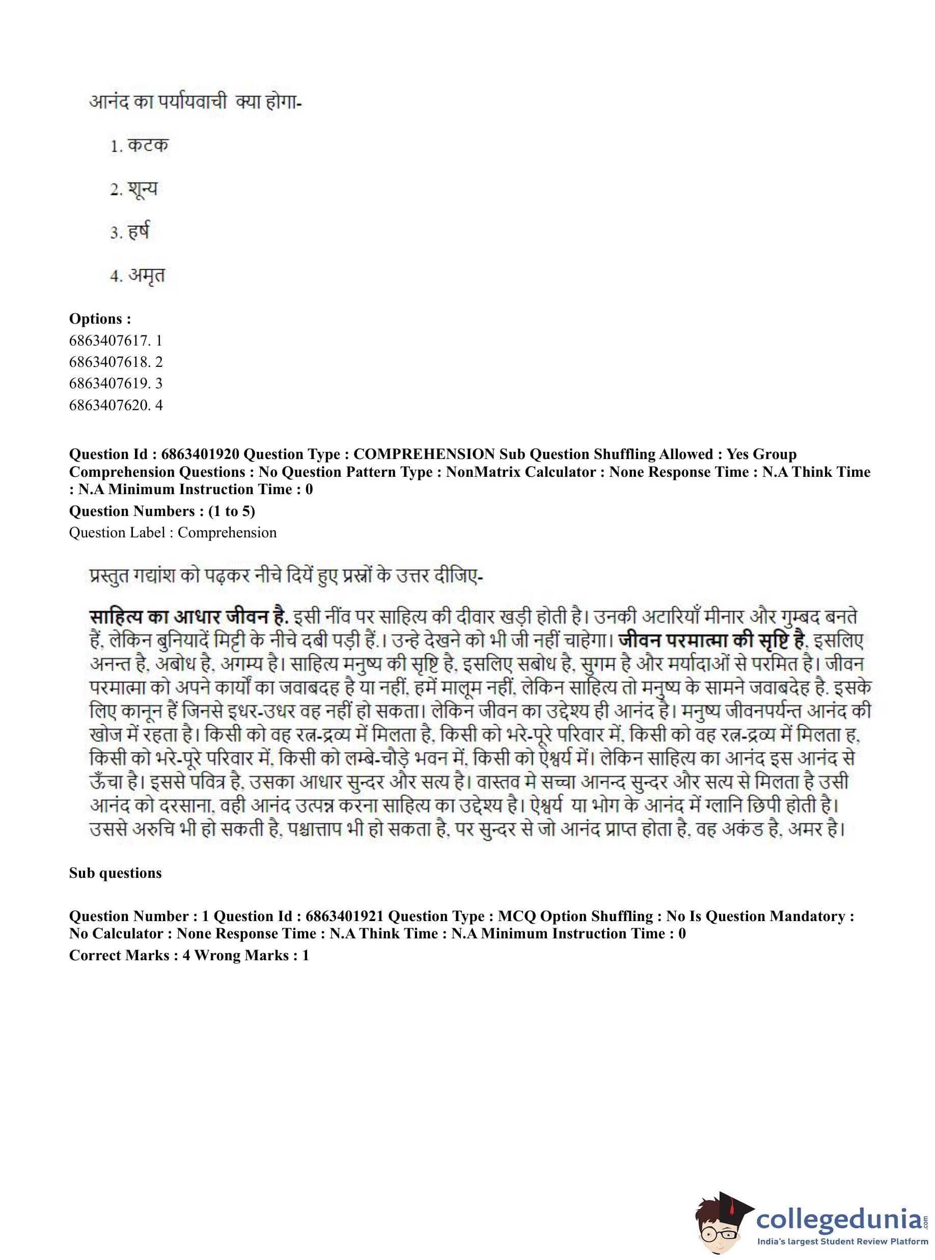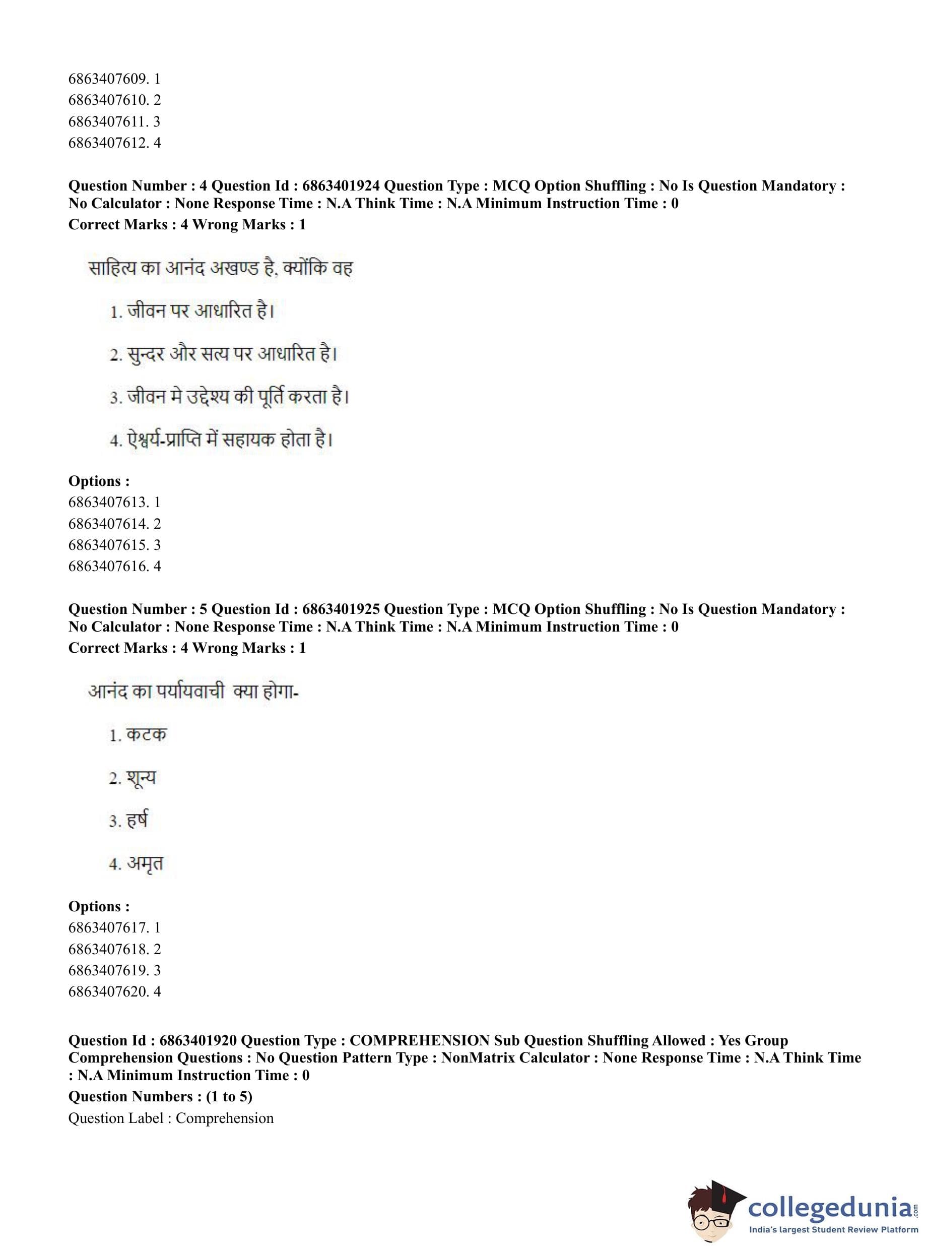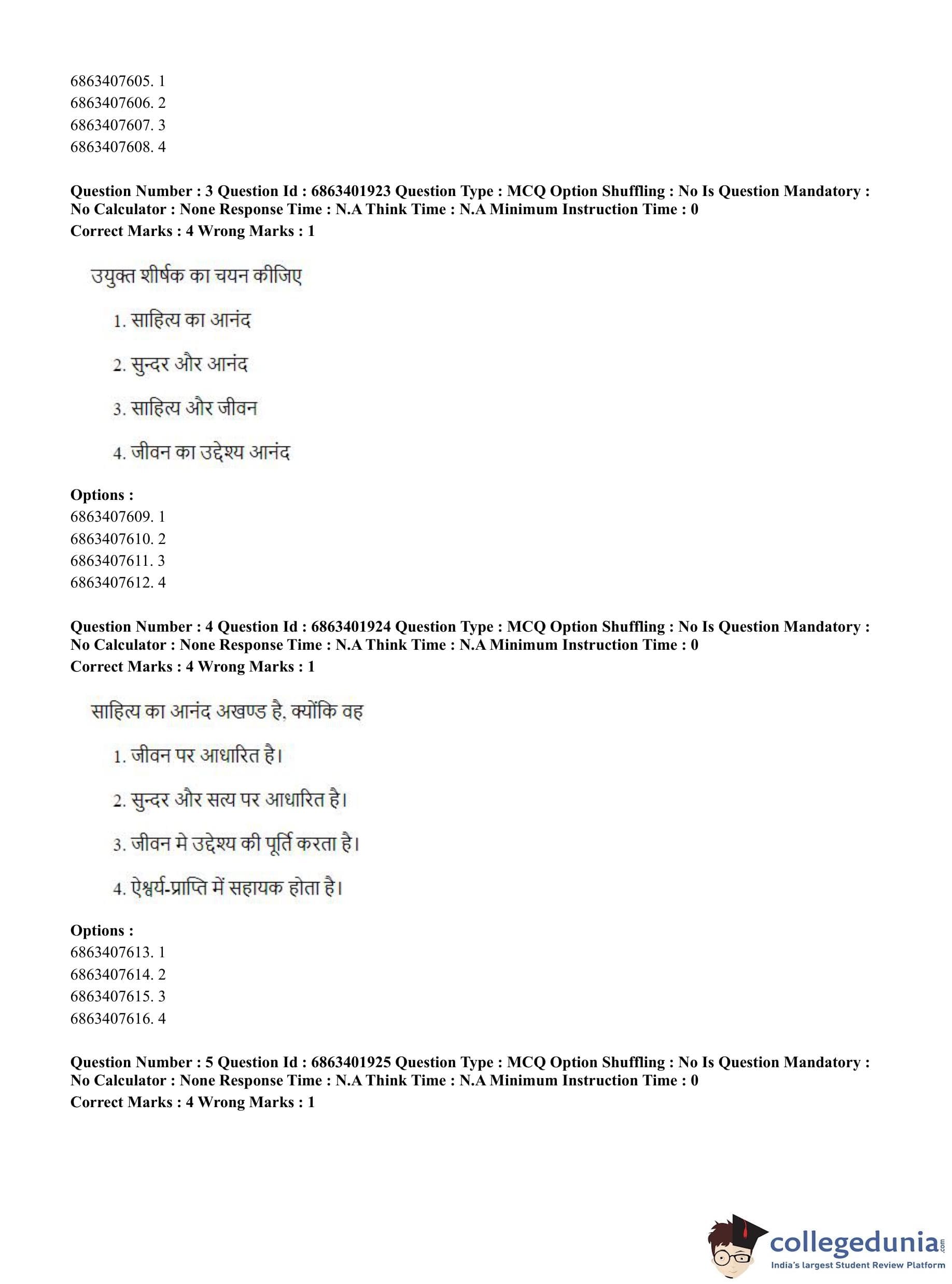 CUET PG 2023 Shukla Yajurveda Question Paper with Answer Key PDF in Hindi is available for download here. The exam was conducted by National Testing Agency (NTA) on June 5, 2023 in Shift 2. The question paper comprised a total of 100 questions divided into 2 sections.