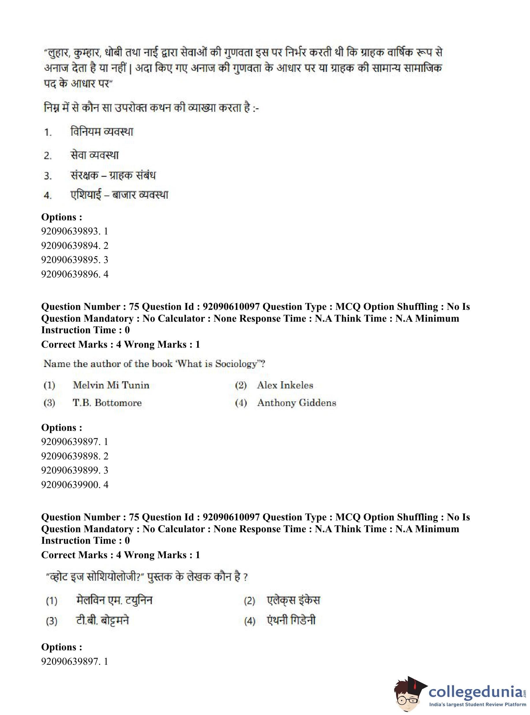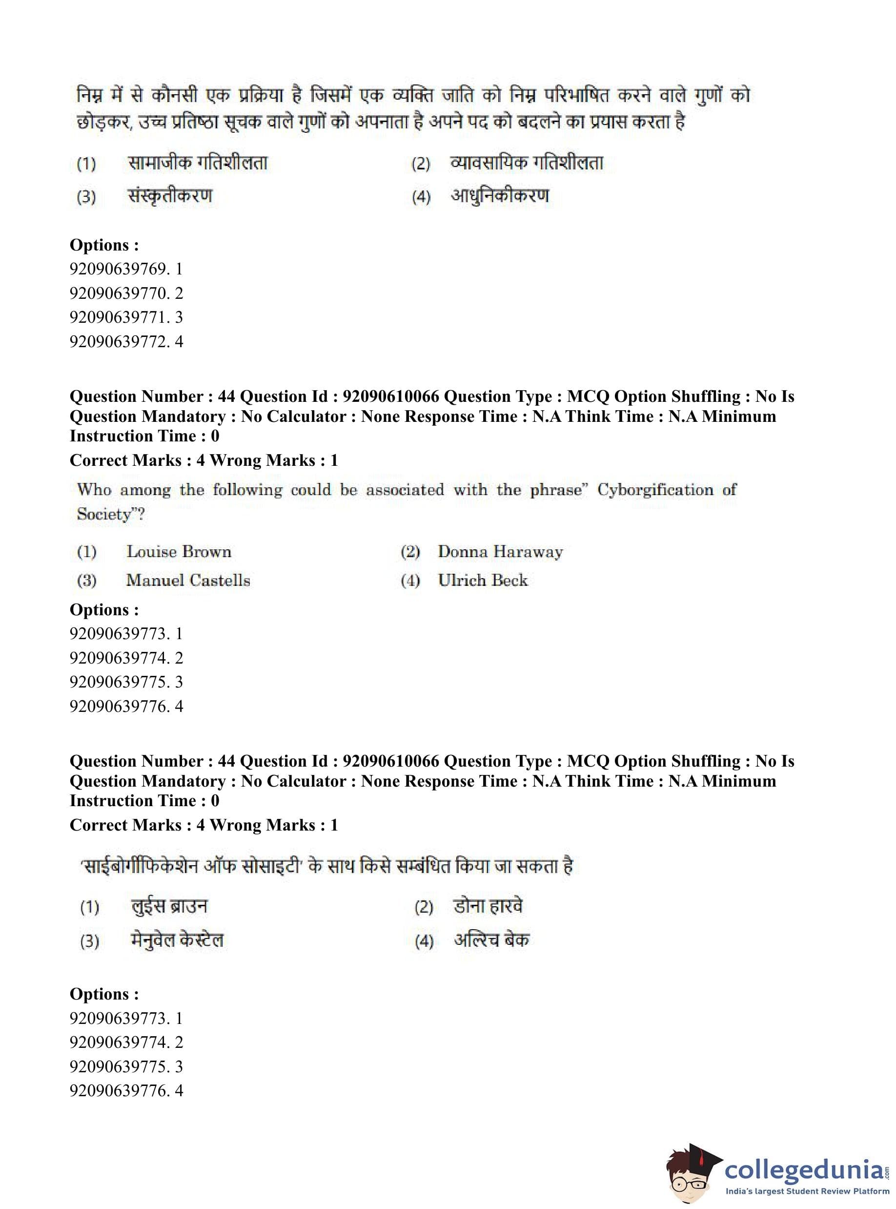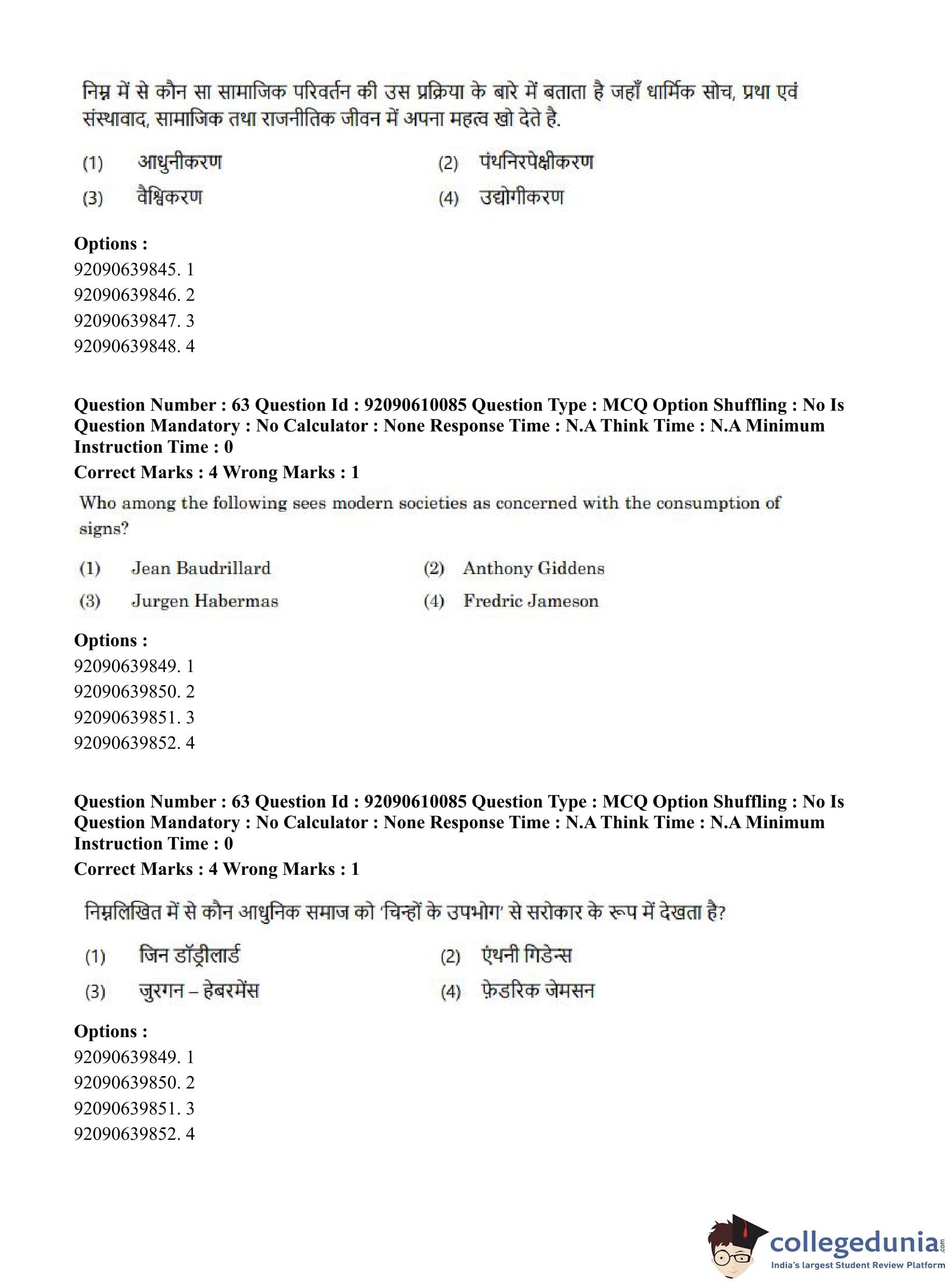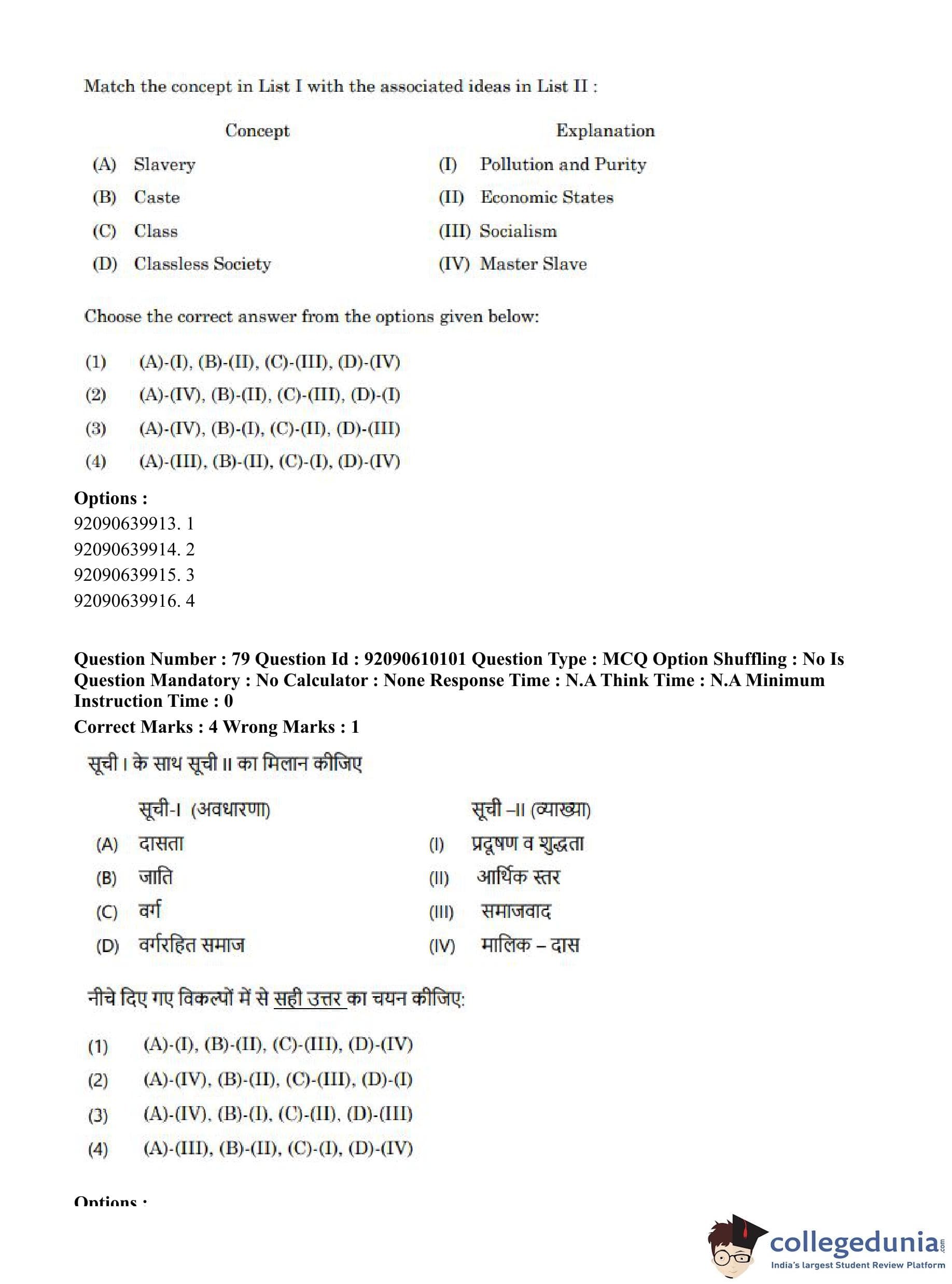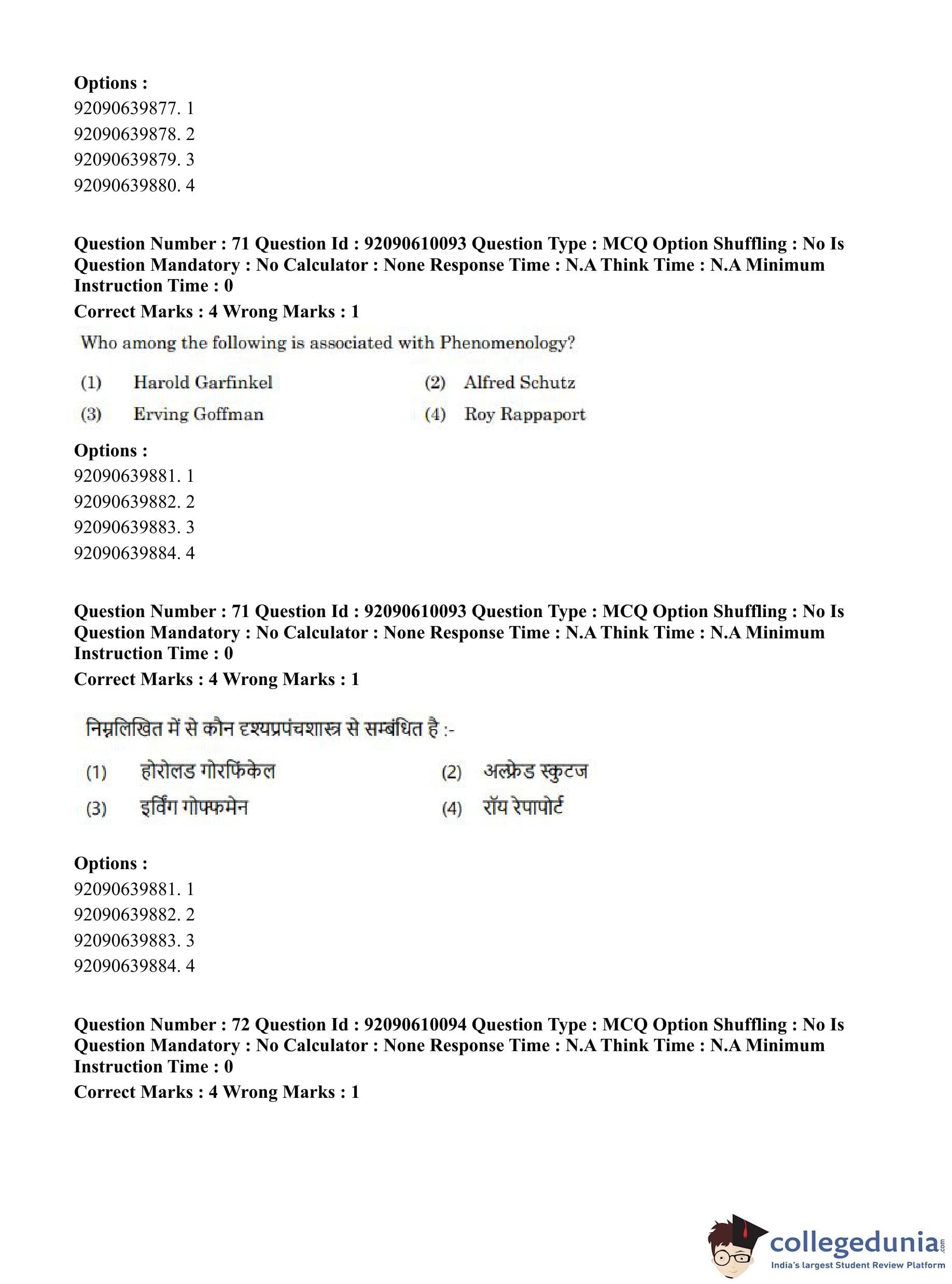 CUET PG 2023 Sociology Question Paper in Hindi (June 10 - Shift 1)