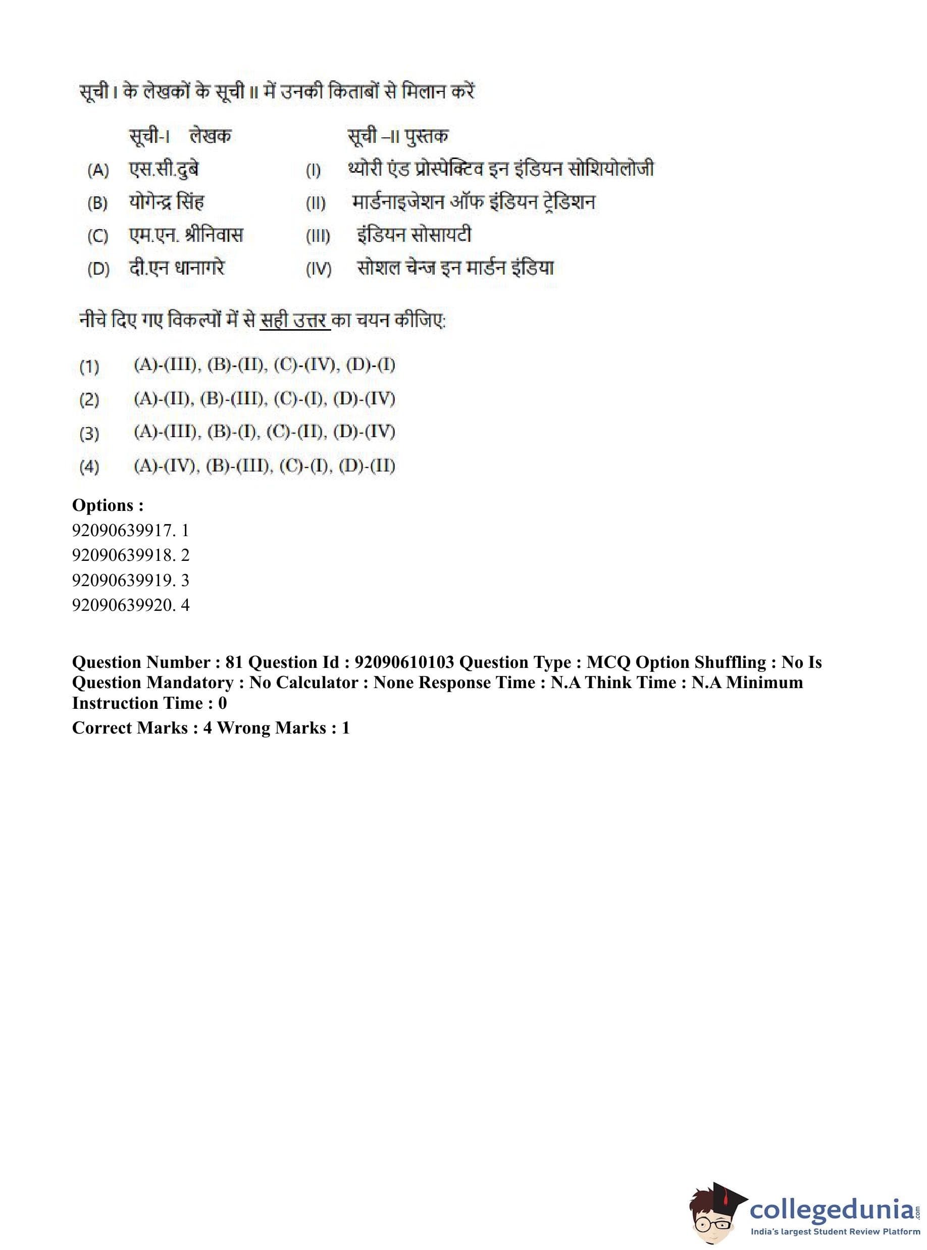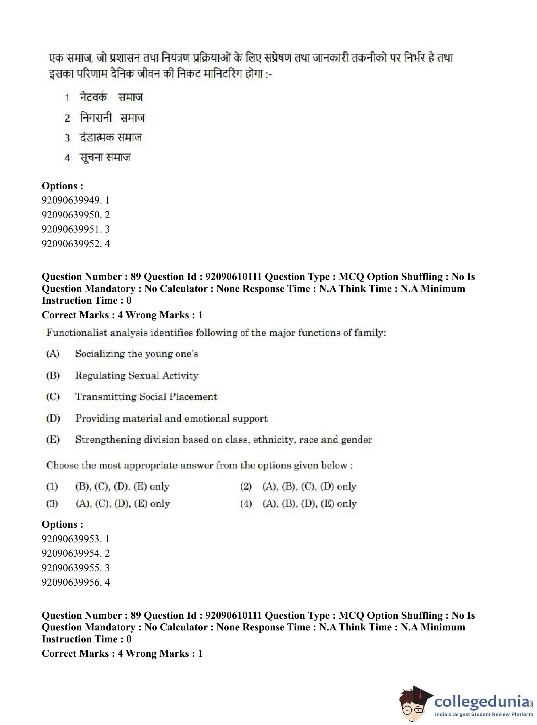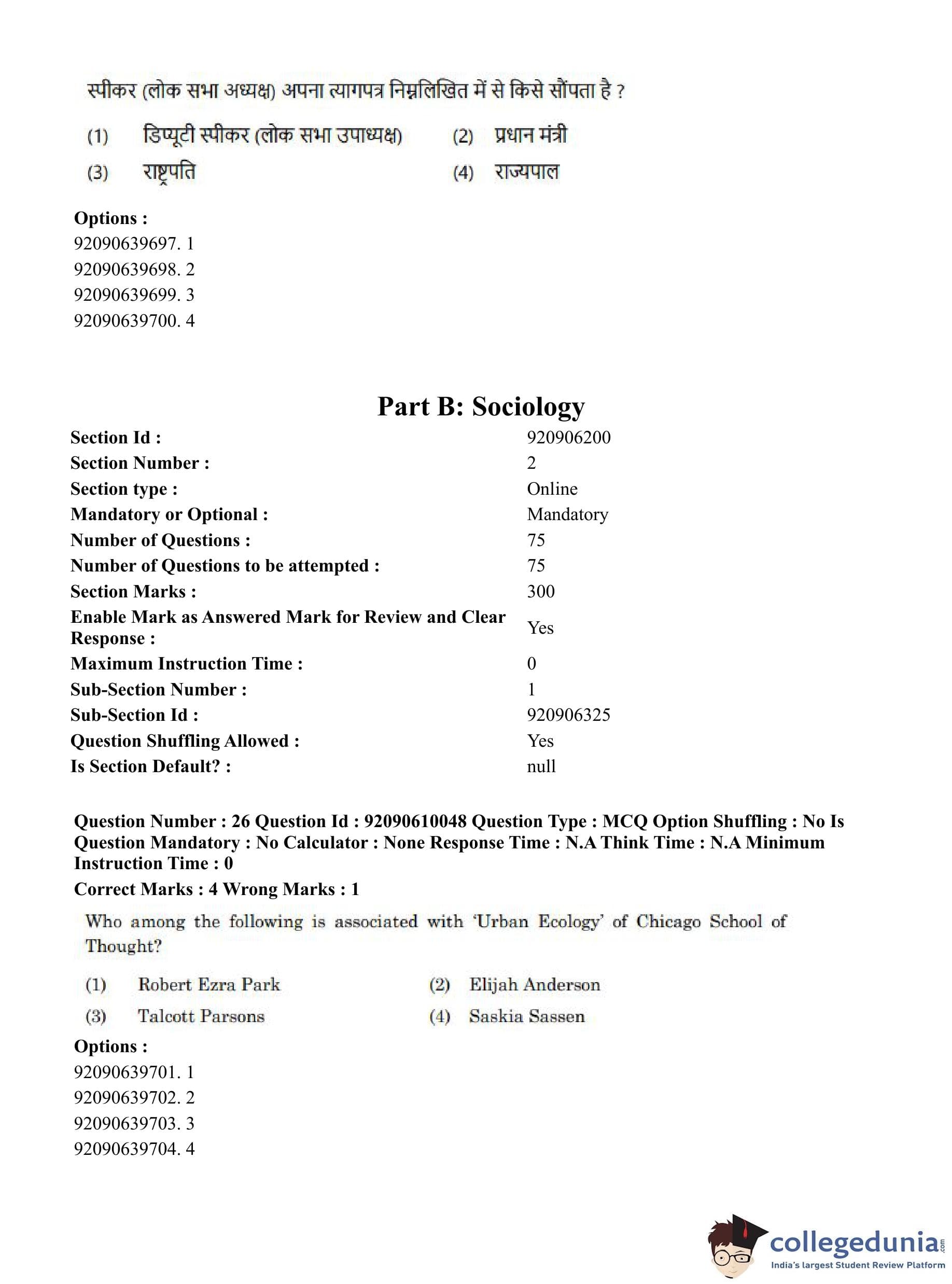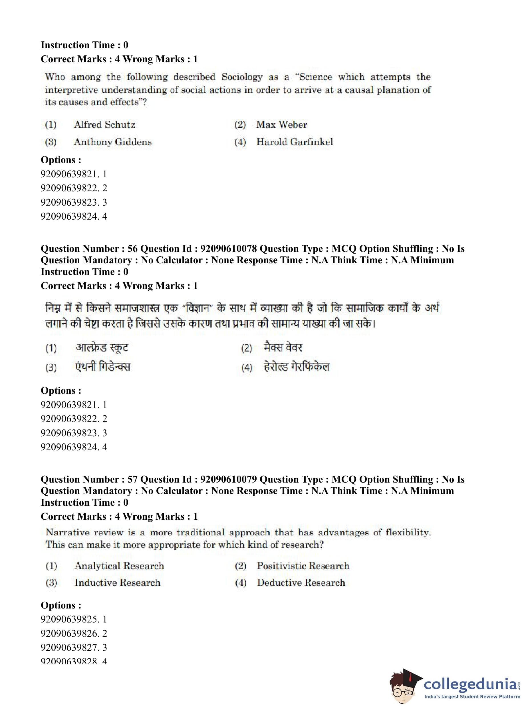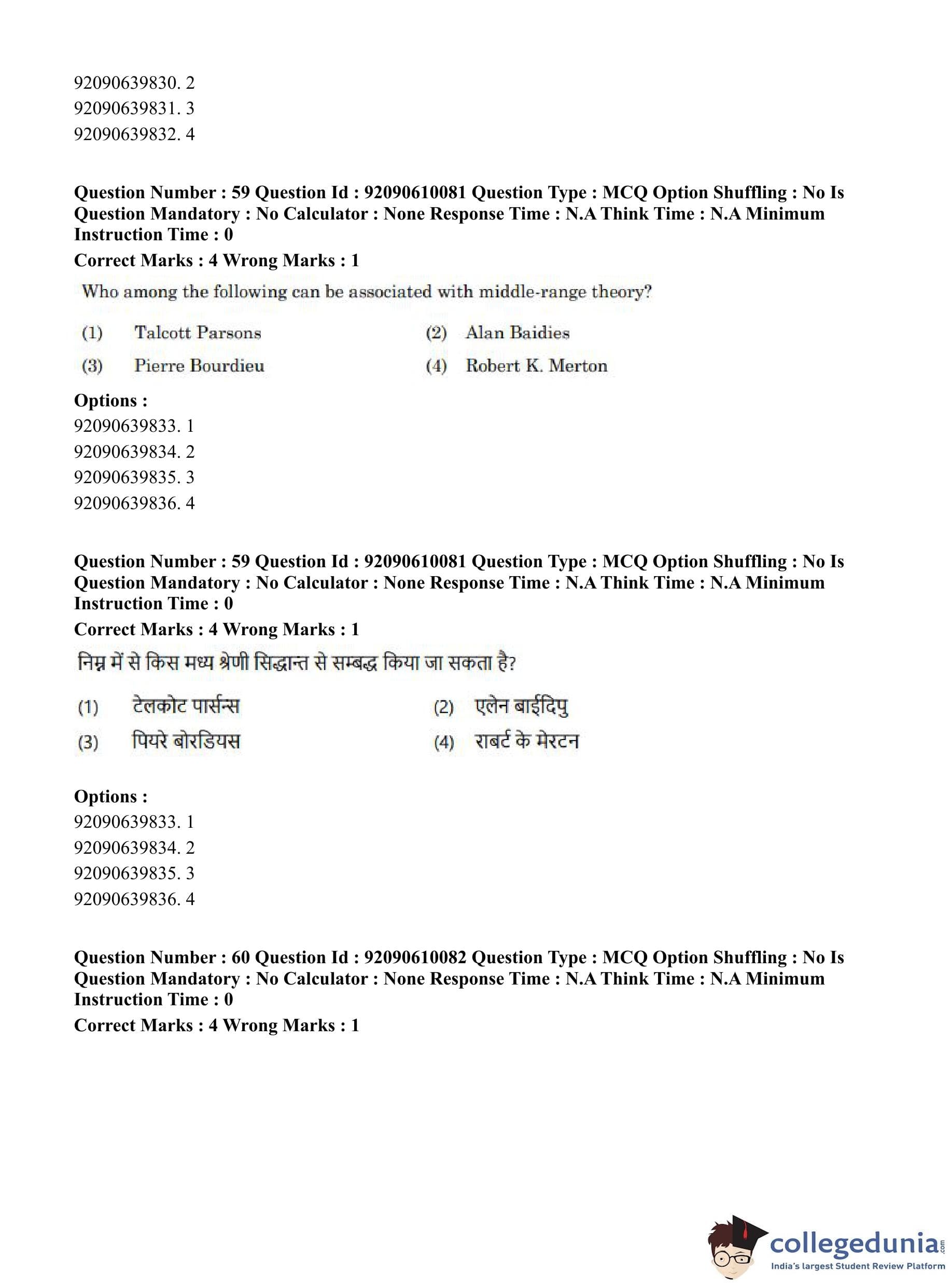 CUET PG 2023 Sociology Question Paper in Hindi (June 10 - Shift 1)