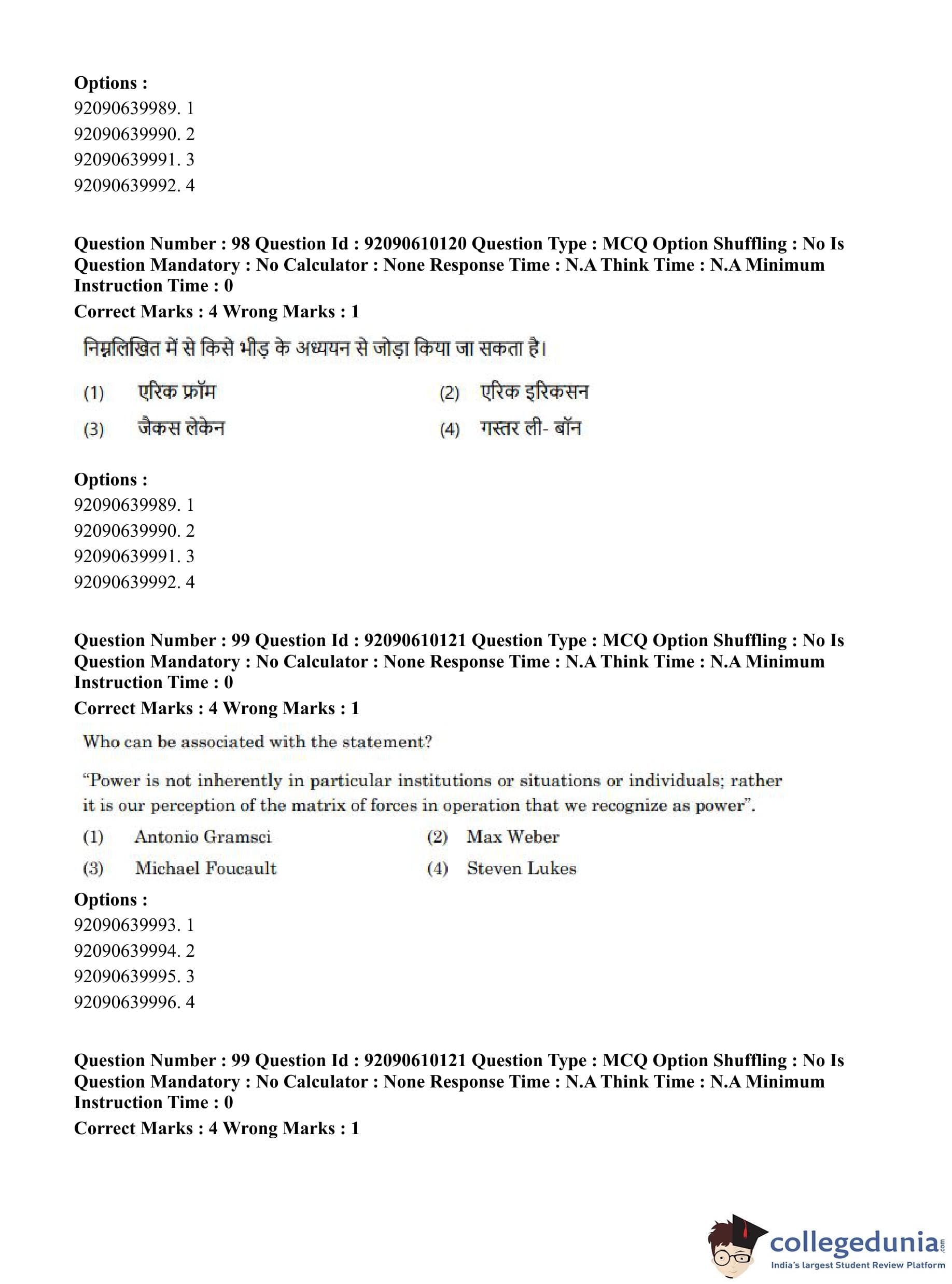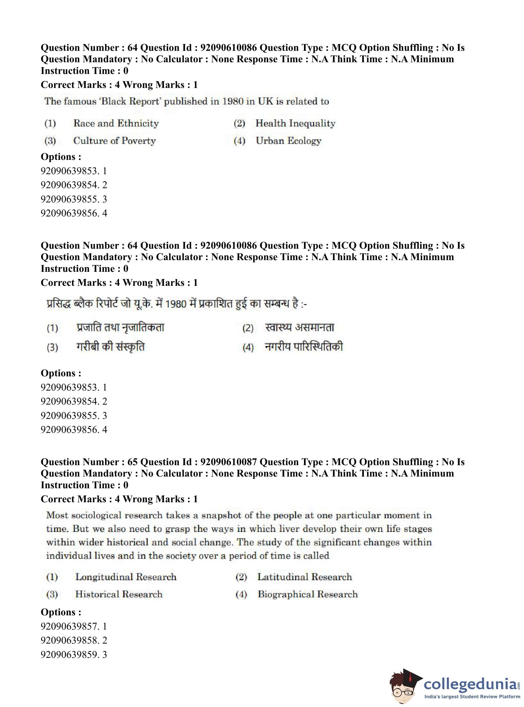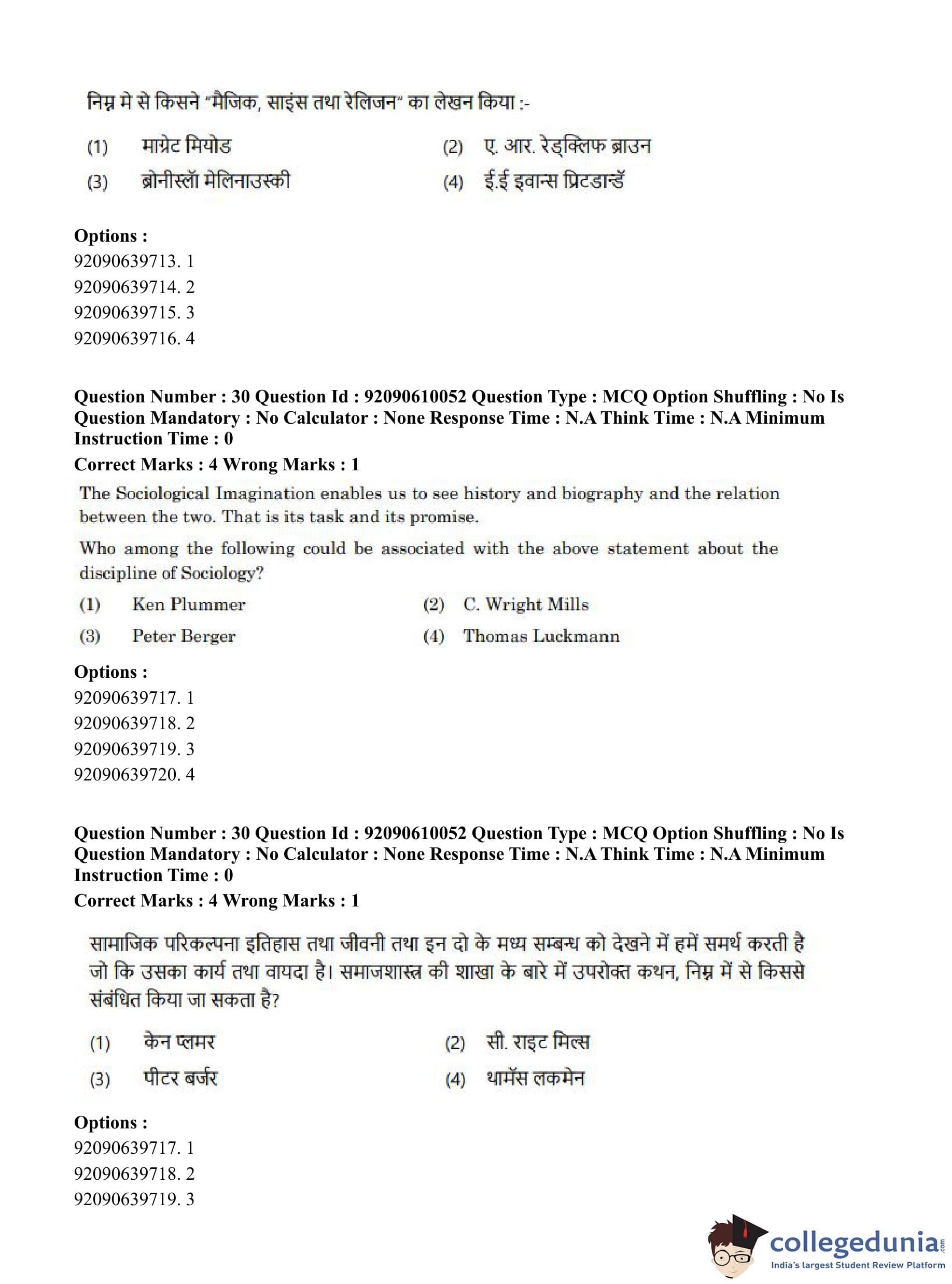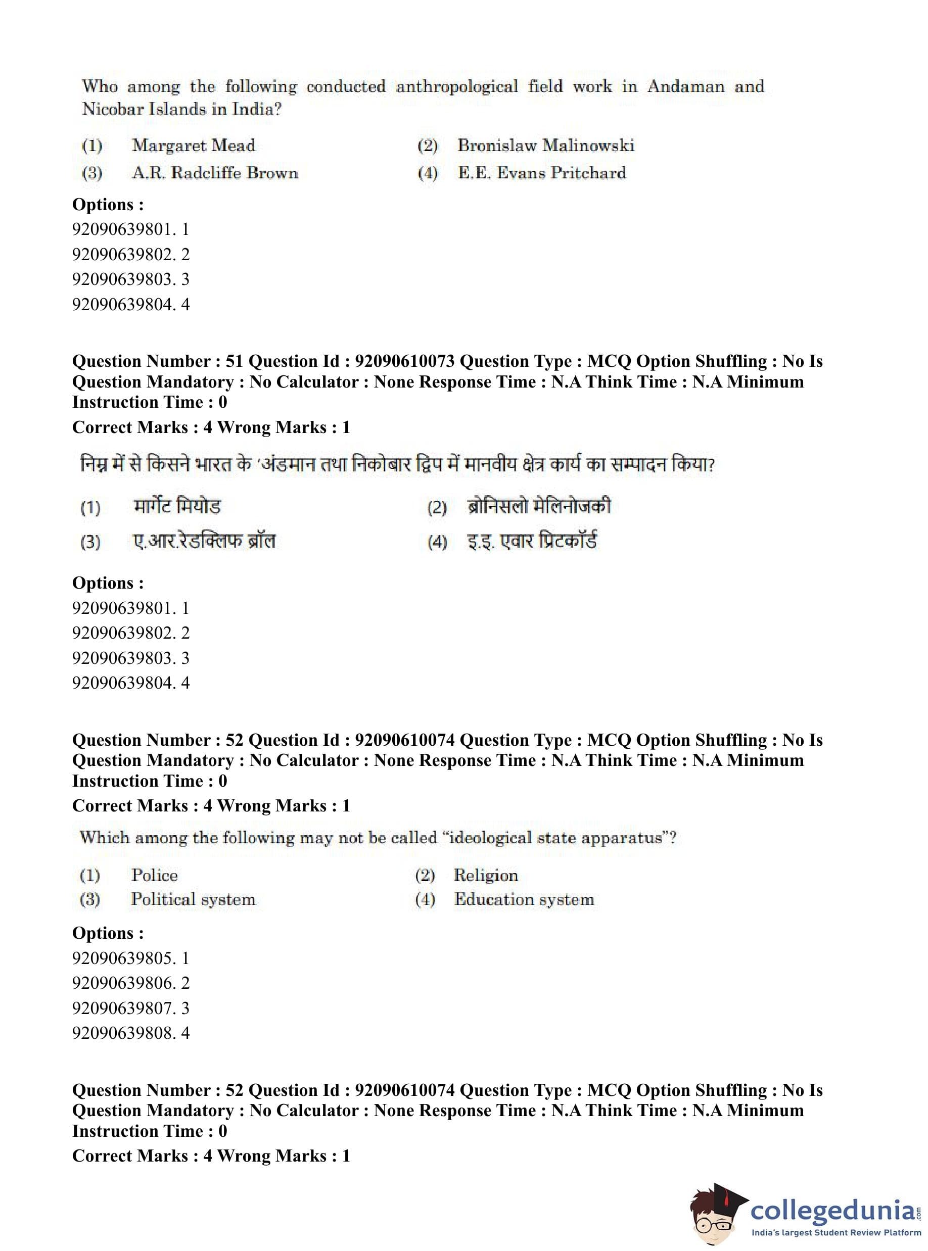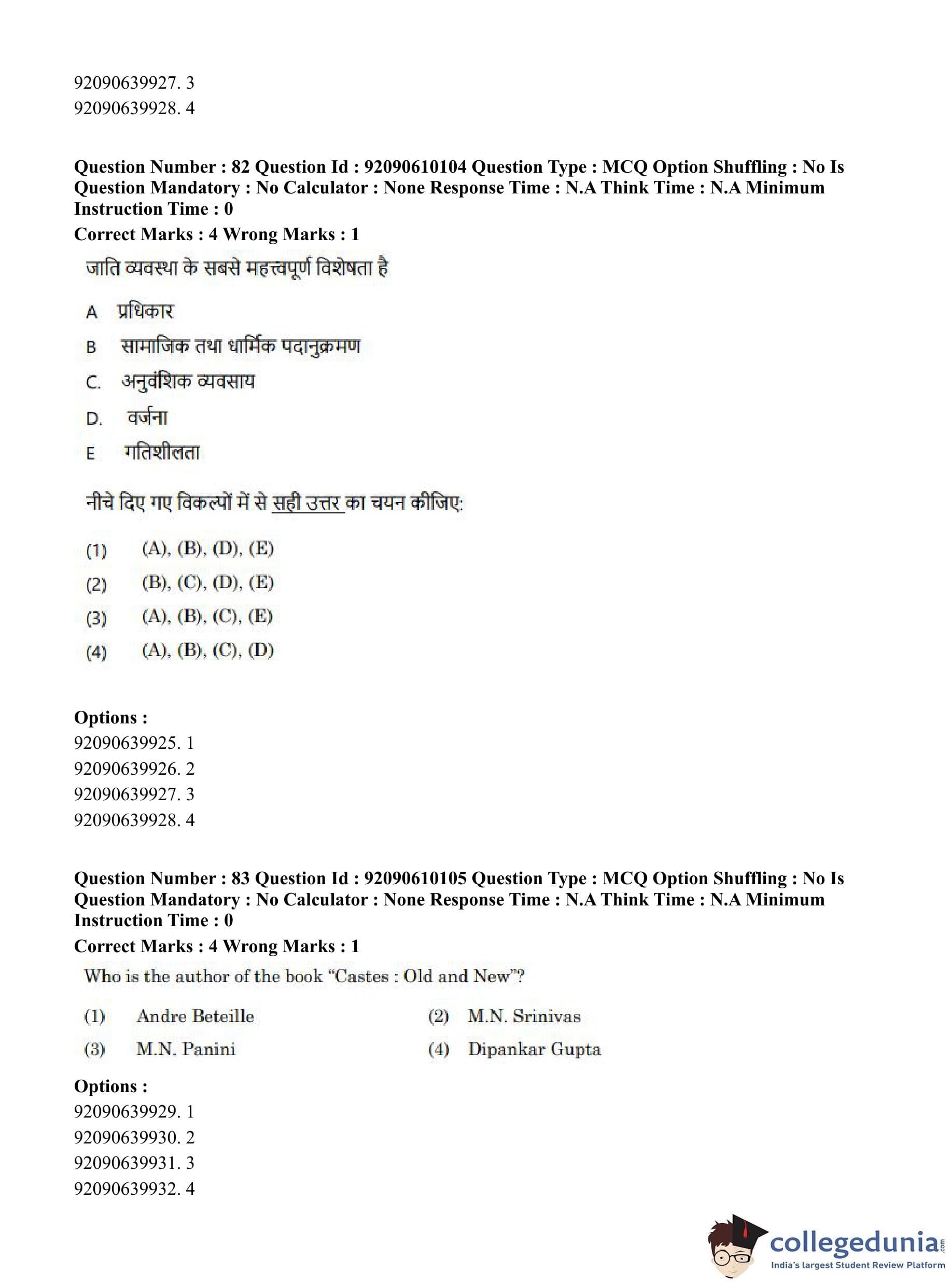 CUET PG 2023 Sociology Question Paper in Hindi (June 10 - Shift 1)