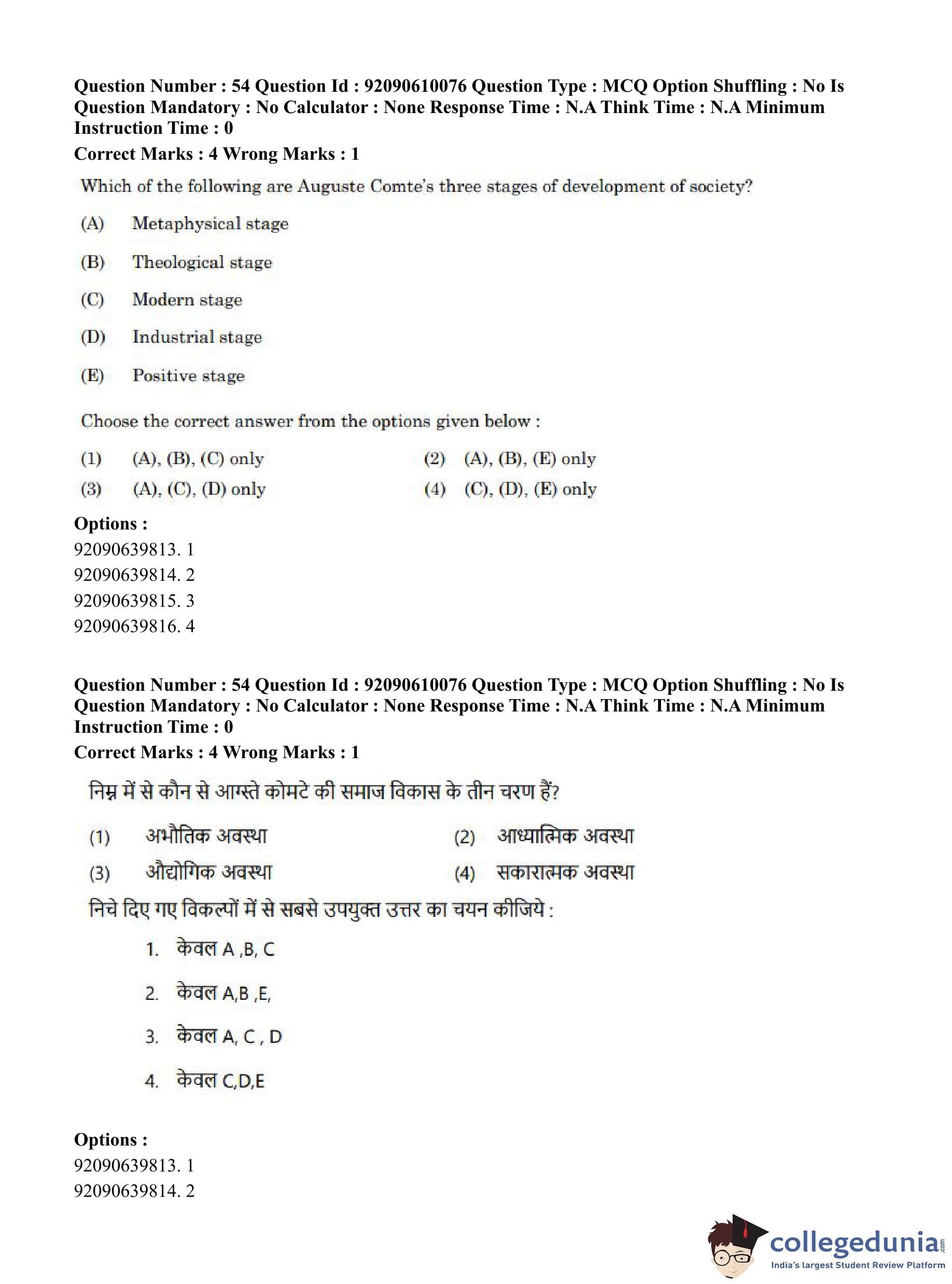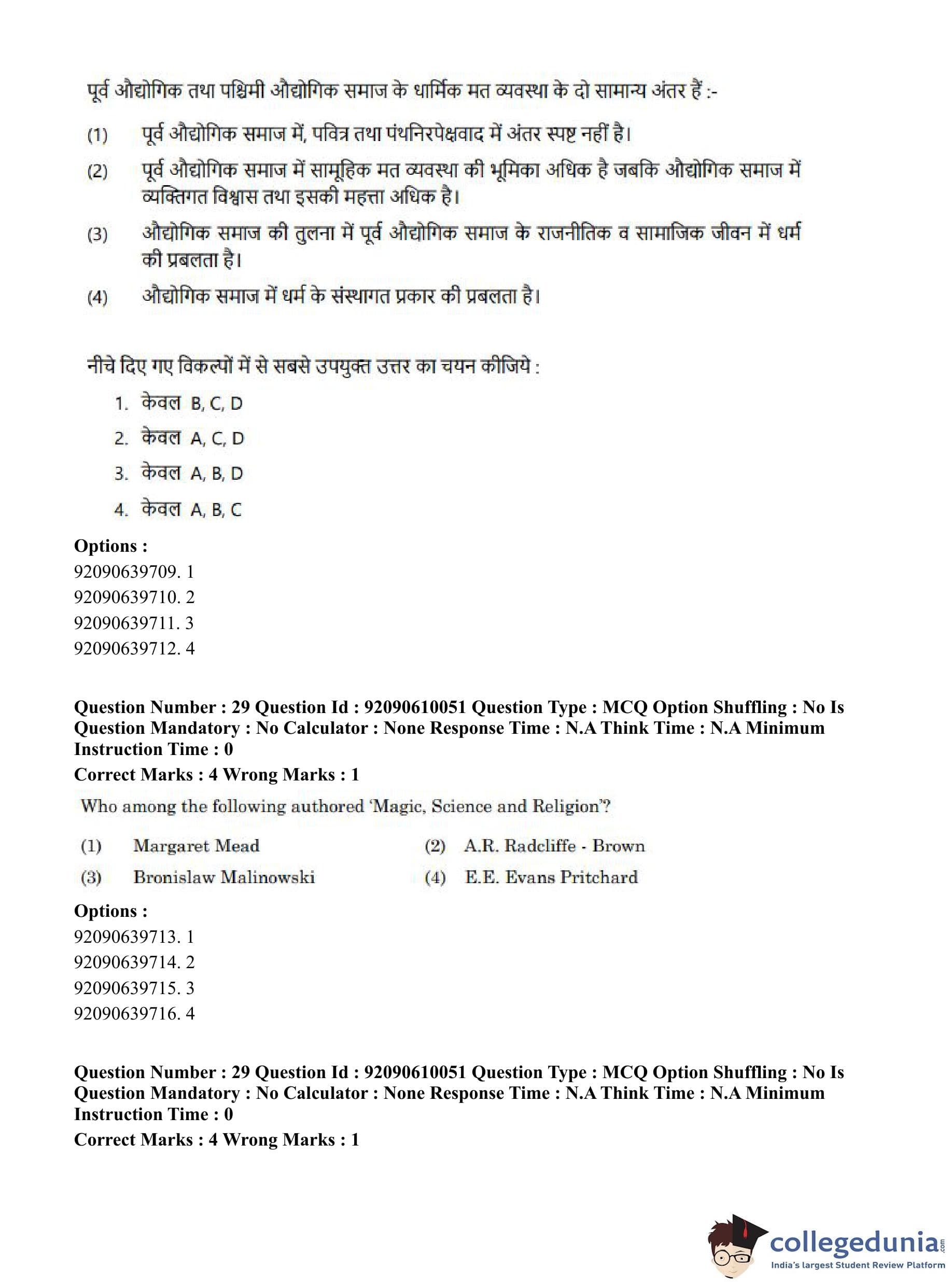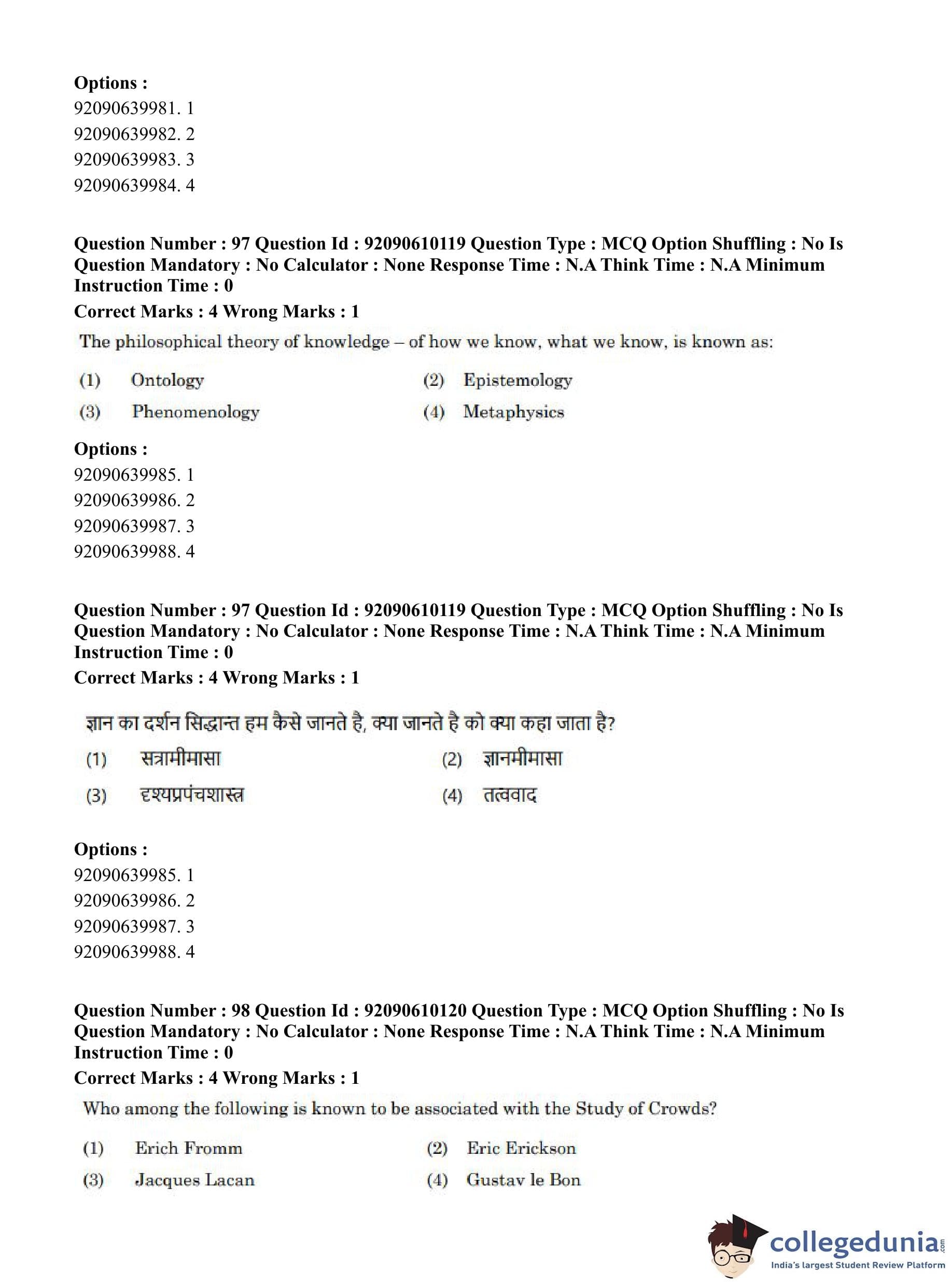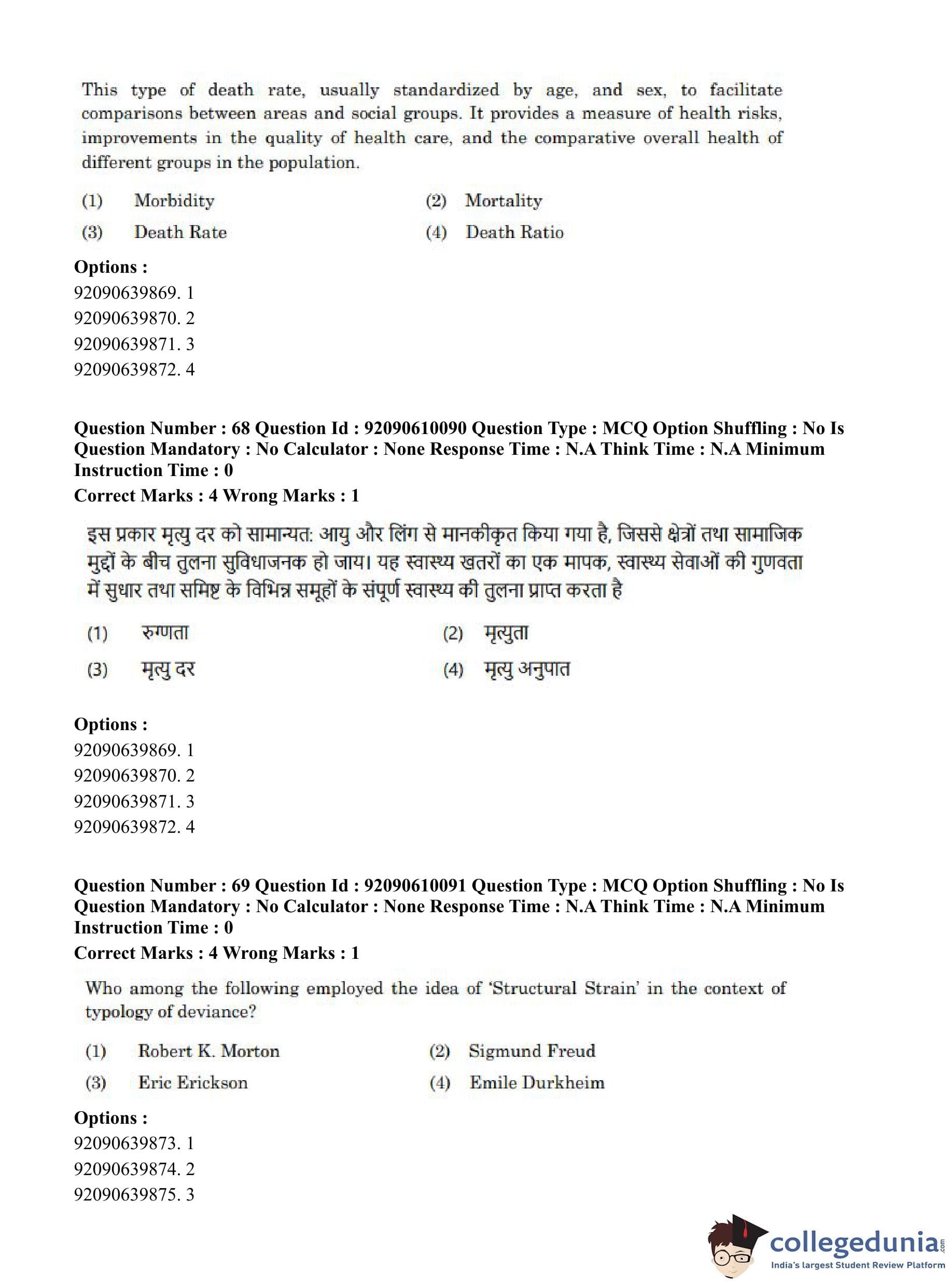 CUET PG 2023 Sociology Question Paper in Hindi (June 10 - Shift 1)