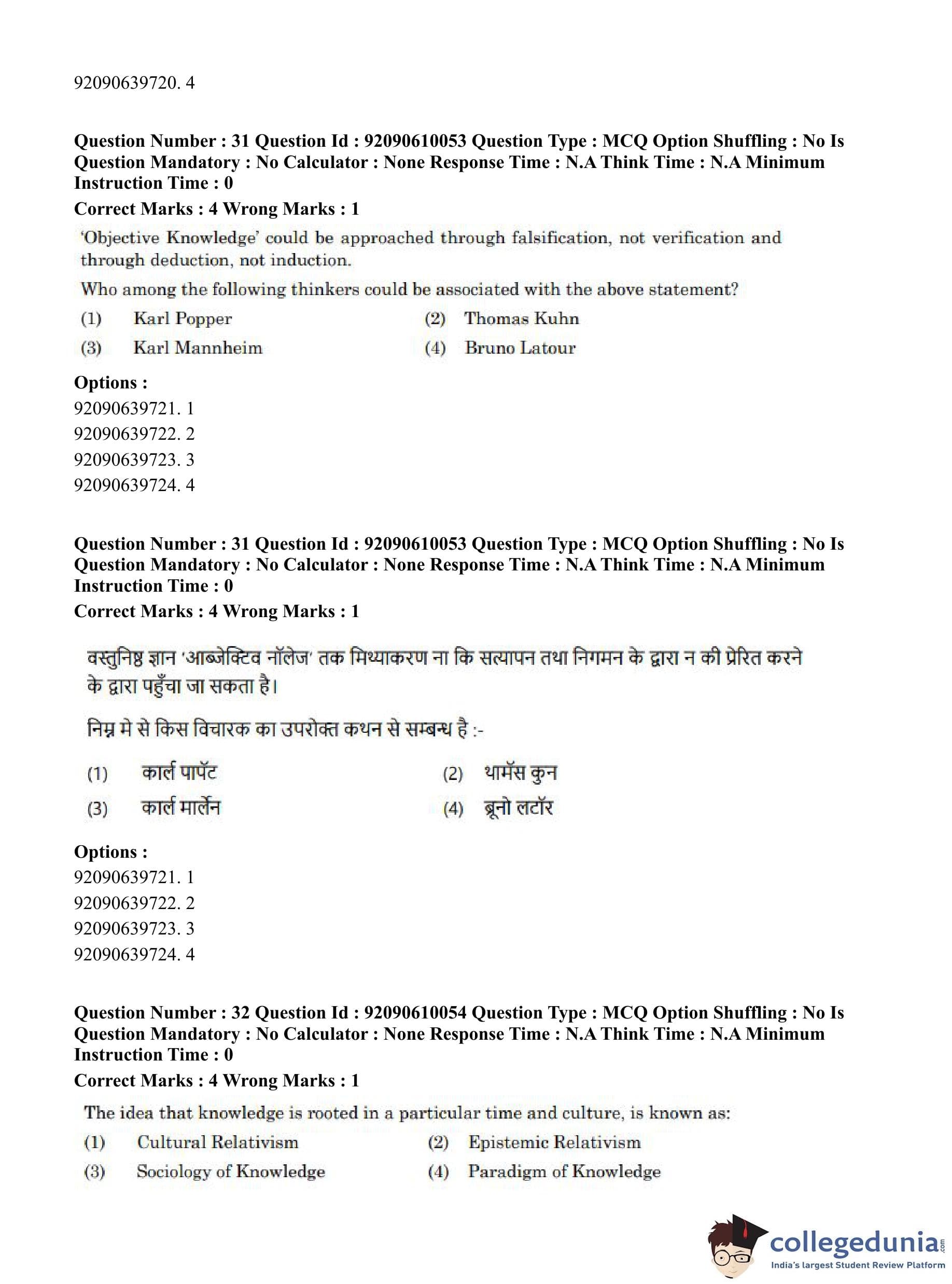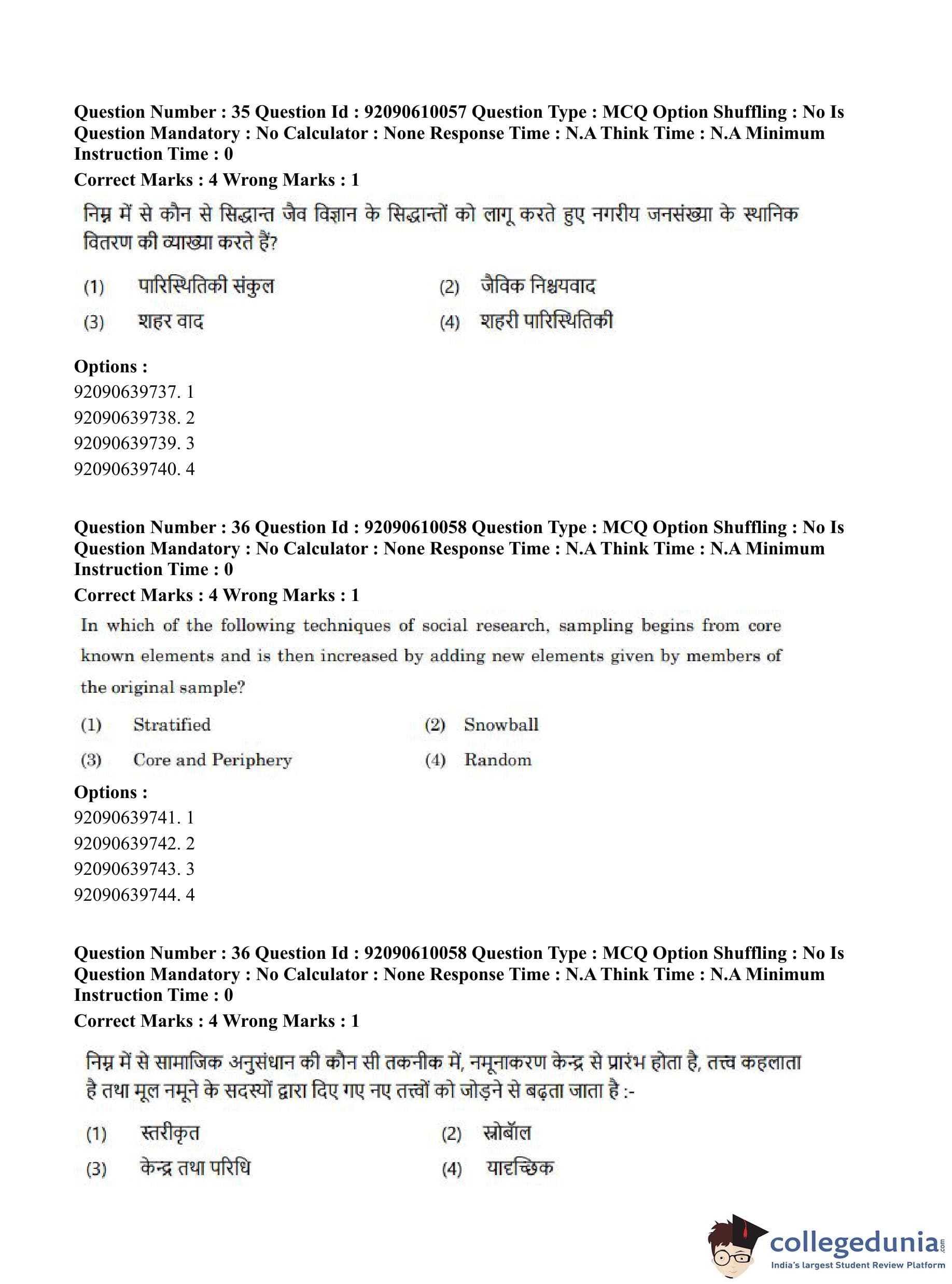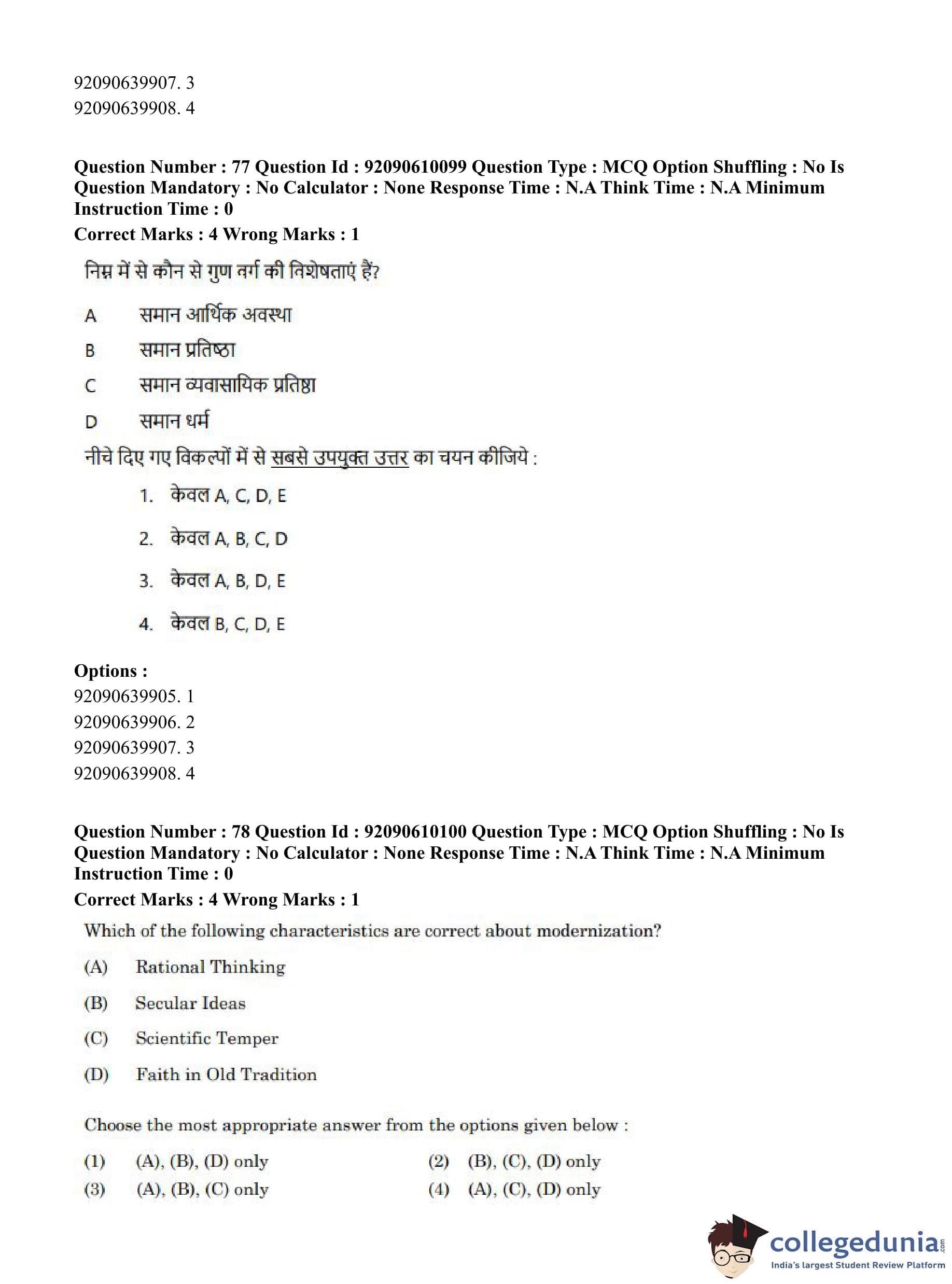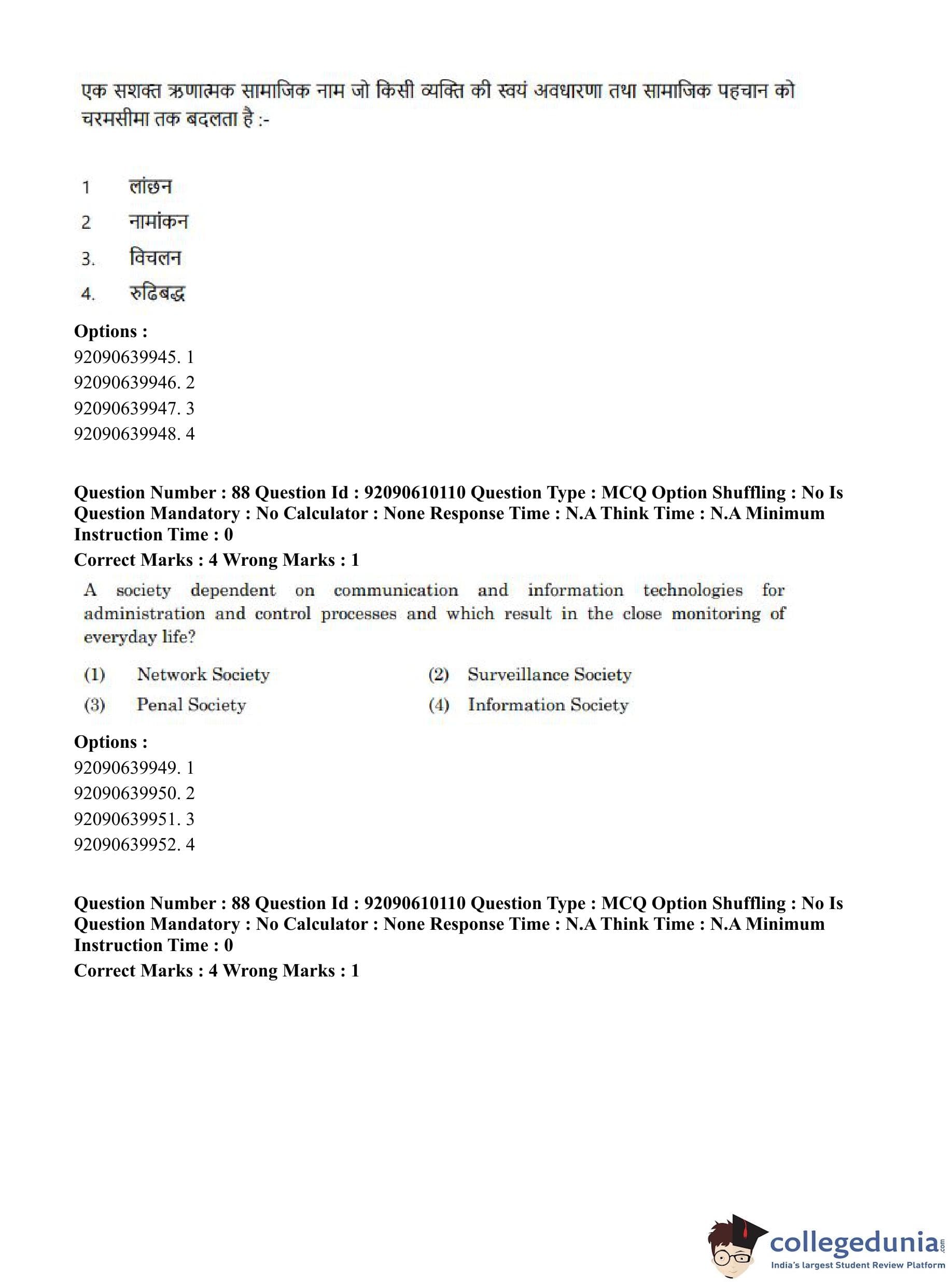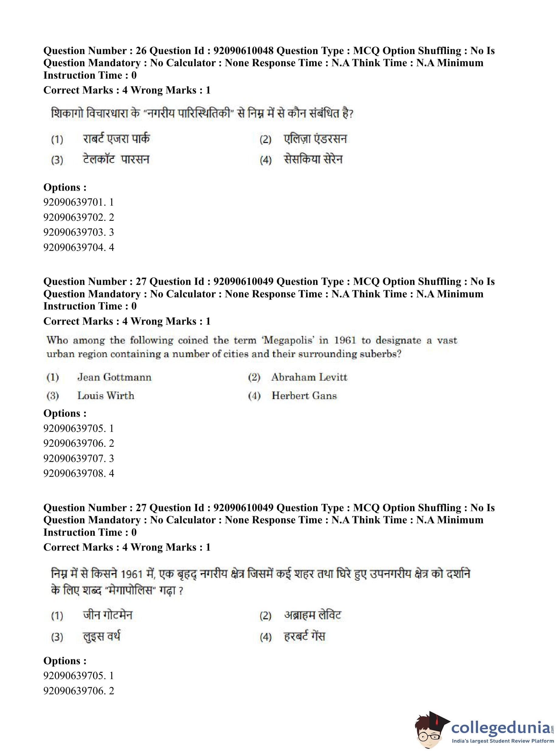 CUET PG 2023 Sociology Question Paper in Hindi (June 10 - Shift 1)