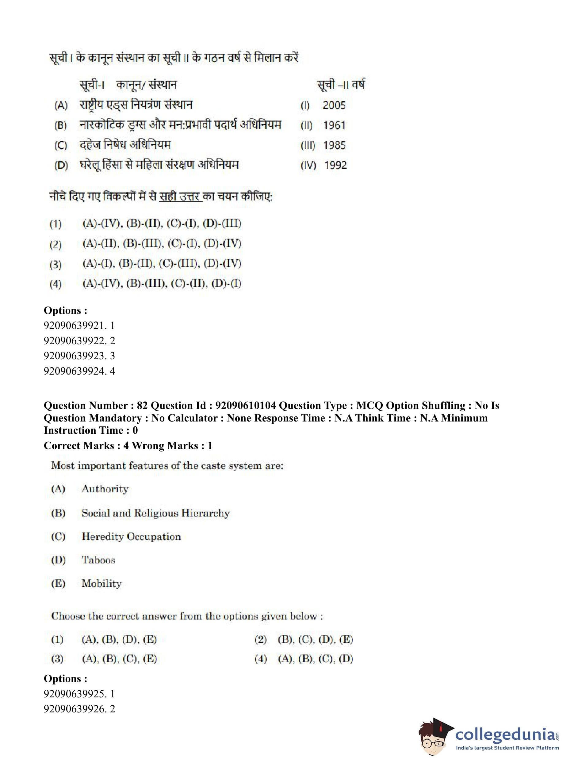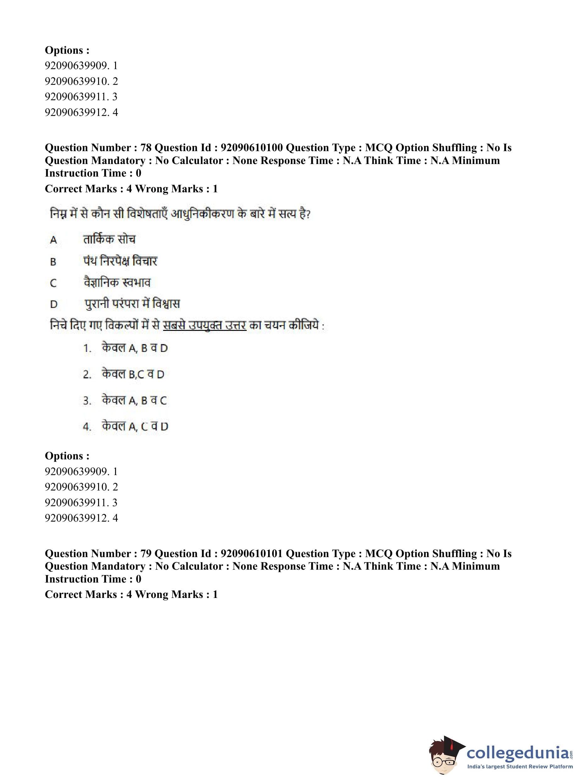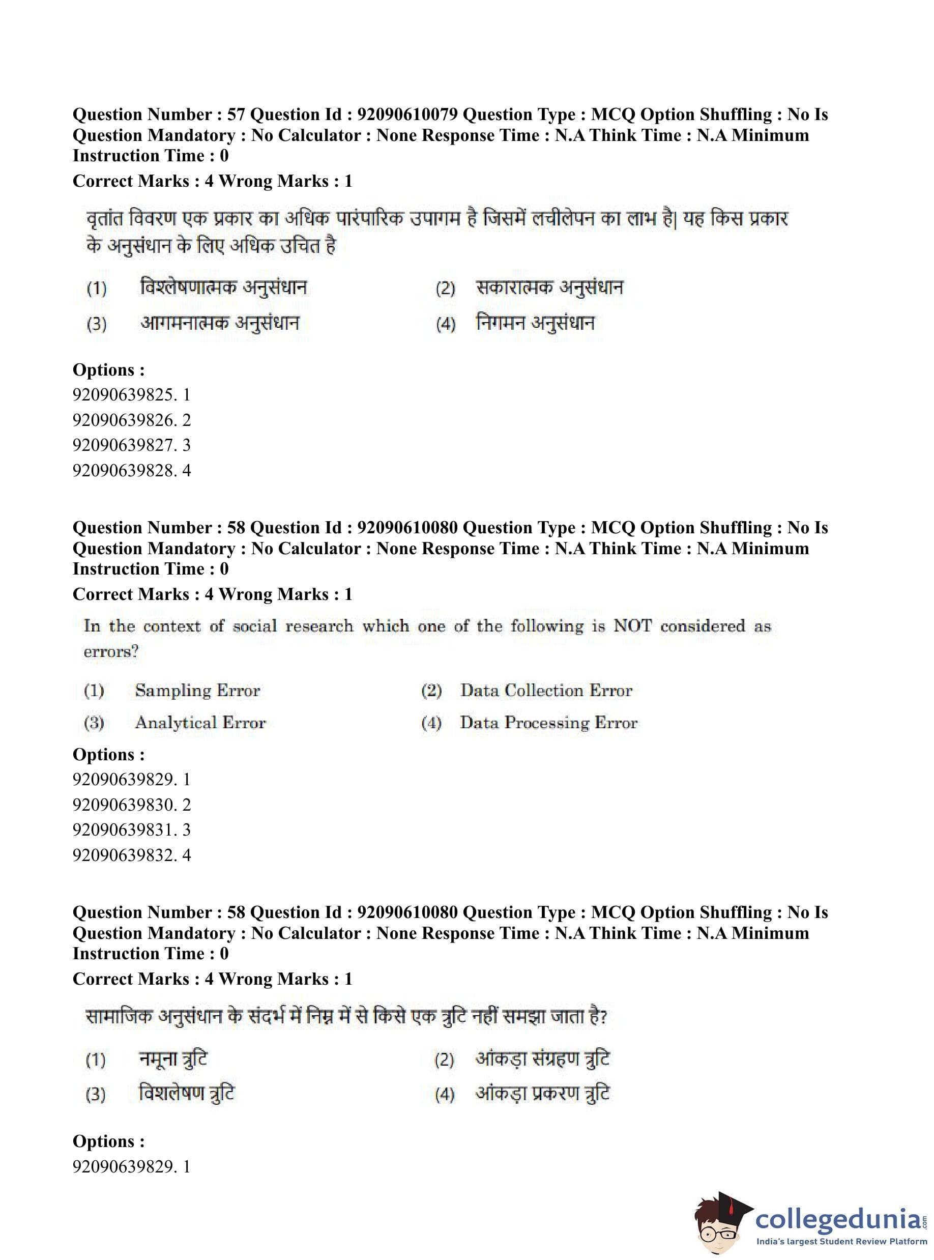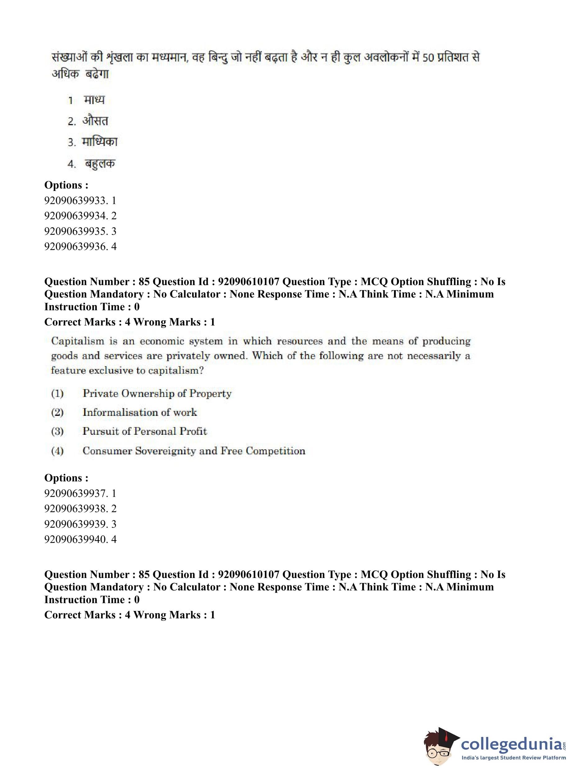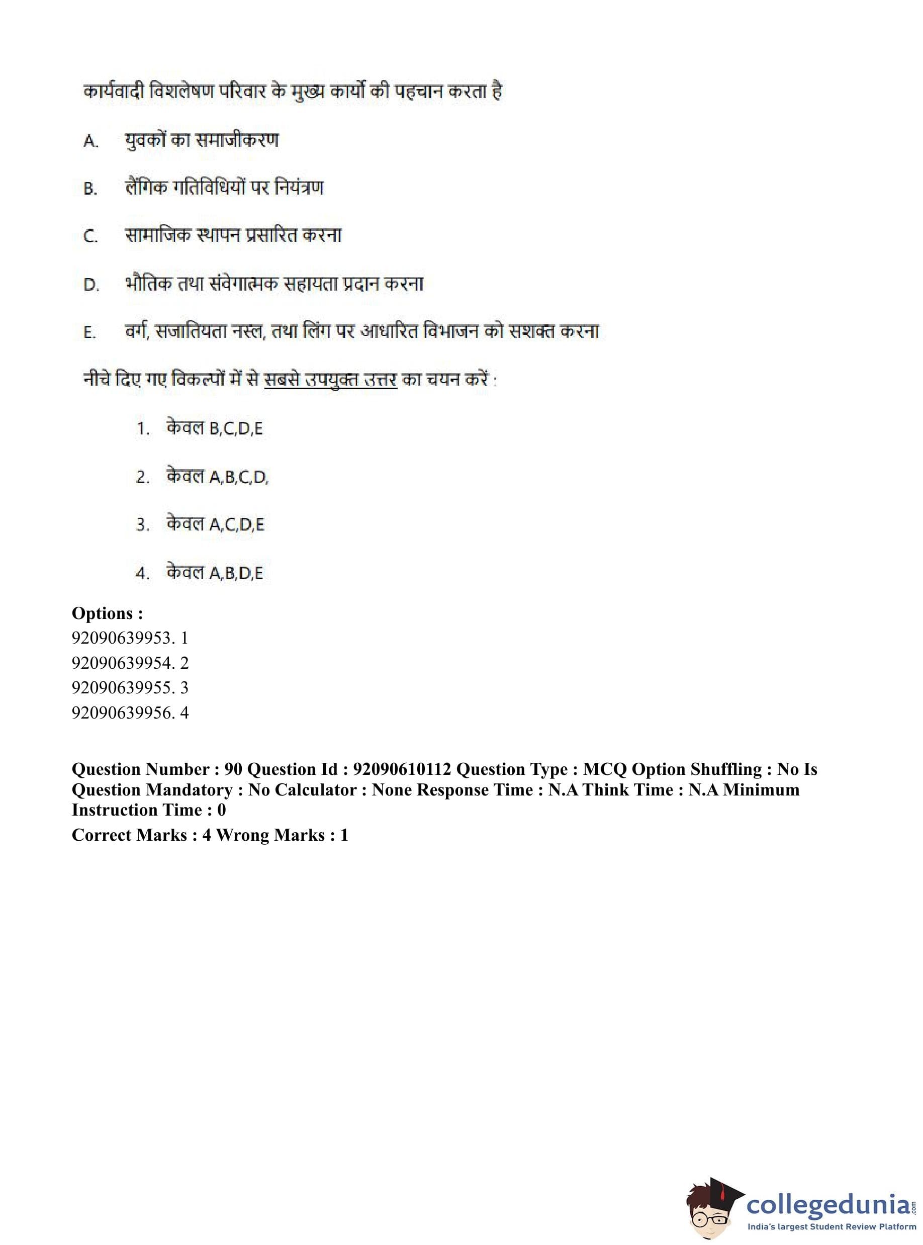 CUET PG 2023 Sociology Question Paper in Hindi (June 10 - Shift 1)