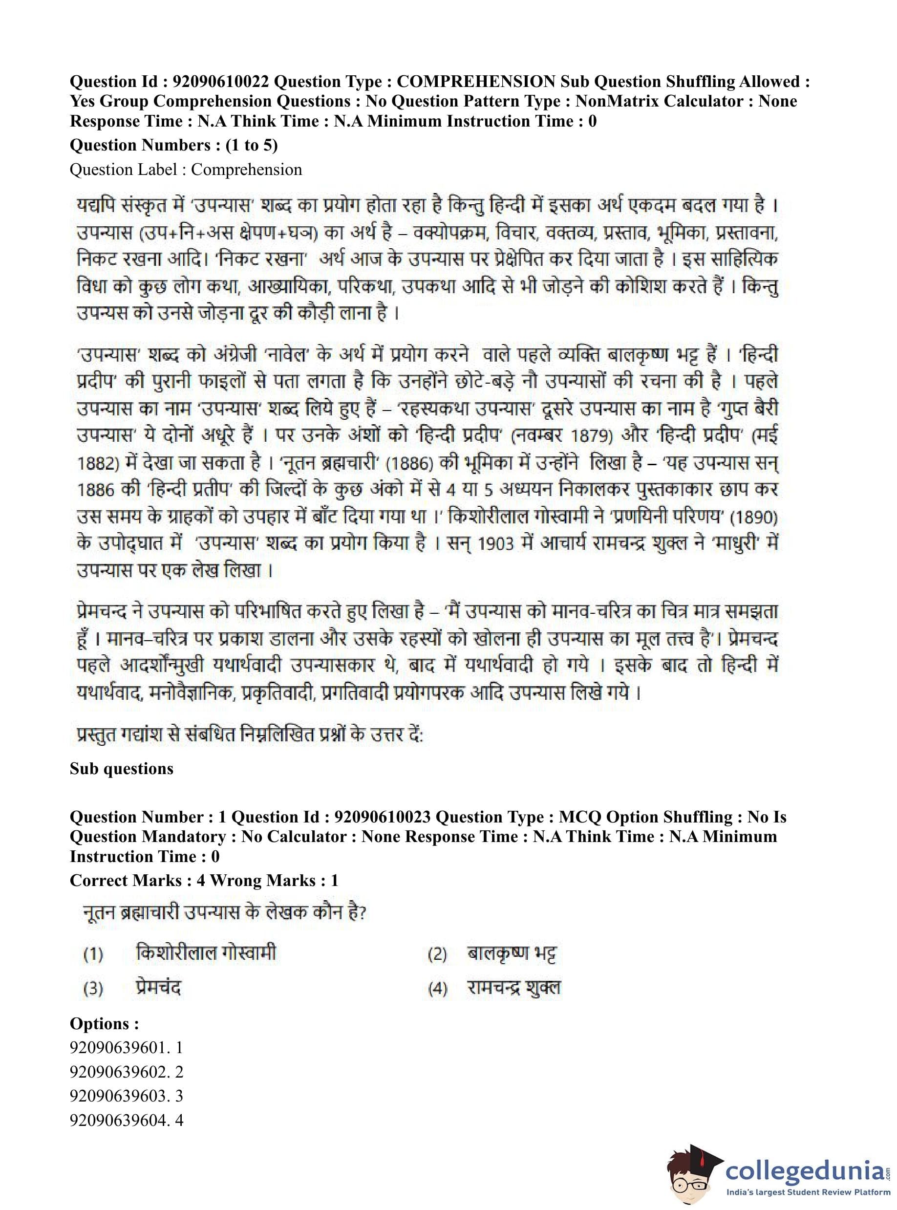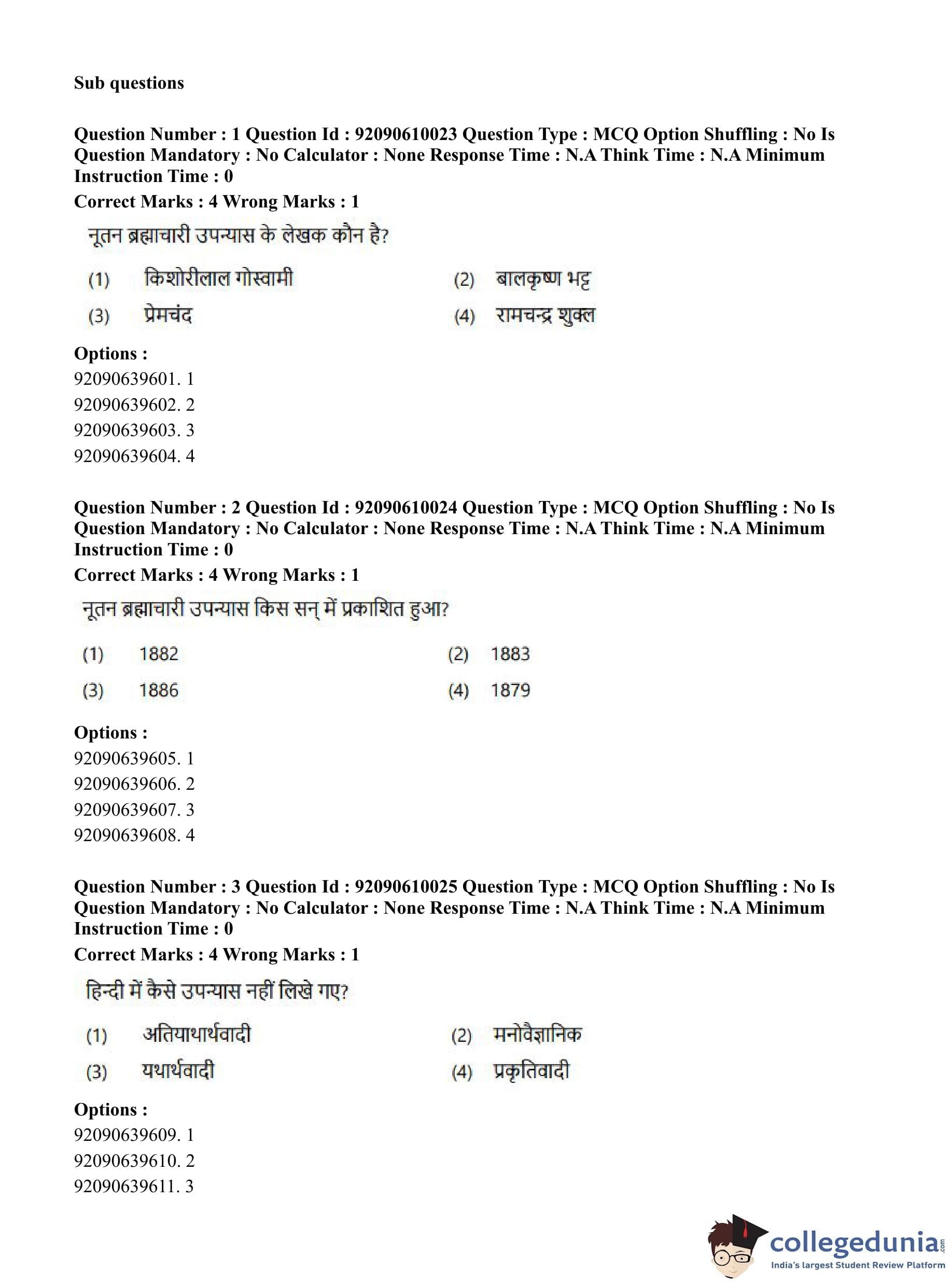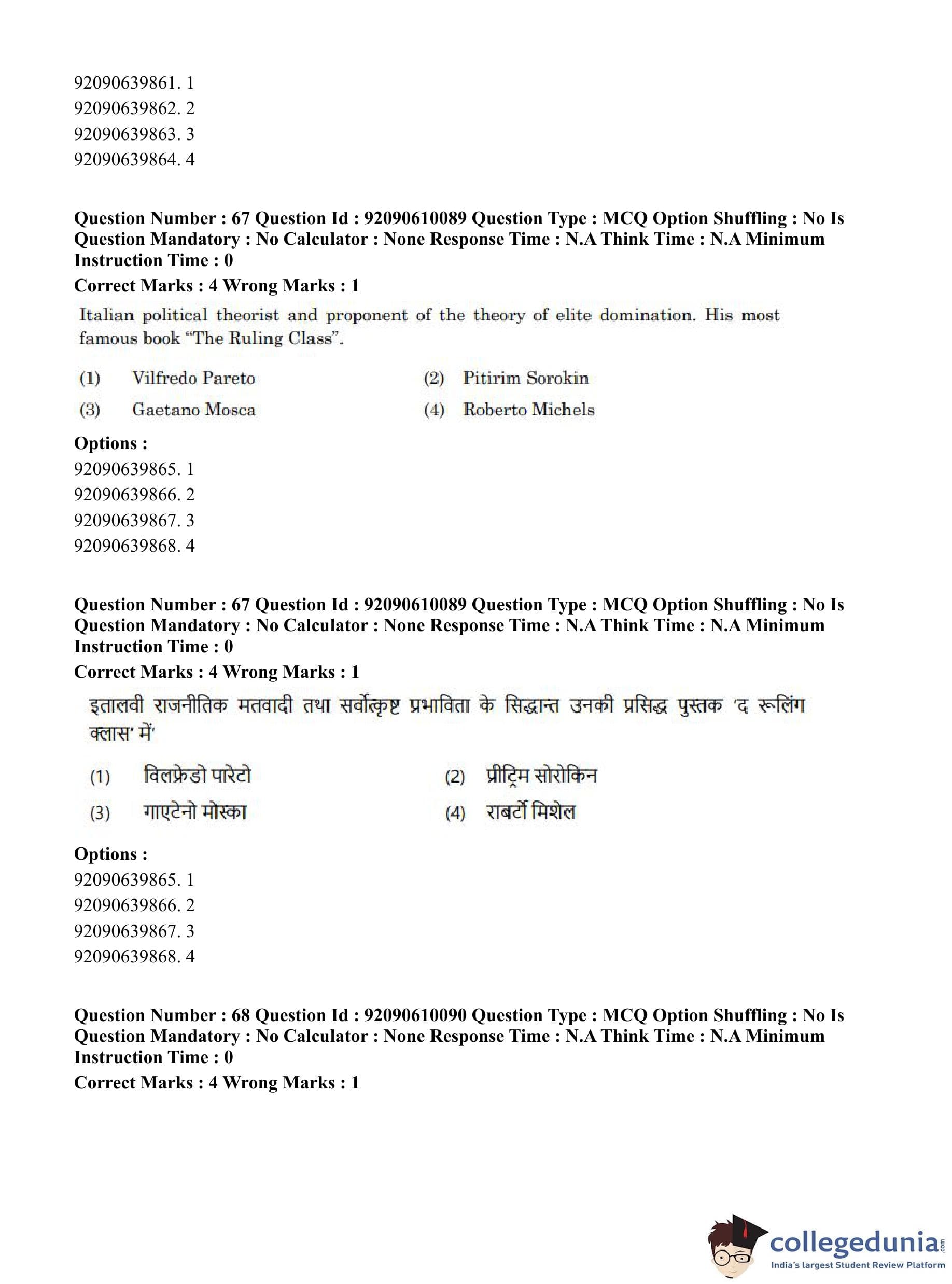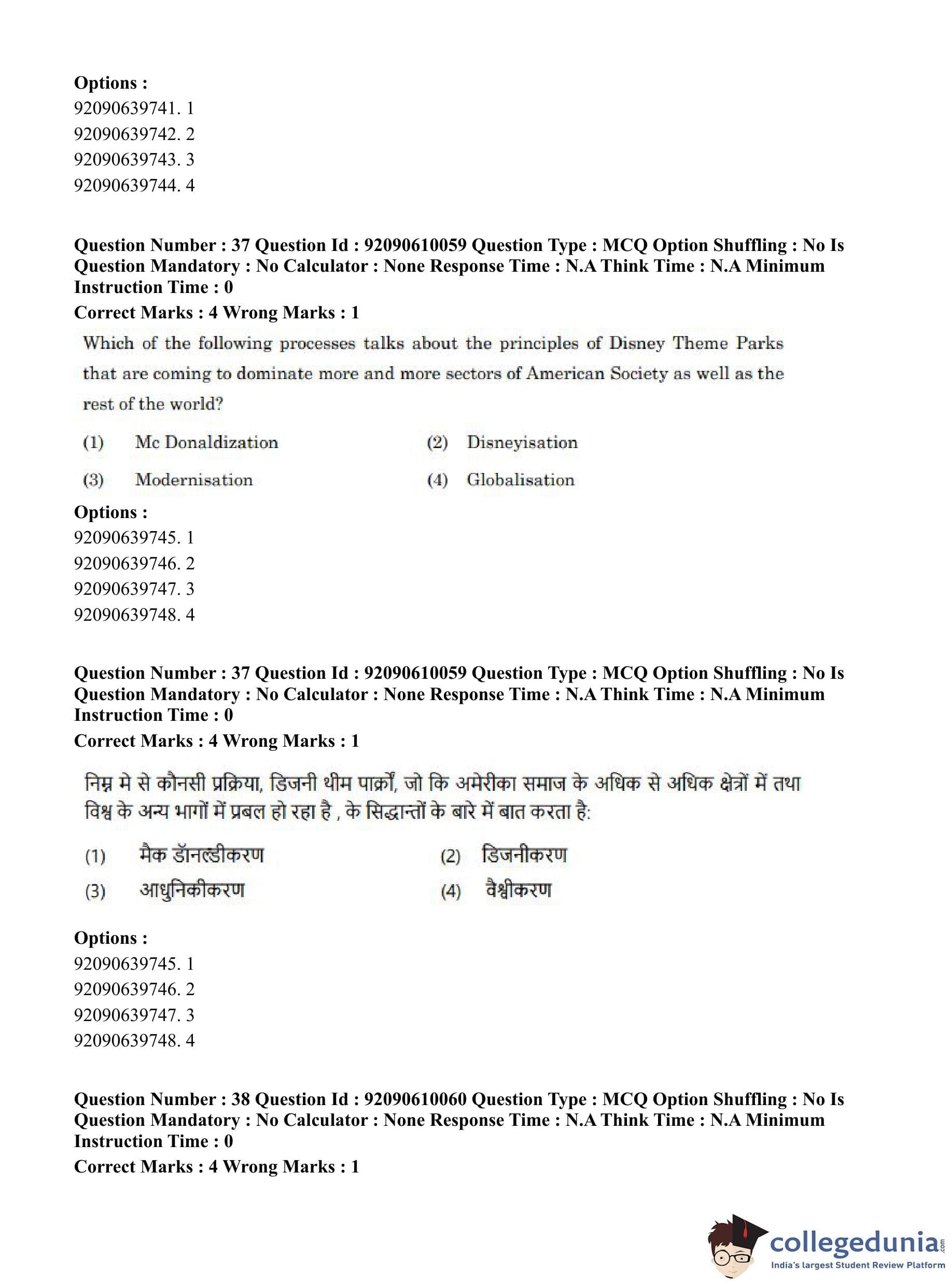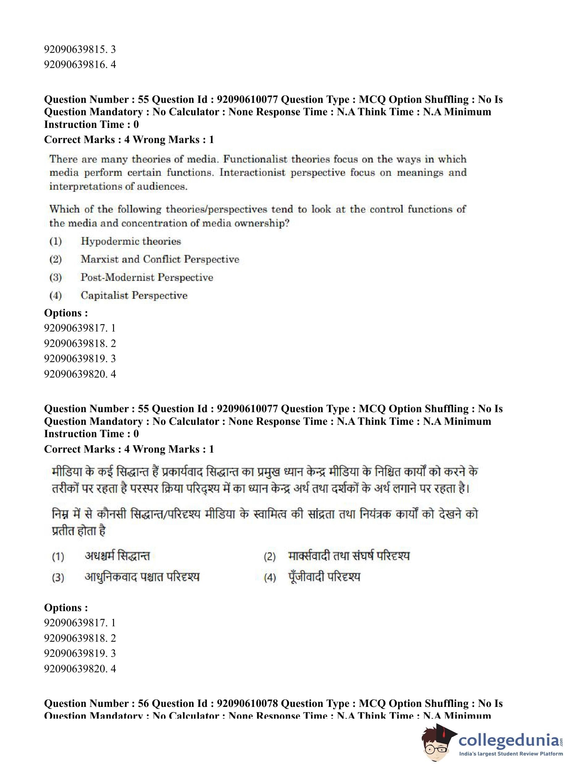 CUET PG 2023 Sociology Question Paper in Hindi (June 10 - Shift 1)