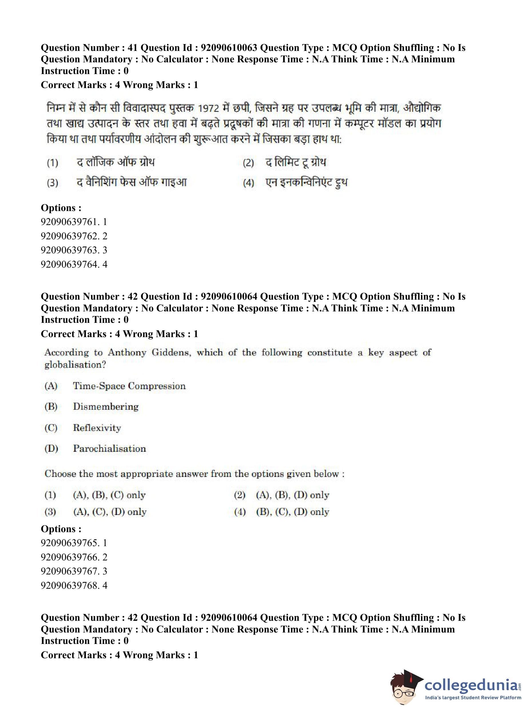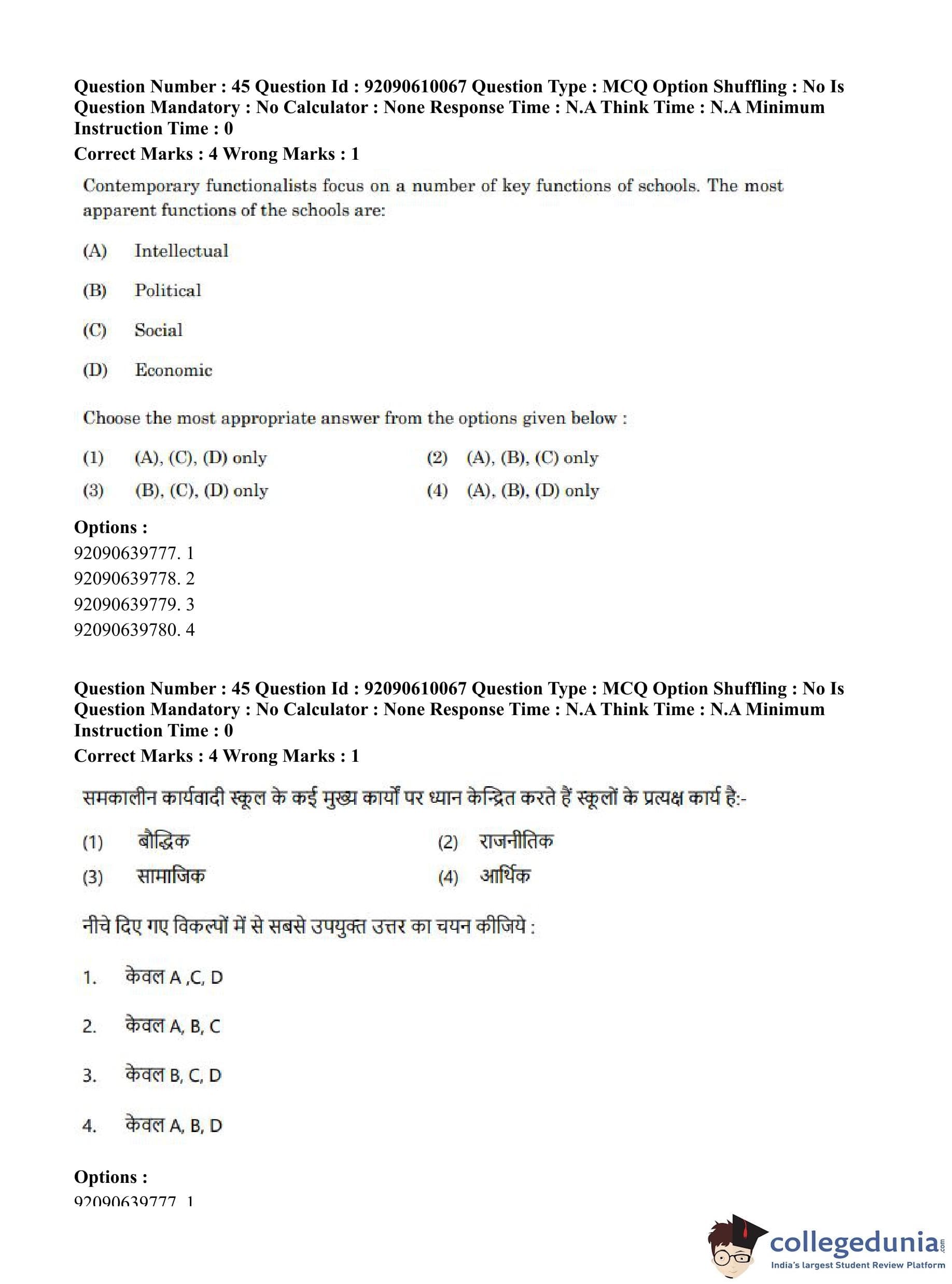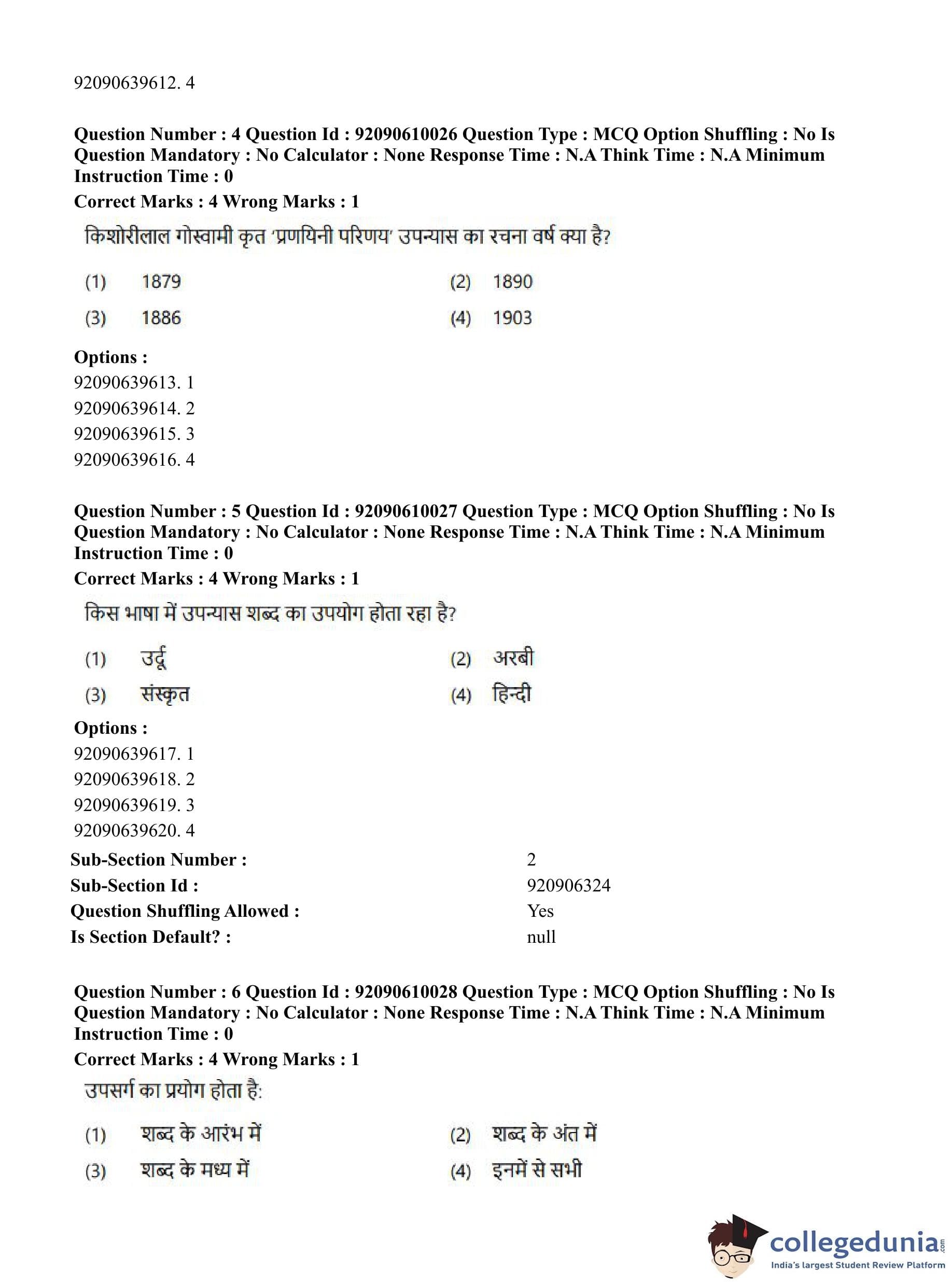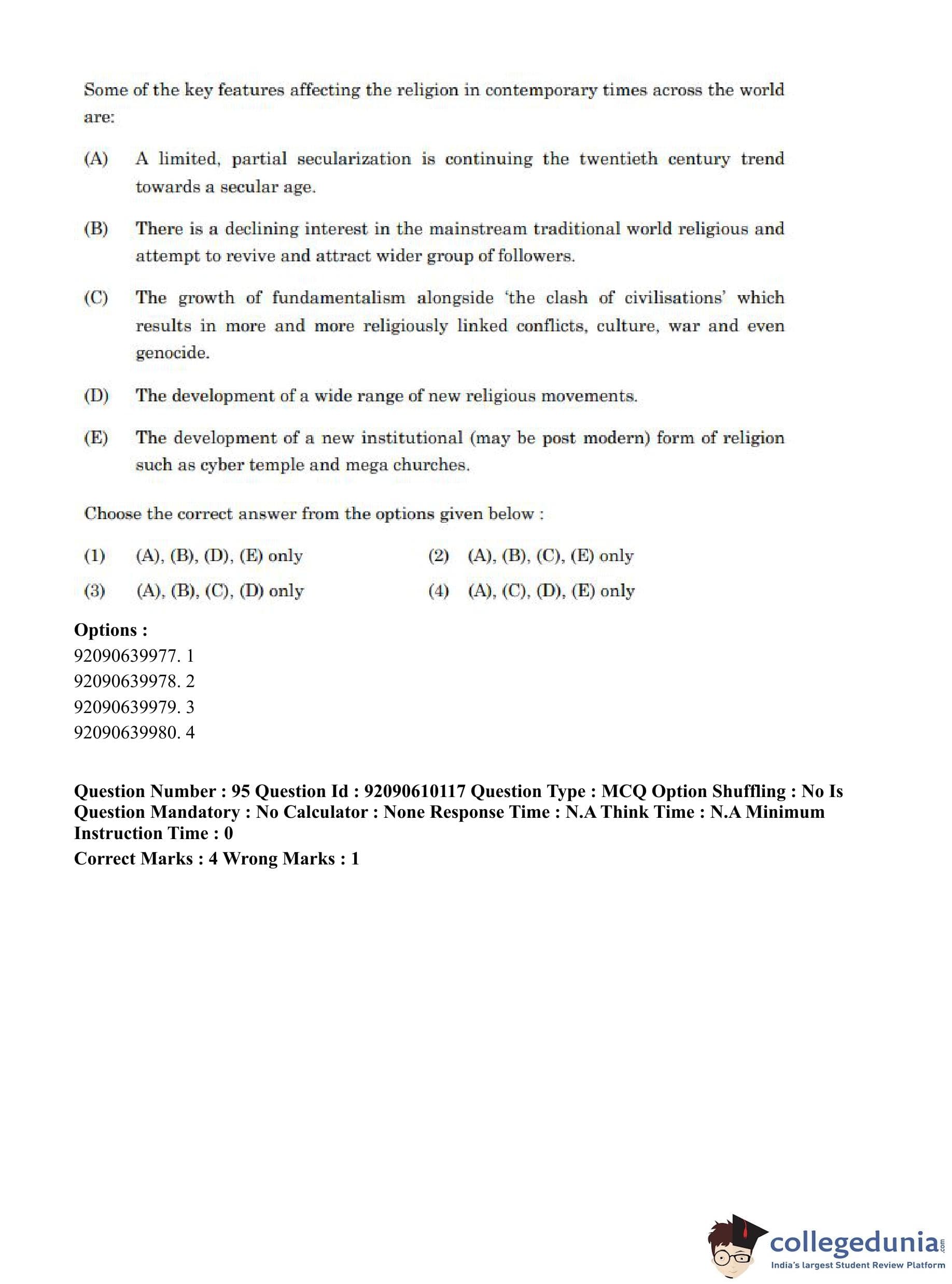CUET PG 2023 Sociology Question Paper in Hindi (June 10 - Shift 1)