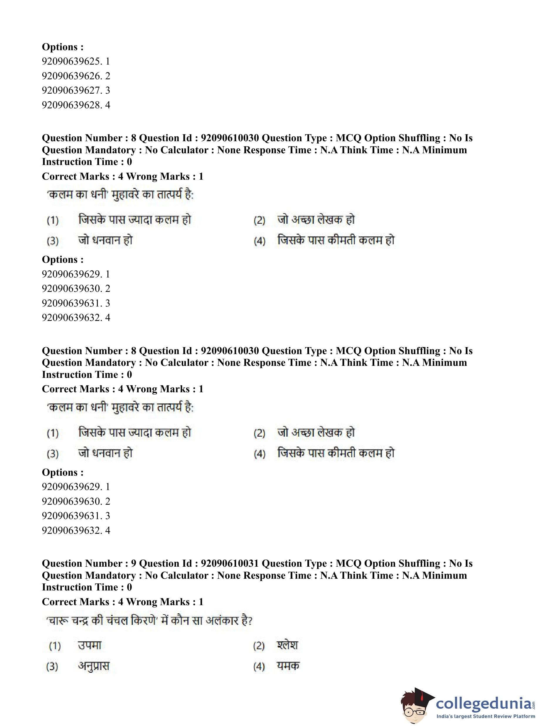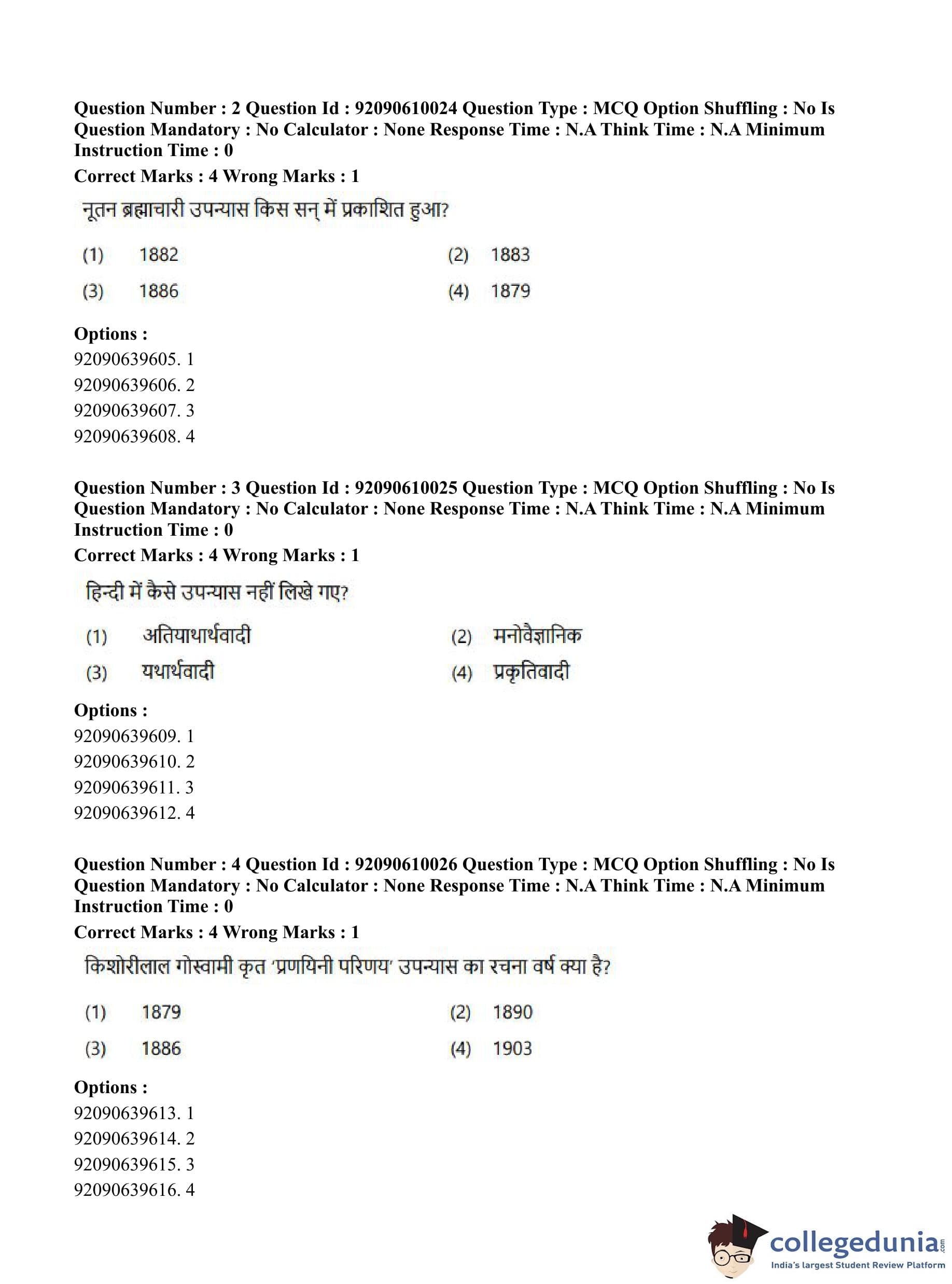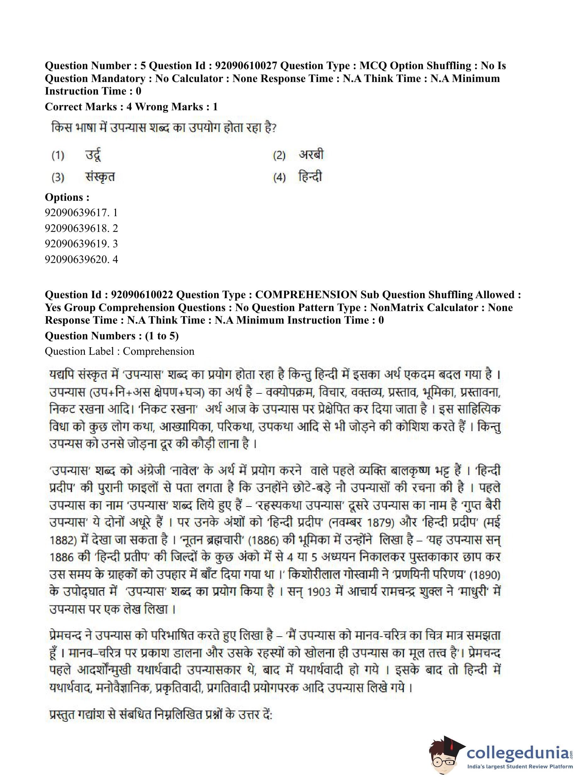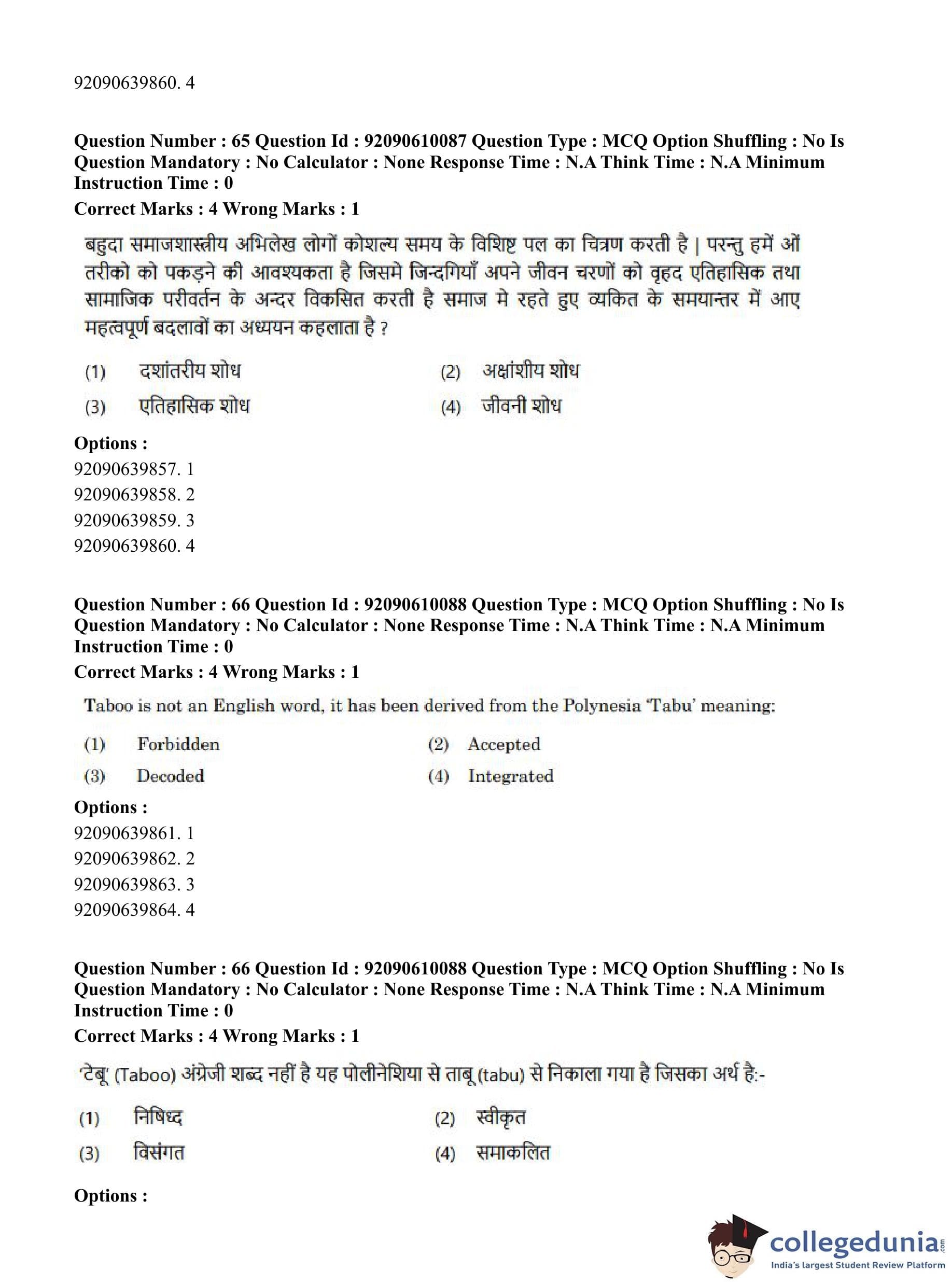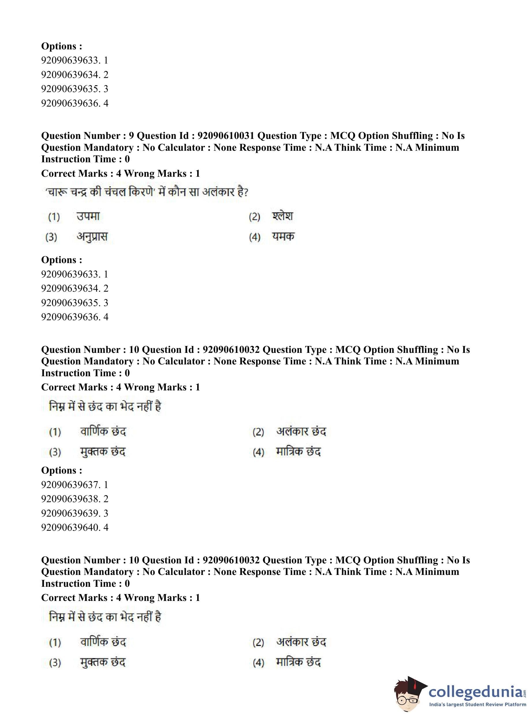 CUET PG 2023 Sociology Question Paper in Hindi (June 10 - Shift 1)