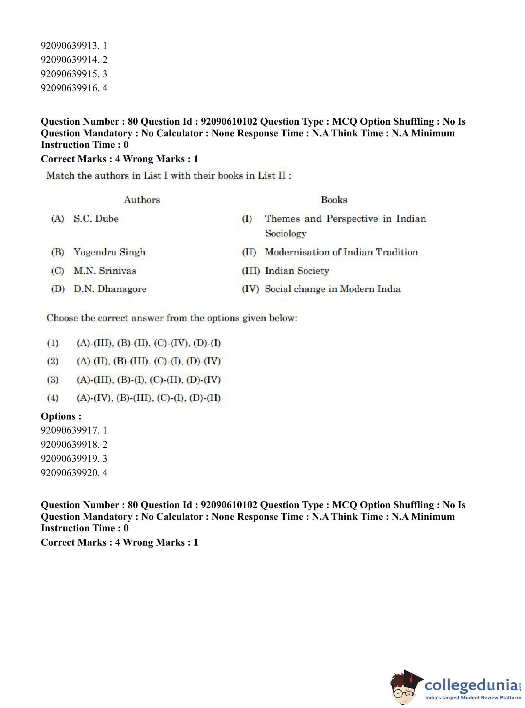 CUET PG 2023 Sociology Question Paper with Answer Key PDF in Hindi is available for download here. The exam was conducted by National Testing Agency (NTA) on June 10, 2023 in Shift 1. The question paper comprised a total of 100 questions divided into 2 sections.